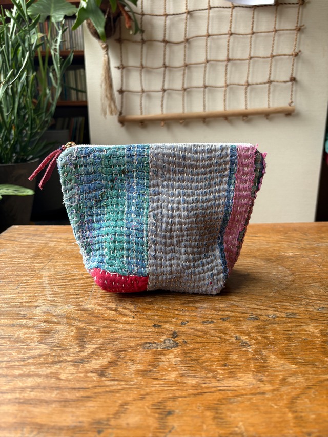 Vintage Kantha フラットポーチ16cm 008