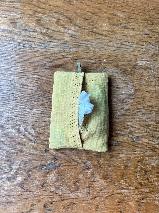 カンタキルトのハギレで作った ポケットティッシュケース。 表にはポケットティッシュ。 裏には絆創膏などのちょっとしたものを 入れられるポケットも付いています バッグの中で迷子にならないように 牛皮で引っ掛け穴付きです。 カラビナなどを通して持ち手などに 引っ掛けるのもオススメです。 牛皮のワンポイントも可愛い◎ しっとりと手に馴染むやさしい手触り。 世界に一つの一点物です。 ※使用していくうちに布の端が ボソボソしてきますが、気になるところは ハサミでカットしてご利用ください。 ∞∞∞∞∞∞∞∞∞∞∞∞∞∞∞∞∞∞∞∞∞∞∞ △素材:綿100% △サイズ:約10cm×約13cm 〔必ずご一読ください〕 ・ほころびやスレなどは素材の魅力と捉えております。 ・シミのあるものもありますが、どうしても落ちないものもあります。 ・手仕事の為、よれやゆがみなどもあります。 ・自然光で撮影していますが、お使いのモニターや撮影時の光の状況により 実際の色と異なる場合があります。 よく写真をご確認いただき、気になる点はお気軽にお問い合わせください。 商品の特性や魅力をご理解、ご納得の上ご購入お願いいたします。