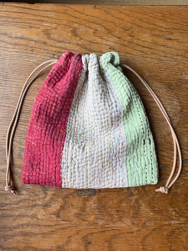 Vintage Kantha 巾着ポーチ 015