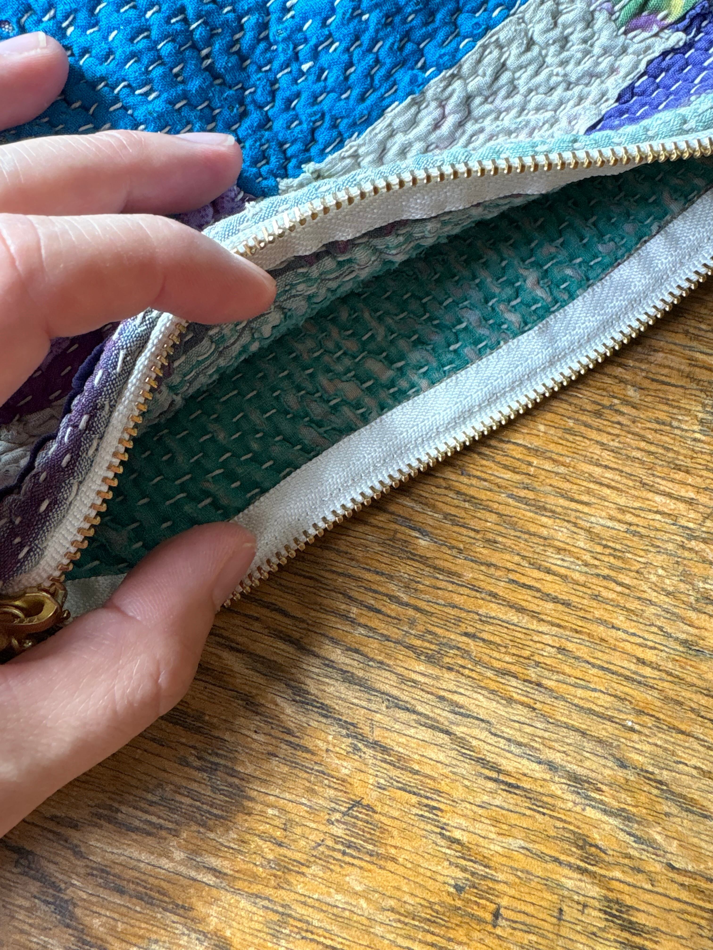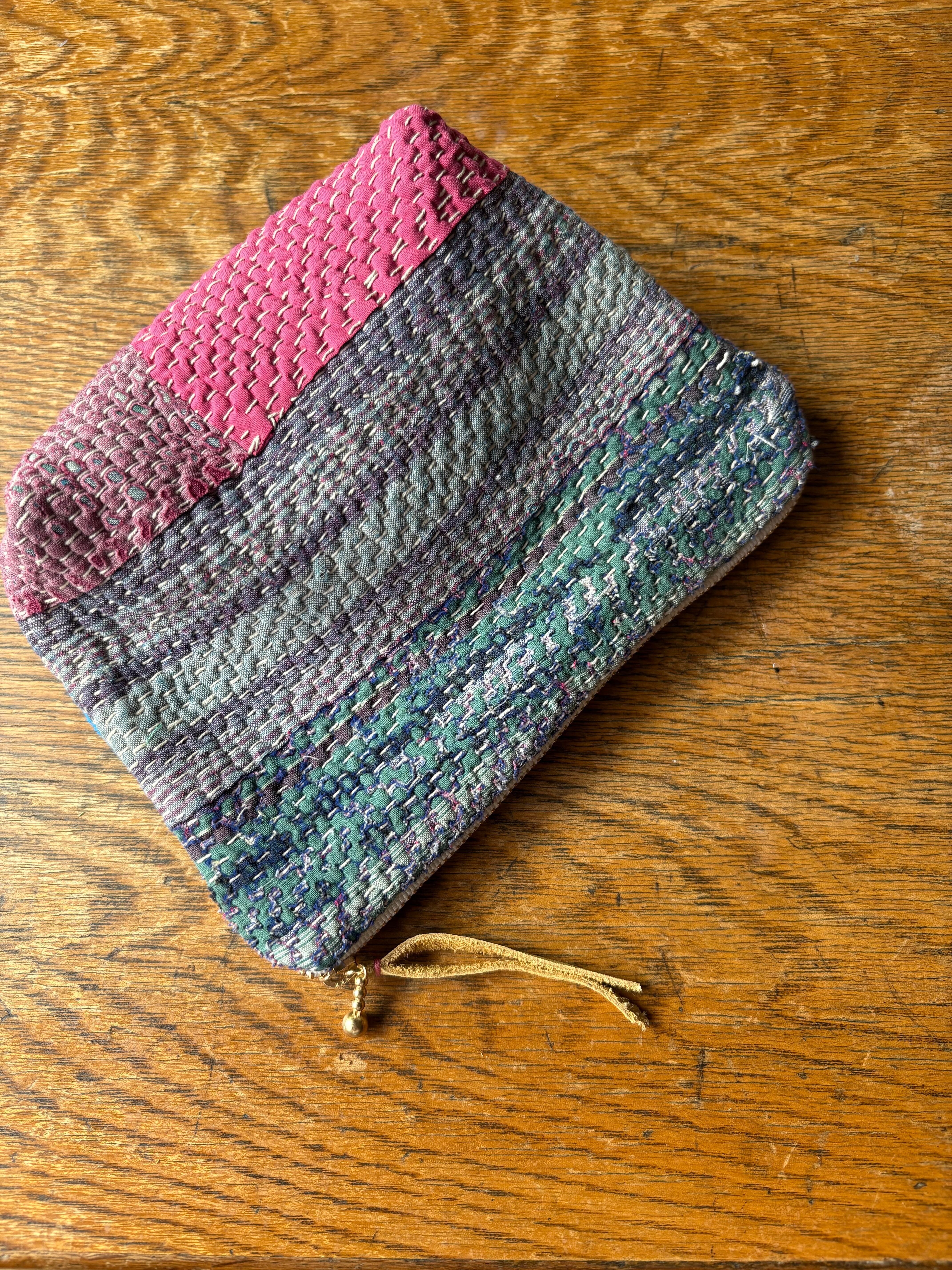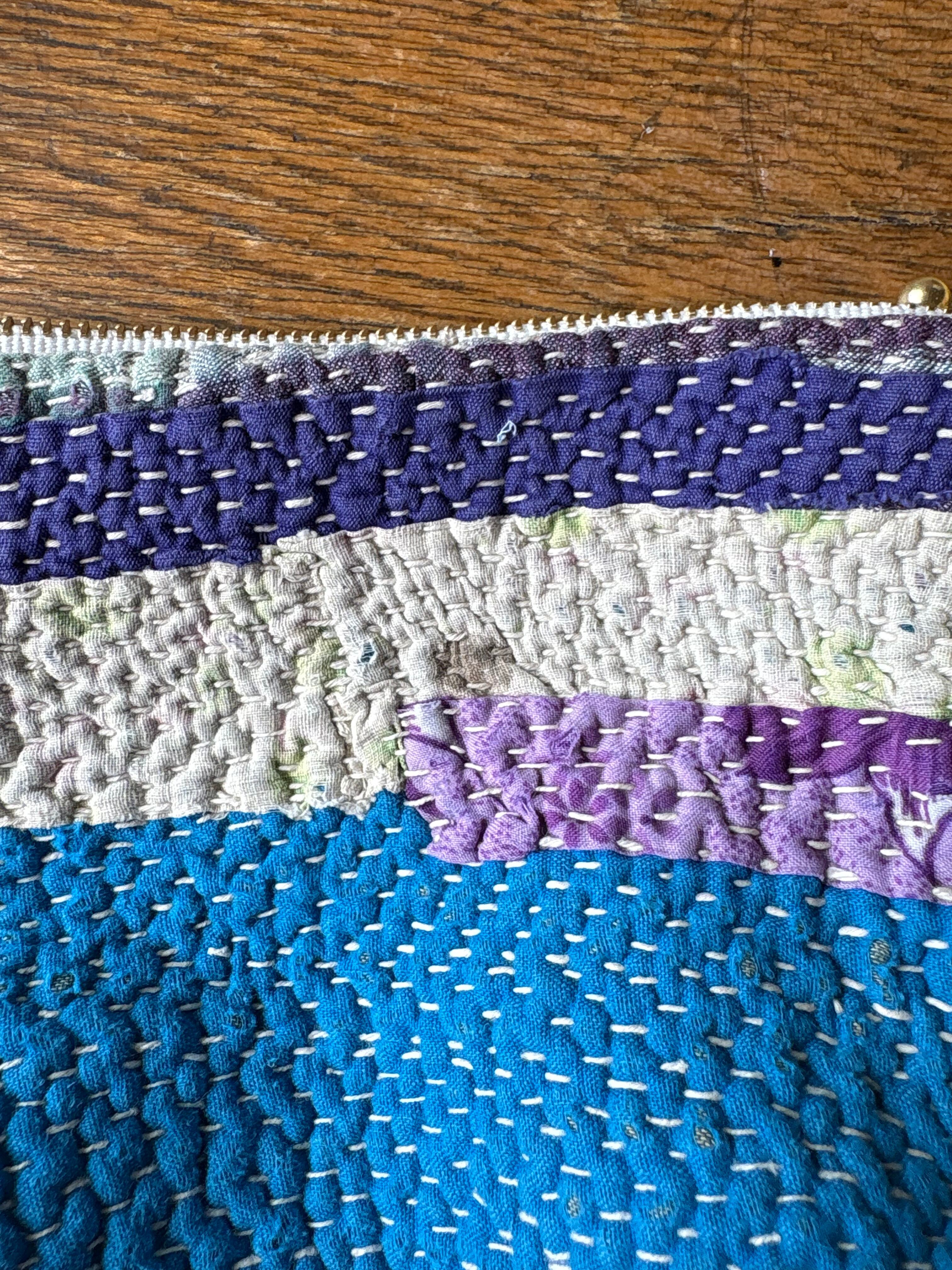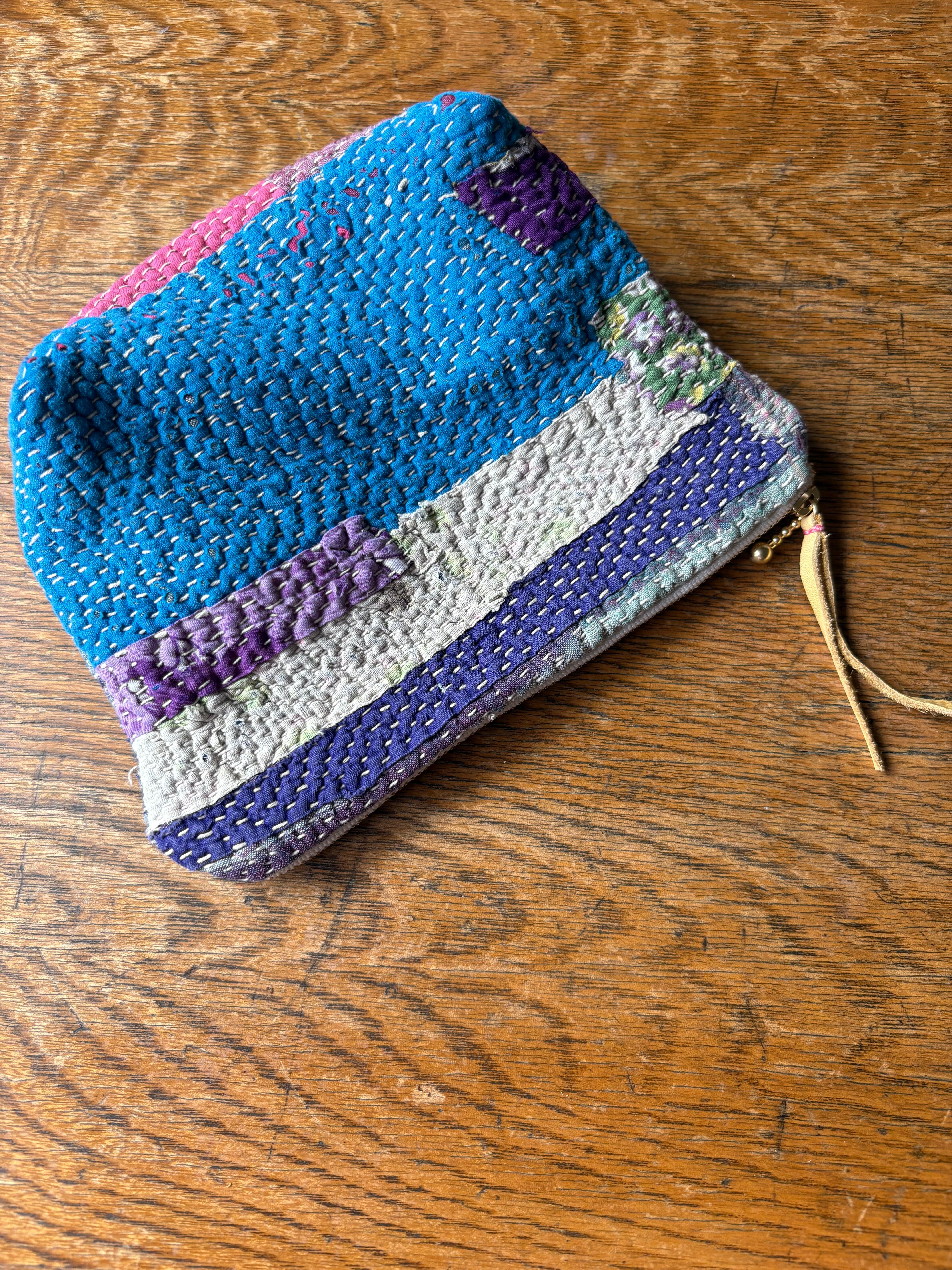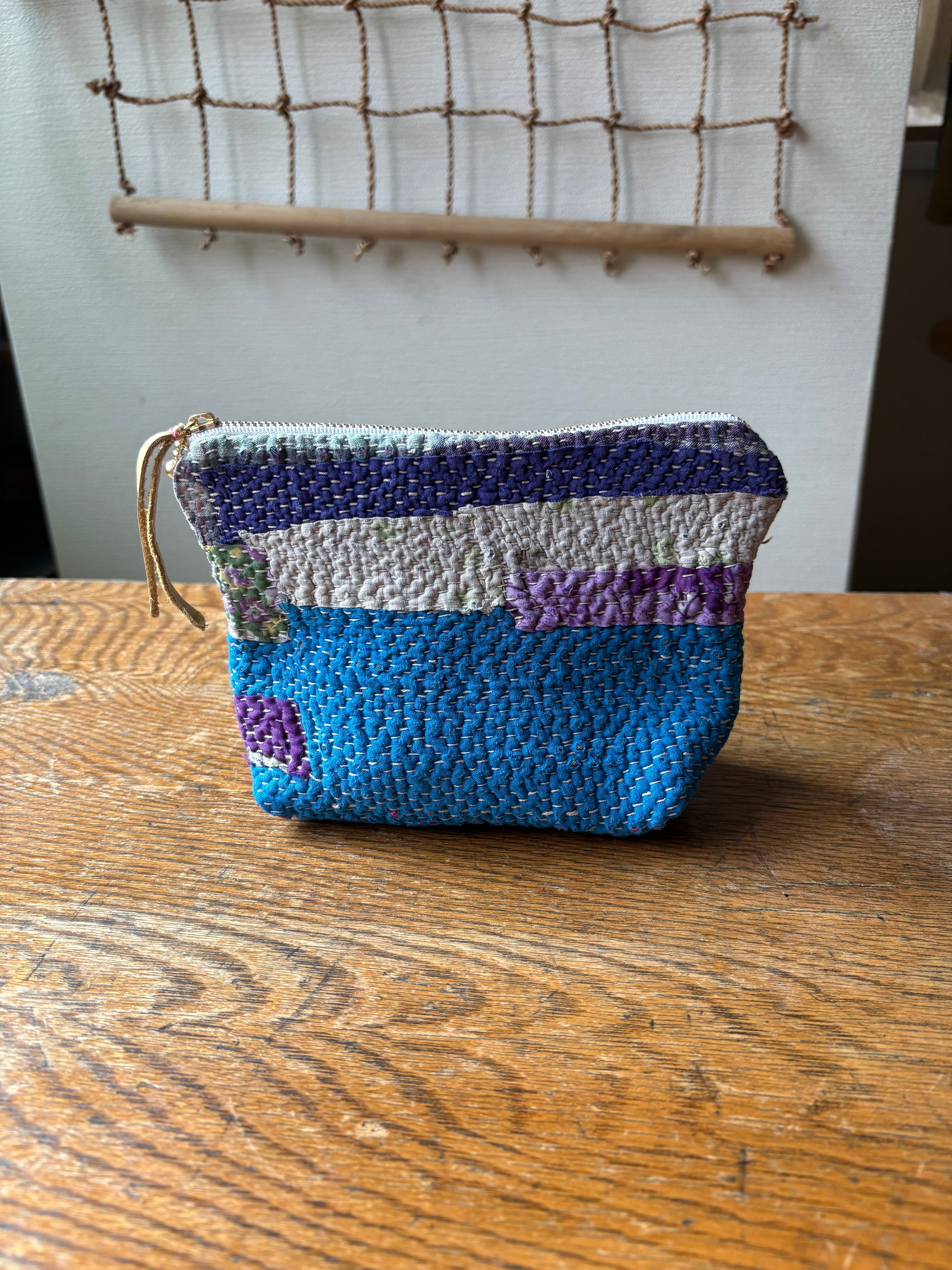 Vintage Kantha マチ付きポーチ(大) blue×pink