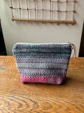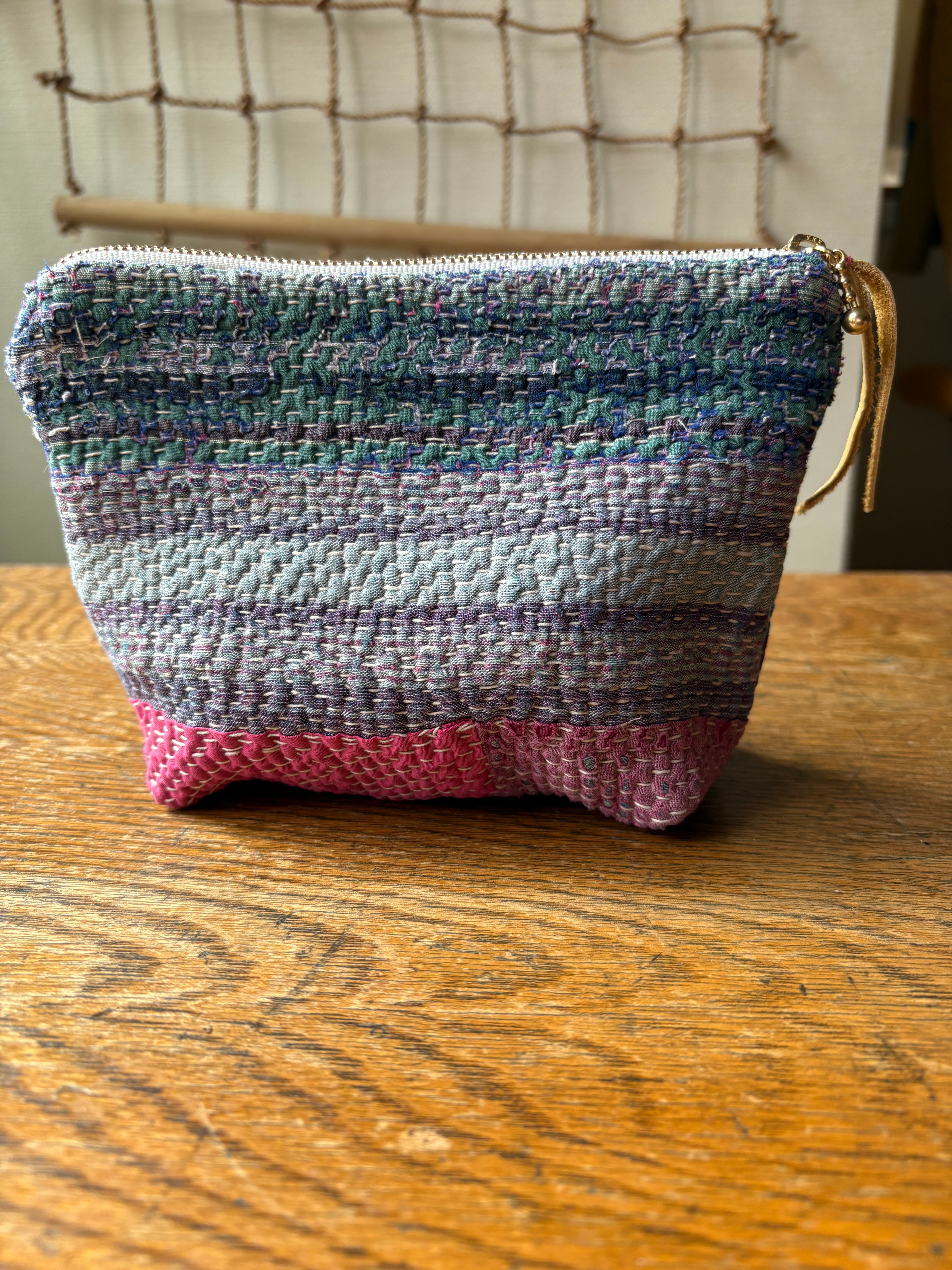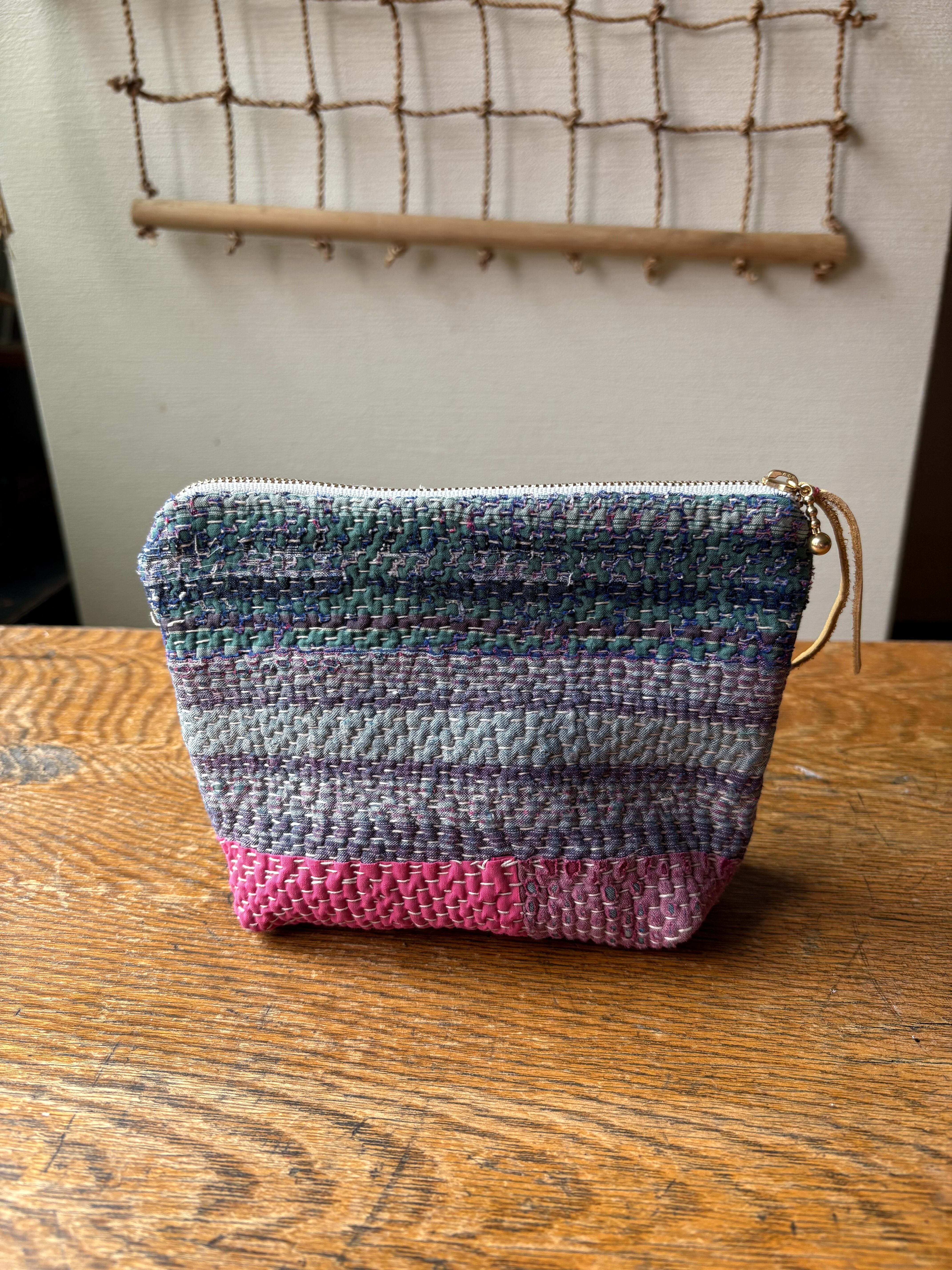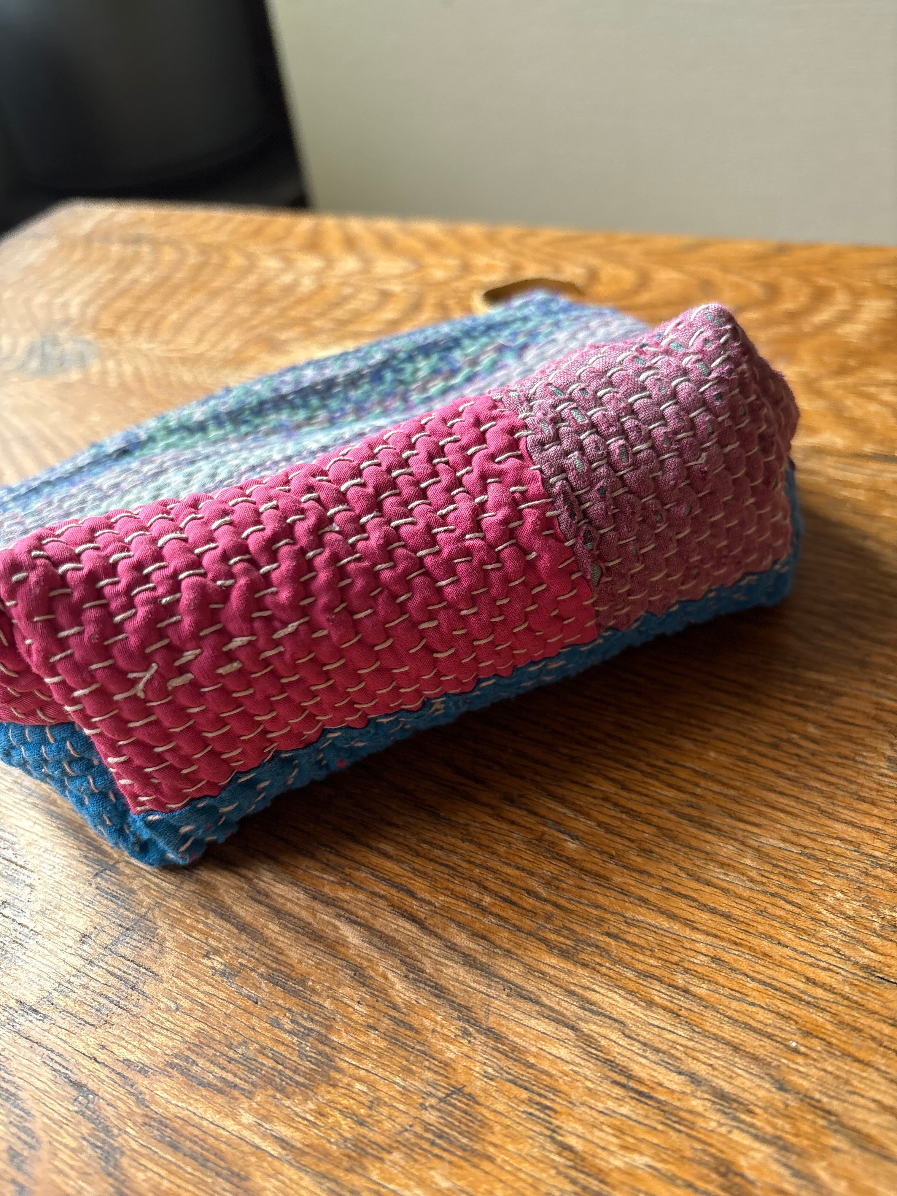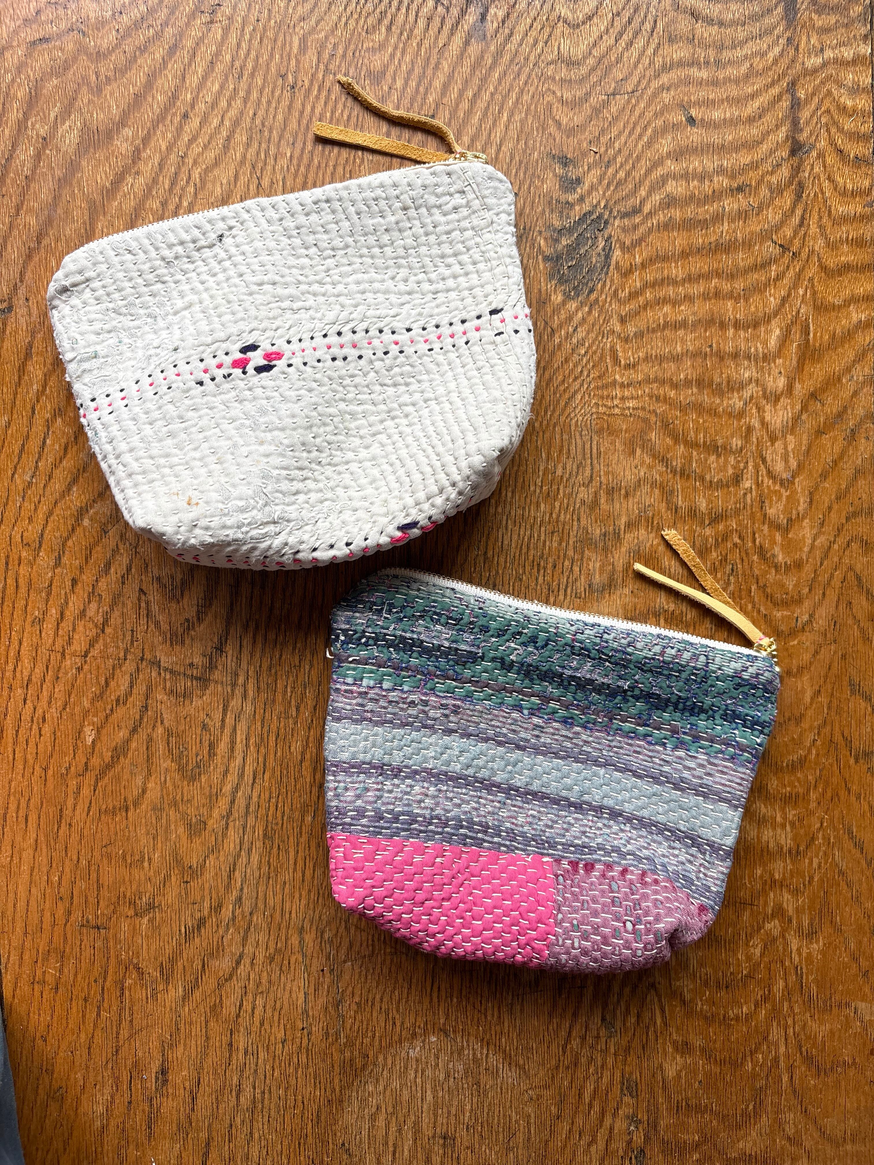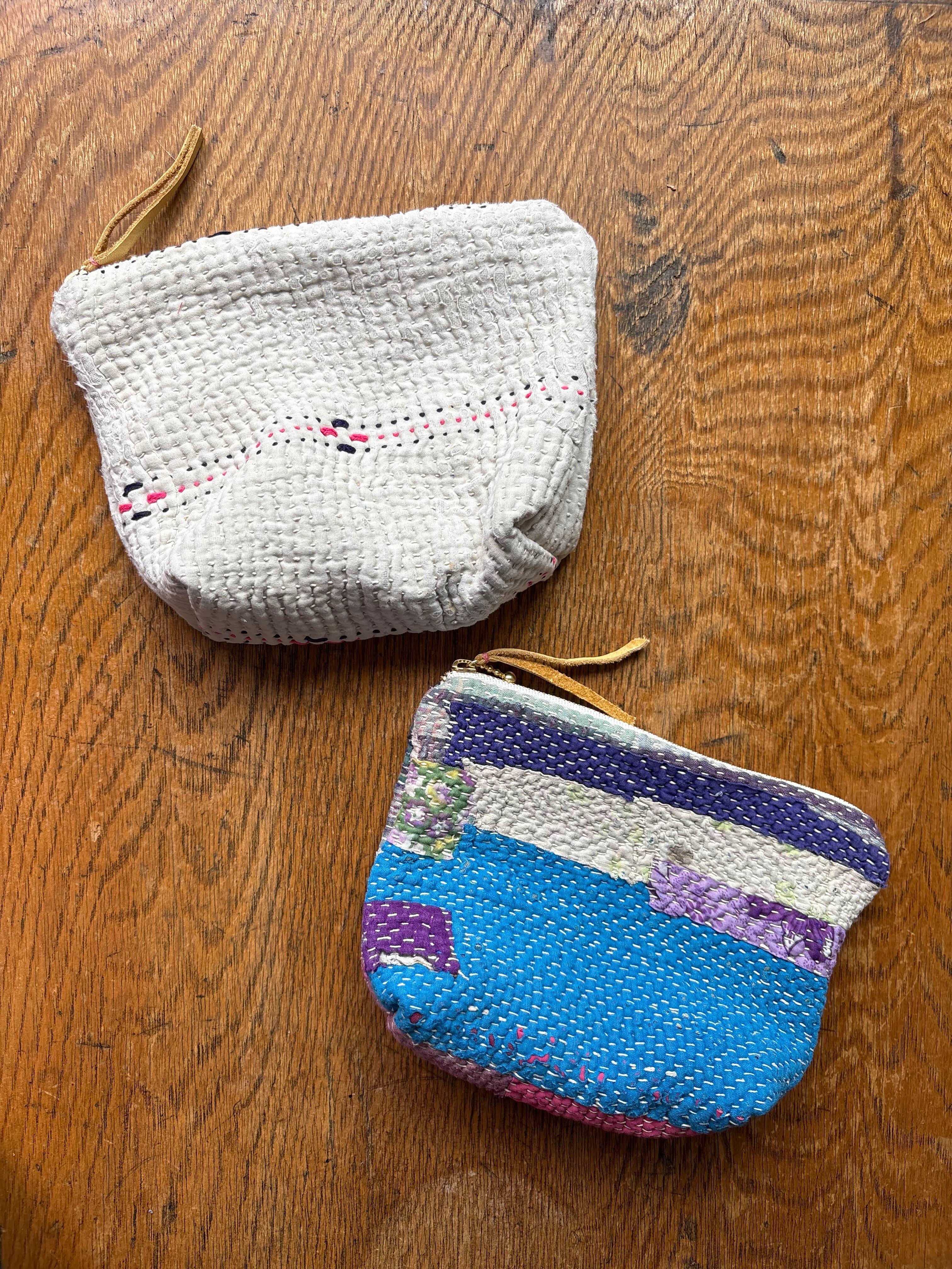 Vintage Kantha マチ付きポーチ(大) blue×pink