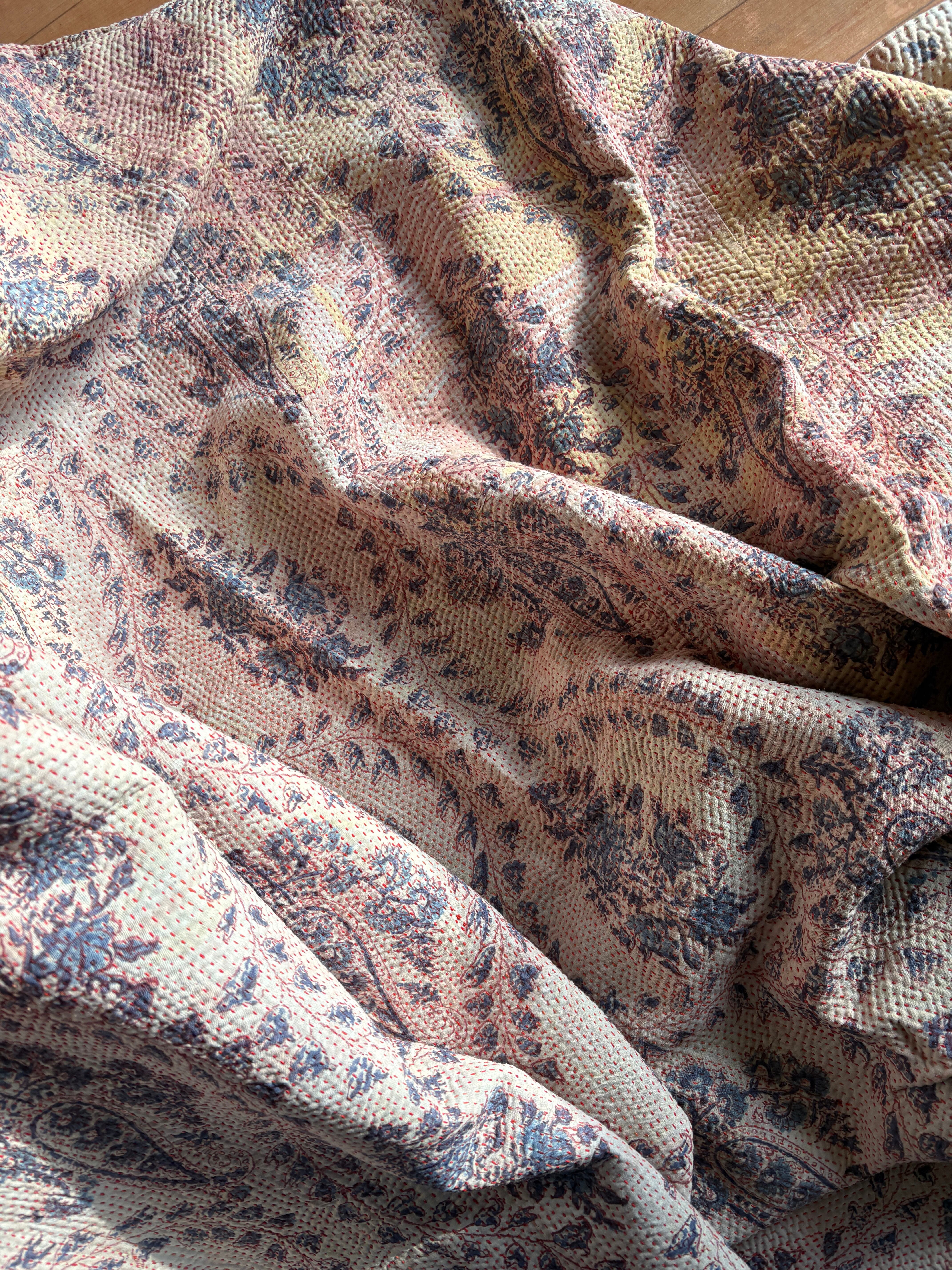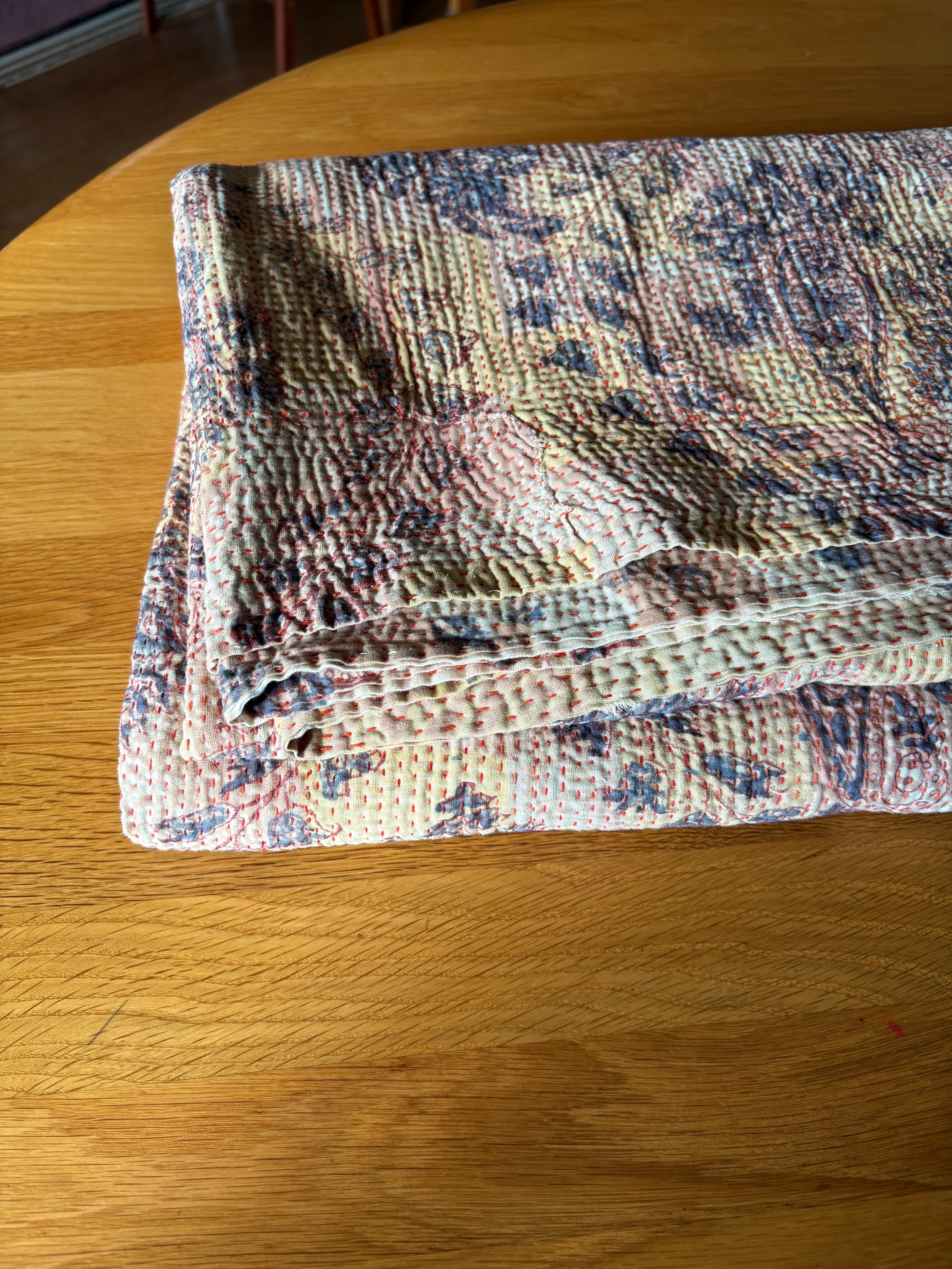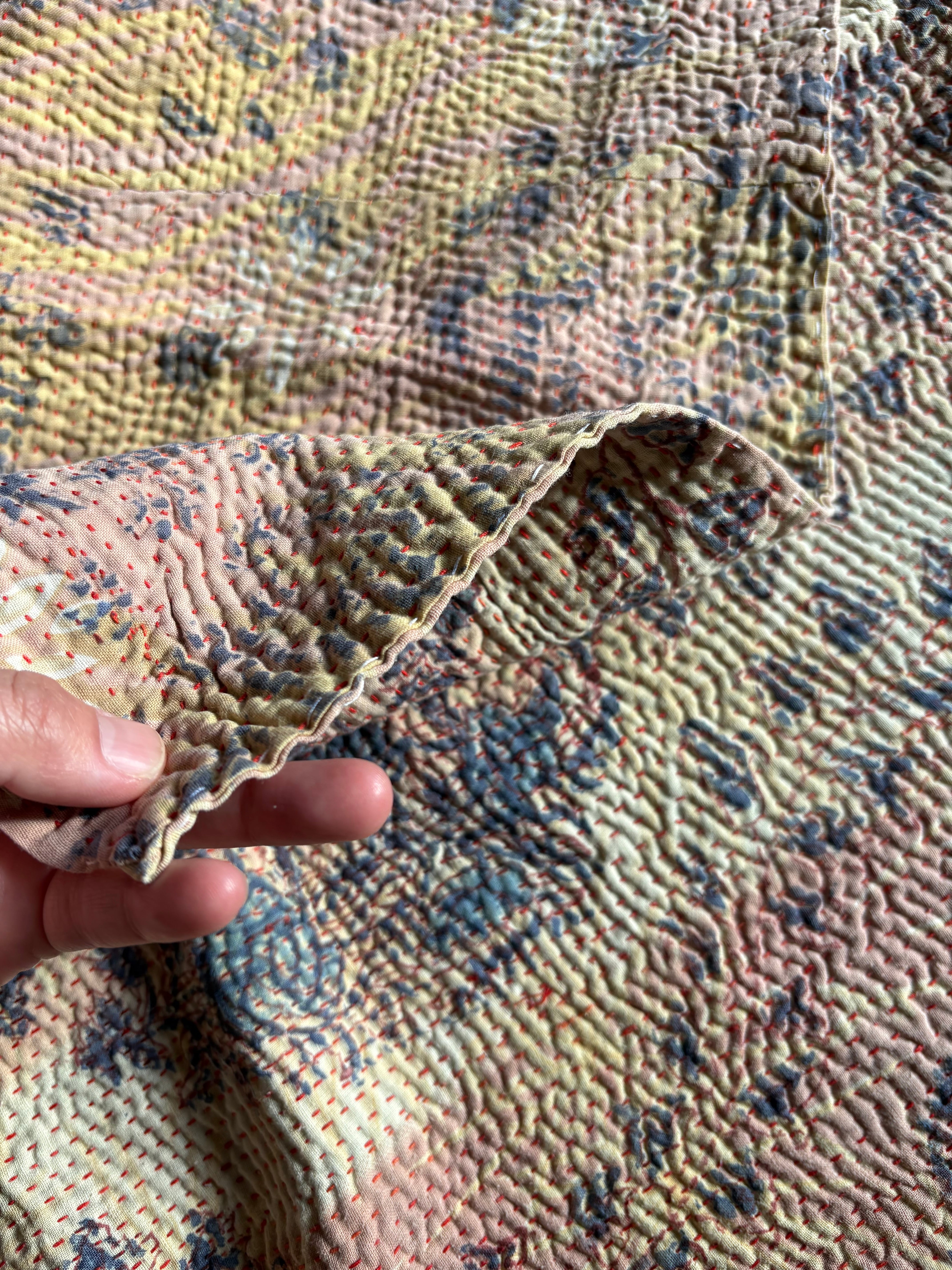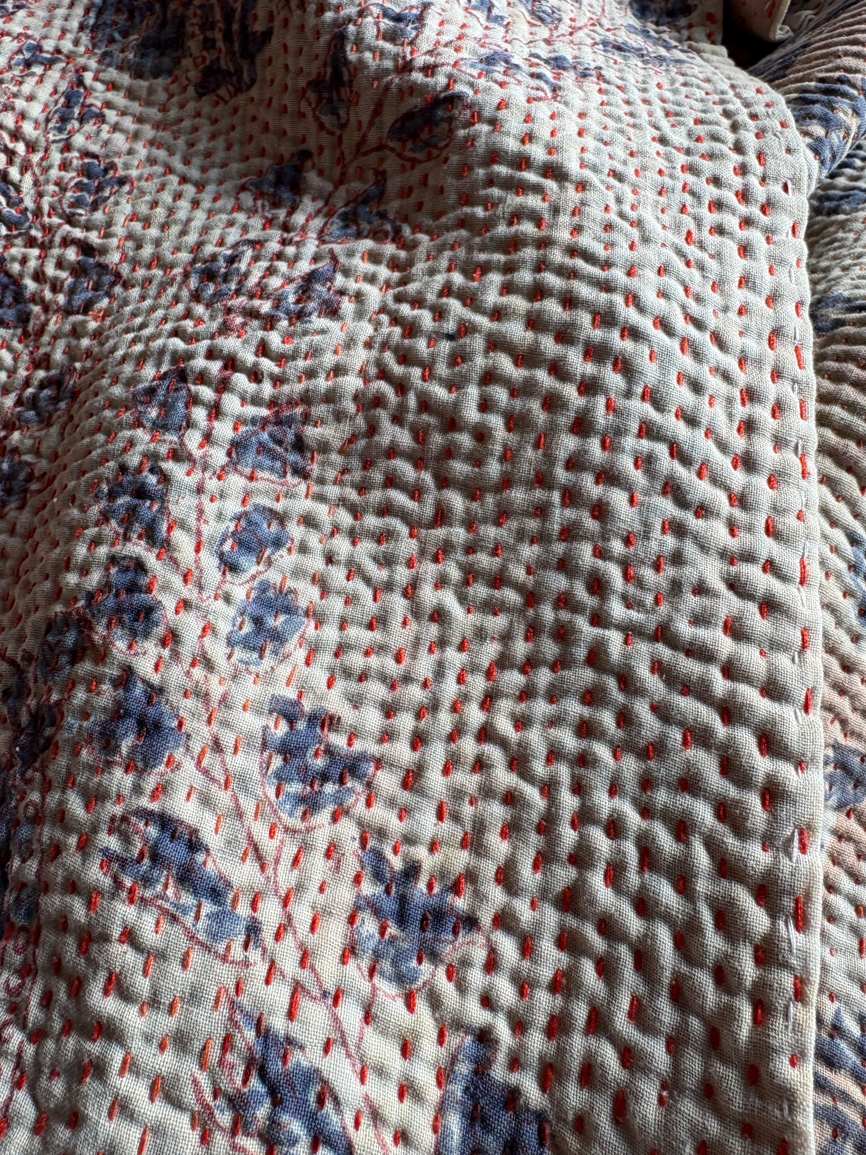 Hand block print Kantha Quilt ♡073