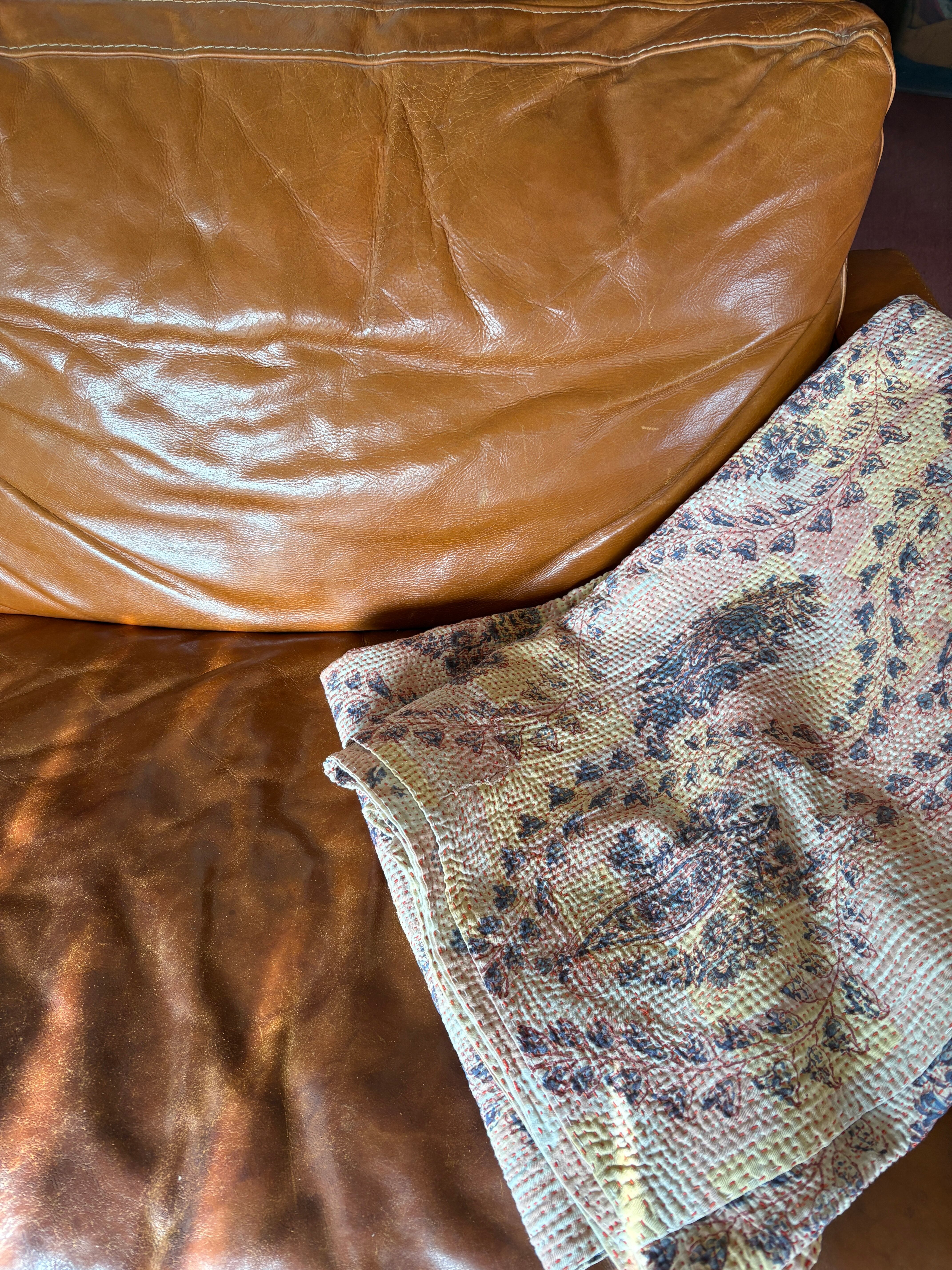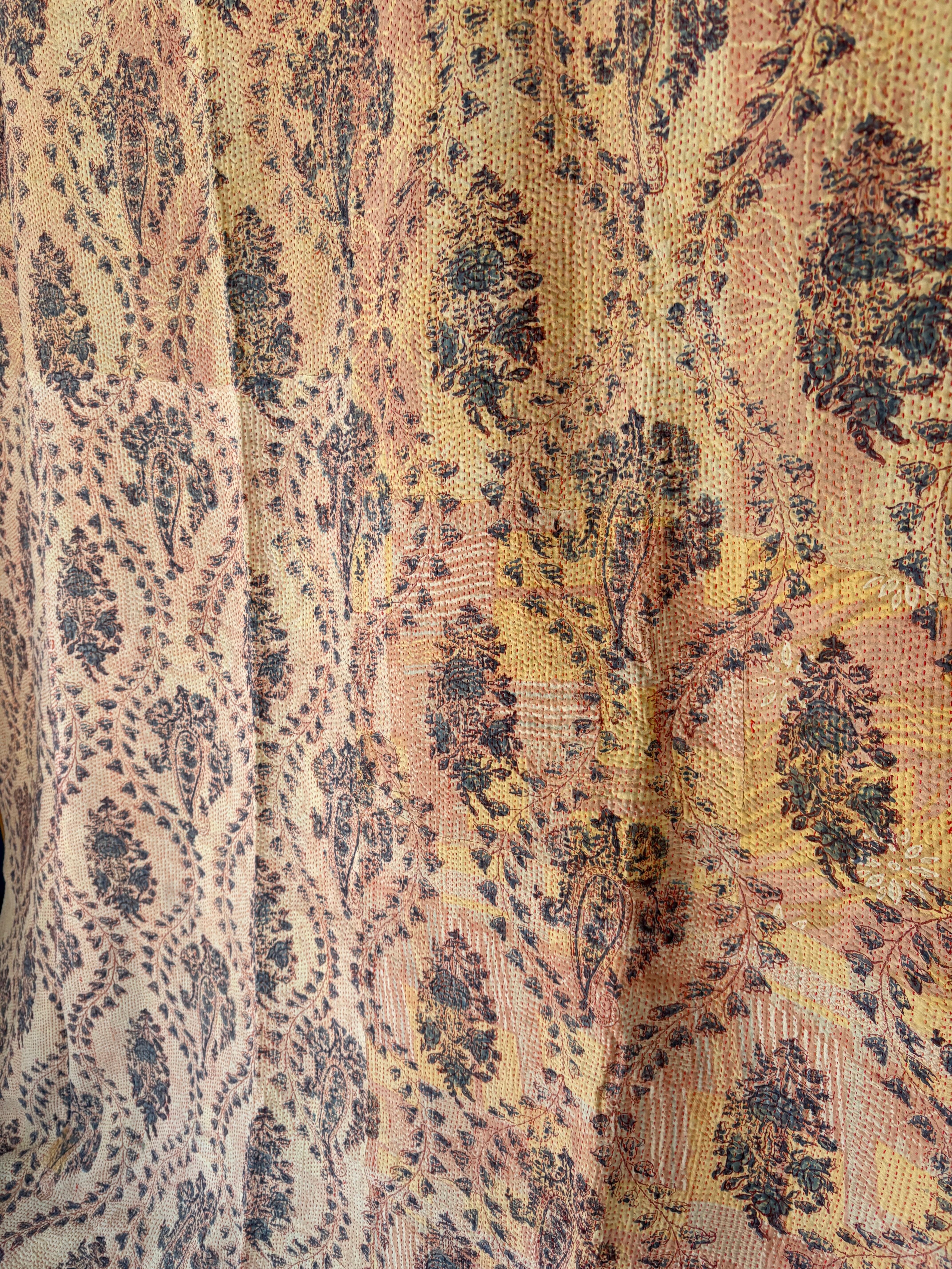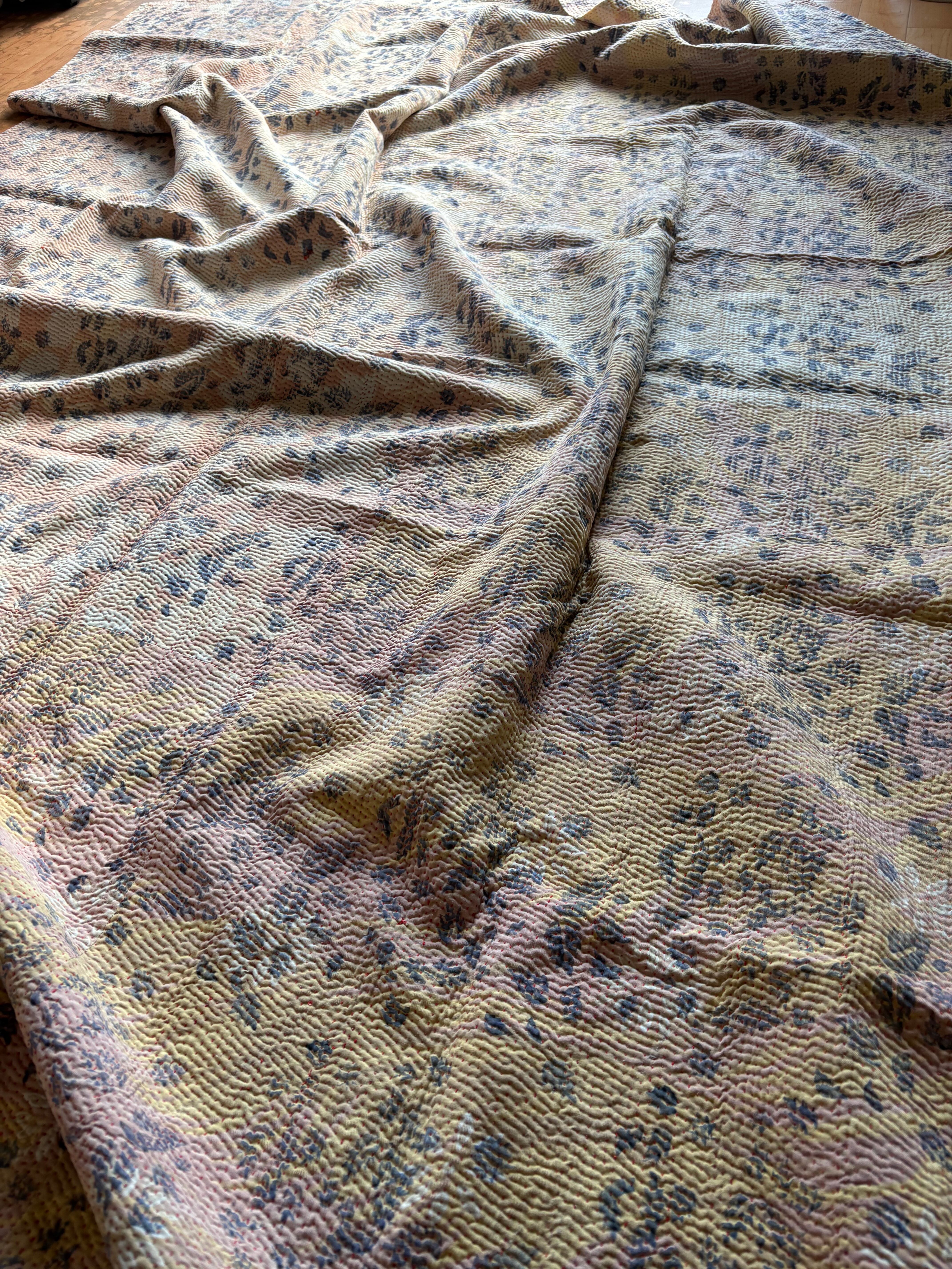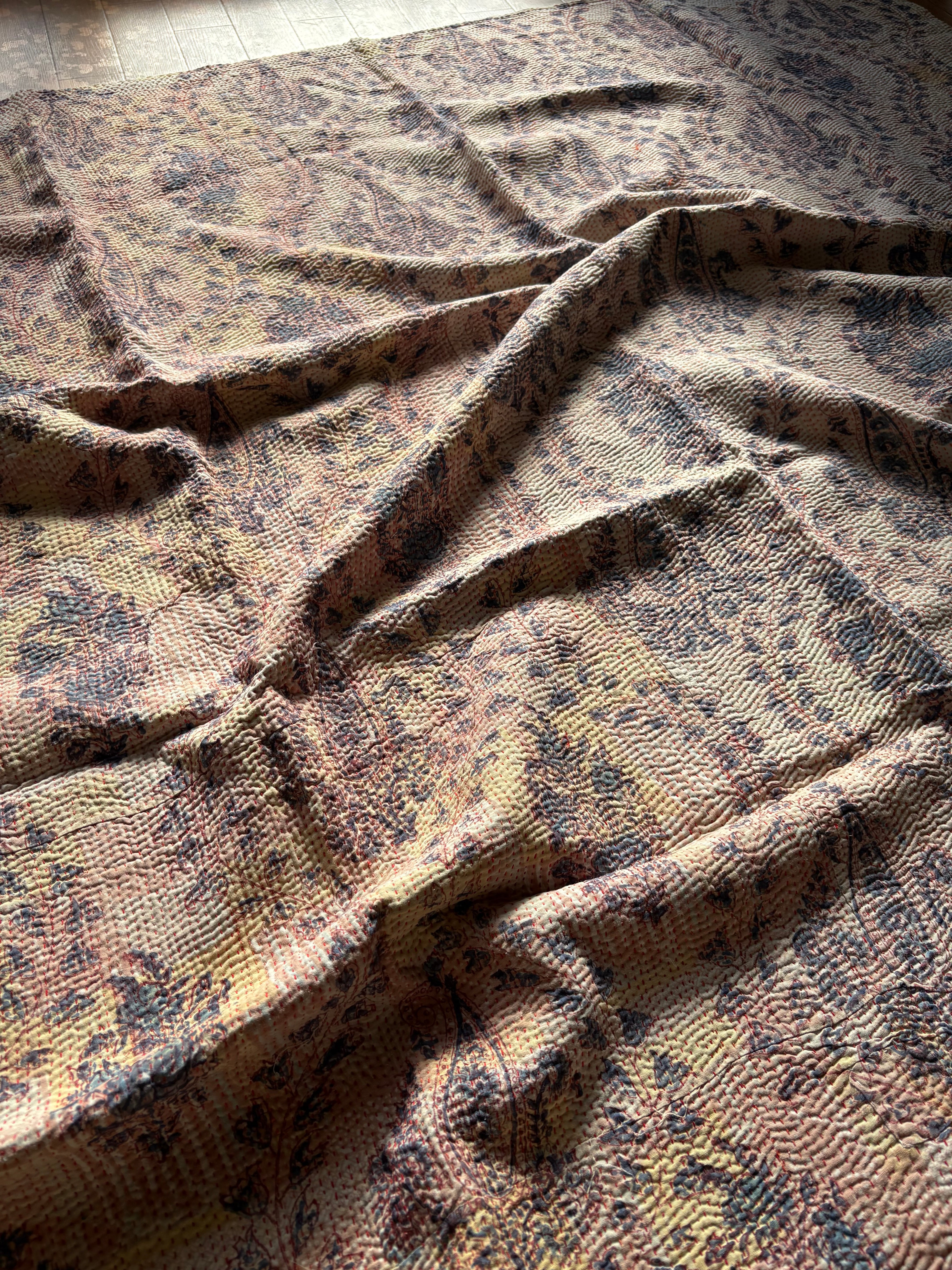 Hand block print Kantha Quilt ♡073