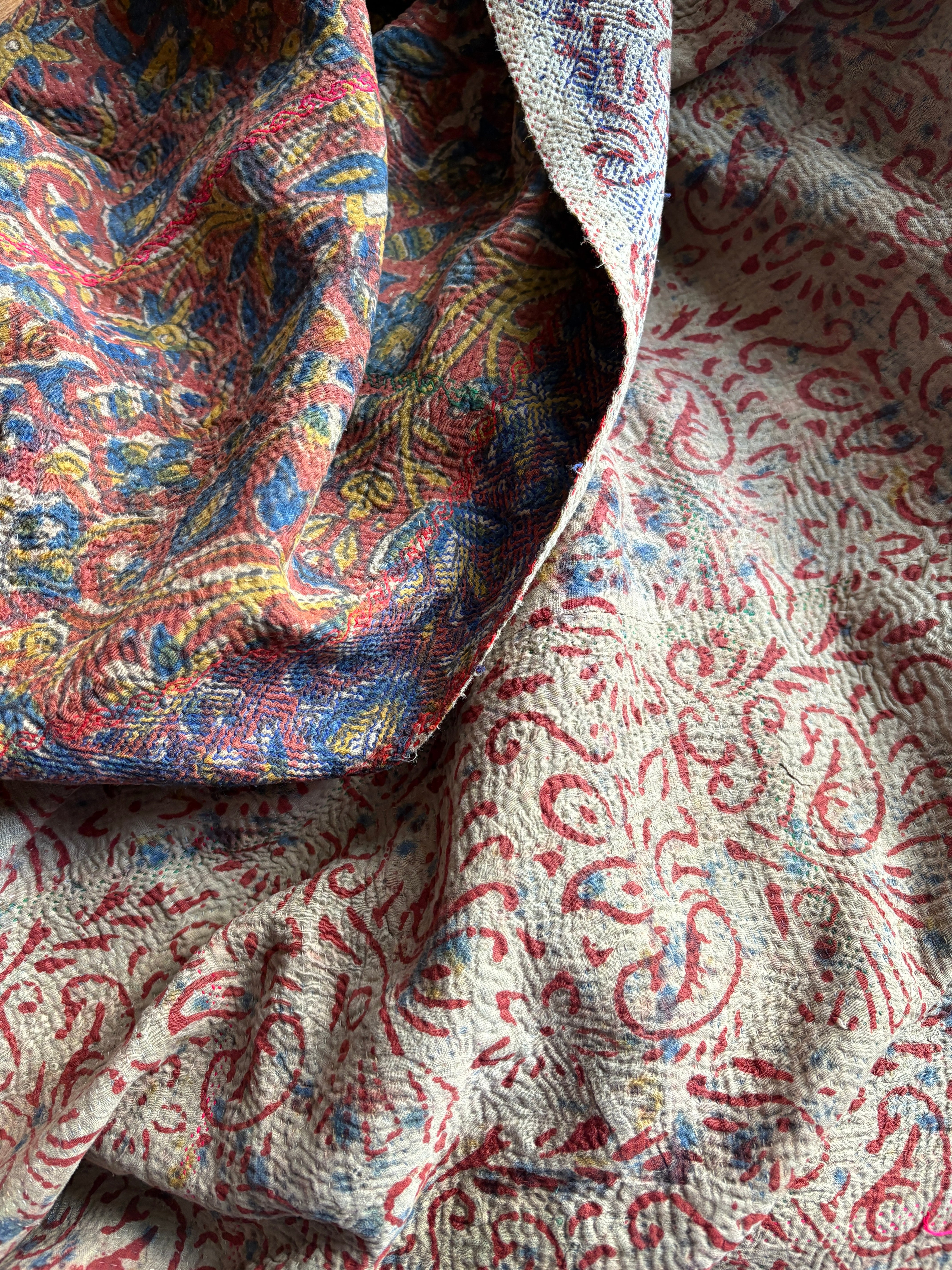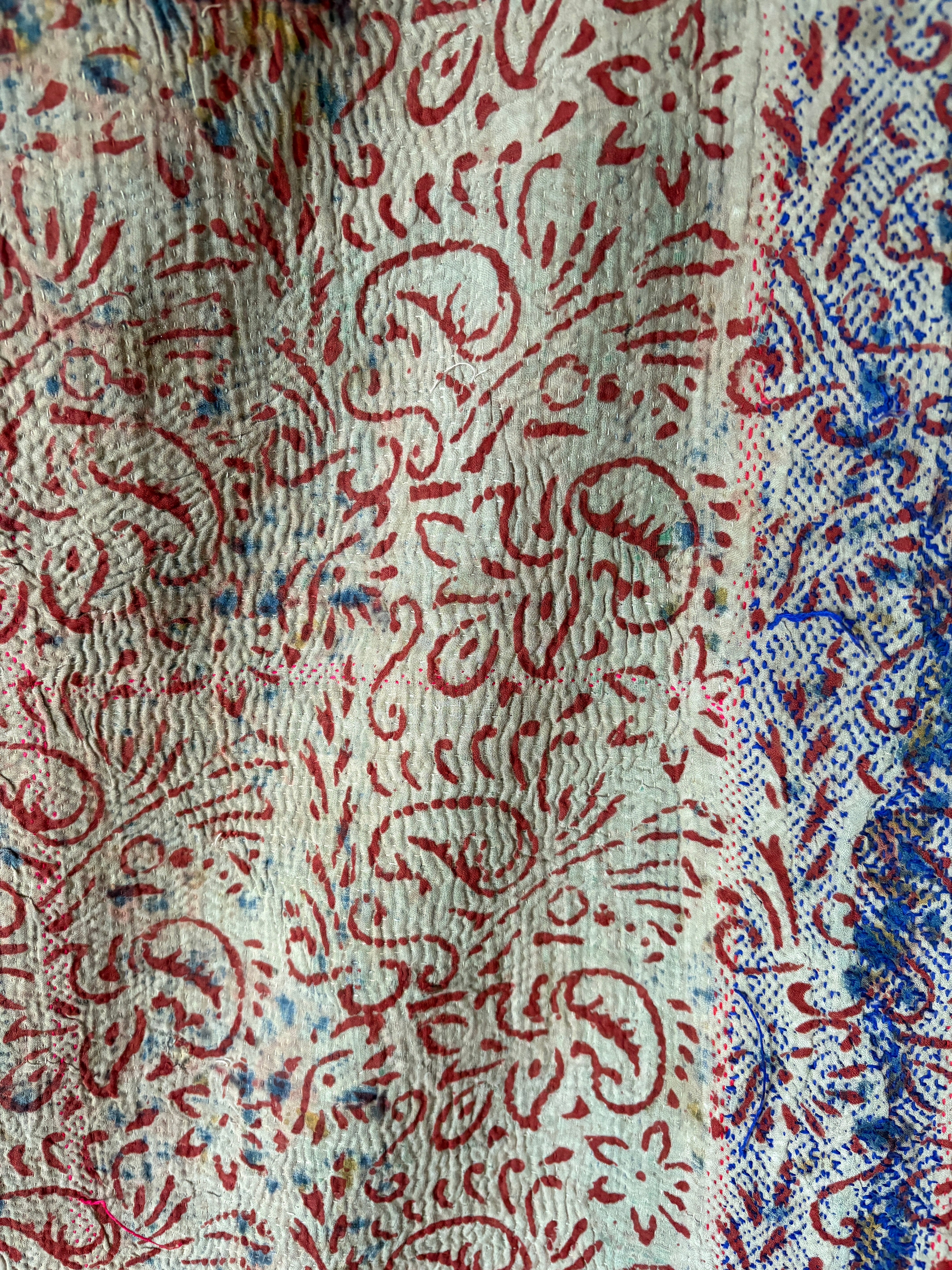 Hand block print Kantha Quilt ♡074