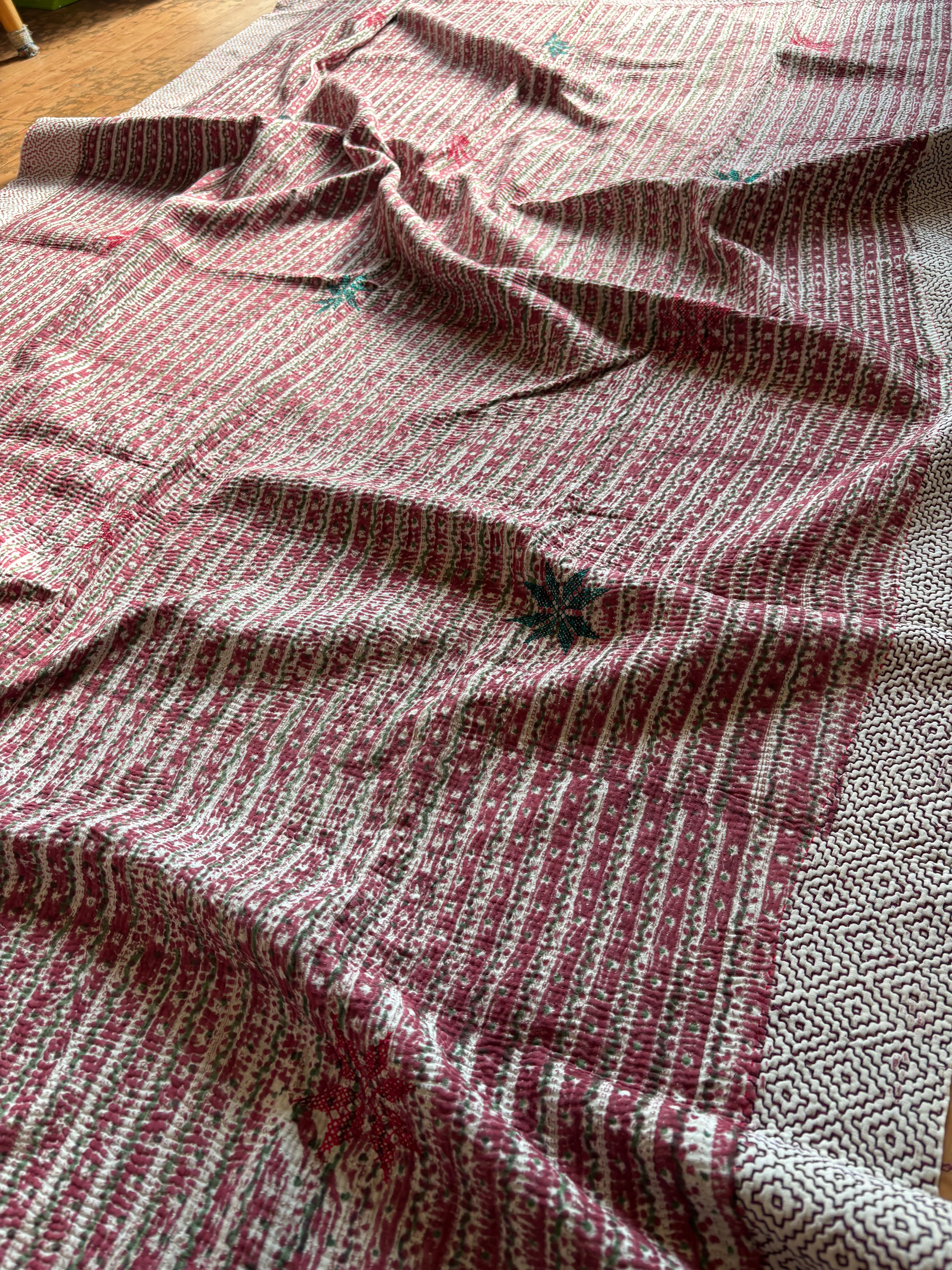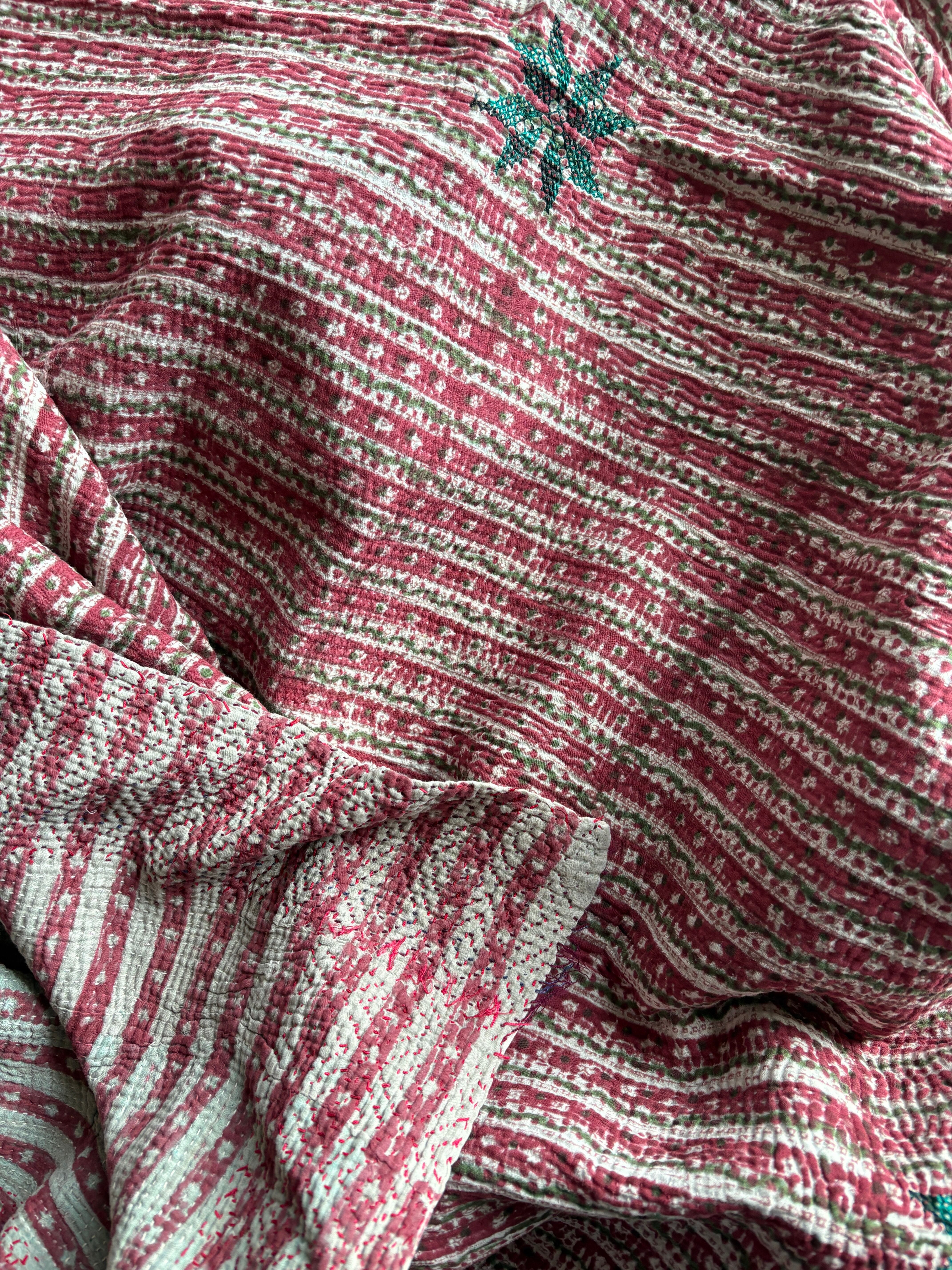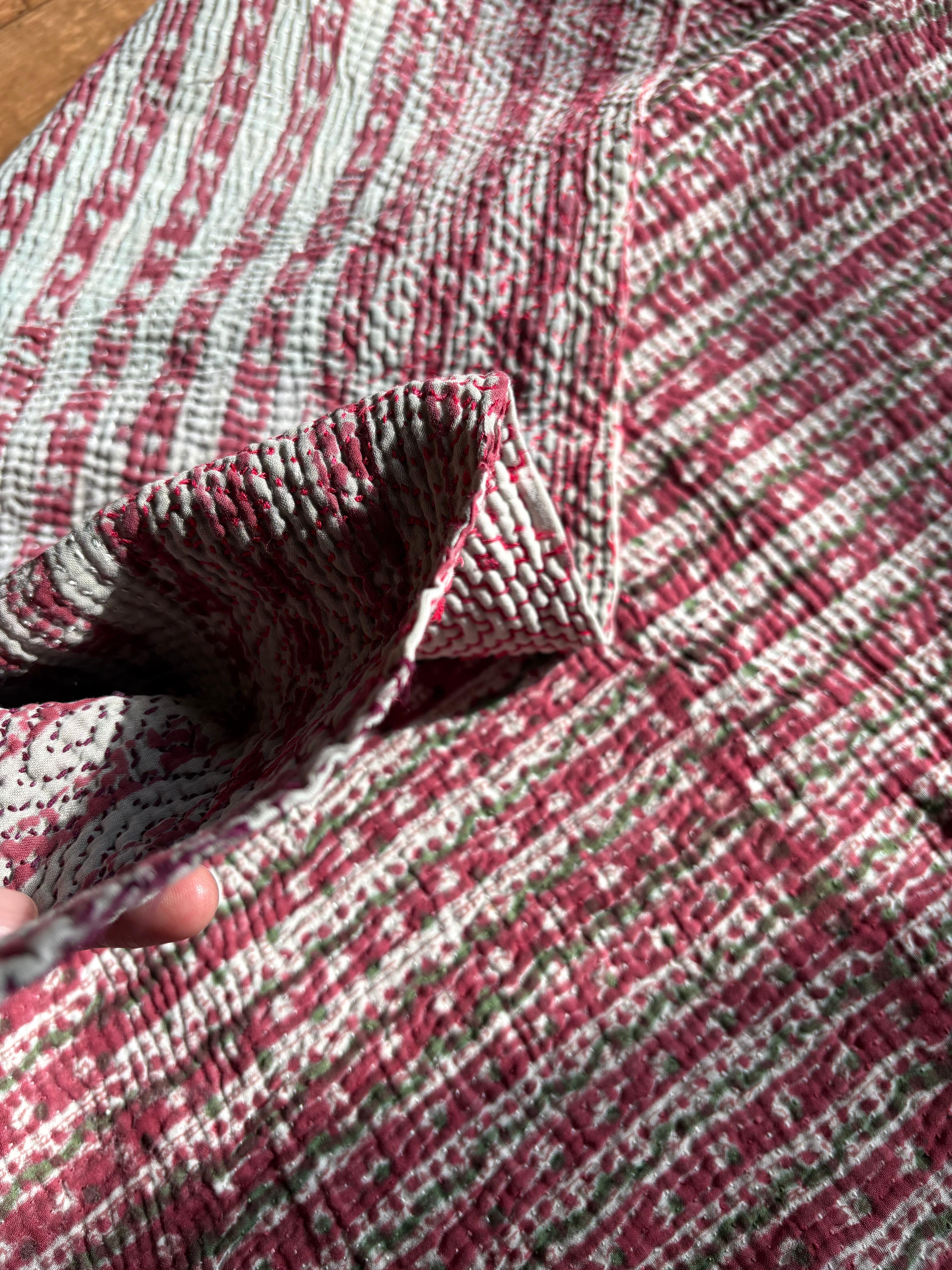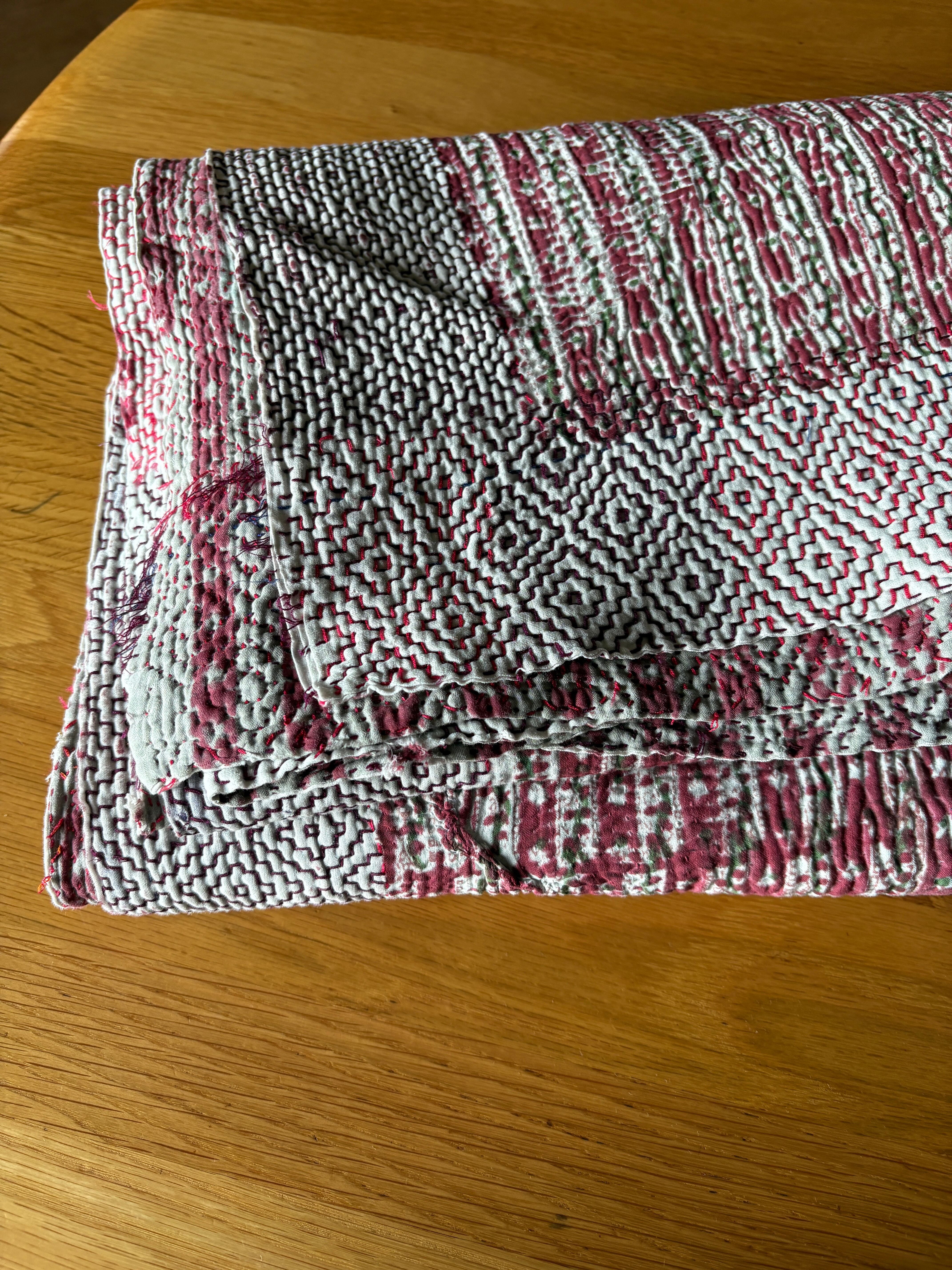 Hand block print Kantha Quilt ♡075
