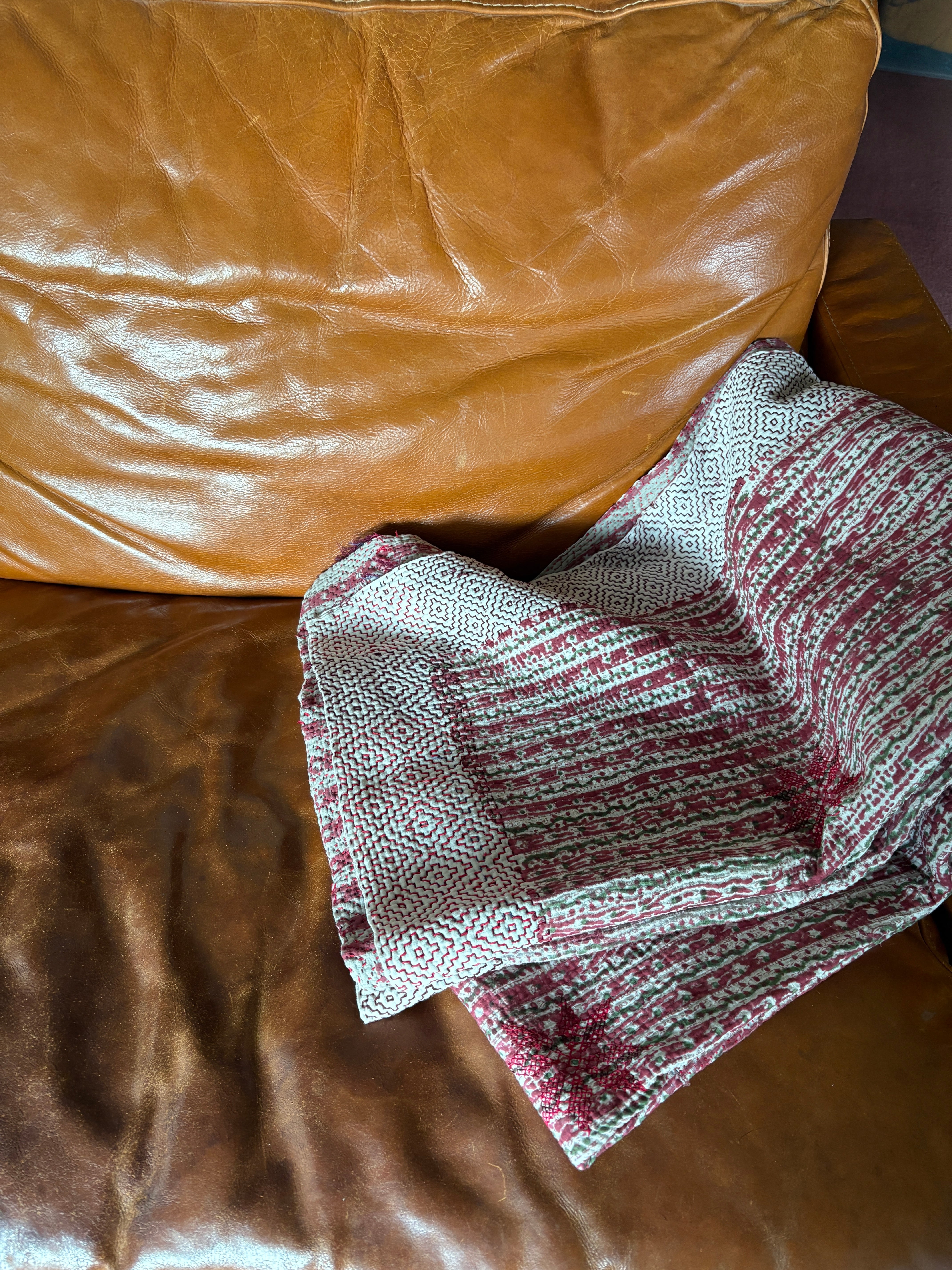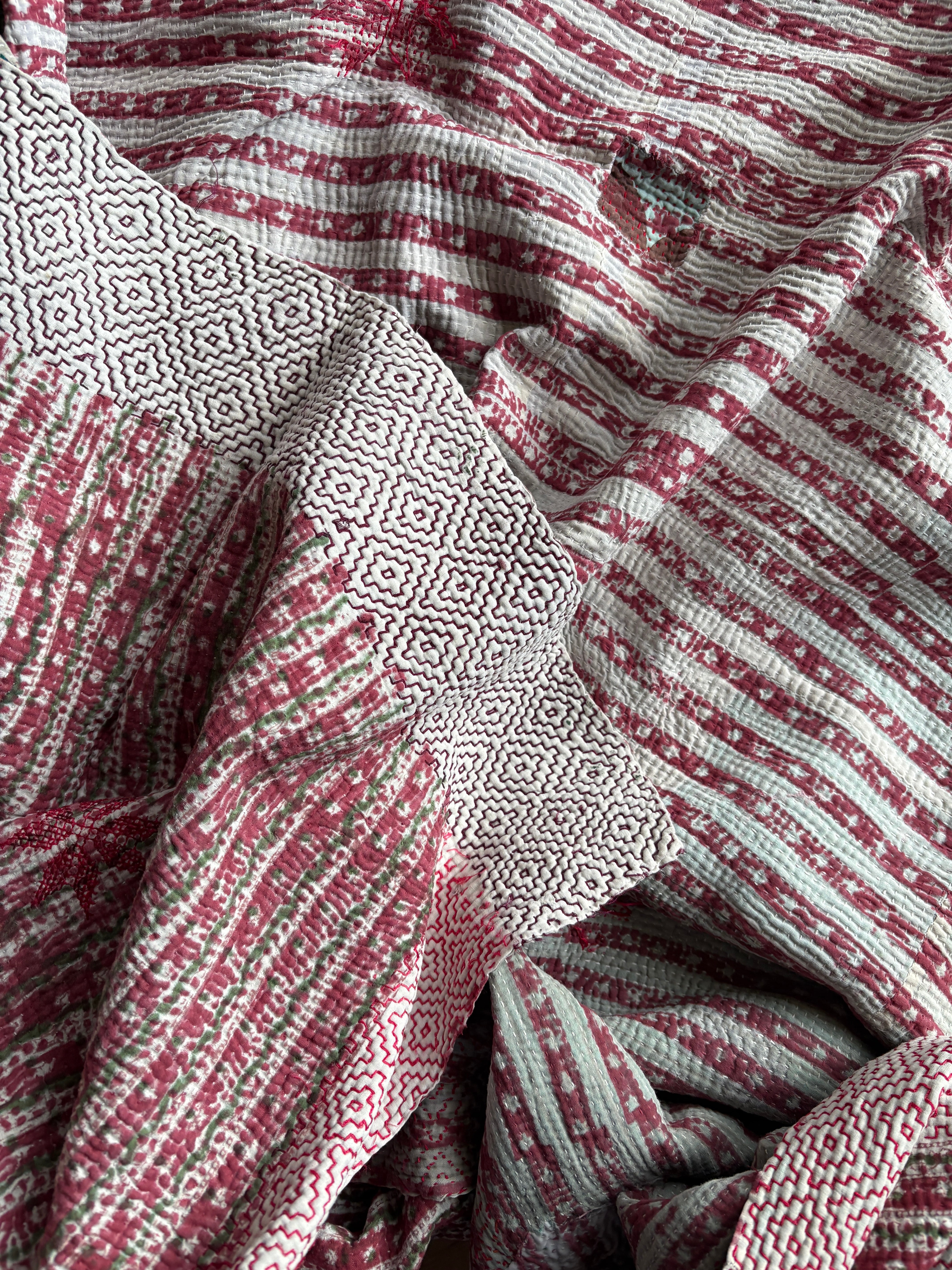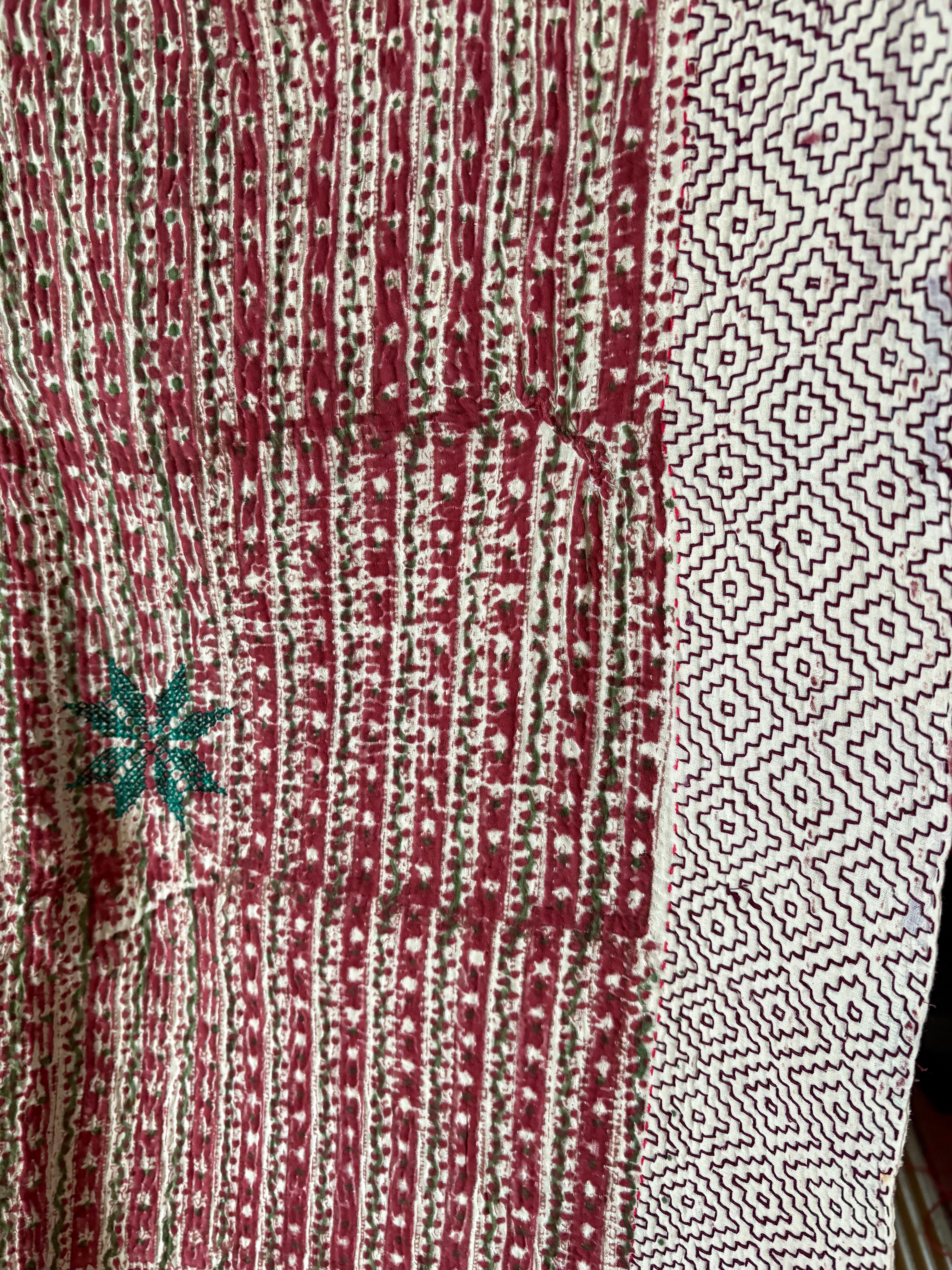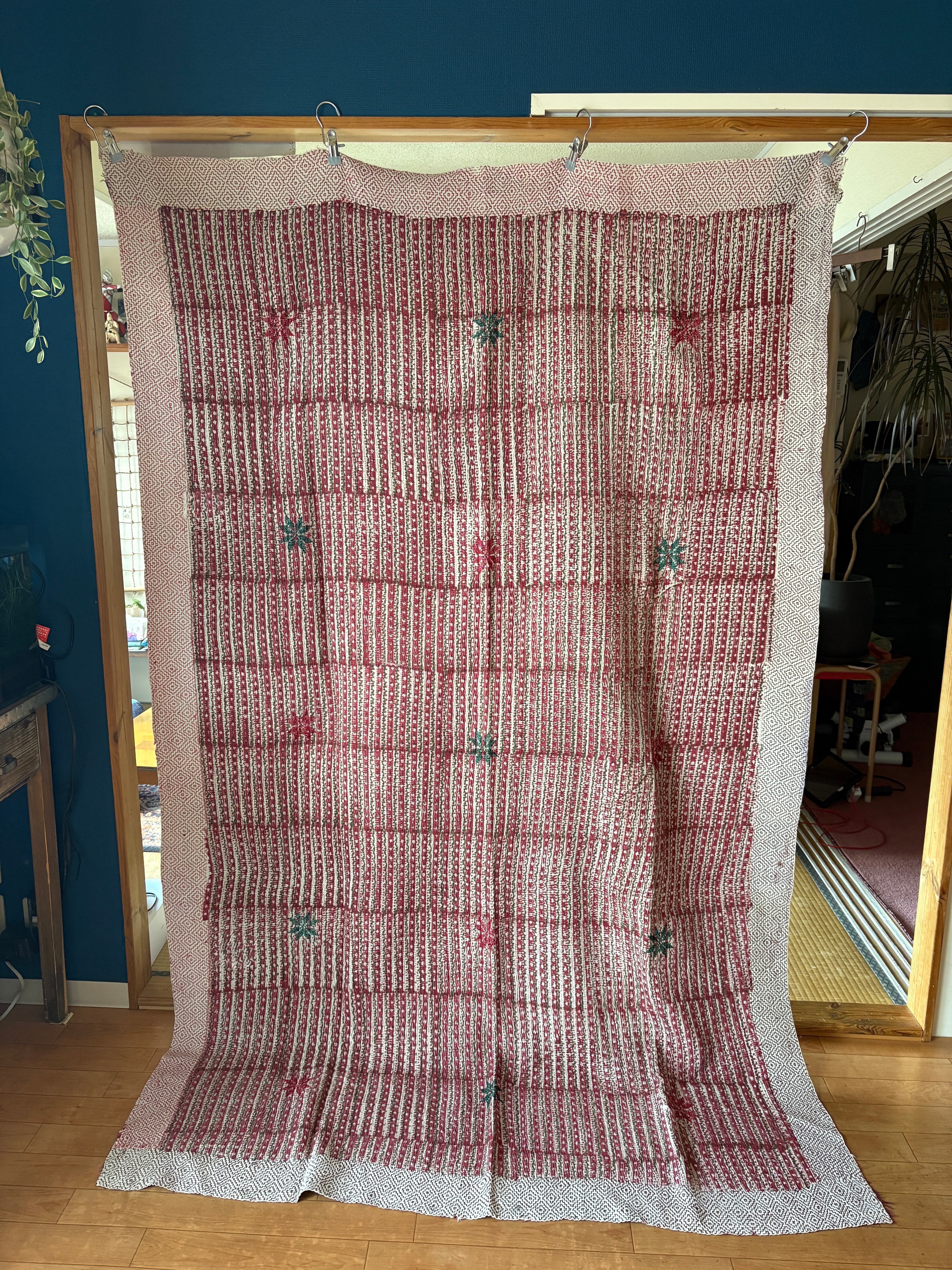 Hand block print Kantha Quilt ♡075