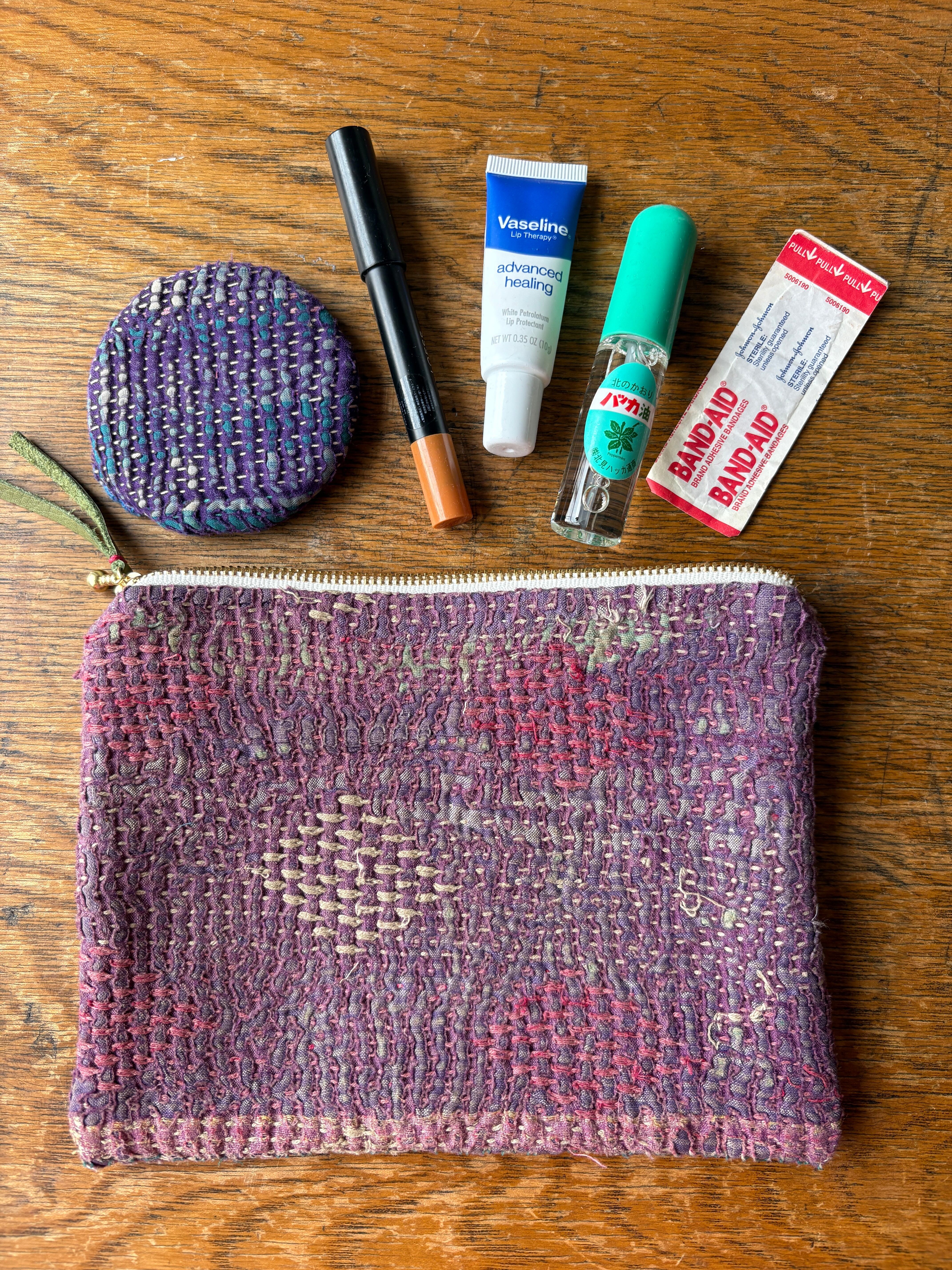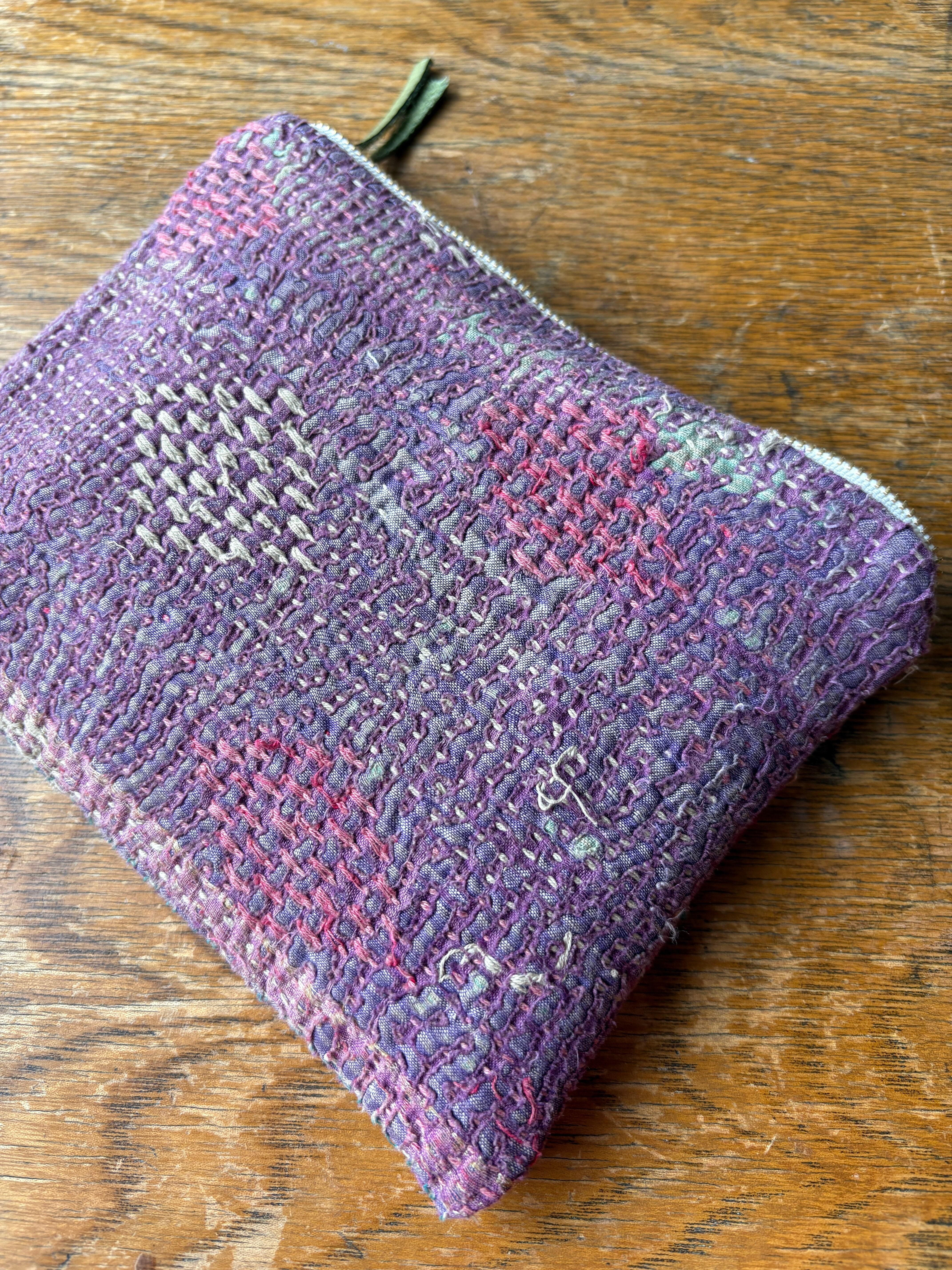 Vintage Kantha フラットポーチ20cm 013