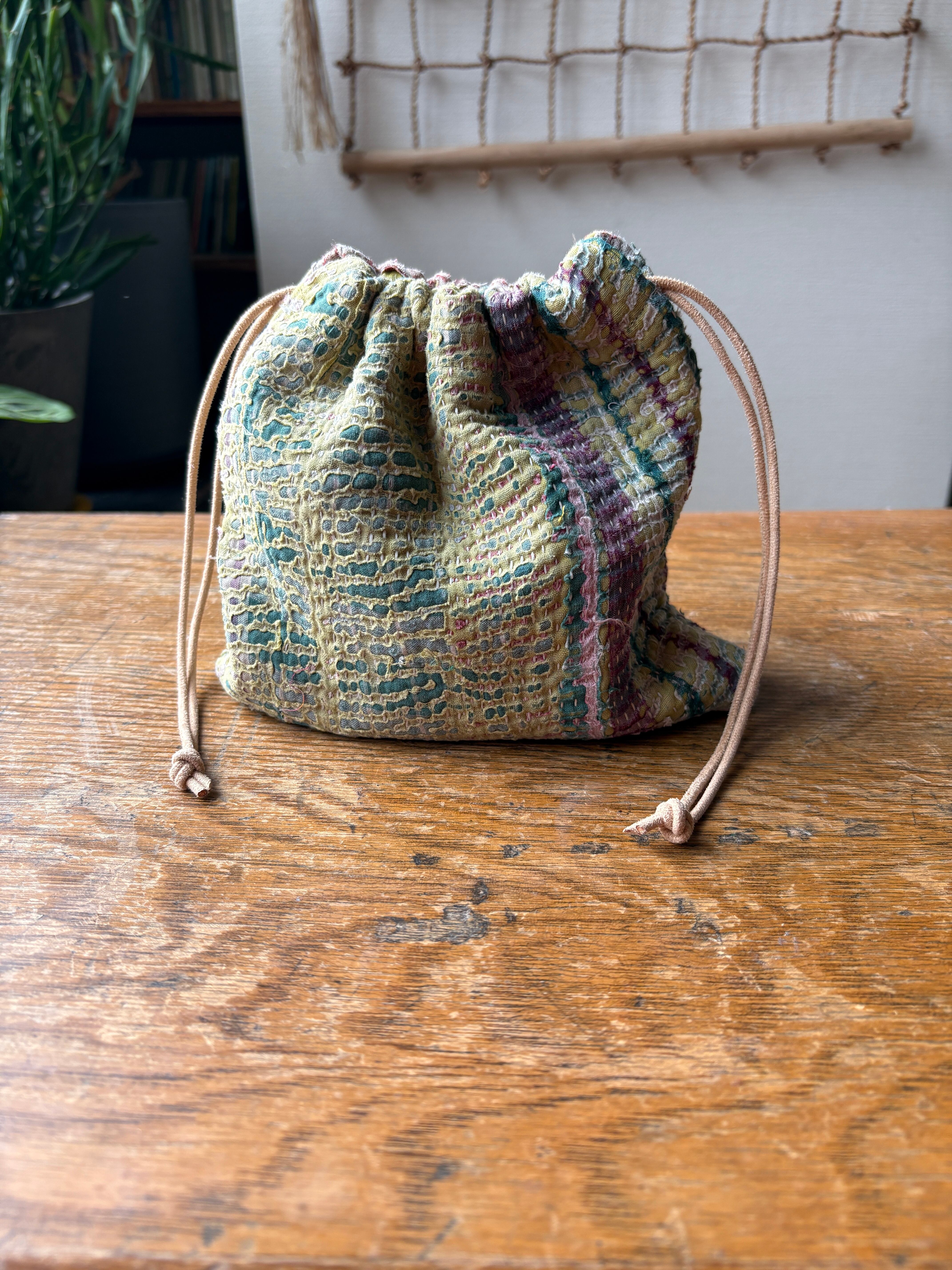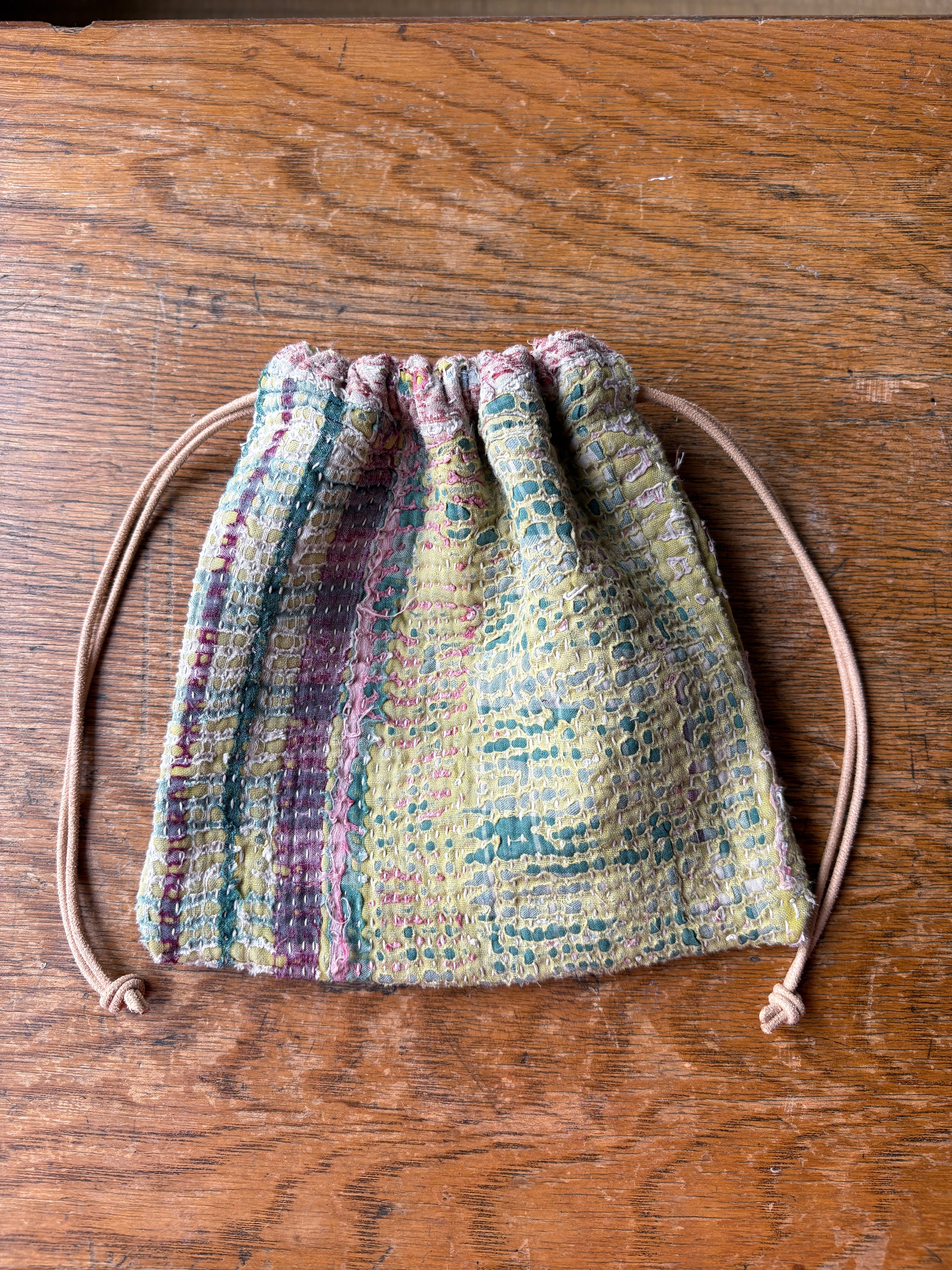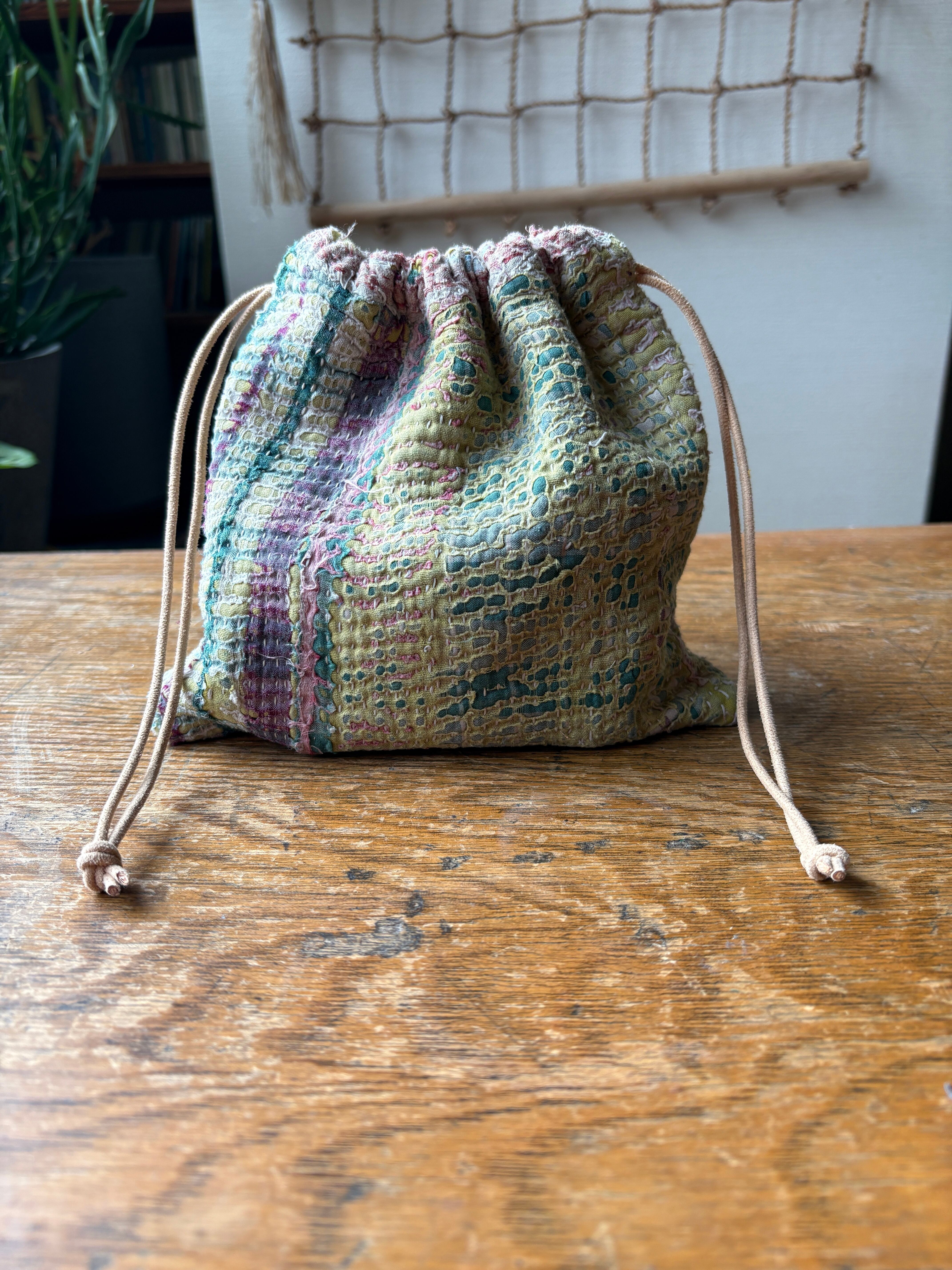 Vintage Kantha 巾着ポーチ 009