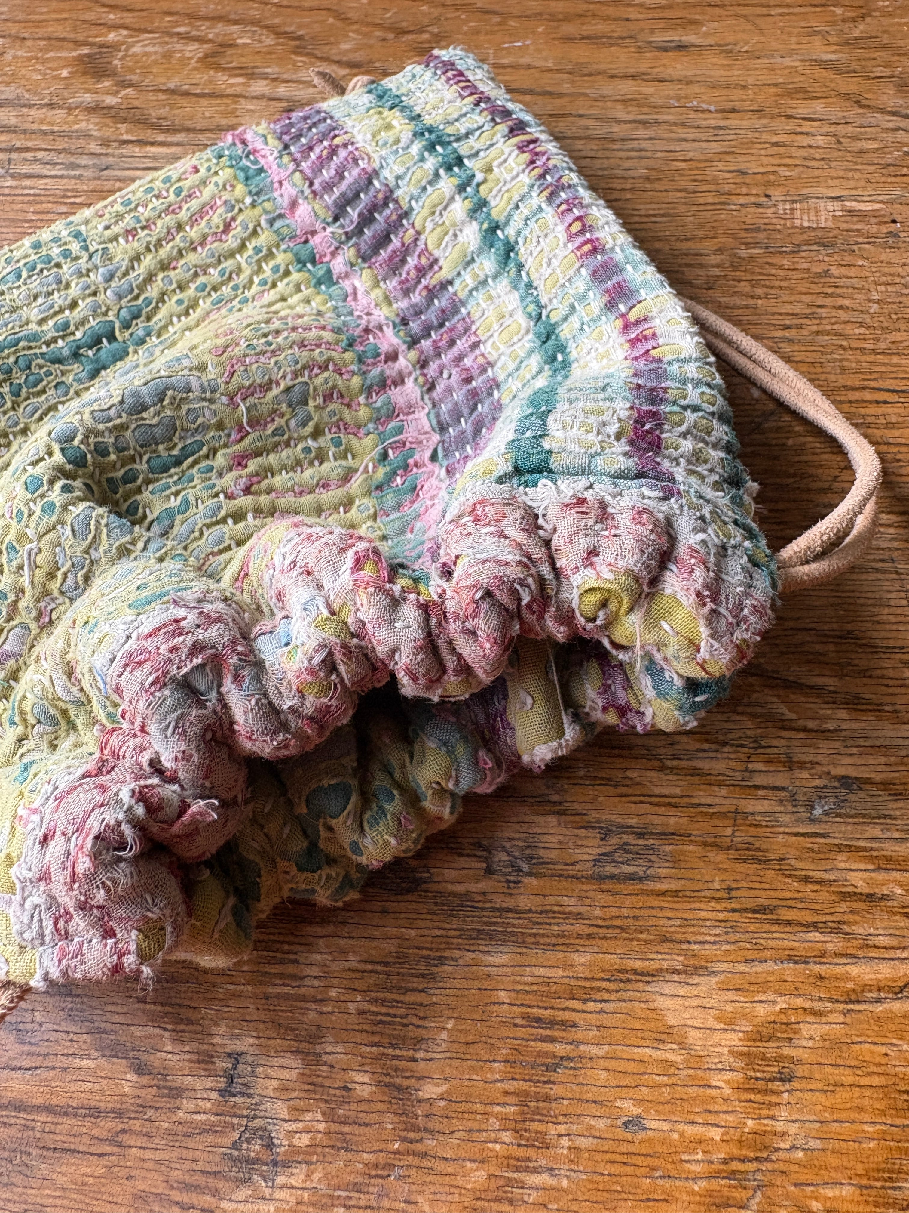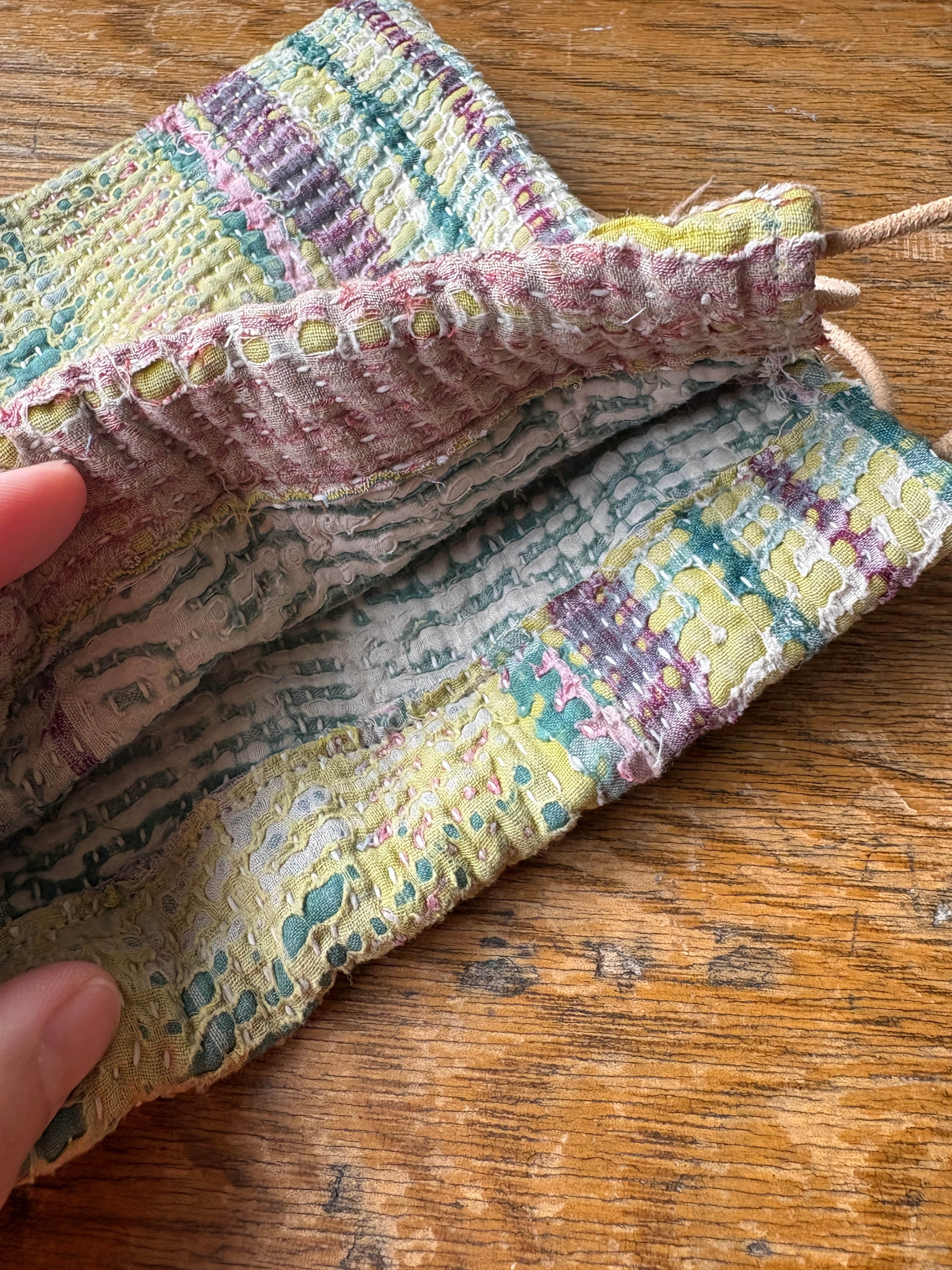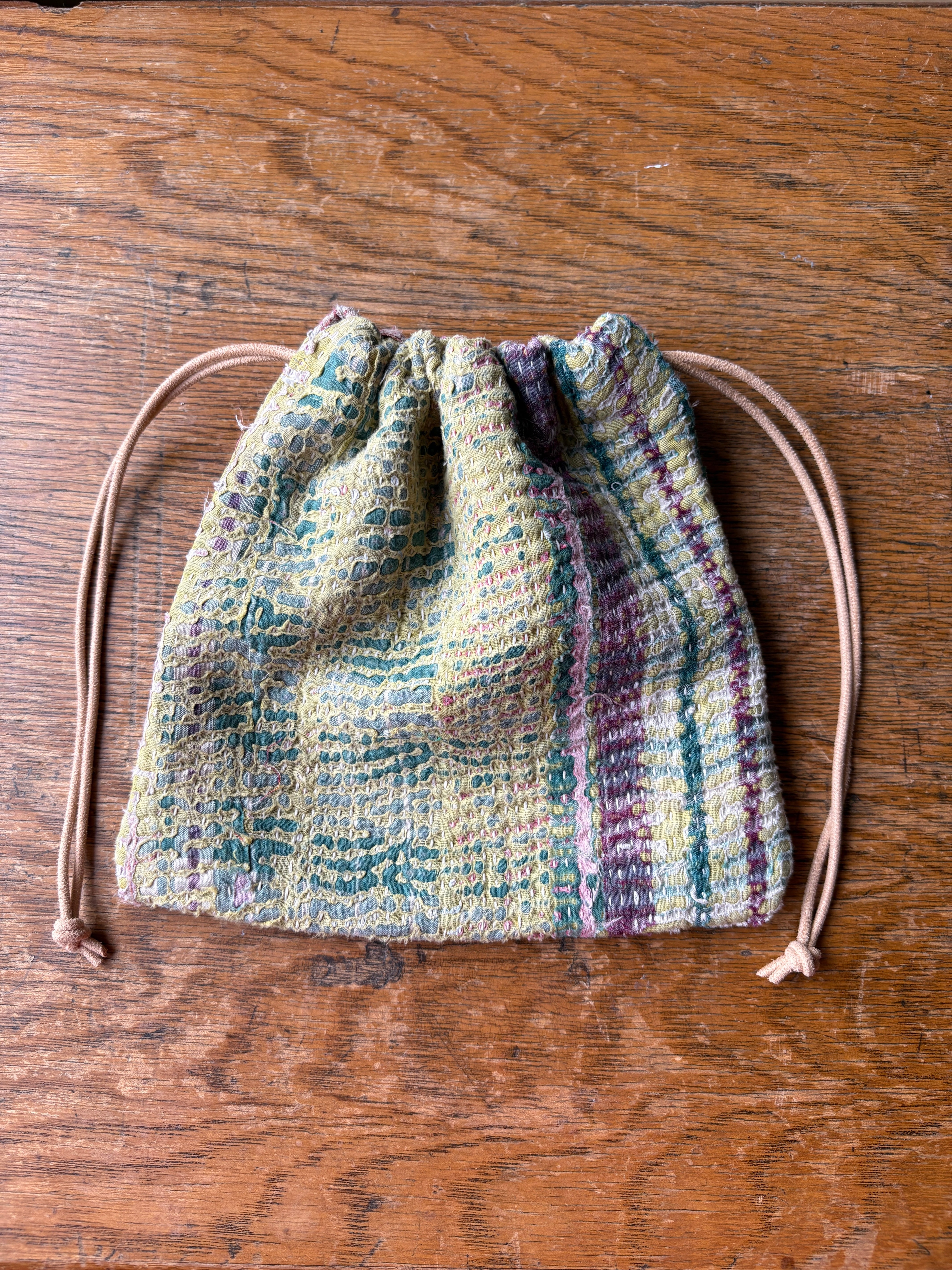 Vintage Kantha 巾着ポーチ 009