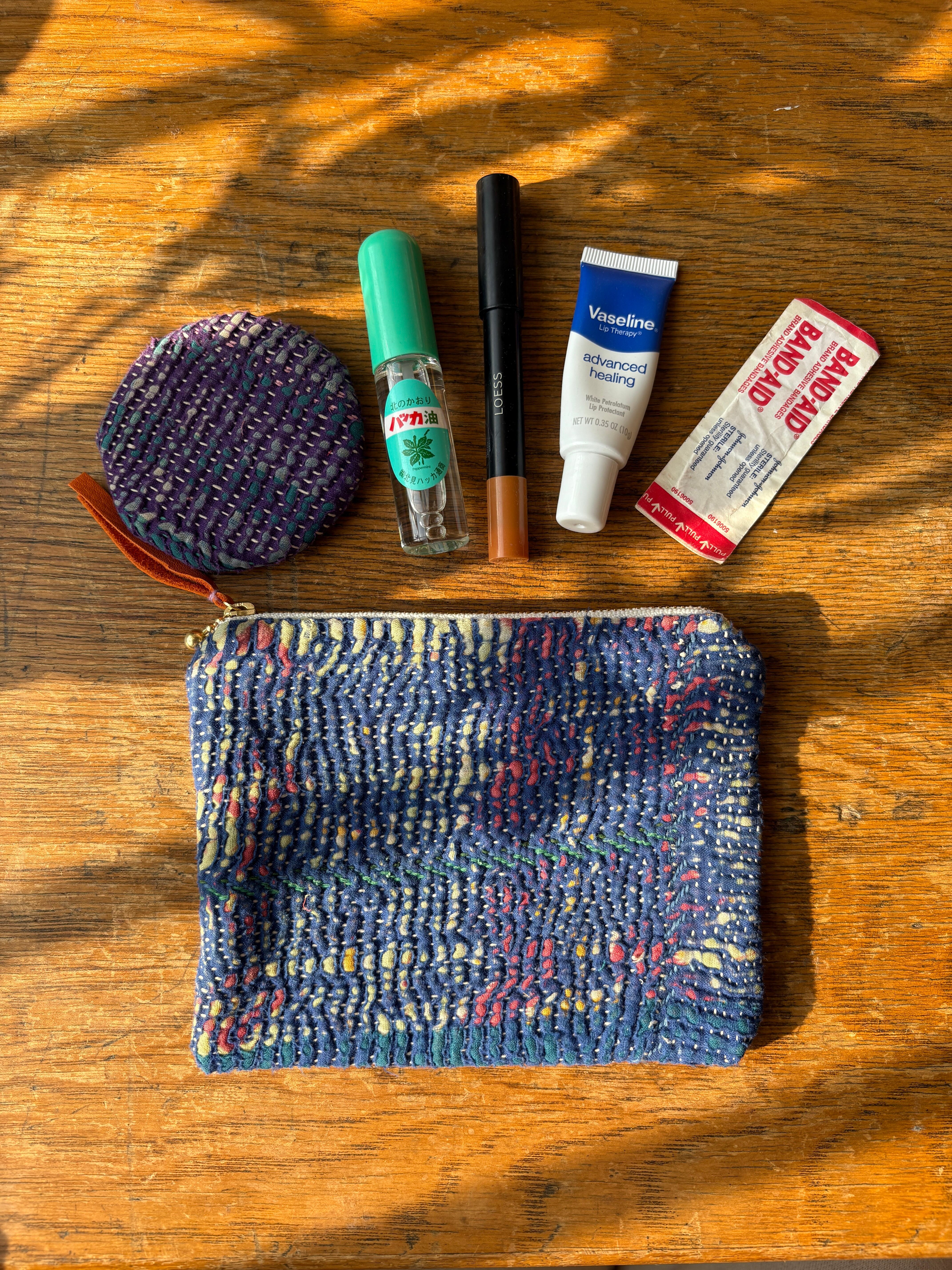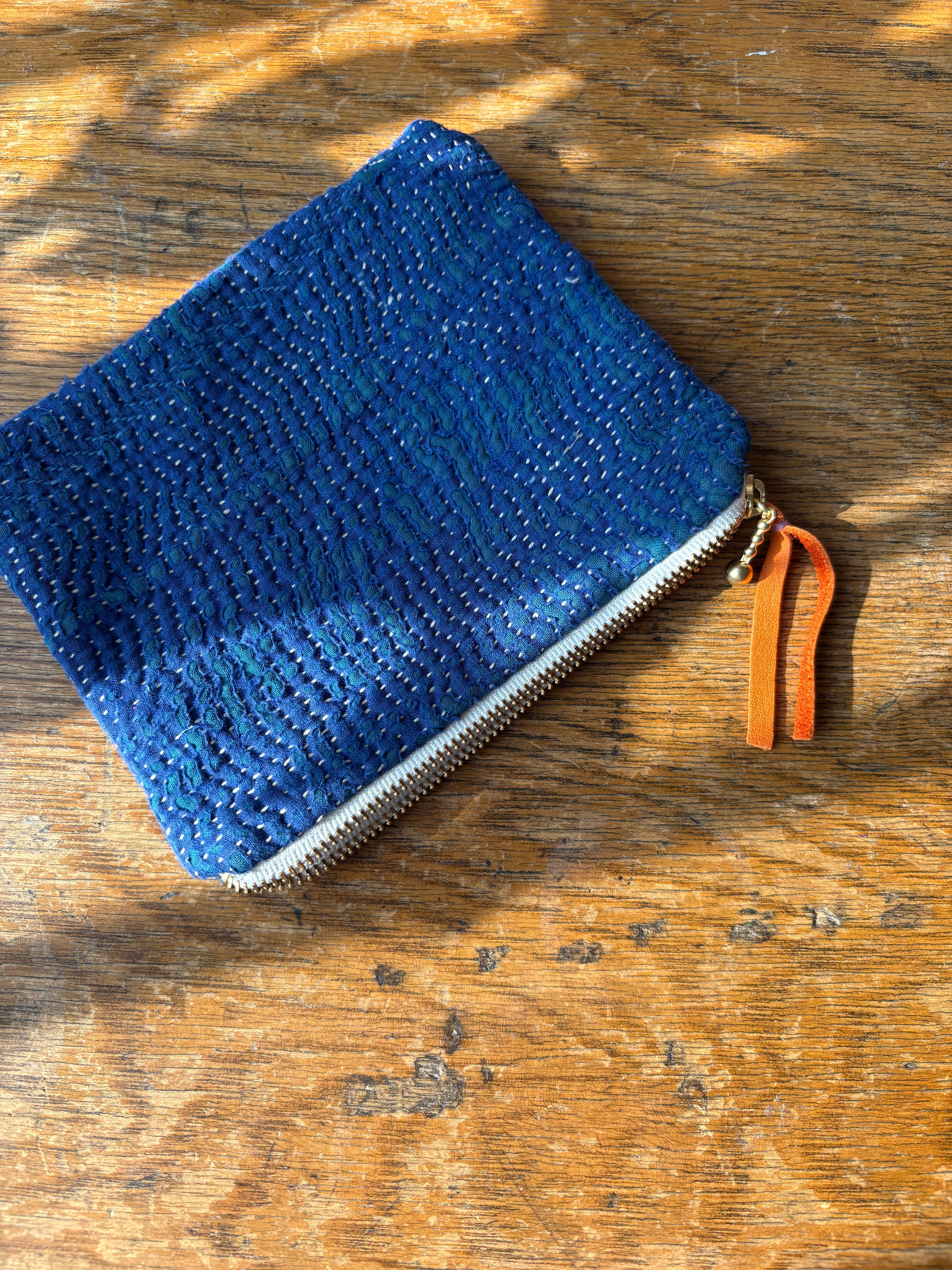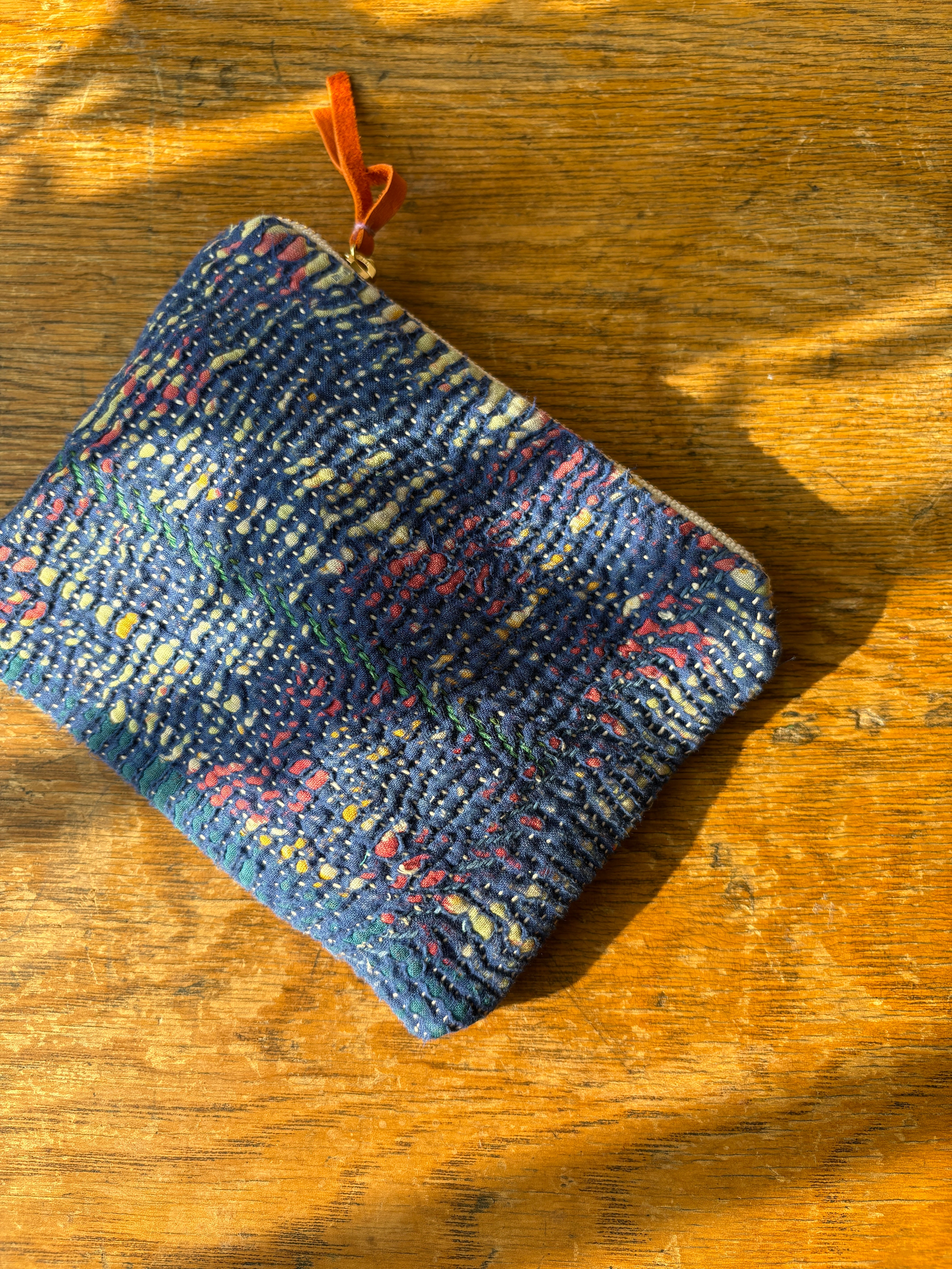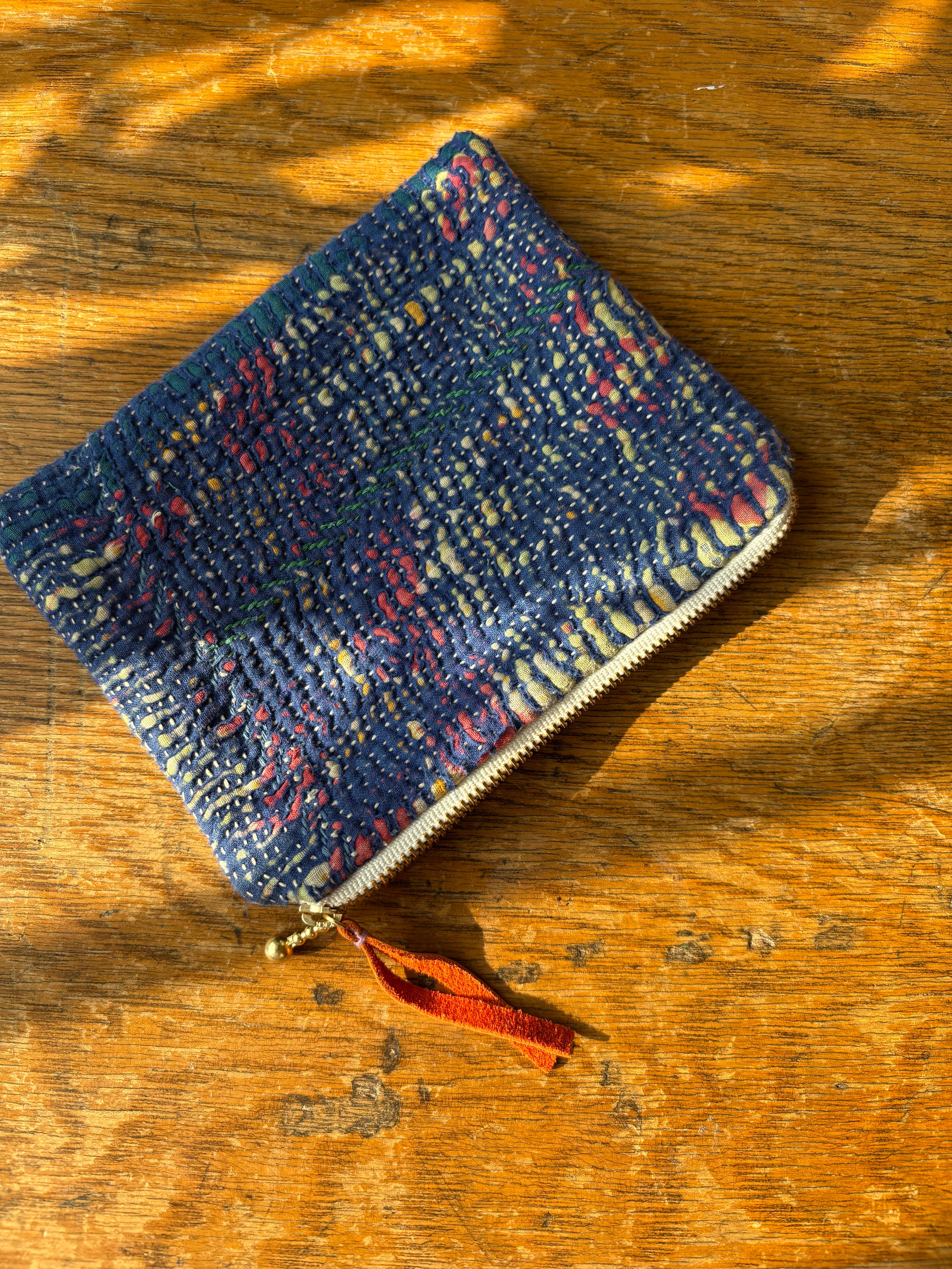 〈ご予約分〉Vintage Kantha フラットポーチ16cm 009