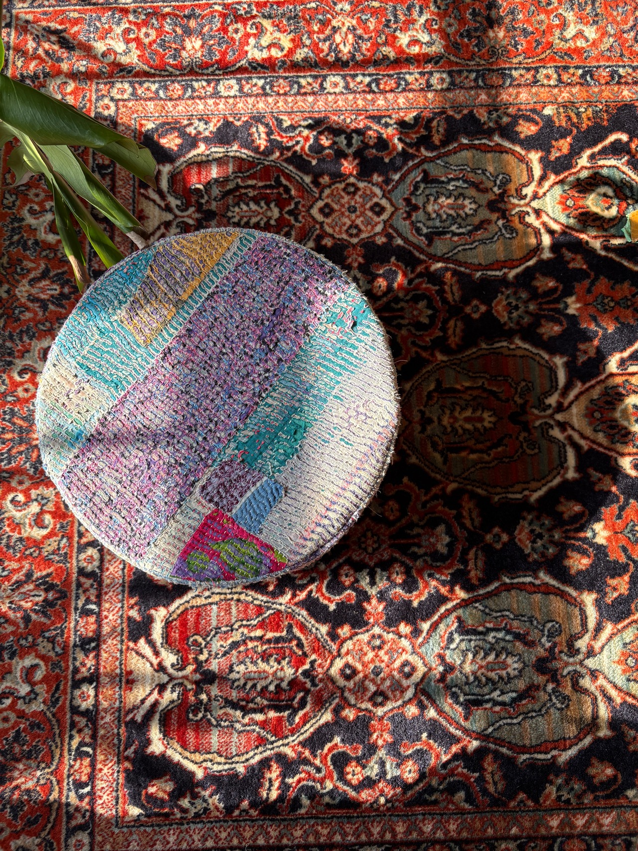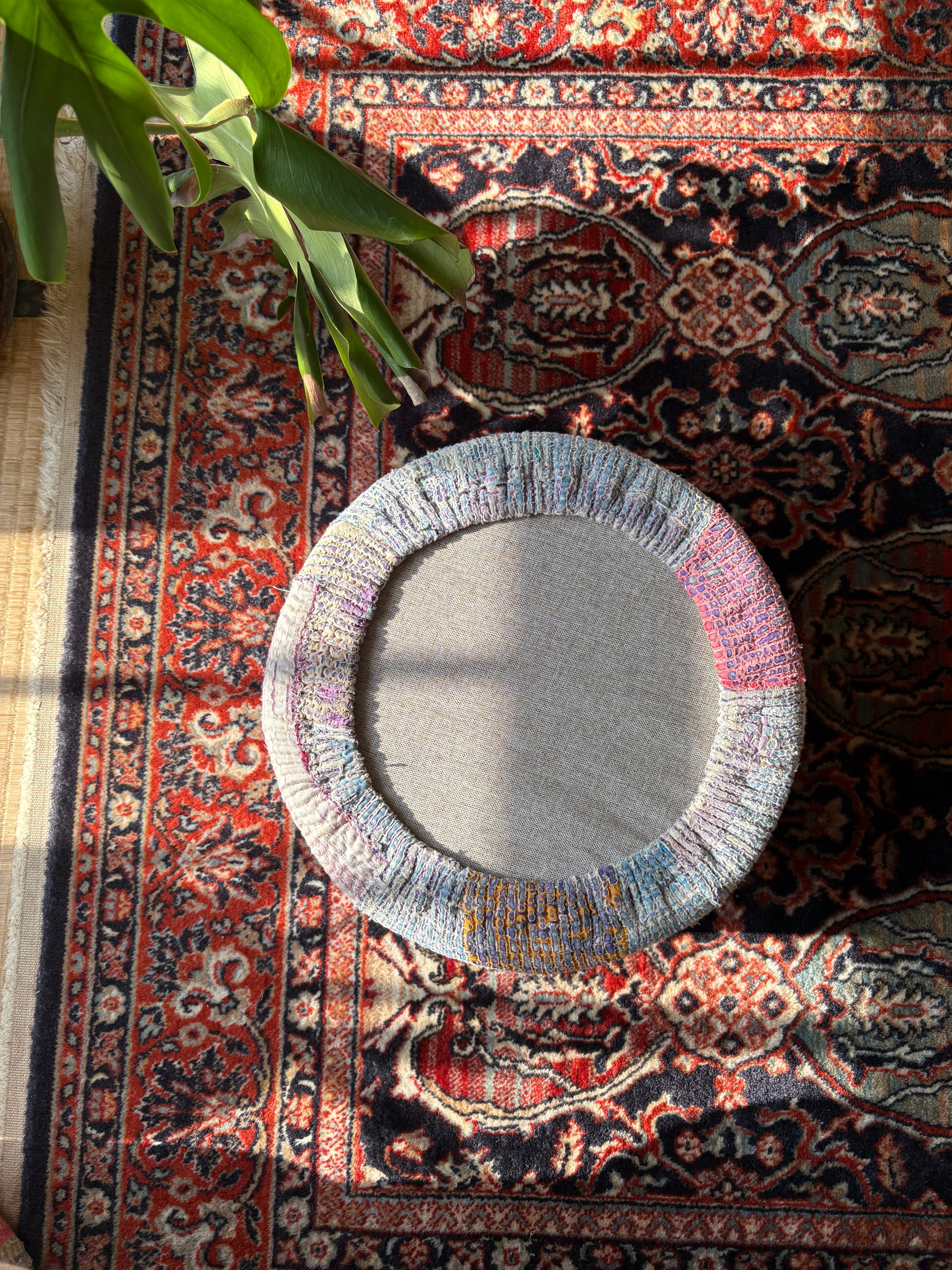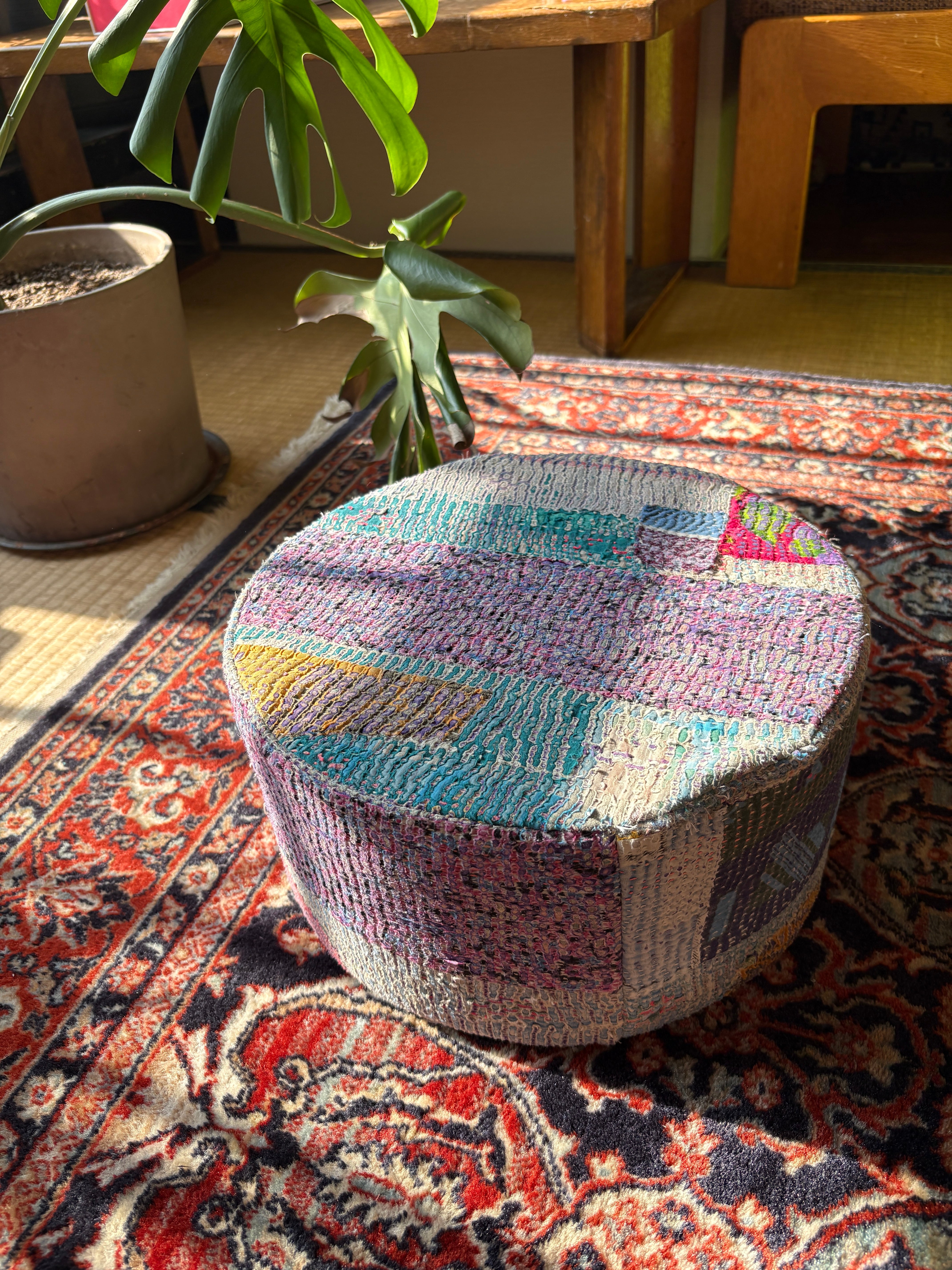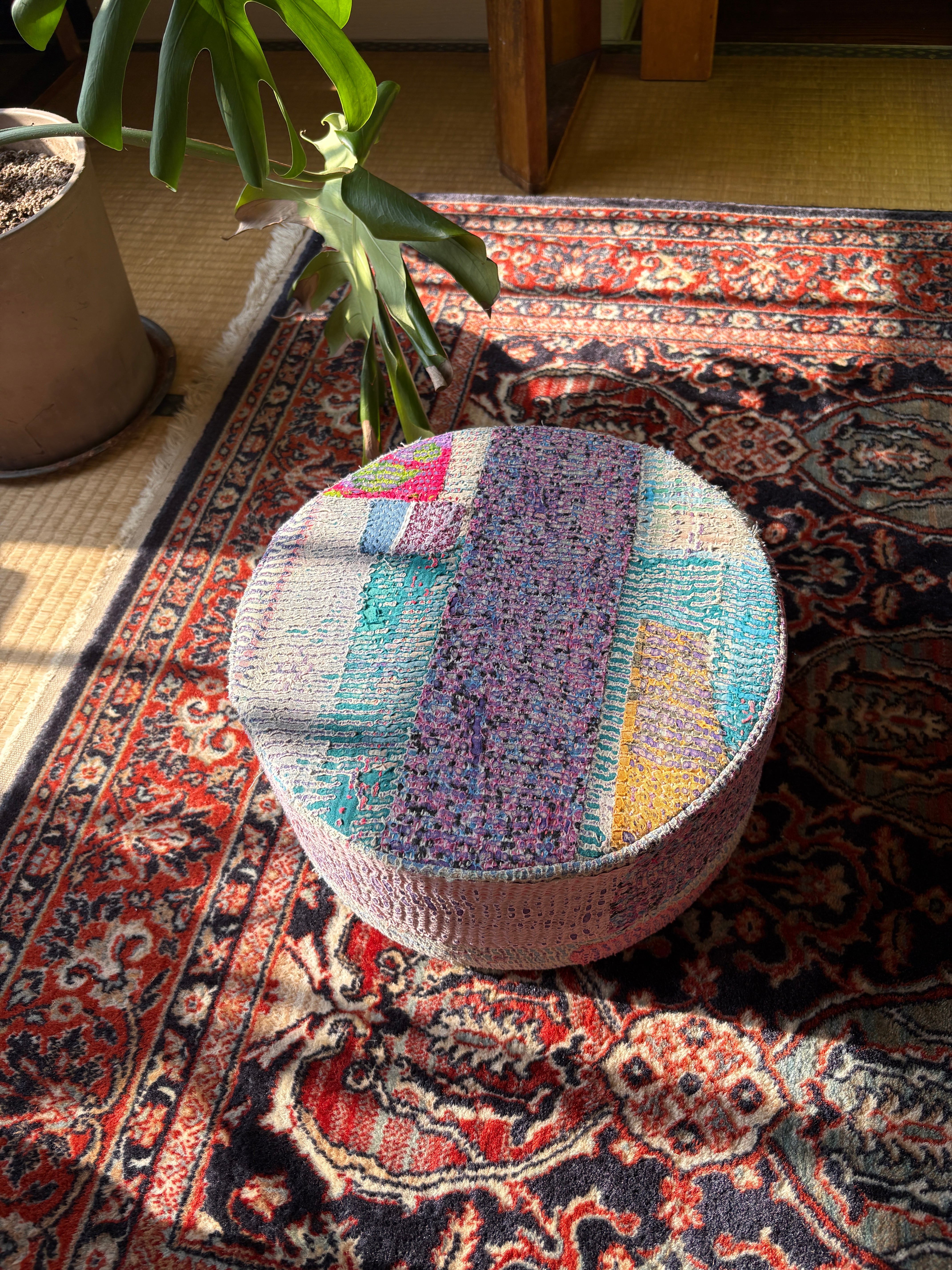 Vintage Kantha 丸型スツール小(中身付) 008