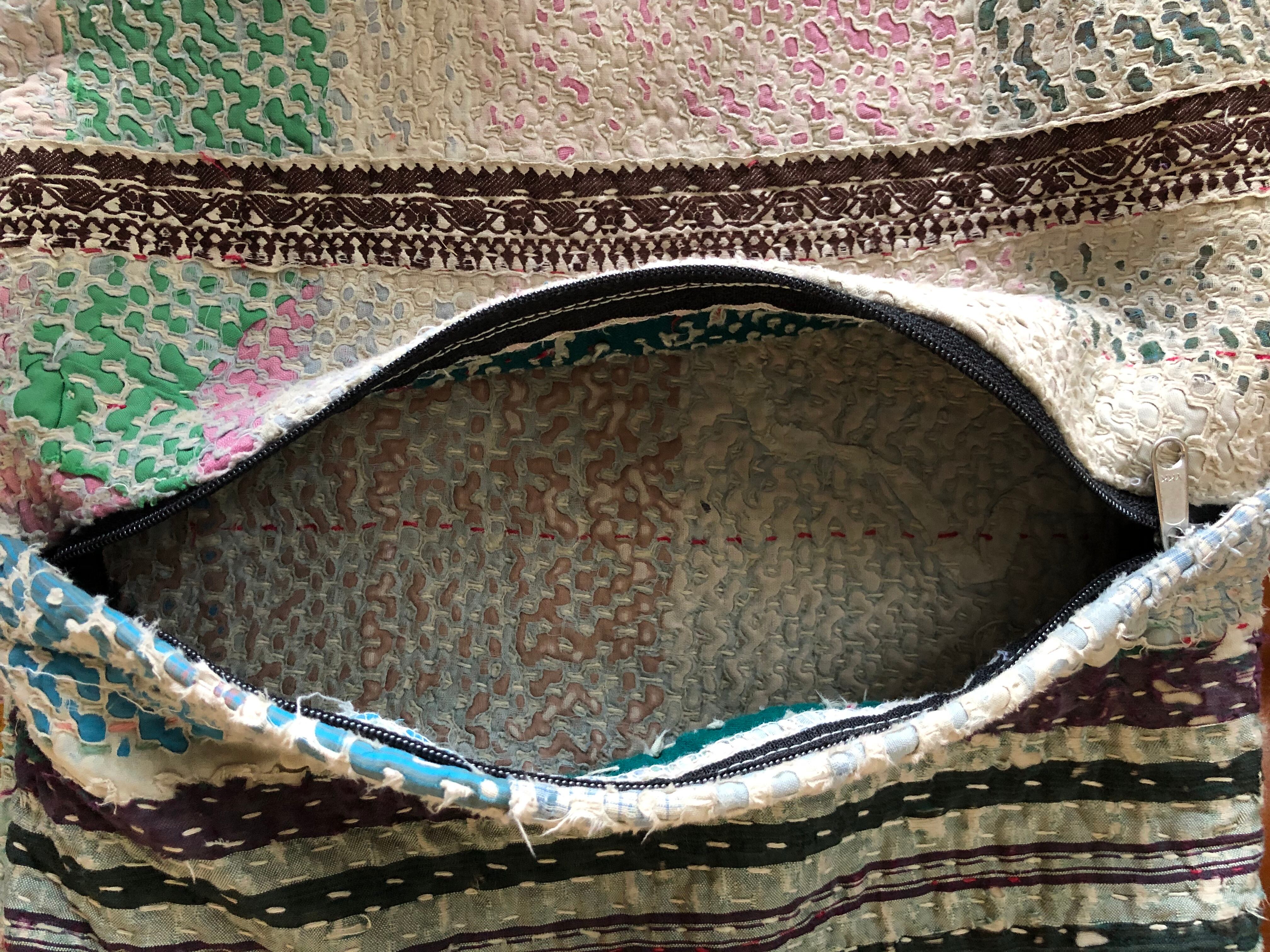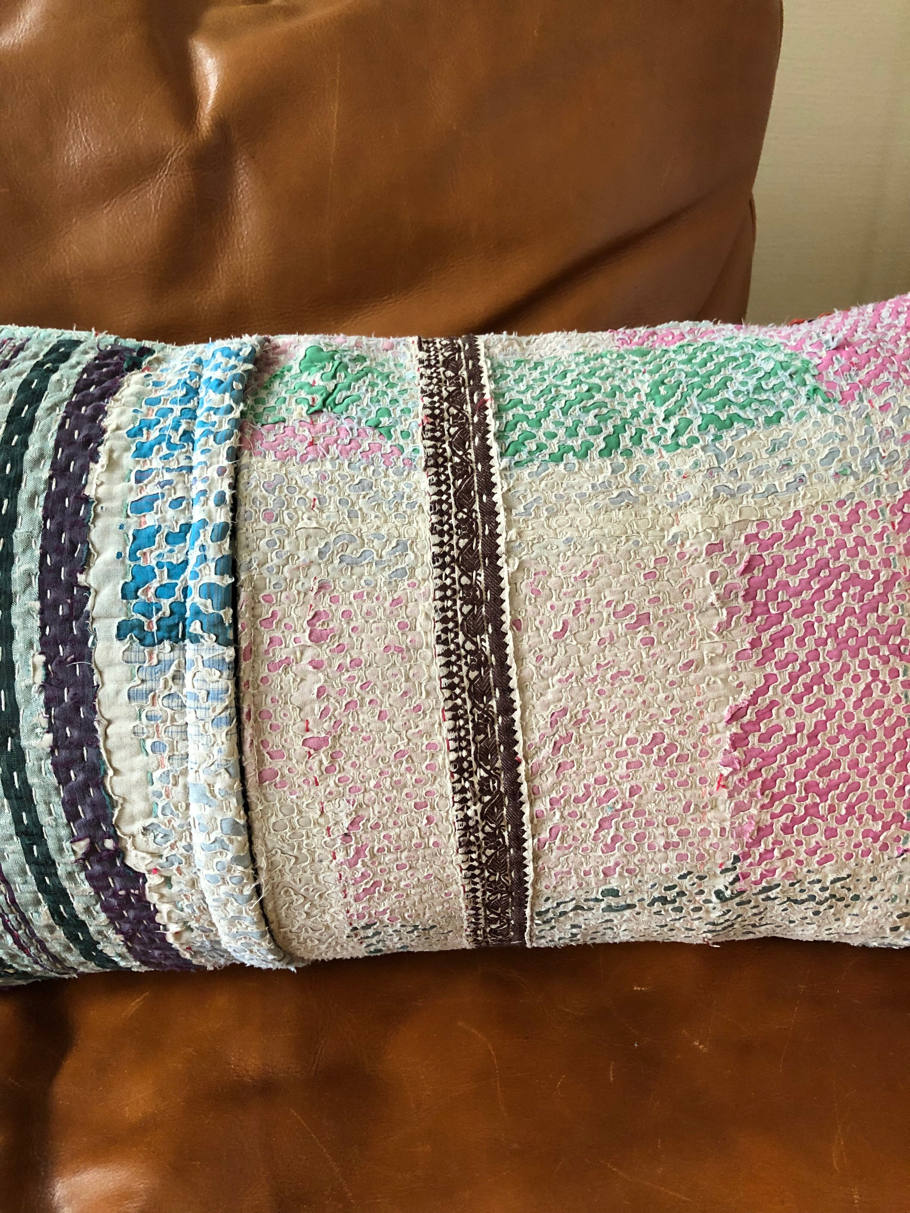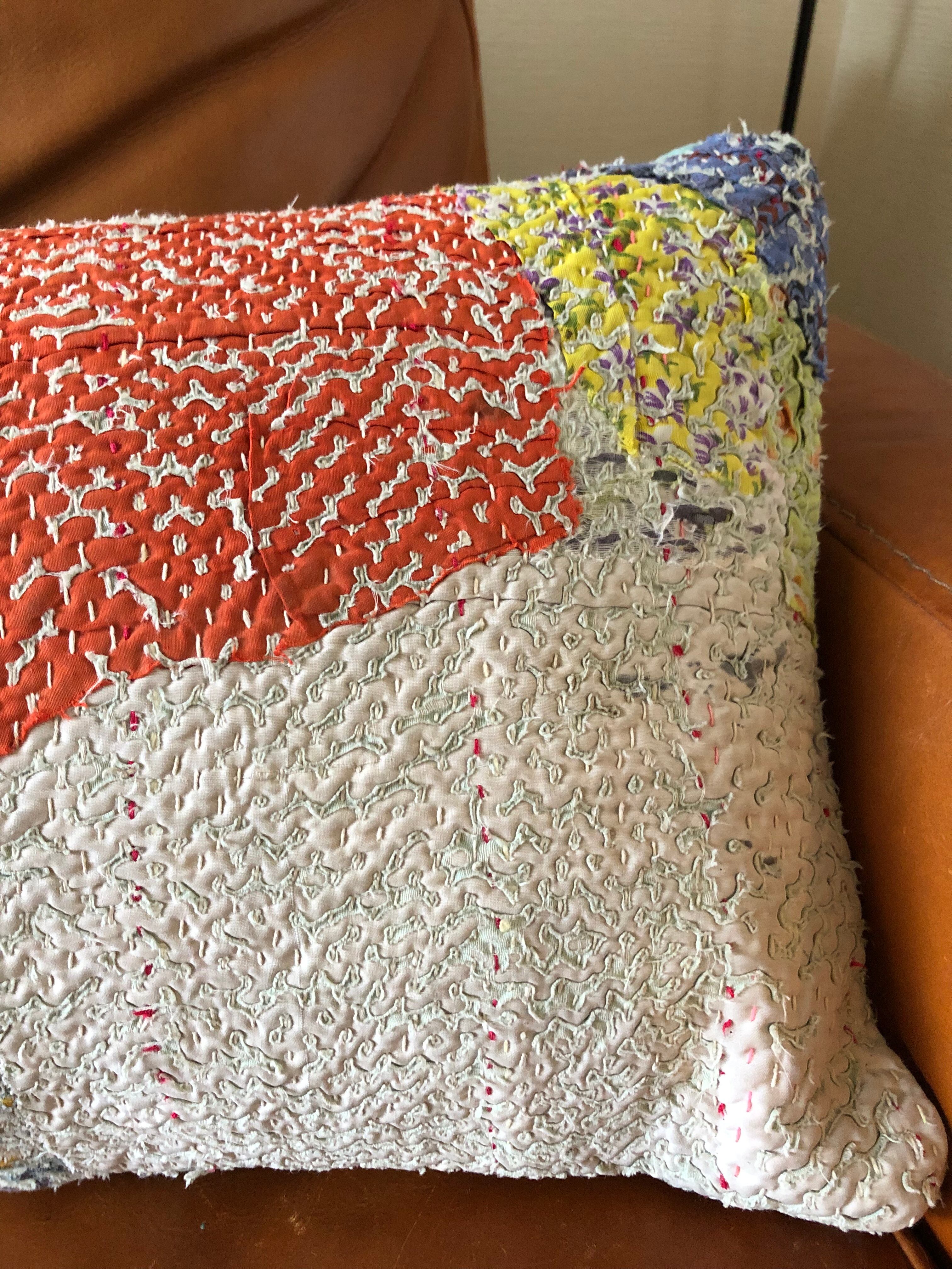 Vintage Kantha Cushion Cover 30×50 横長 orange×white pink (中身付)