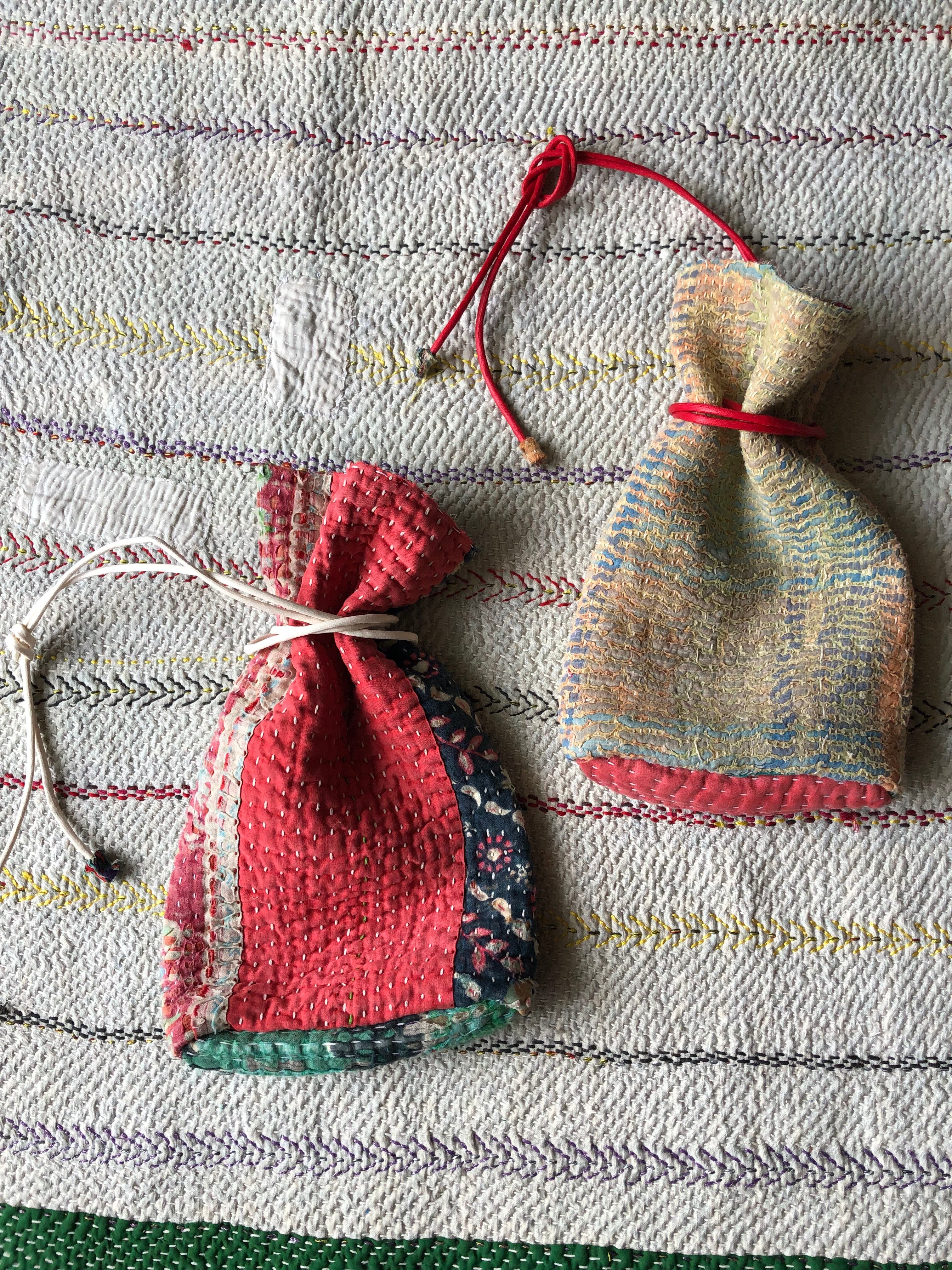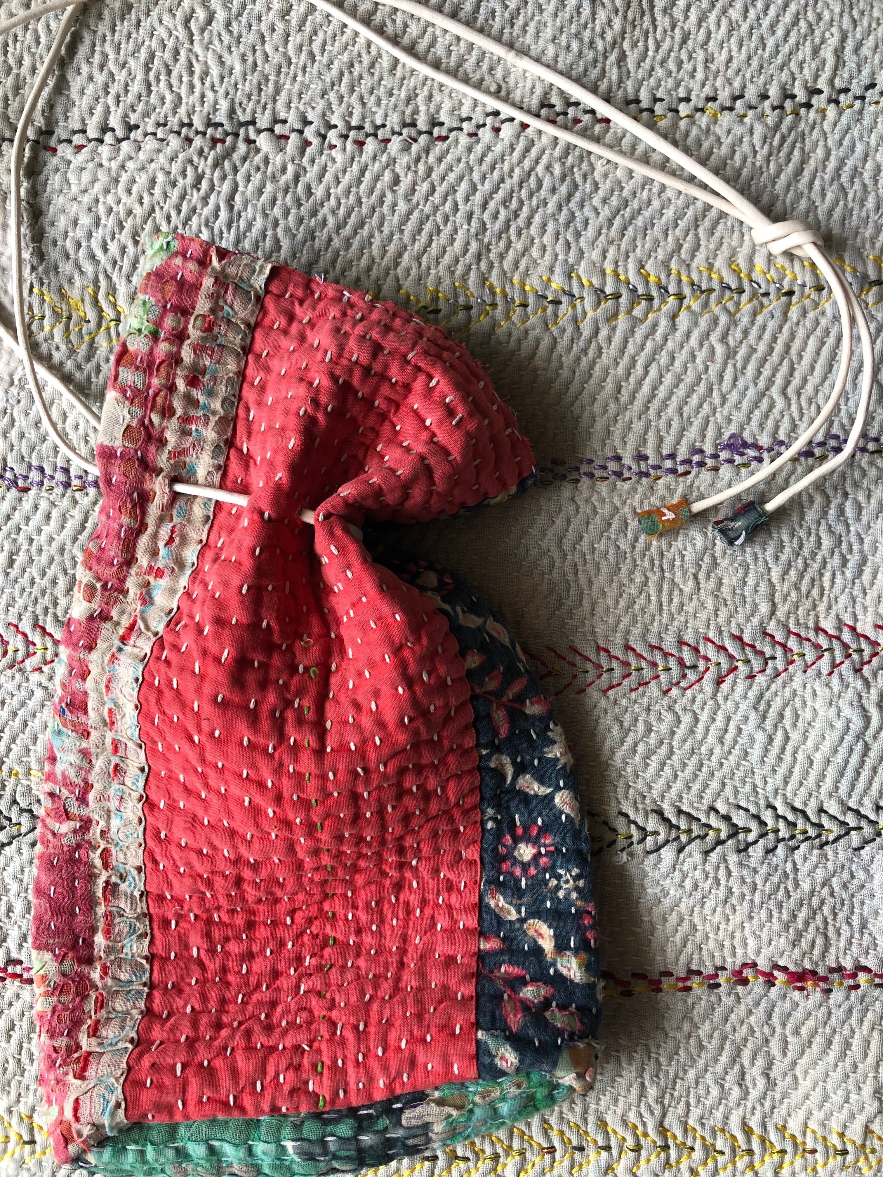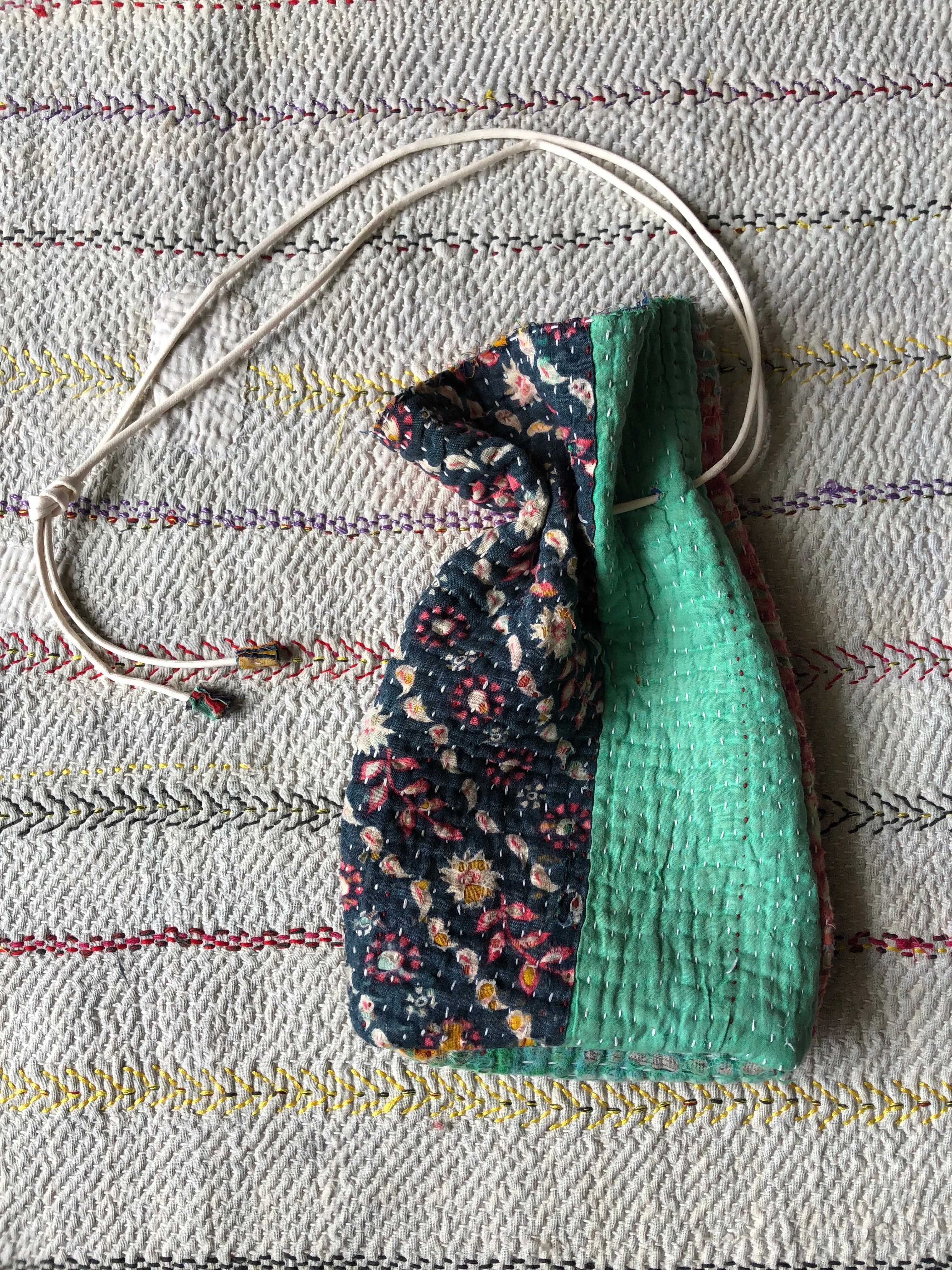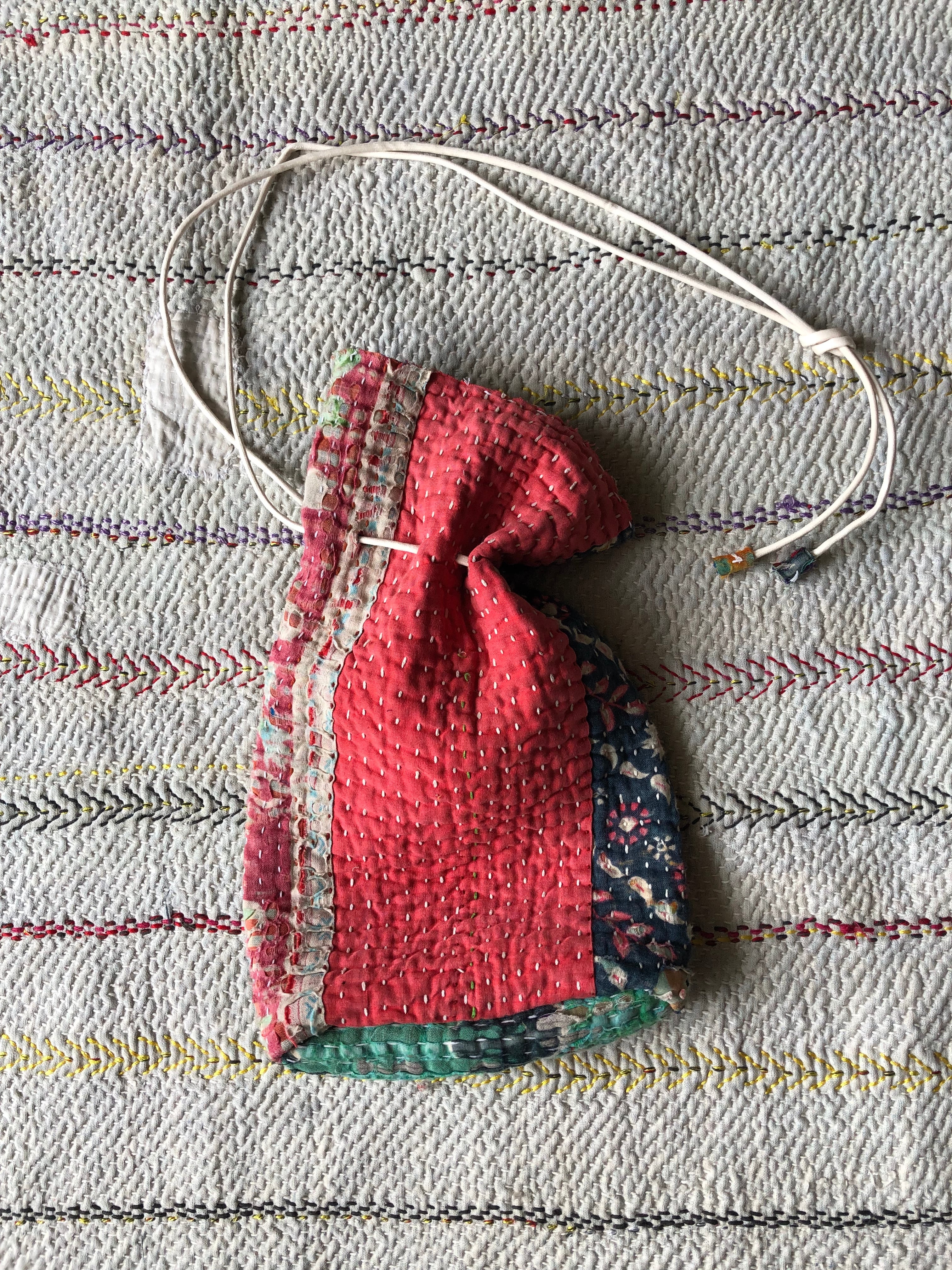 Vintage Kantha ミニ巾着ショルダー Pink iroiro×flower iroiro