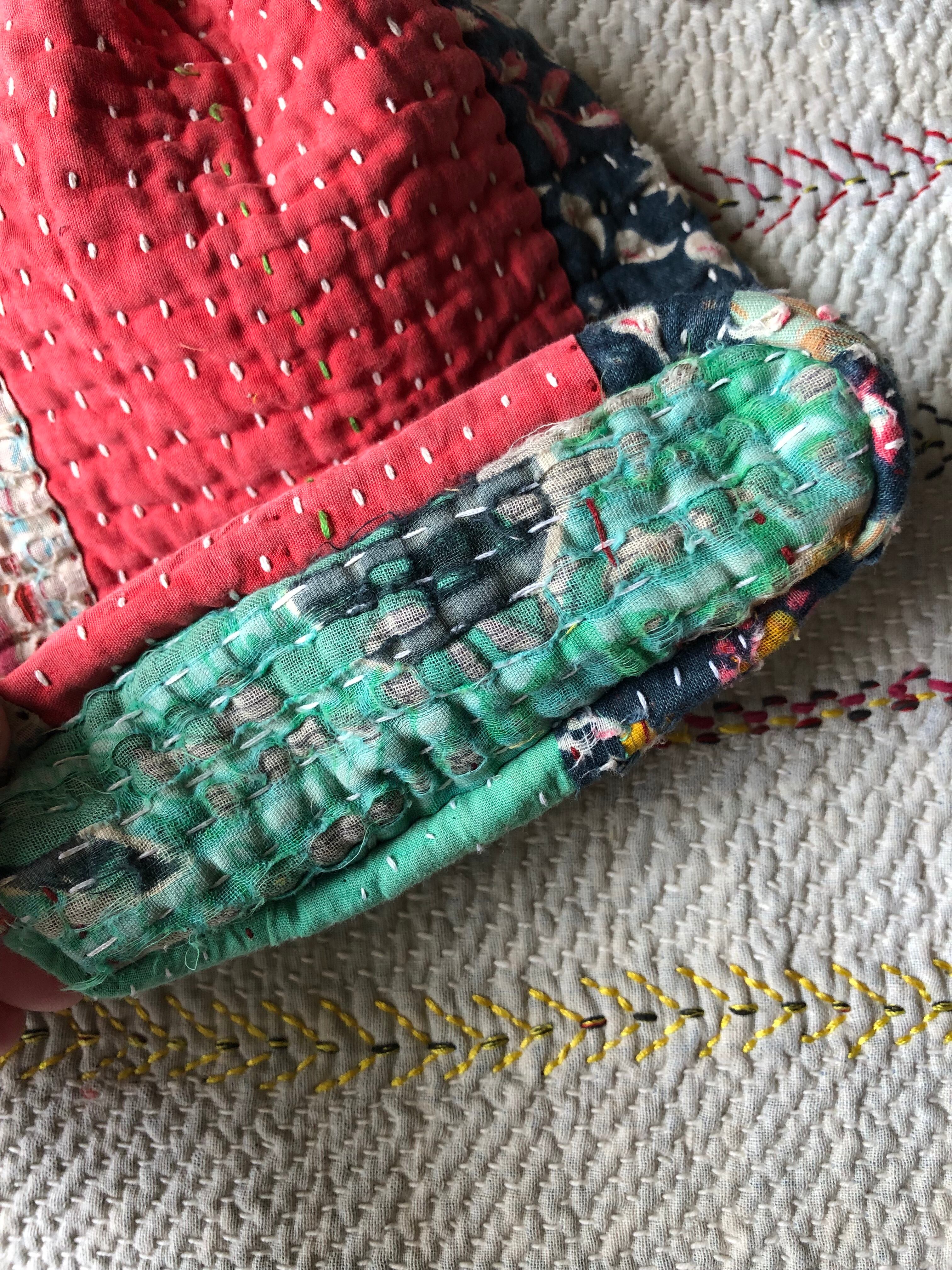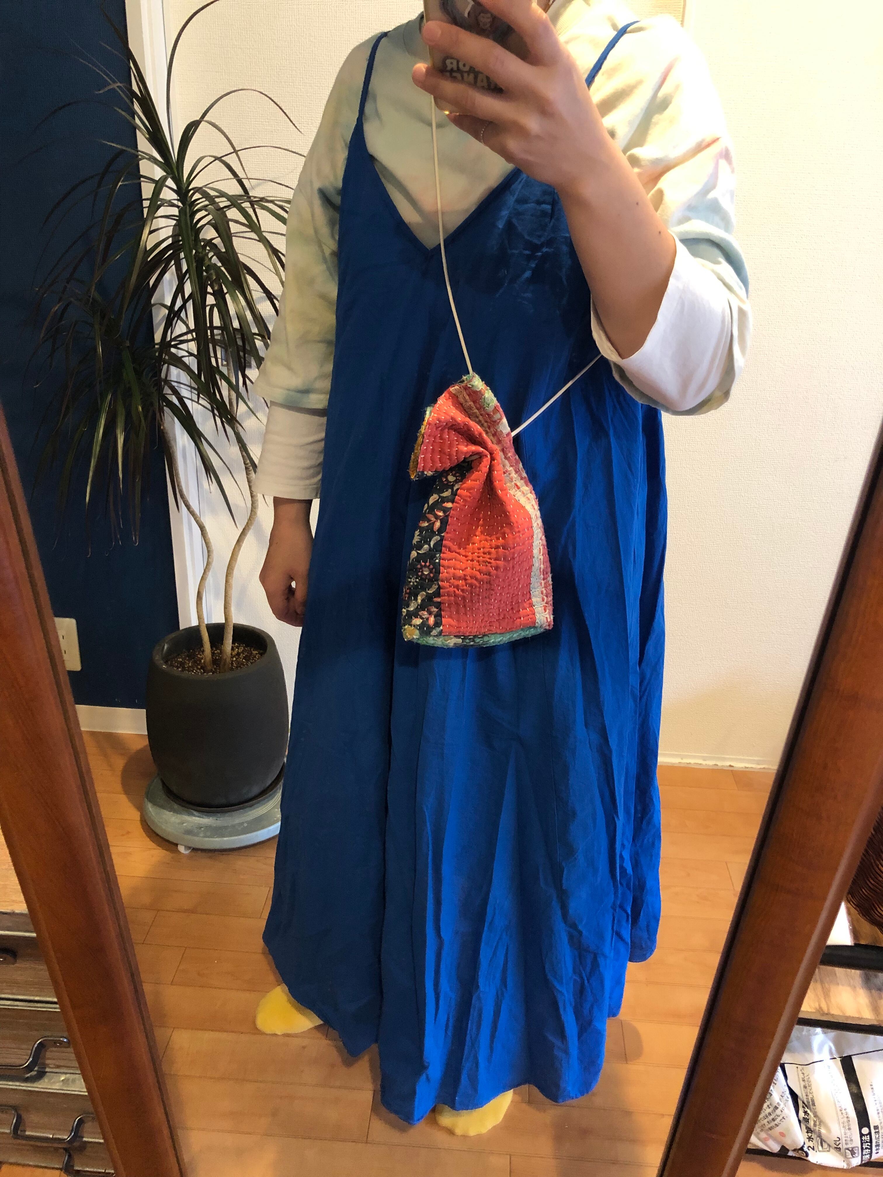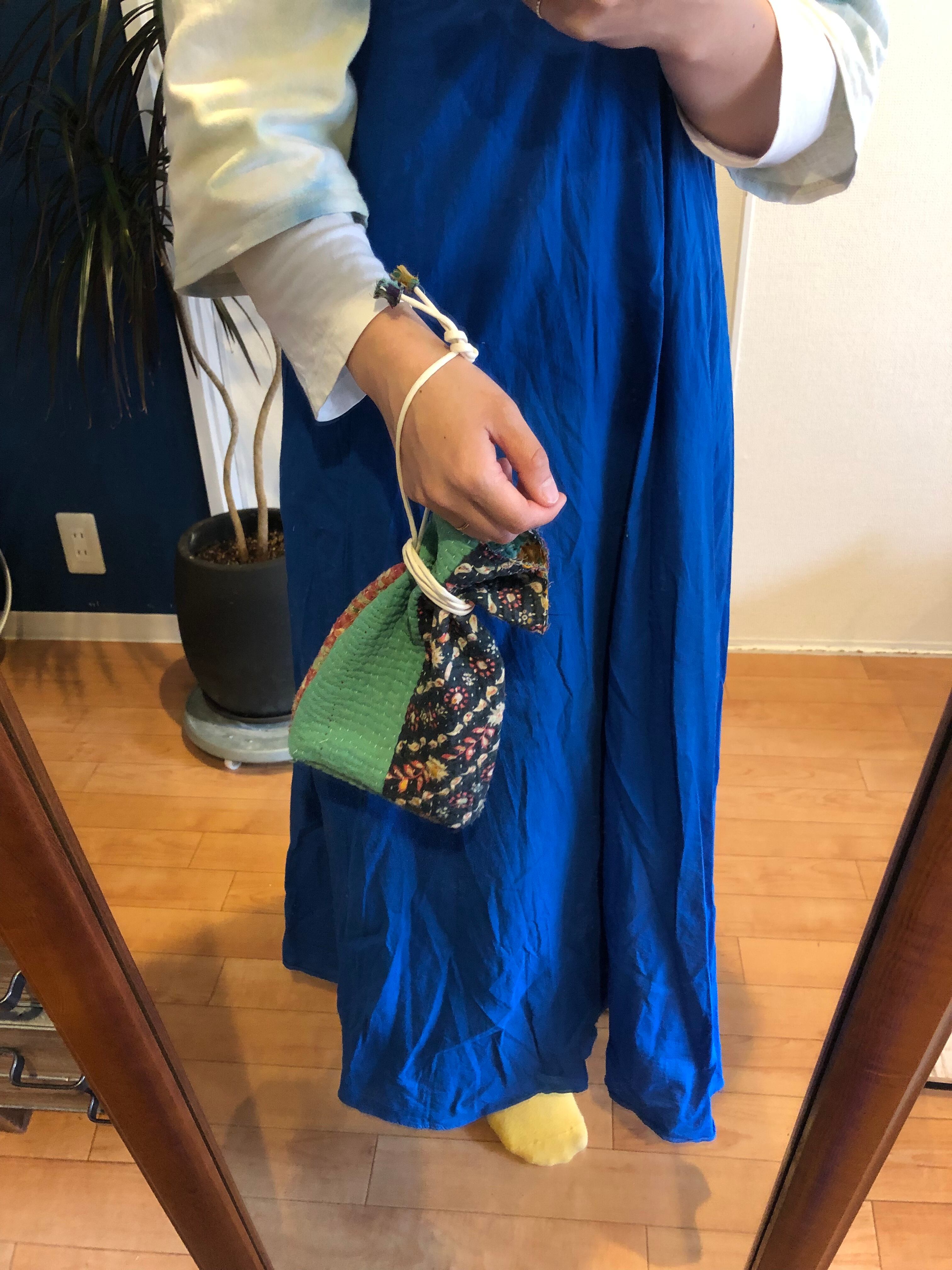 Vintage Kantha ミニ巾着ショルダー Pink iroiro×flower iroiro