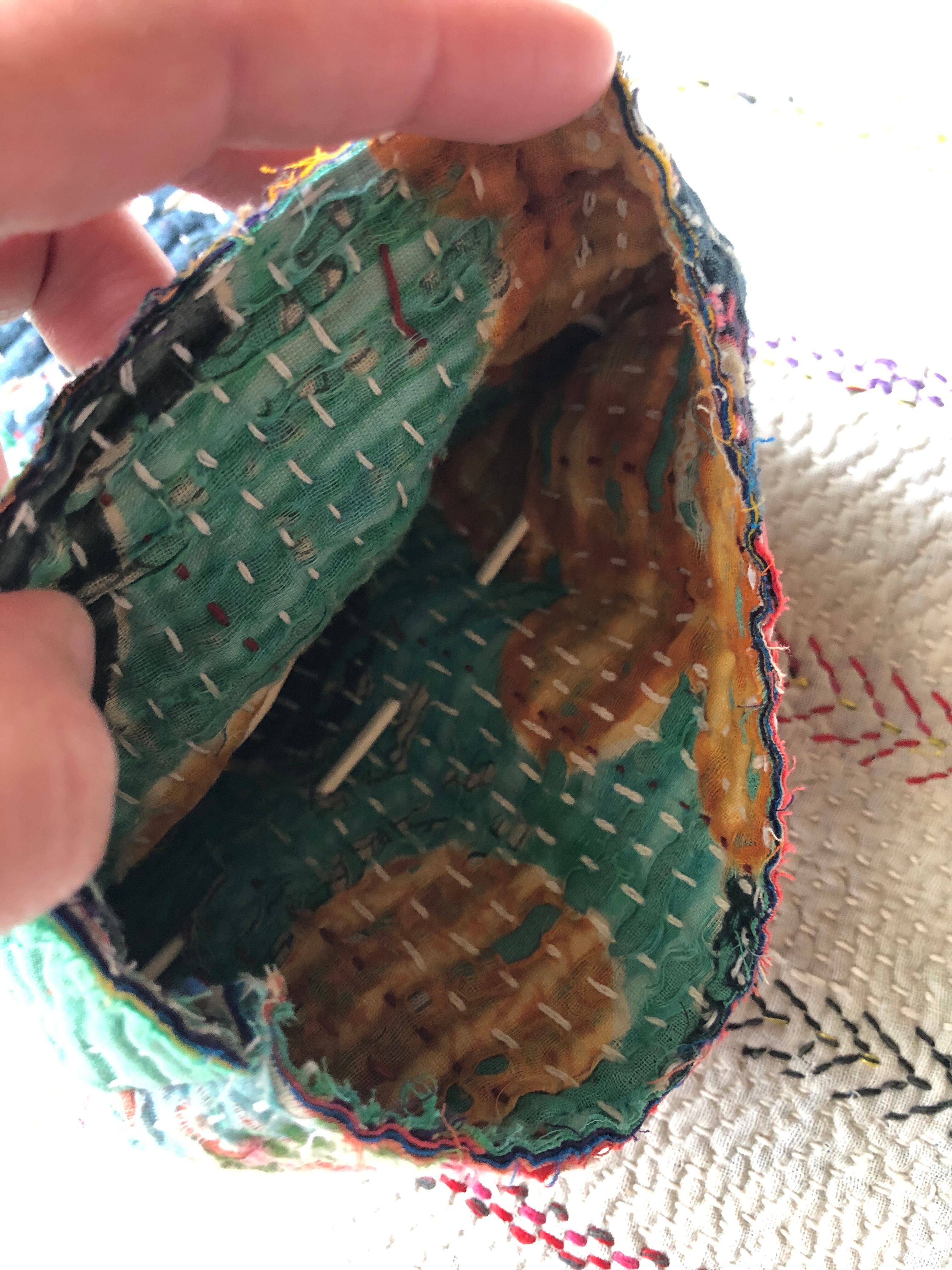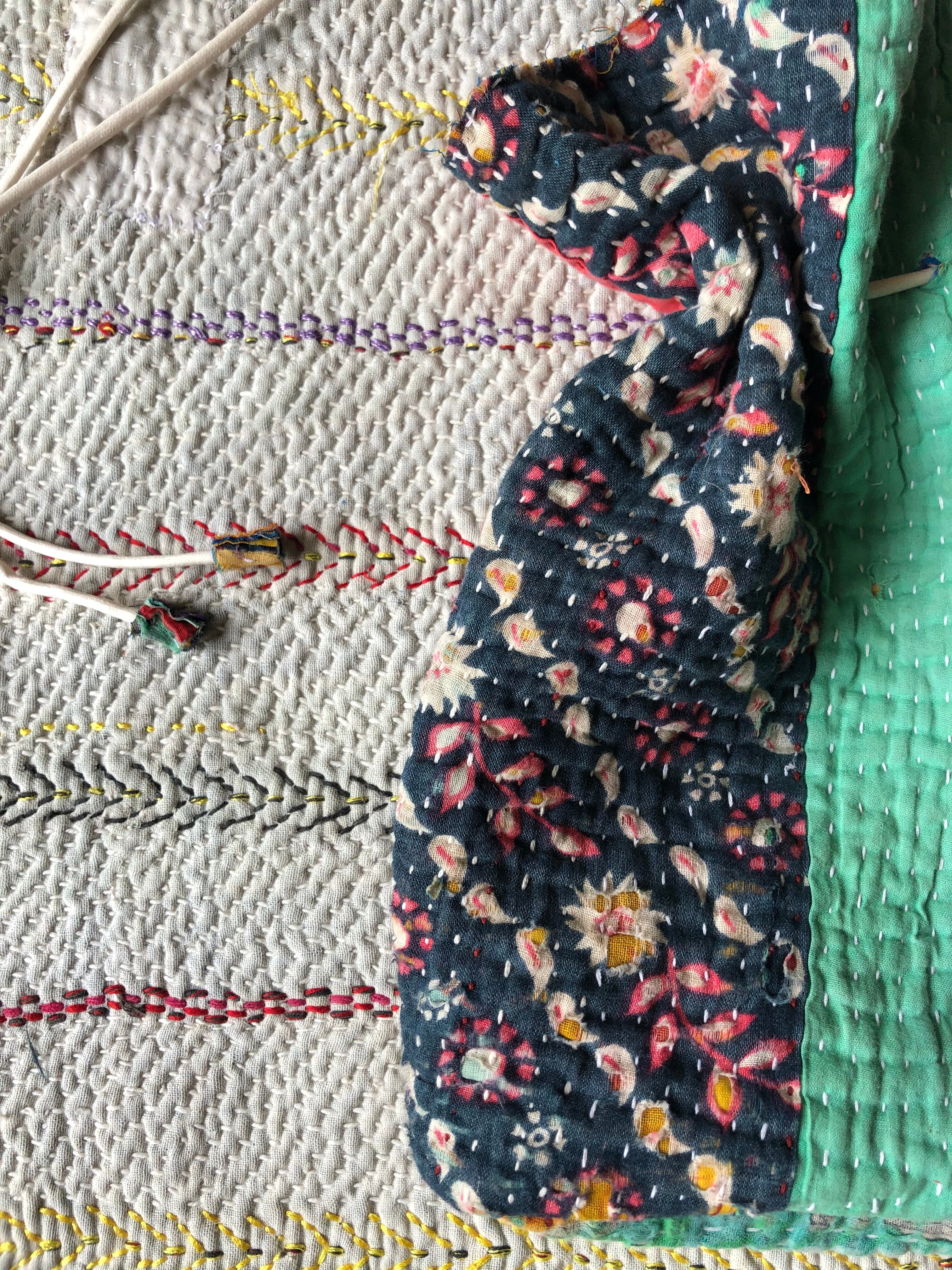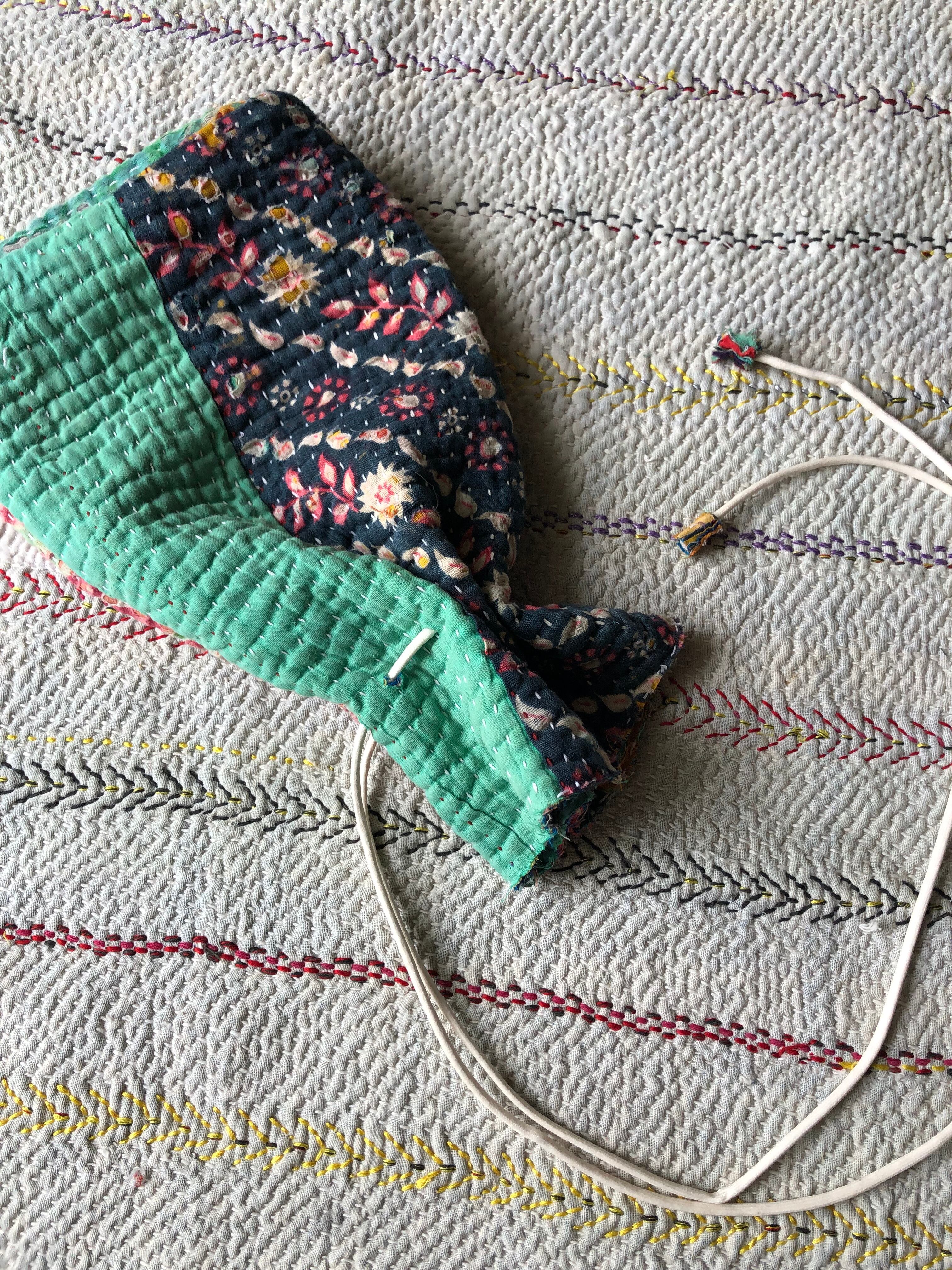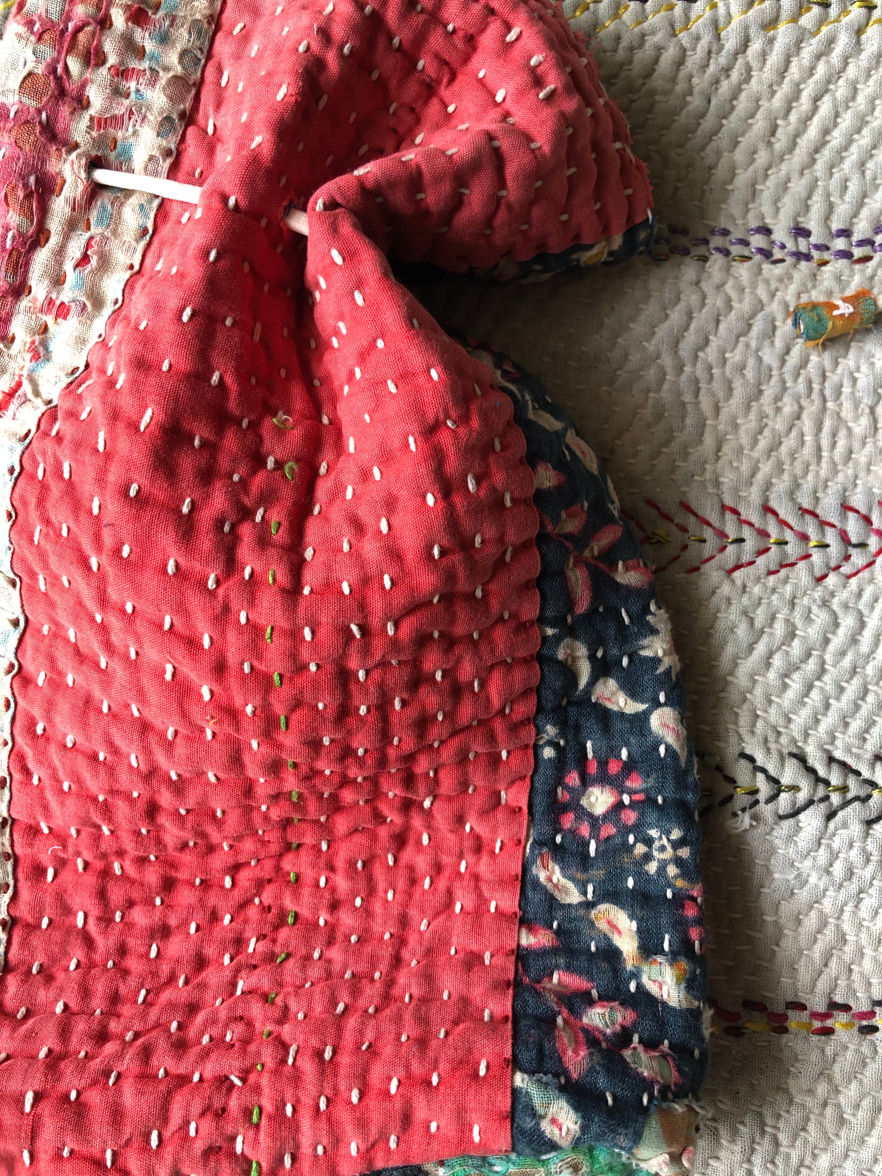 Vintage Kantha ミニ巾着ショルダー Pink iroiro×flower iroiro