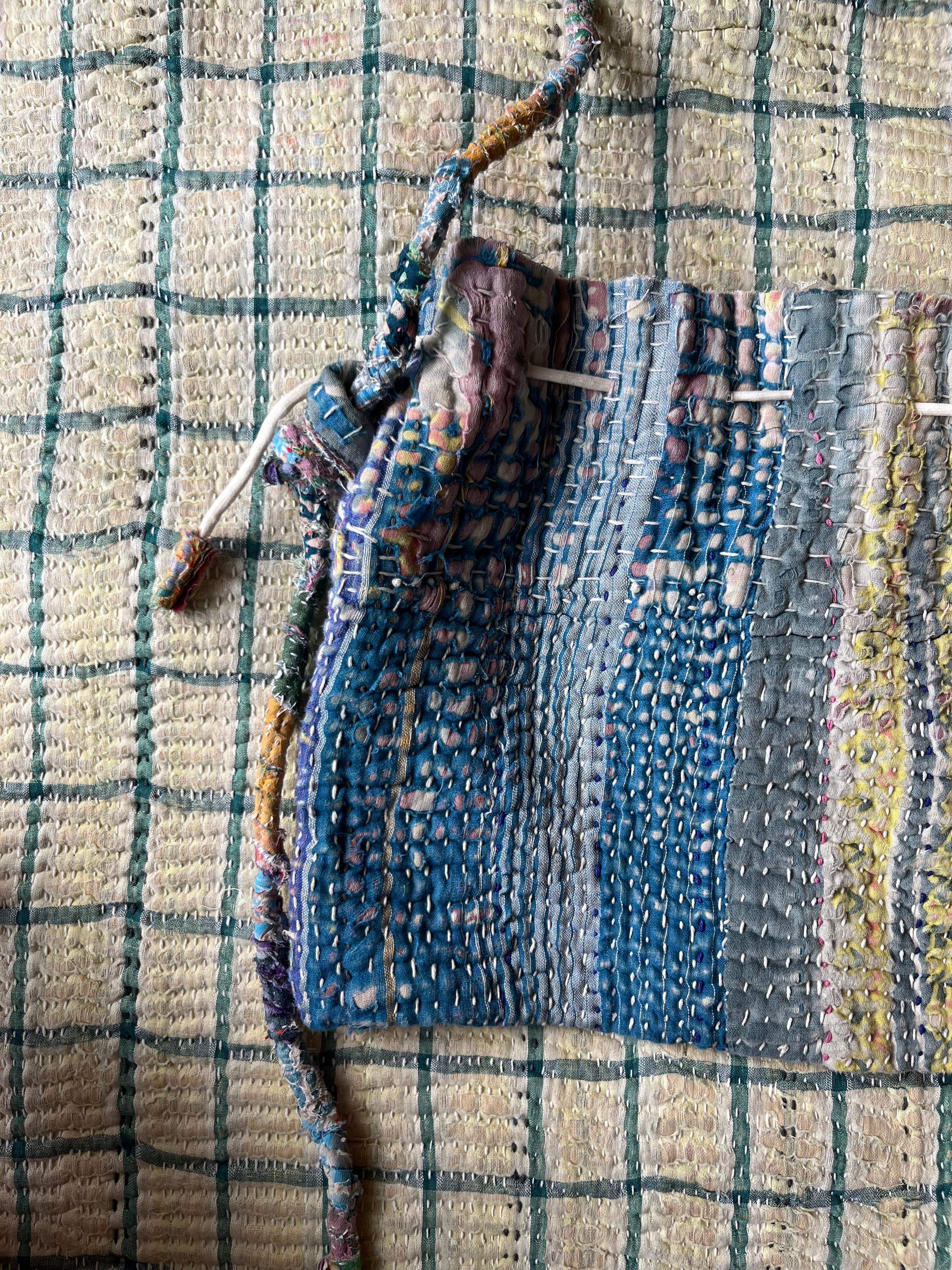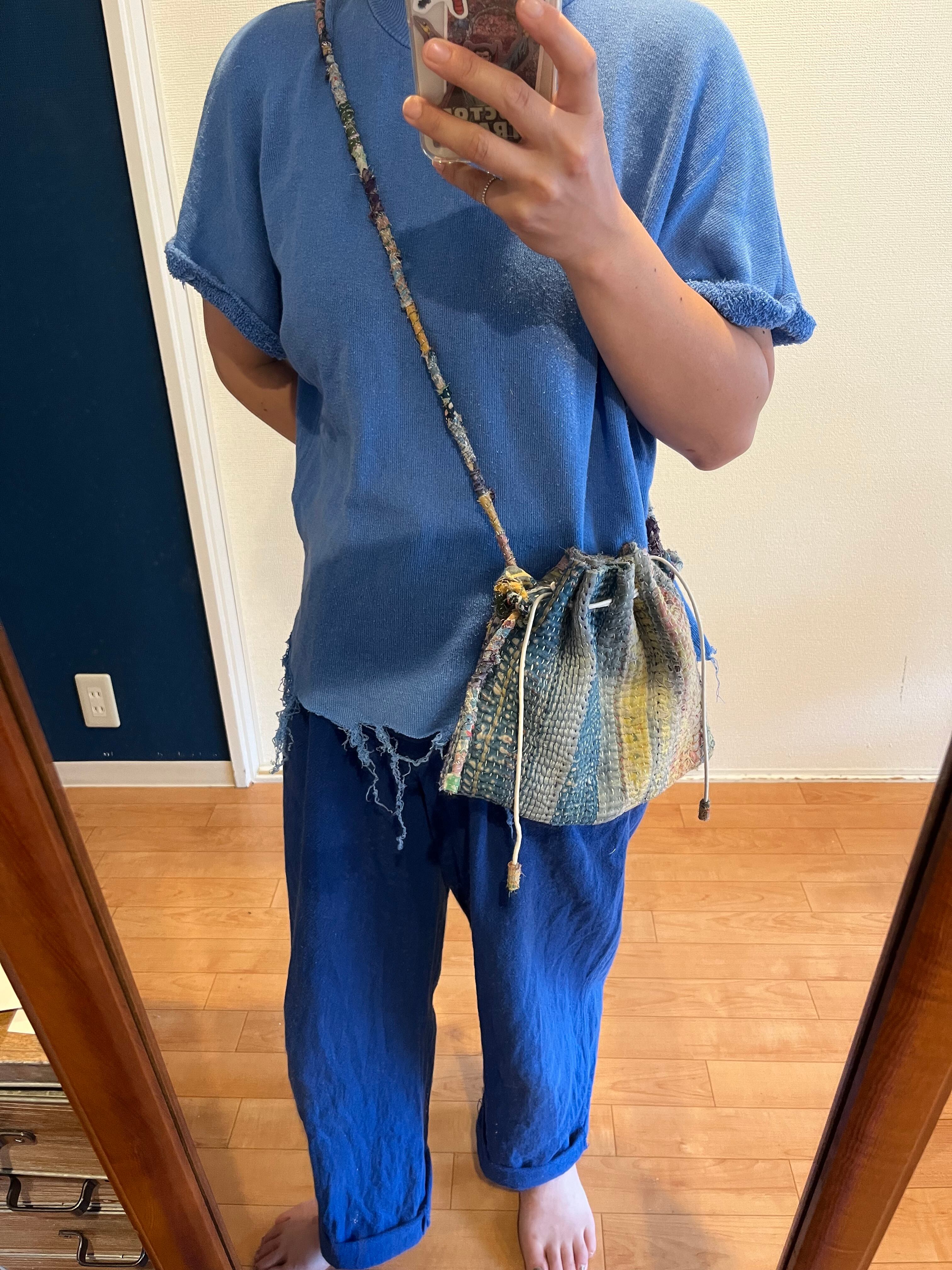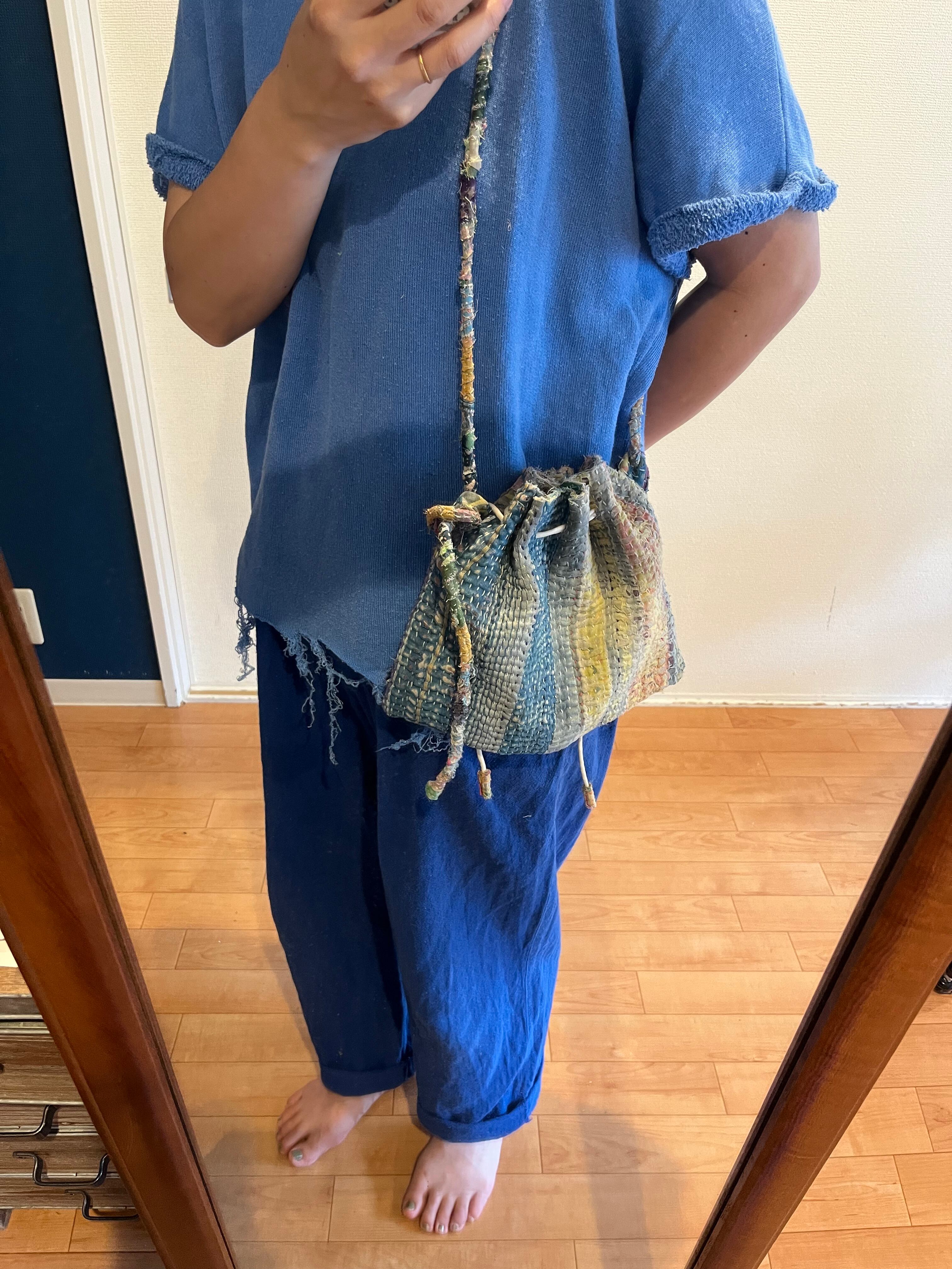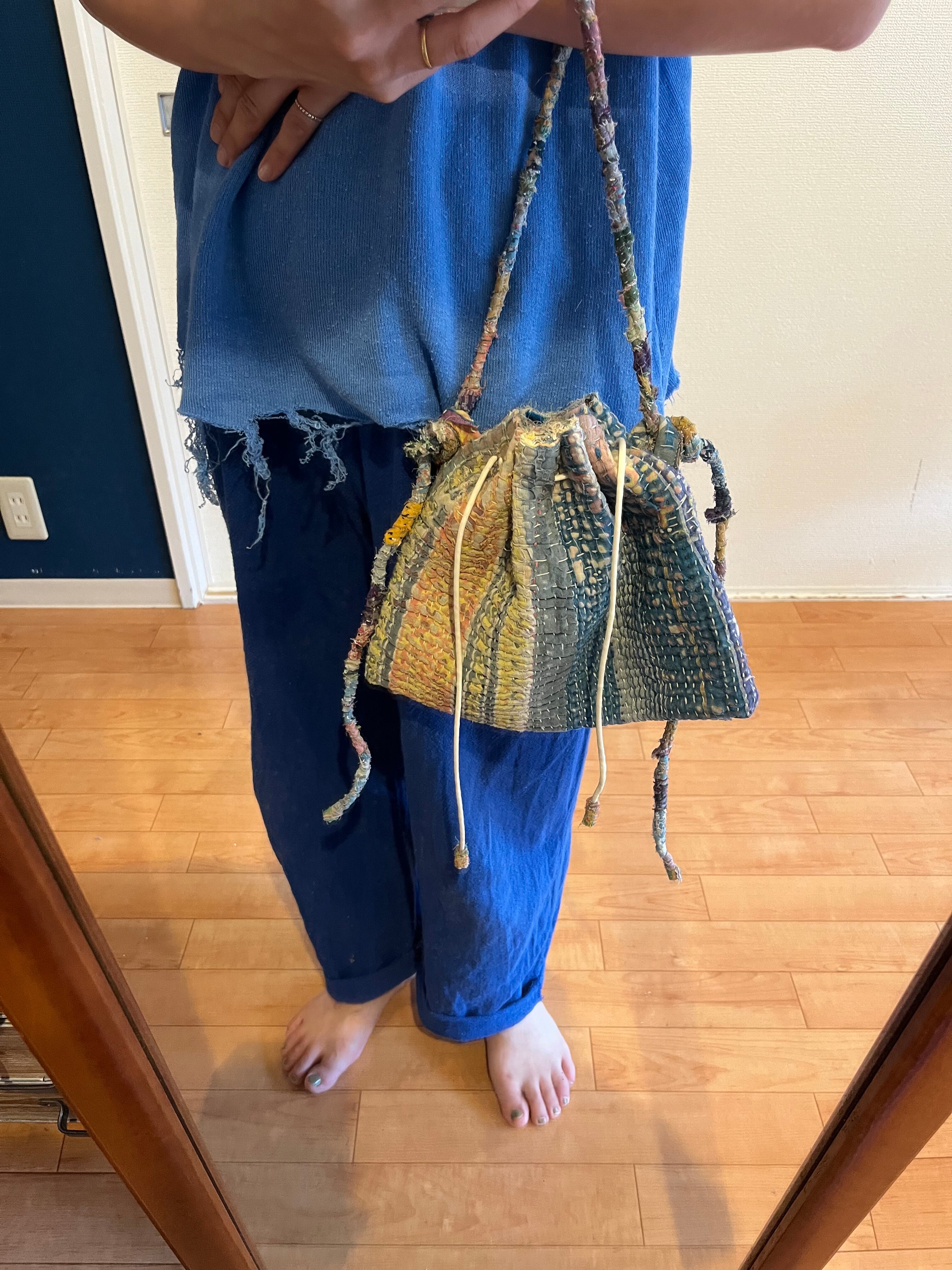 Vintage Kantha ショルダーバッグ Blue×Yellow×Pink
