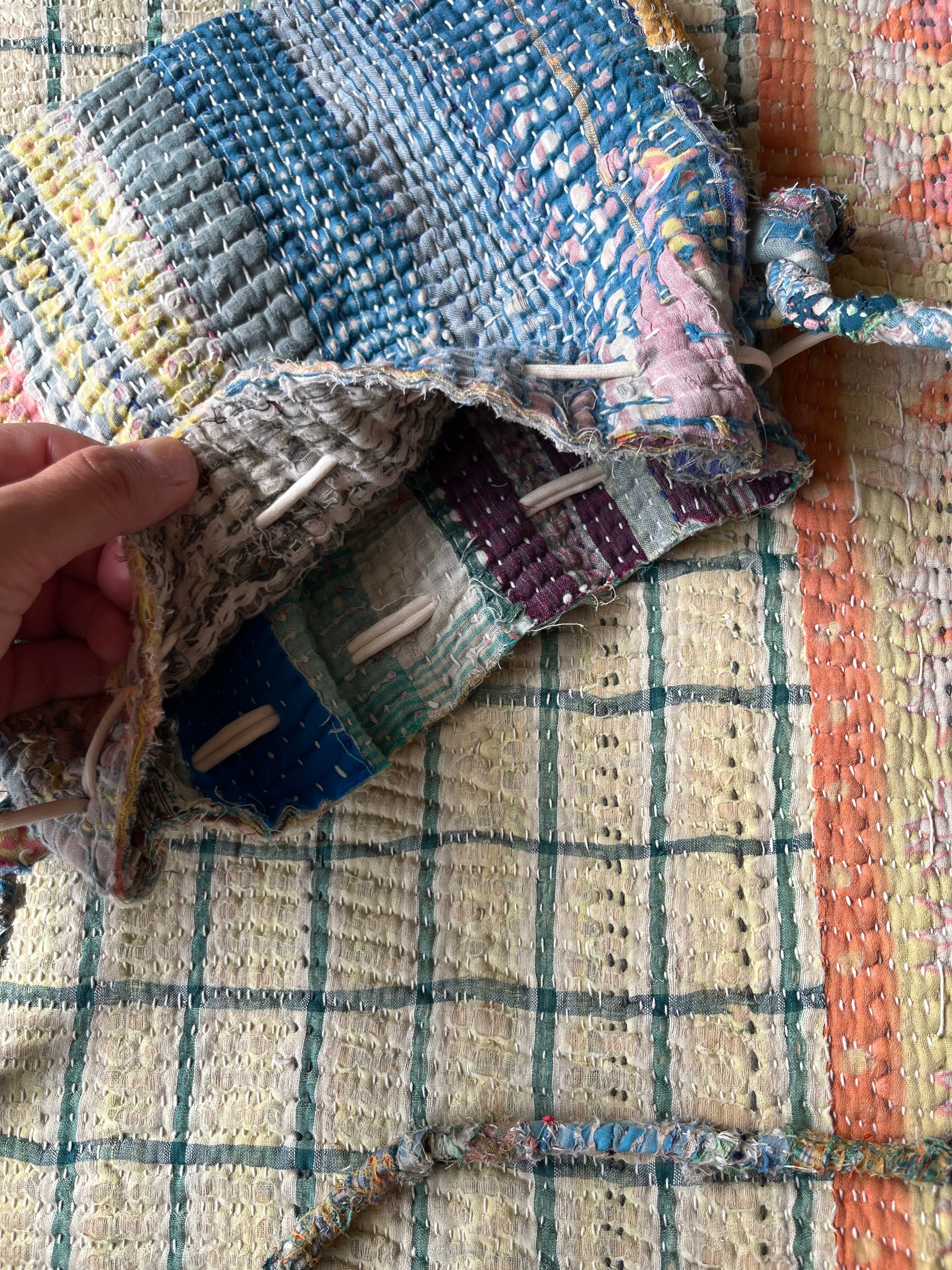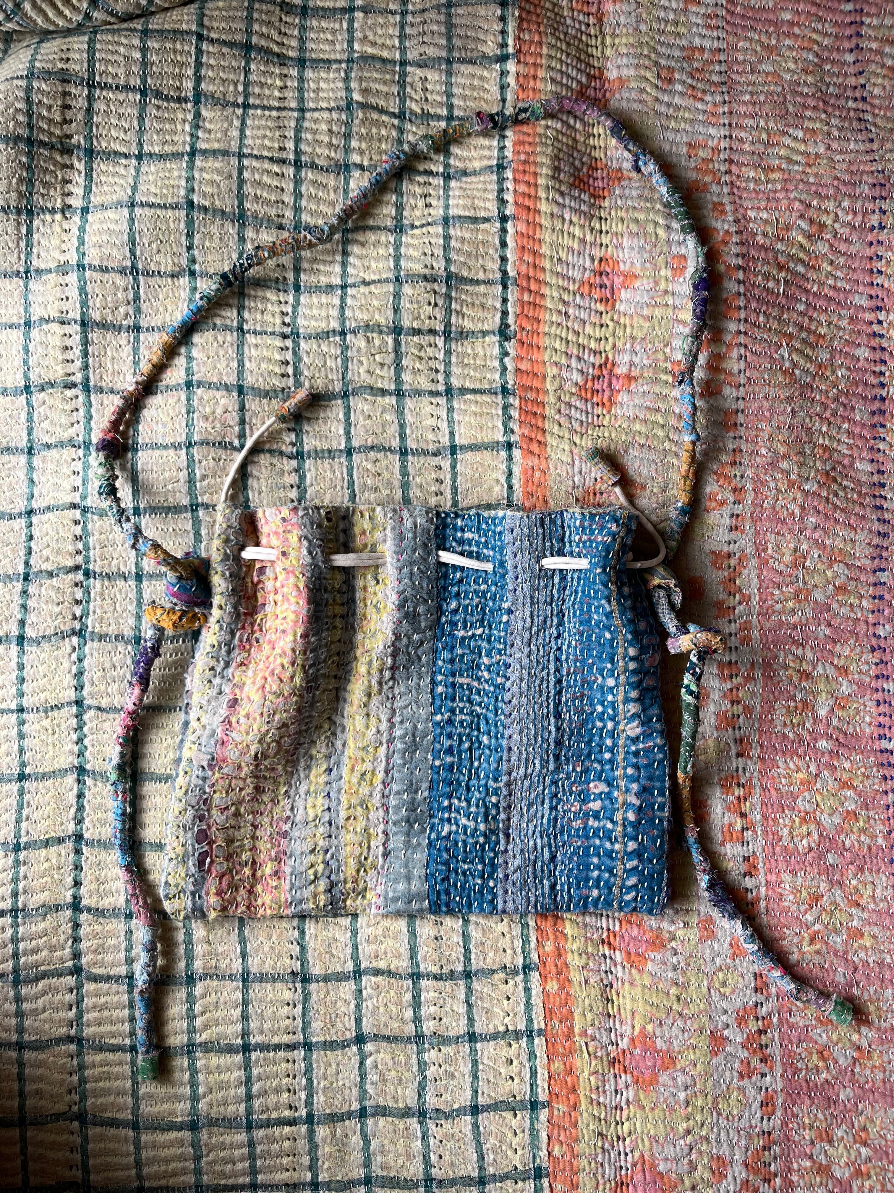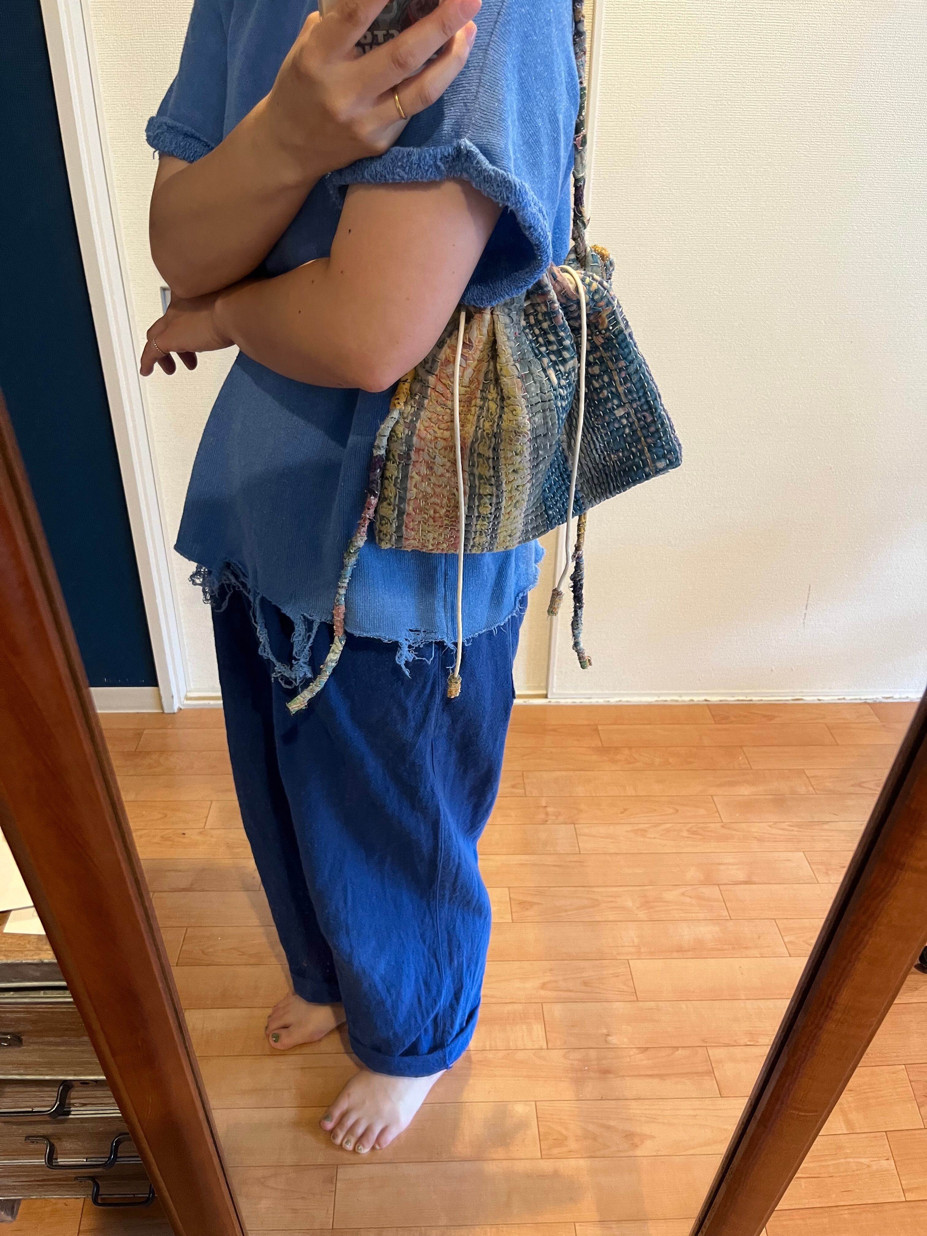 Vintage Kantha ショルダーバッグ Blue×Yellow×Pink