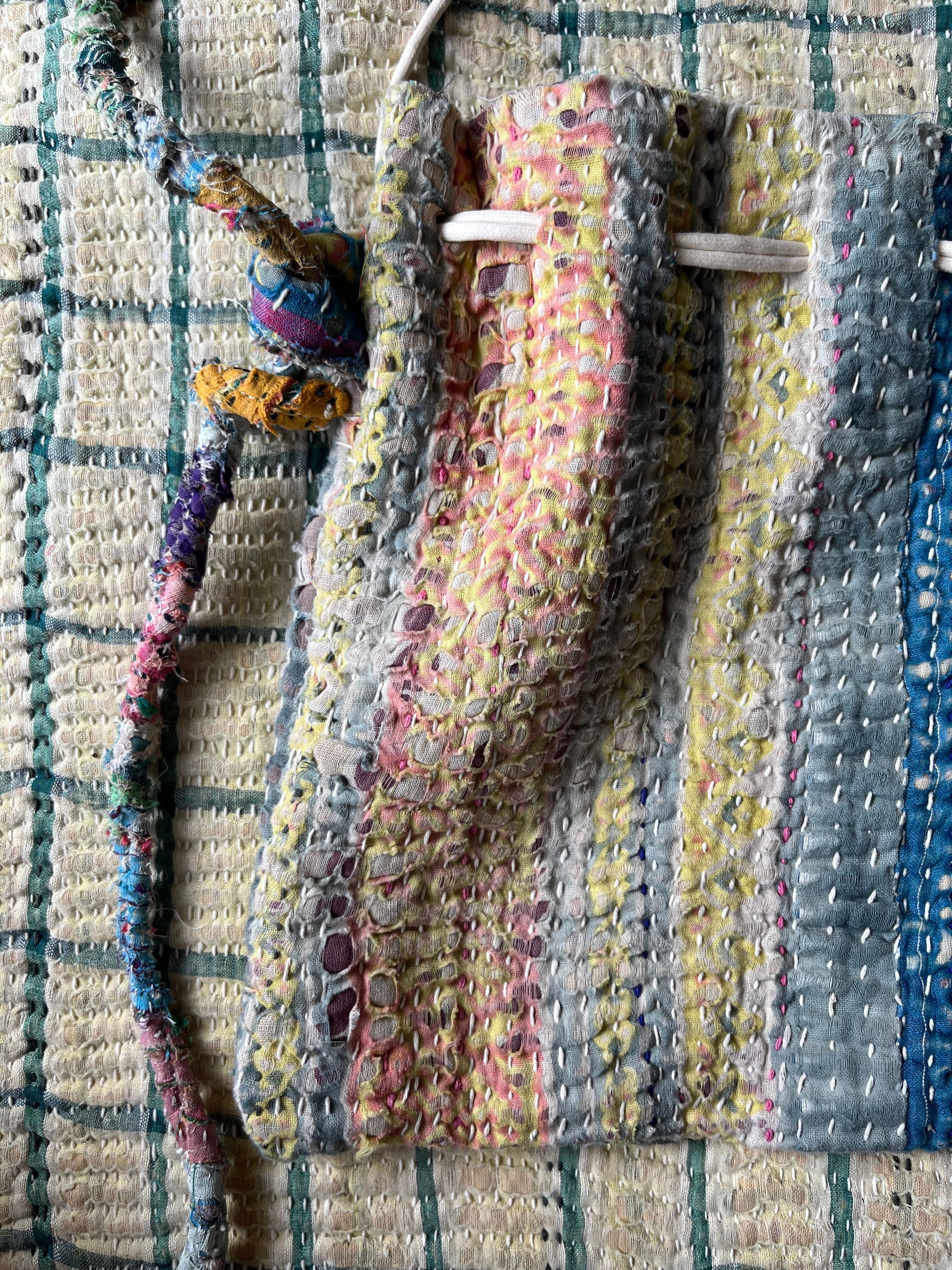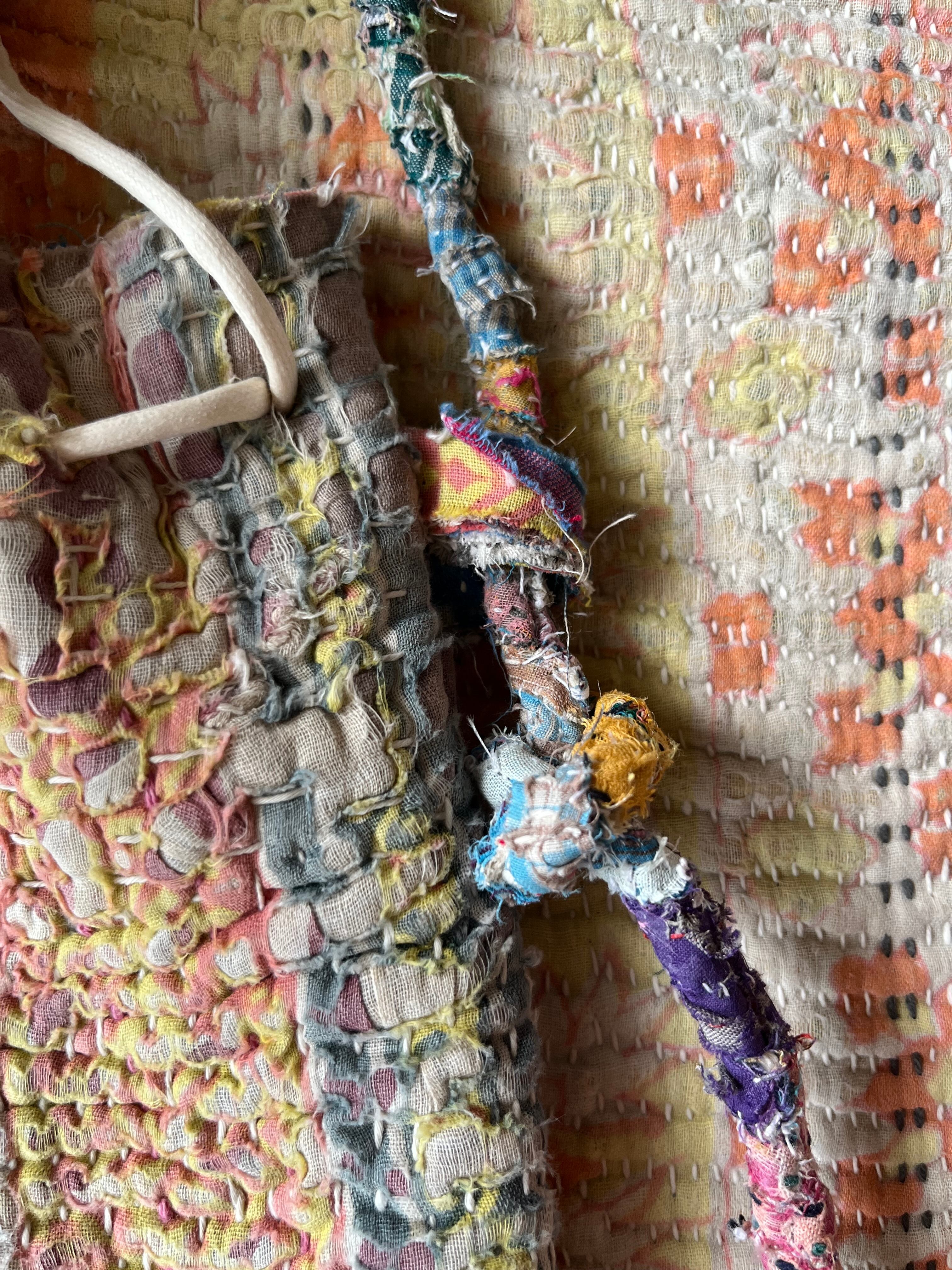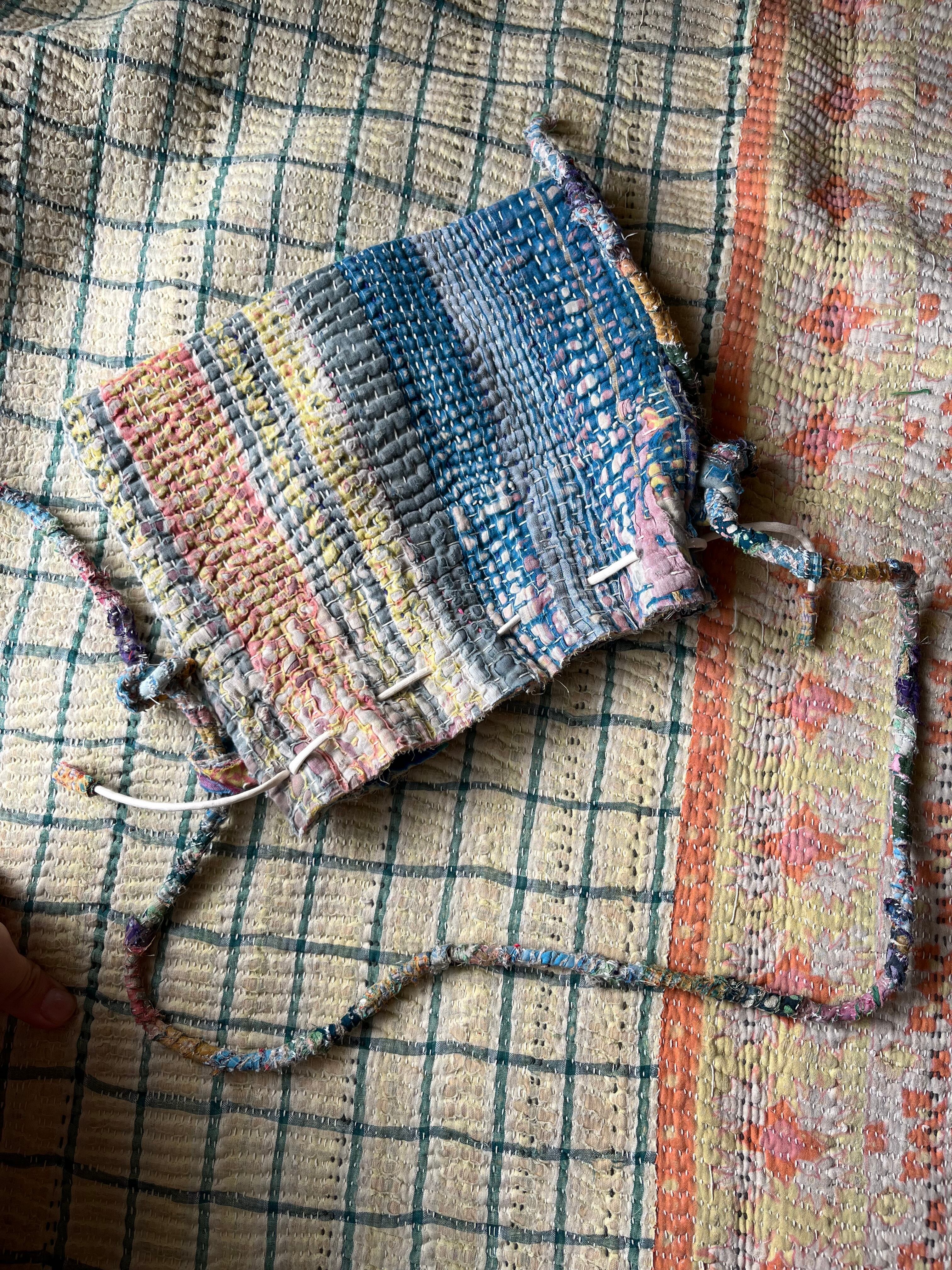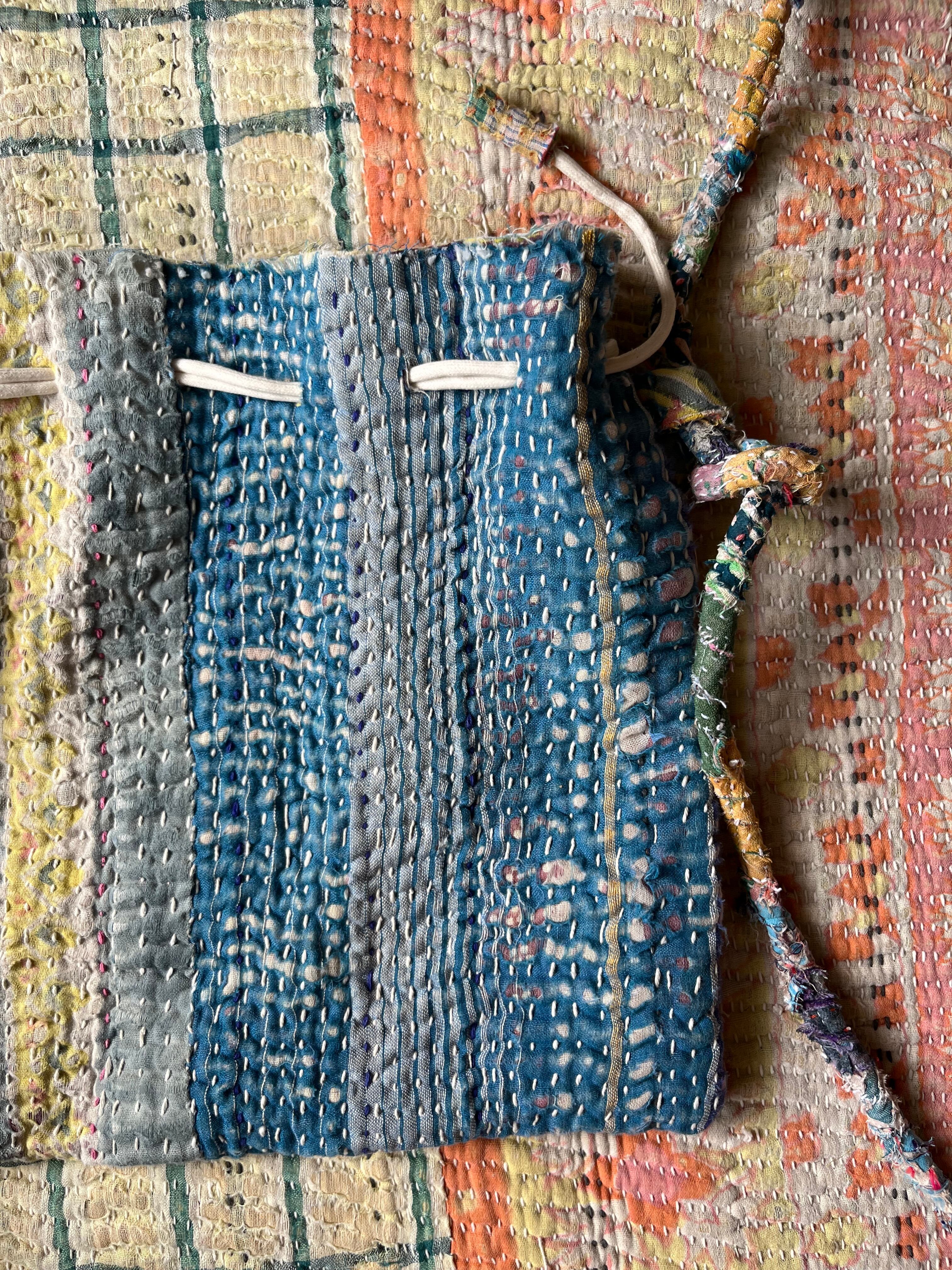 Vintage Kantha ショルダーバッグ Blue×Yellow×Pink