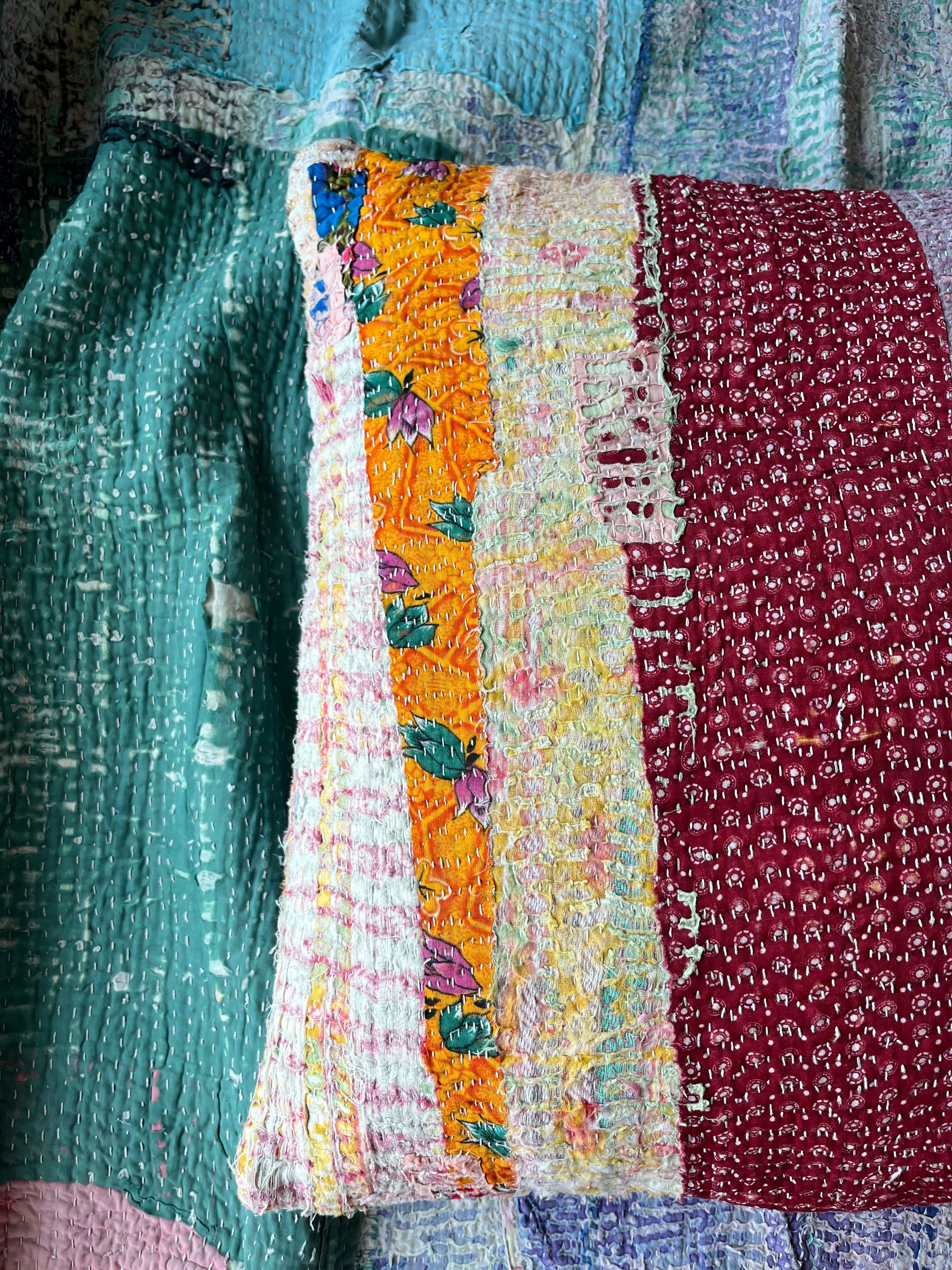 Vintage Kantha Cushion Cover 45×45 iroiro mix (カバーのみ)