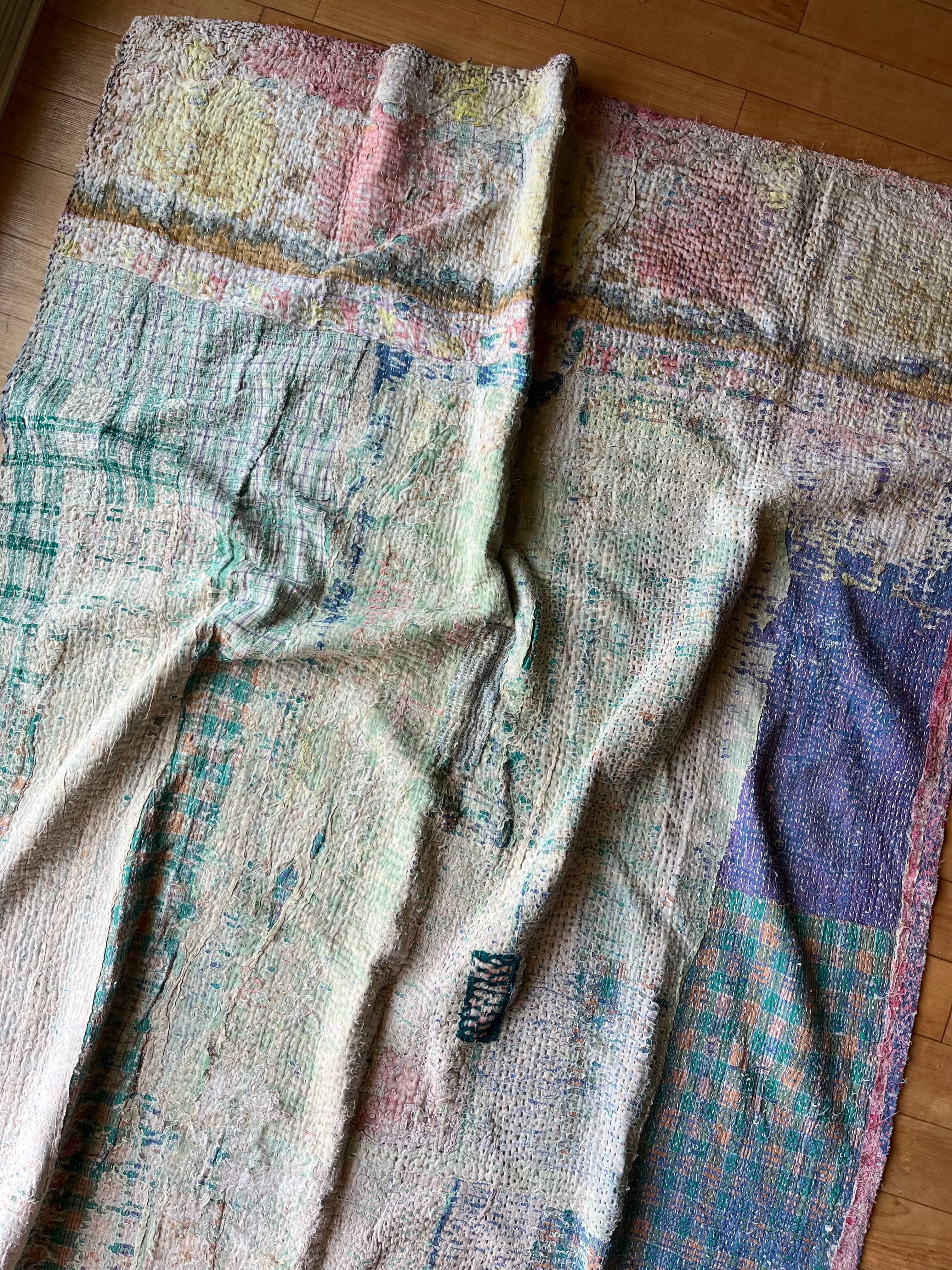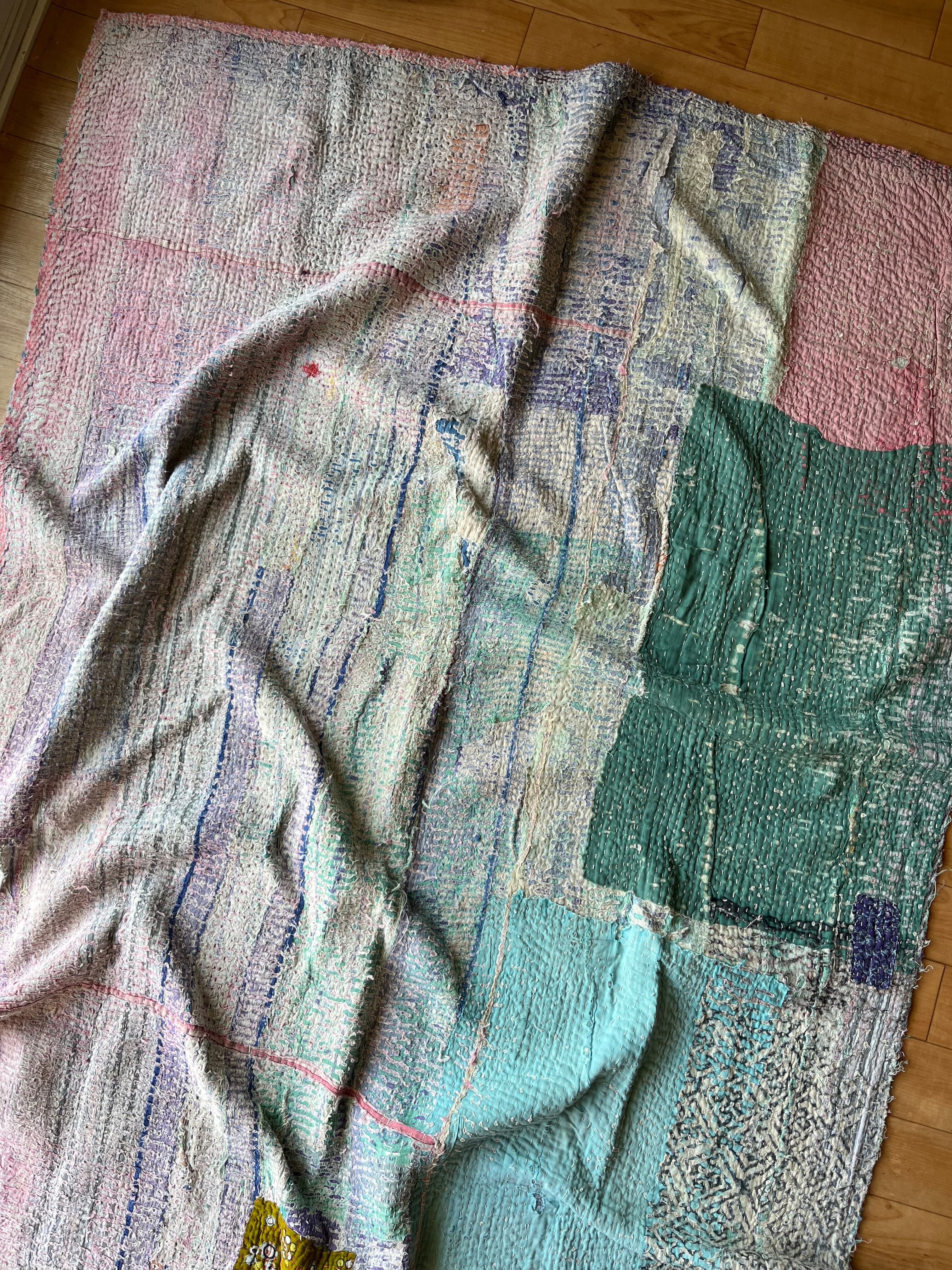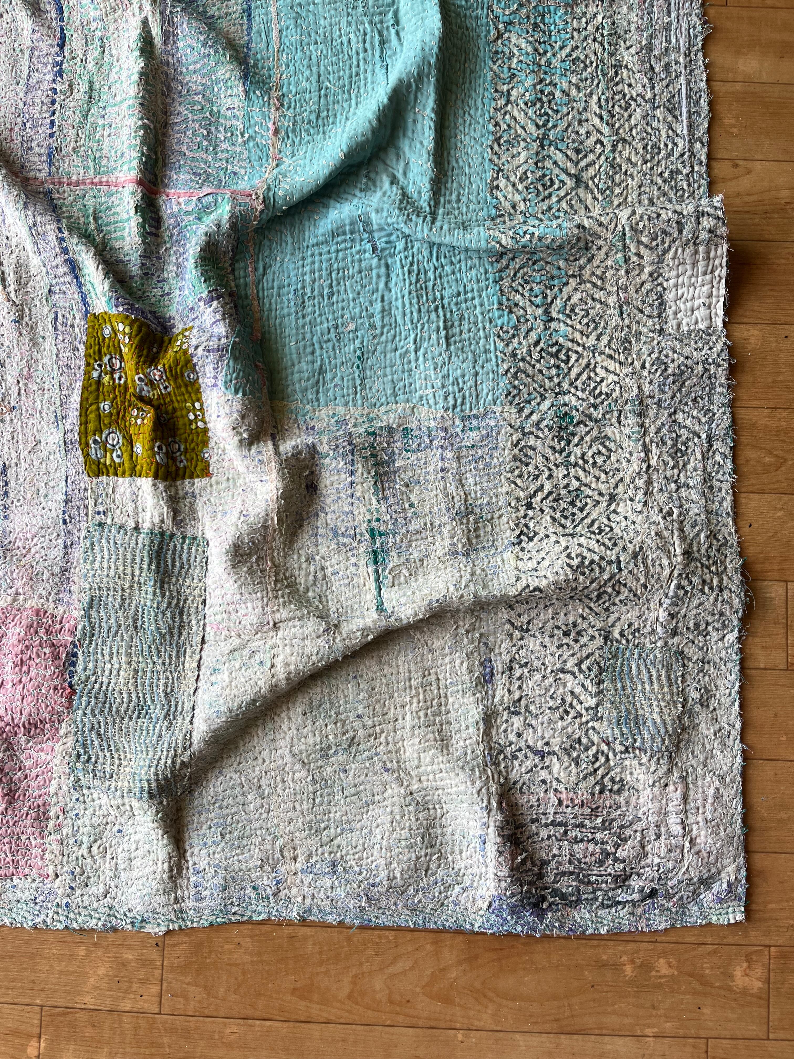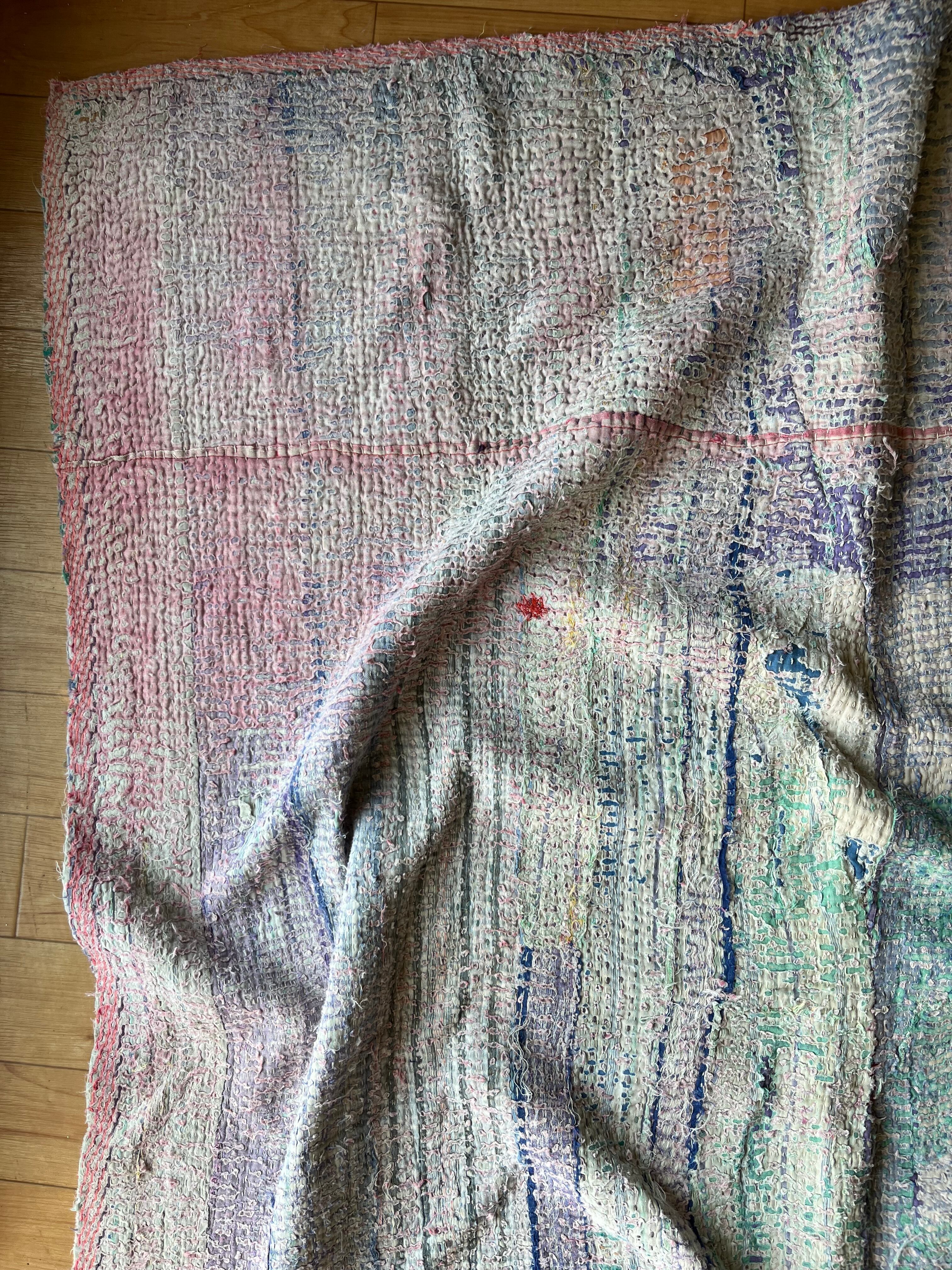 柔らかい色合いに包まれたヴィンテージカンタキルト。