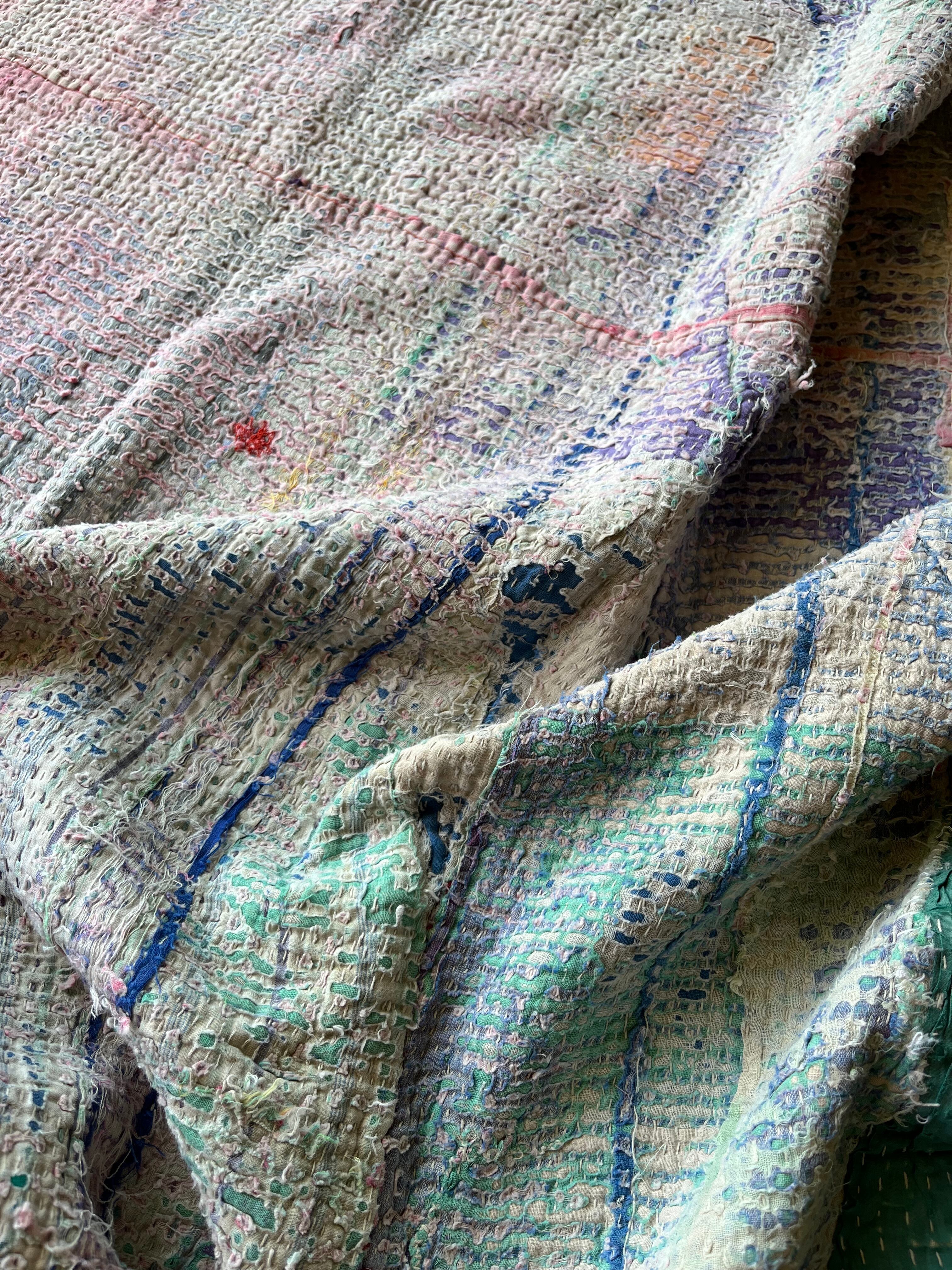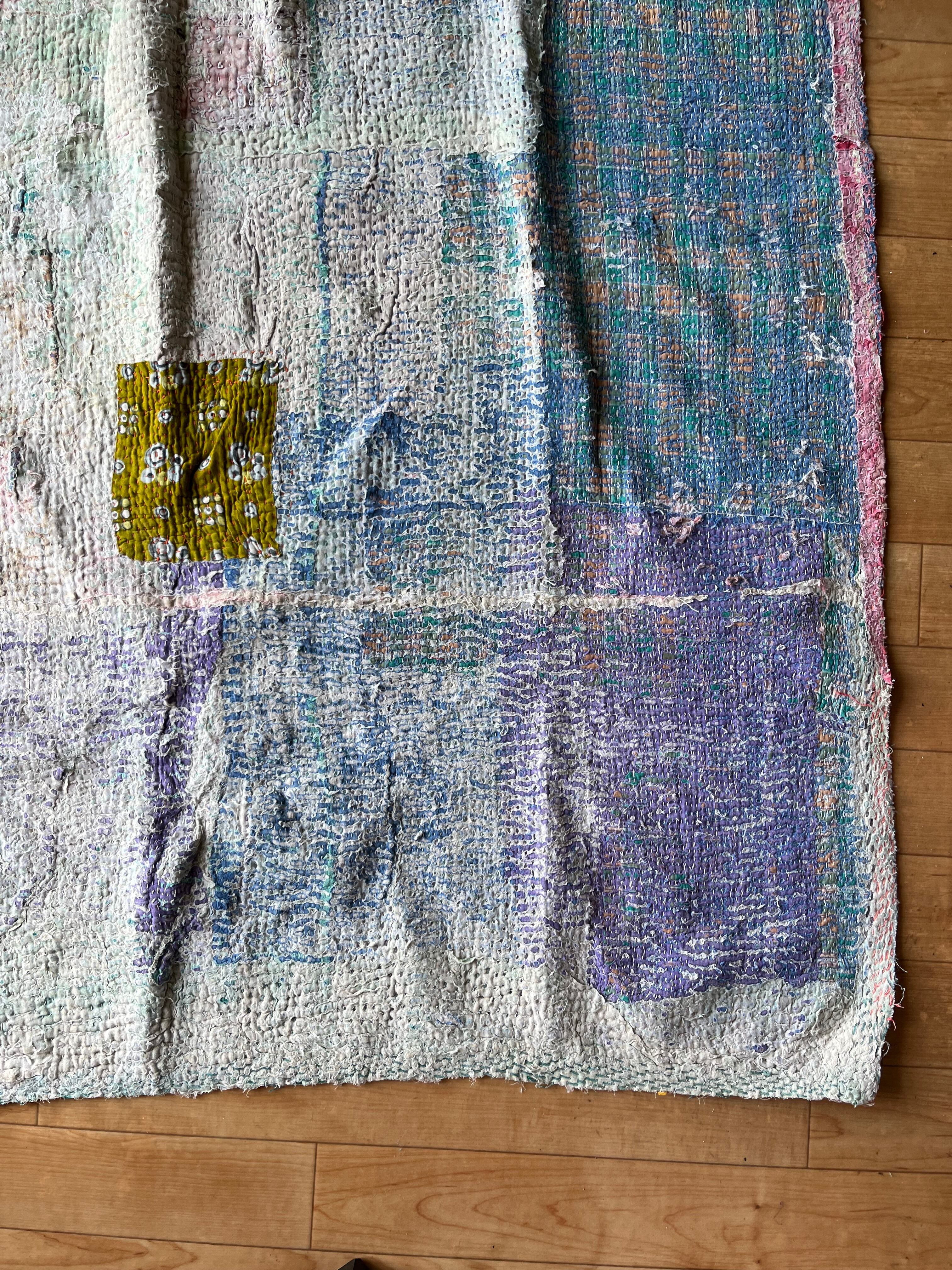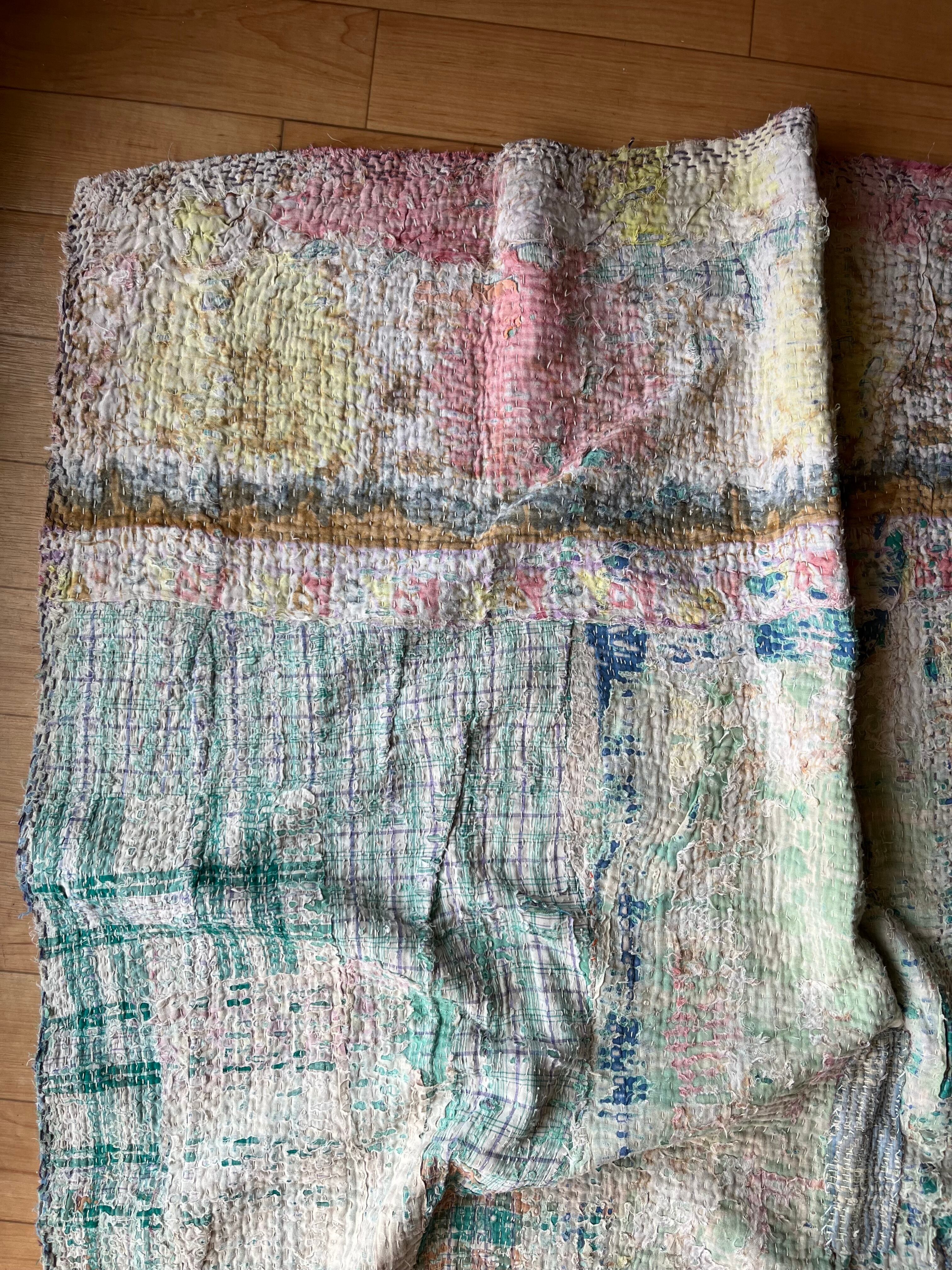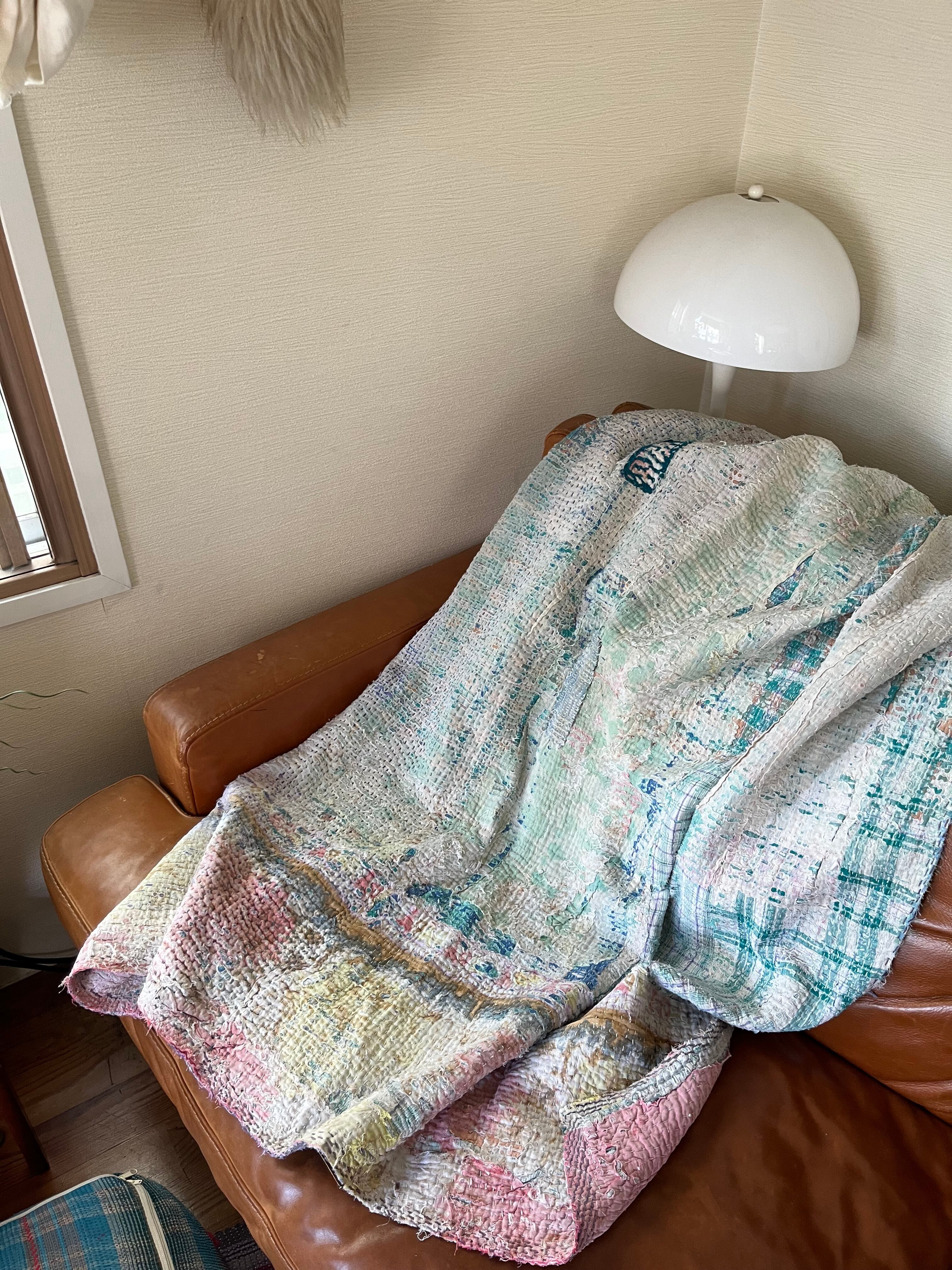 柔らかい色合いに包まれたヴィンテージカンタキルト。