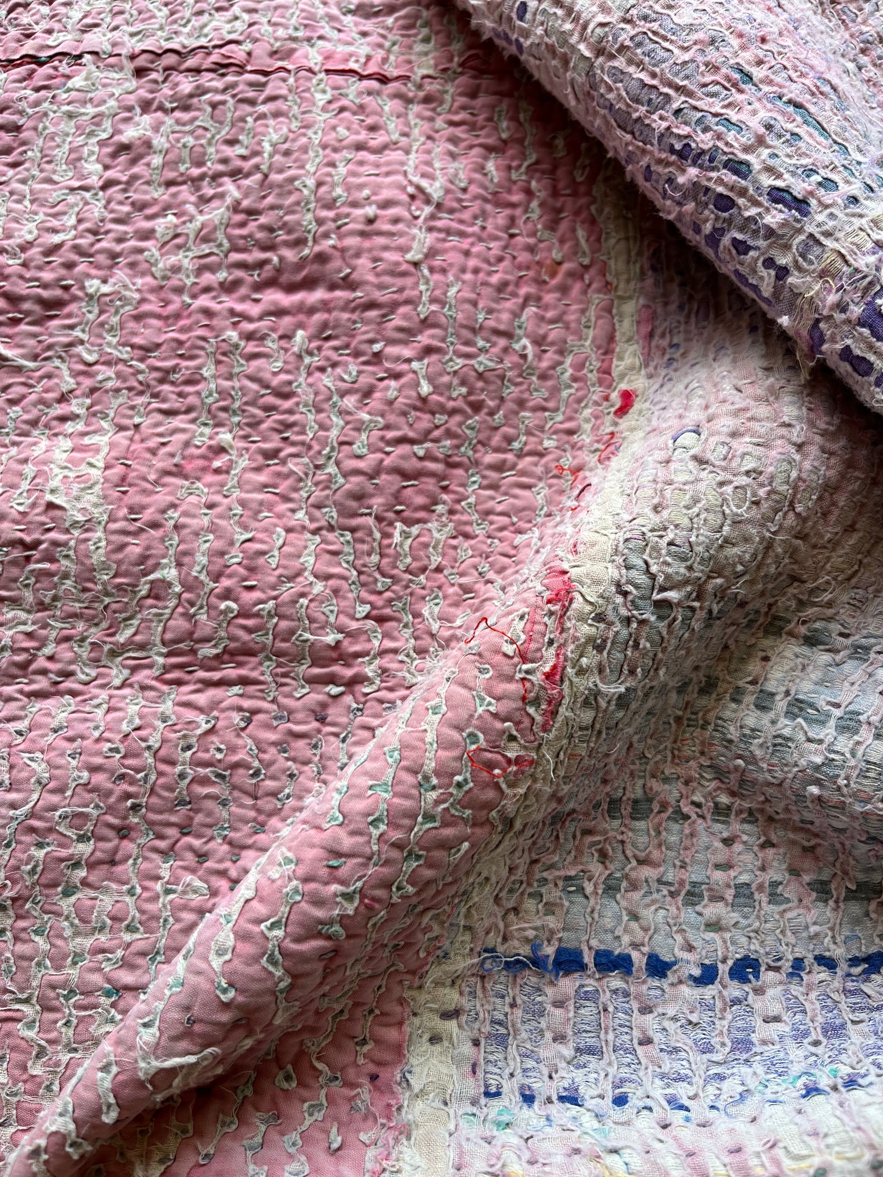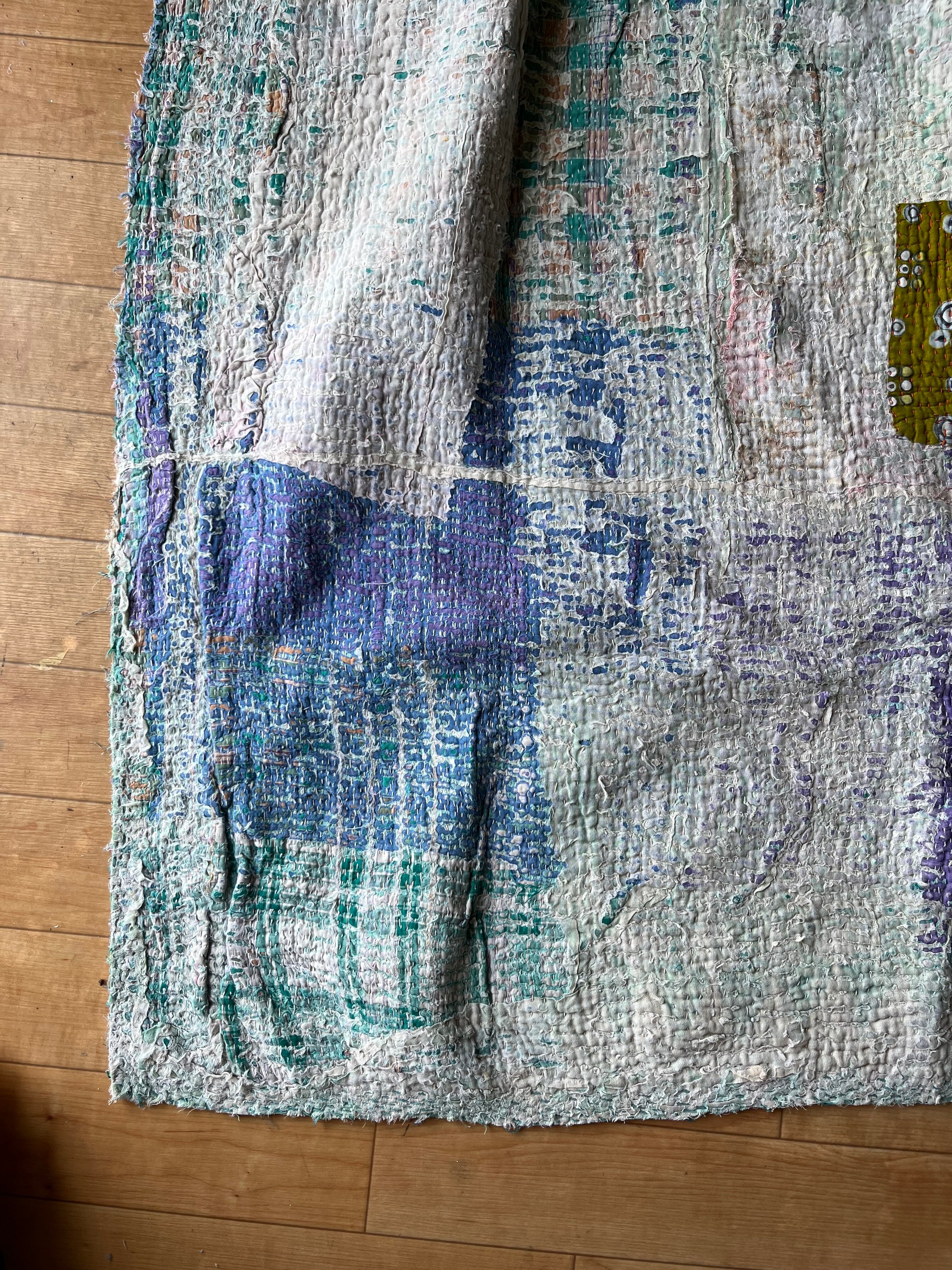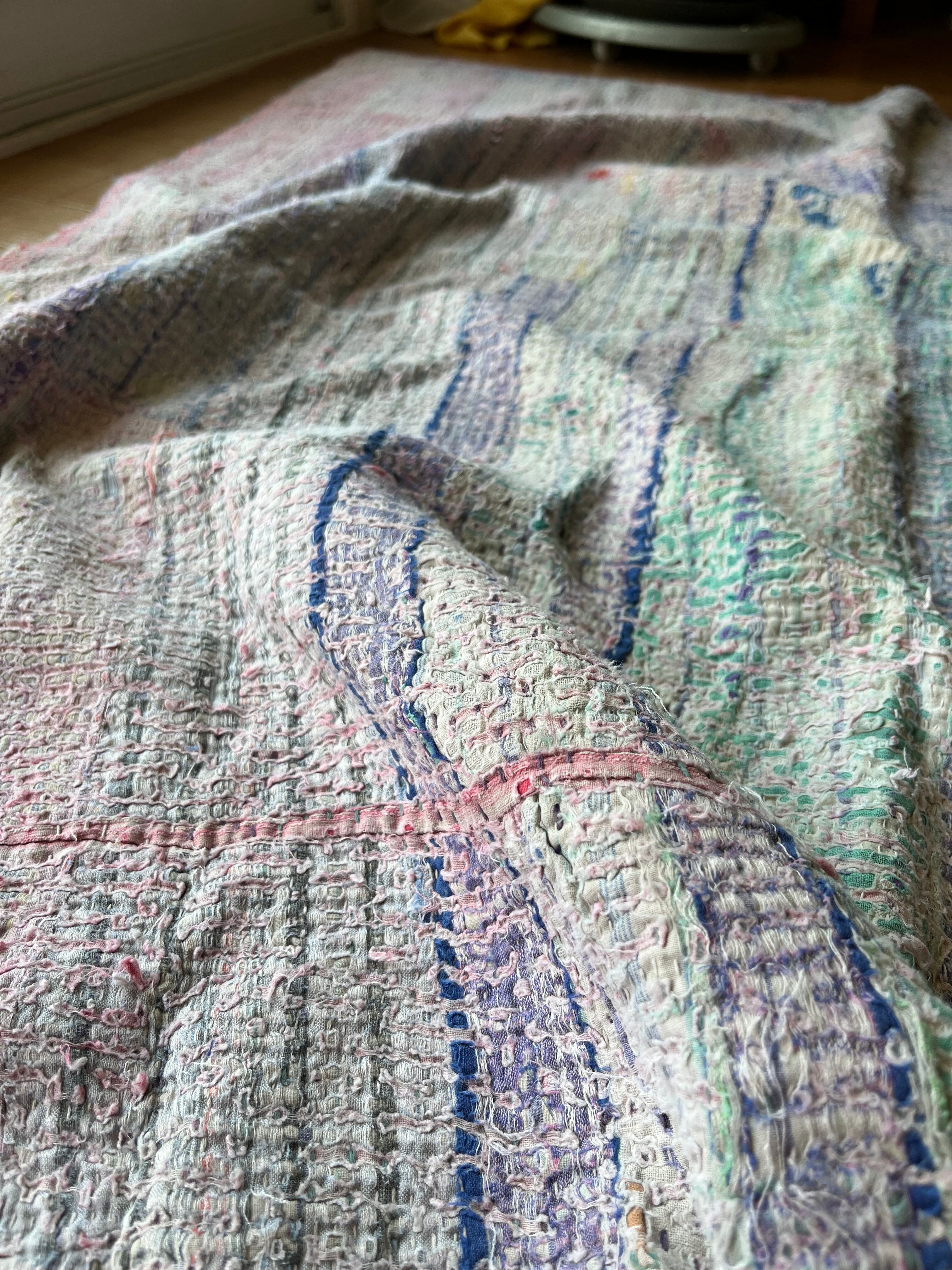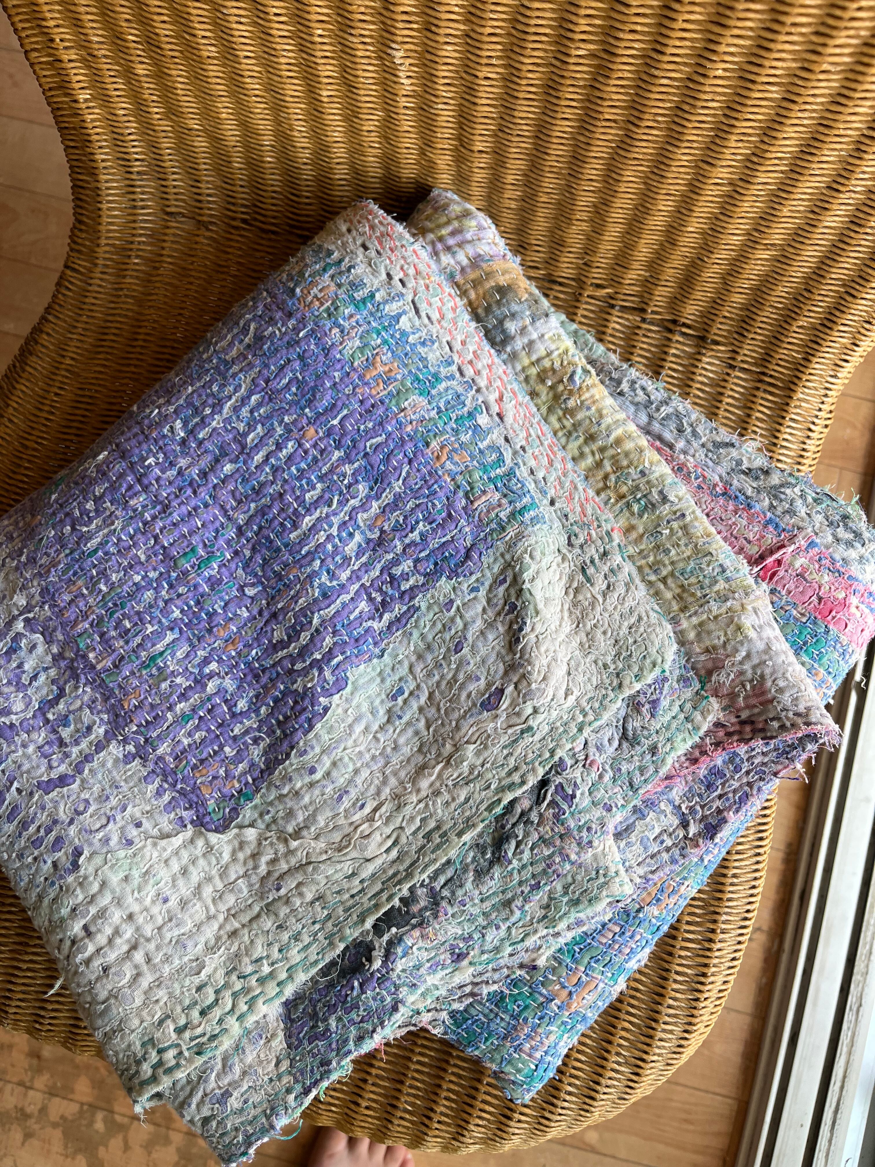 柔らかい色合いに包まれたヴィンテージカンタキルト。