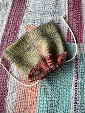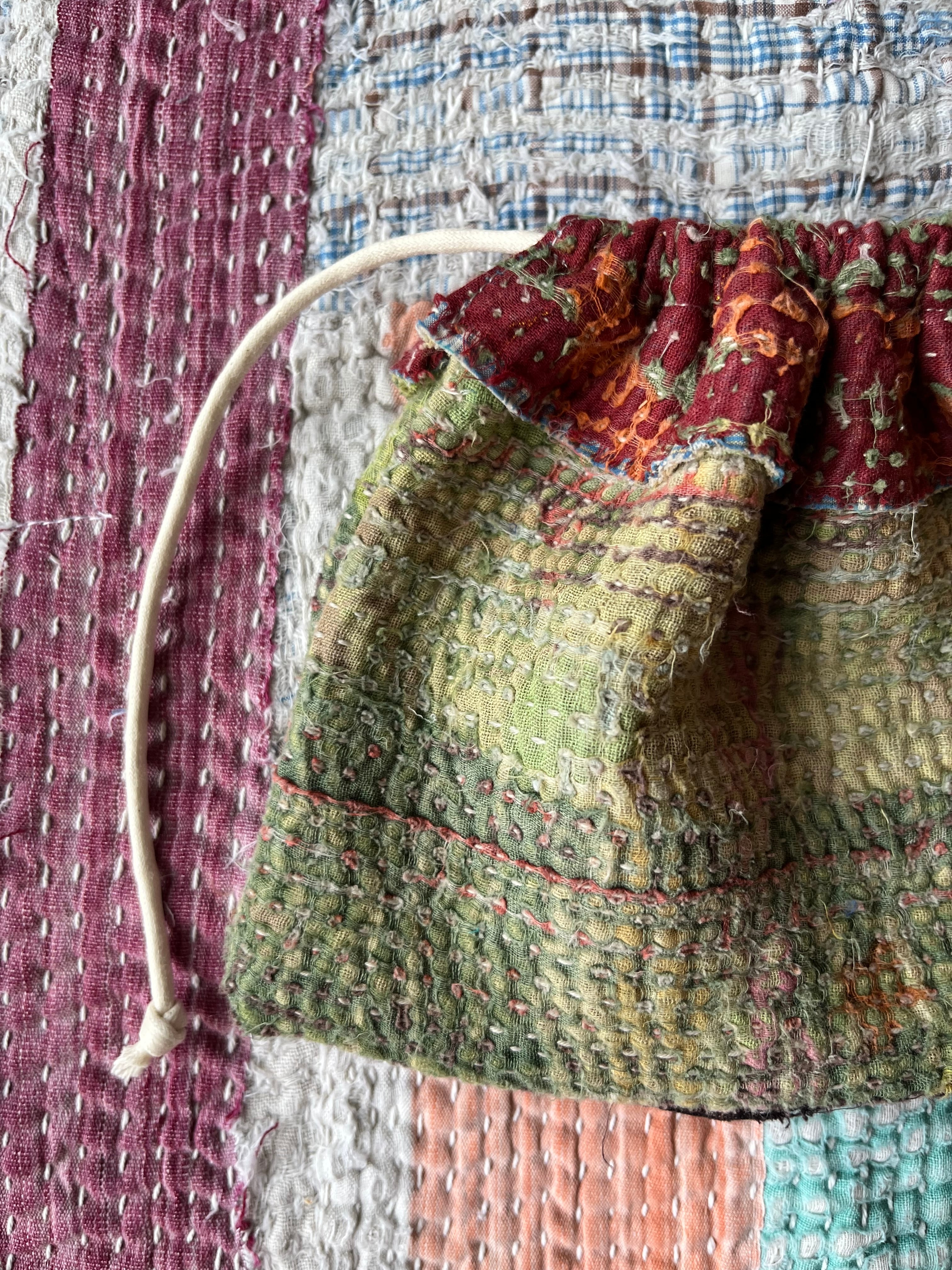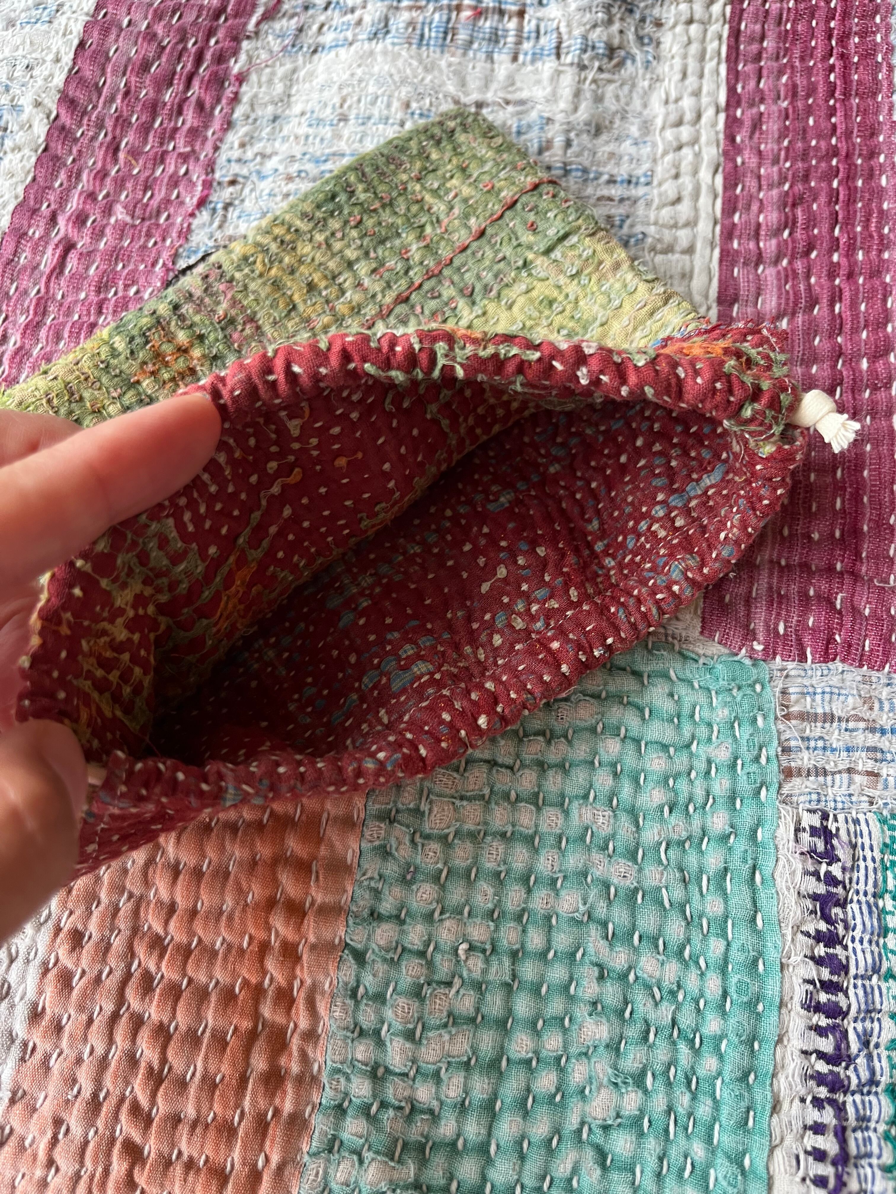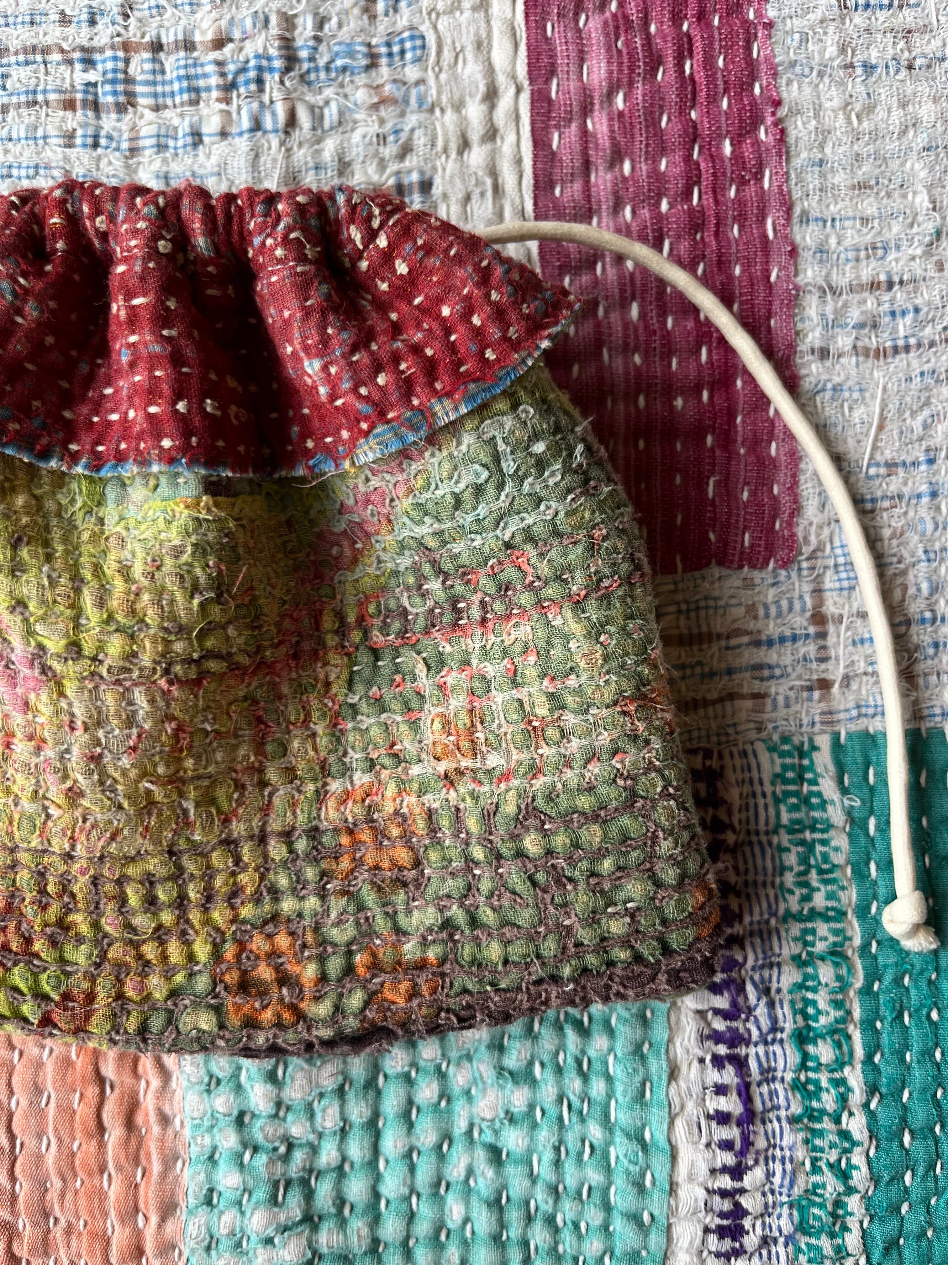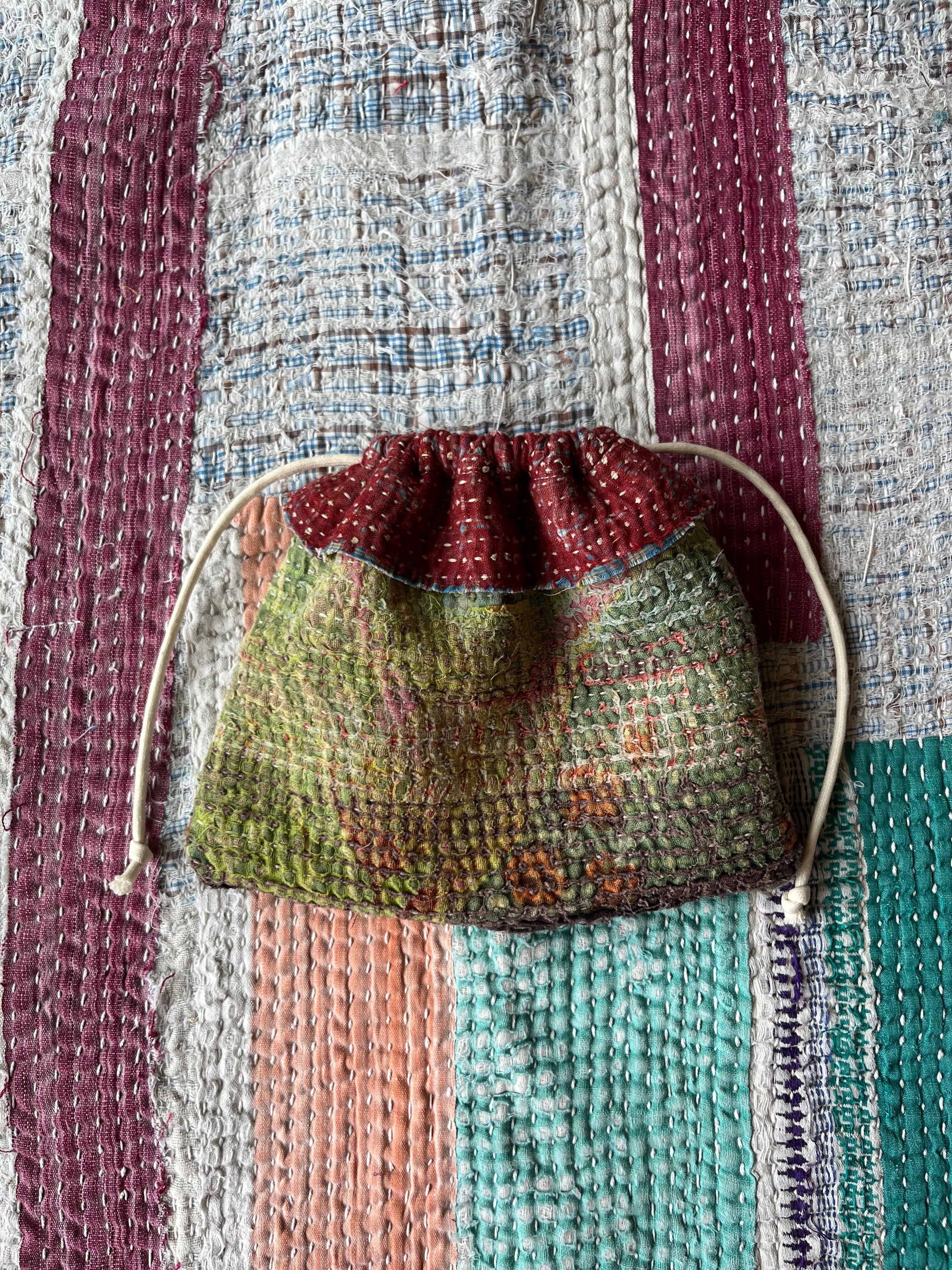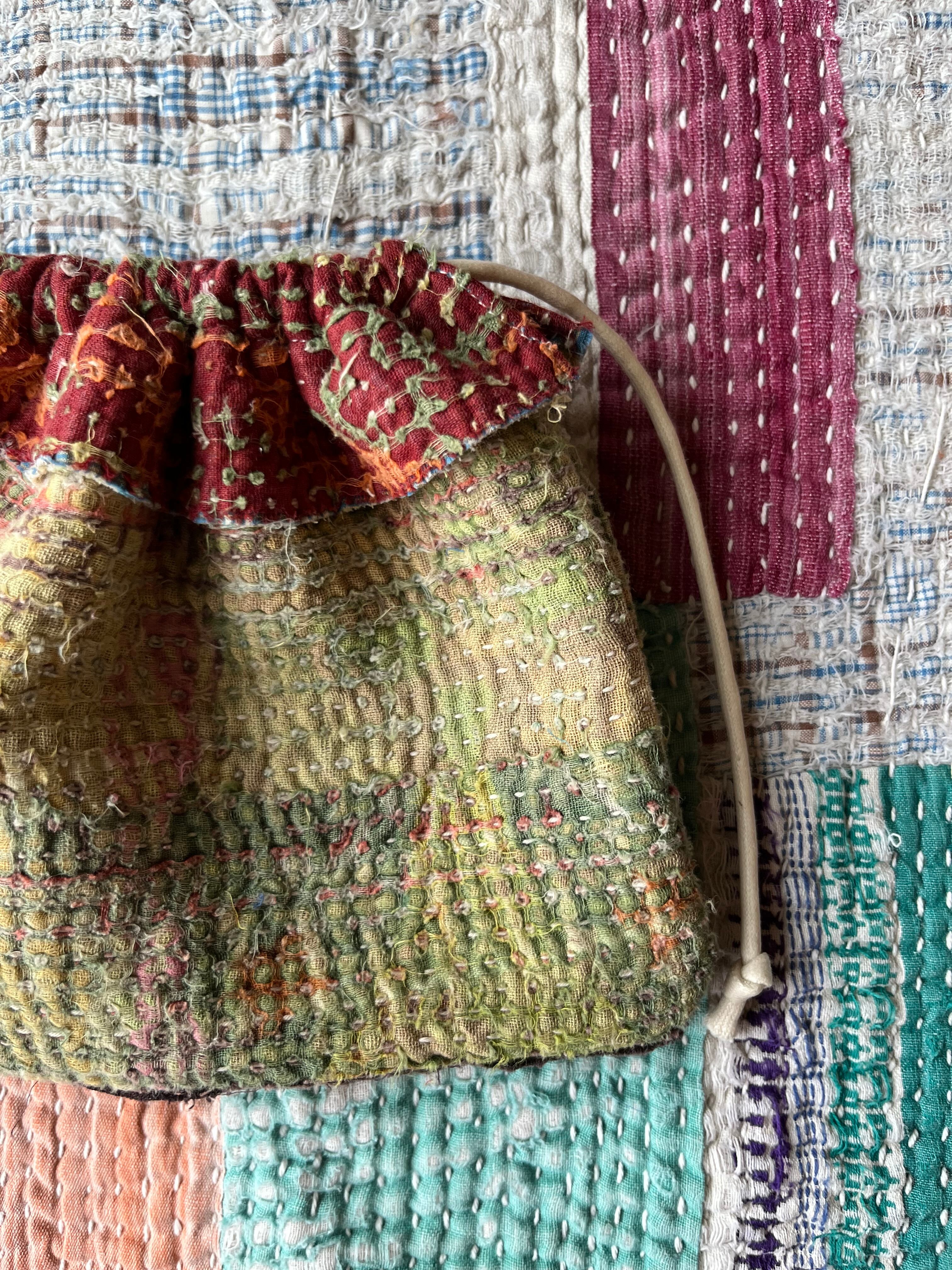 Vintage Kantha ミニ巾着 Brown×Khaki