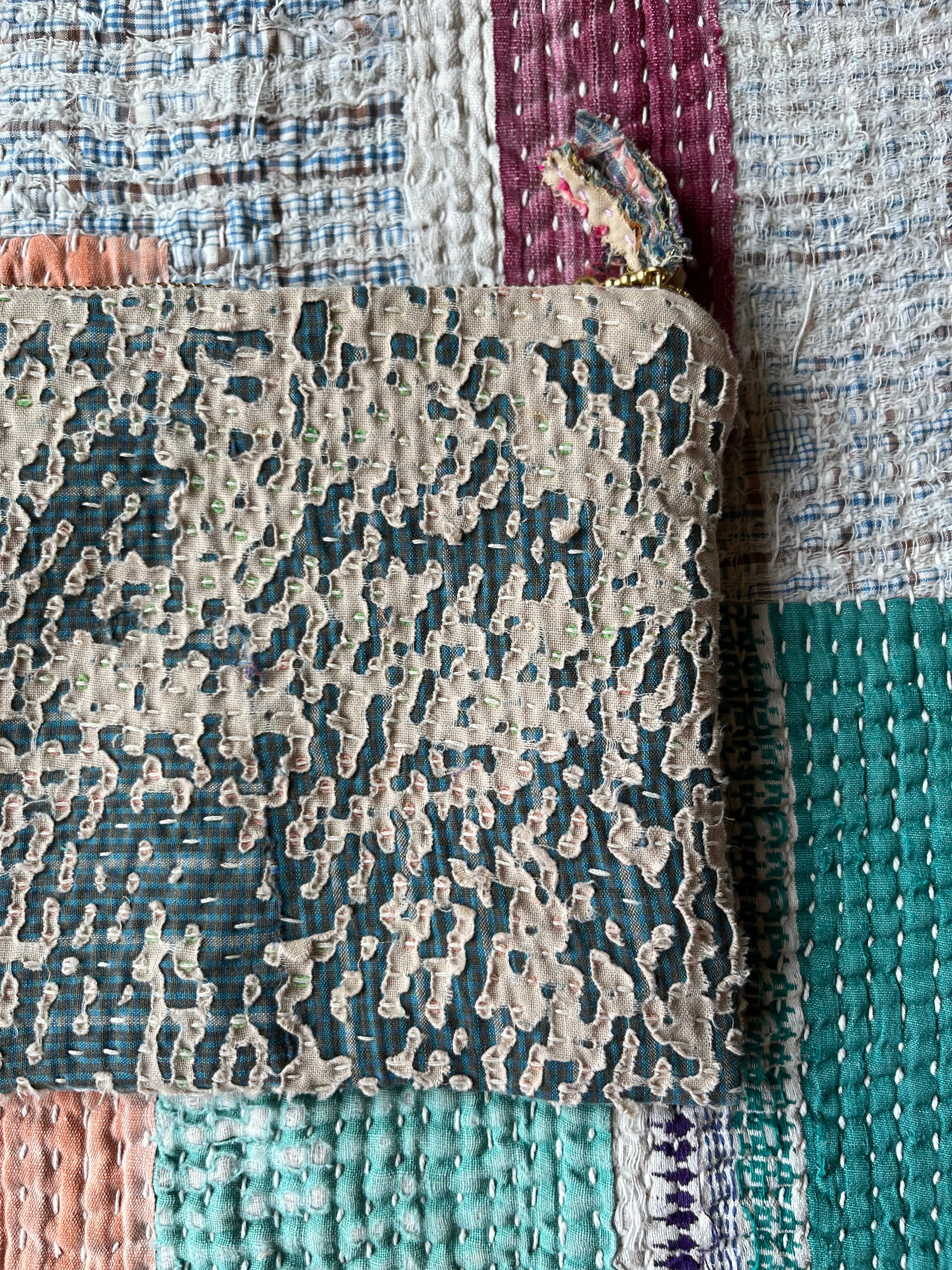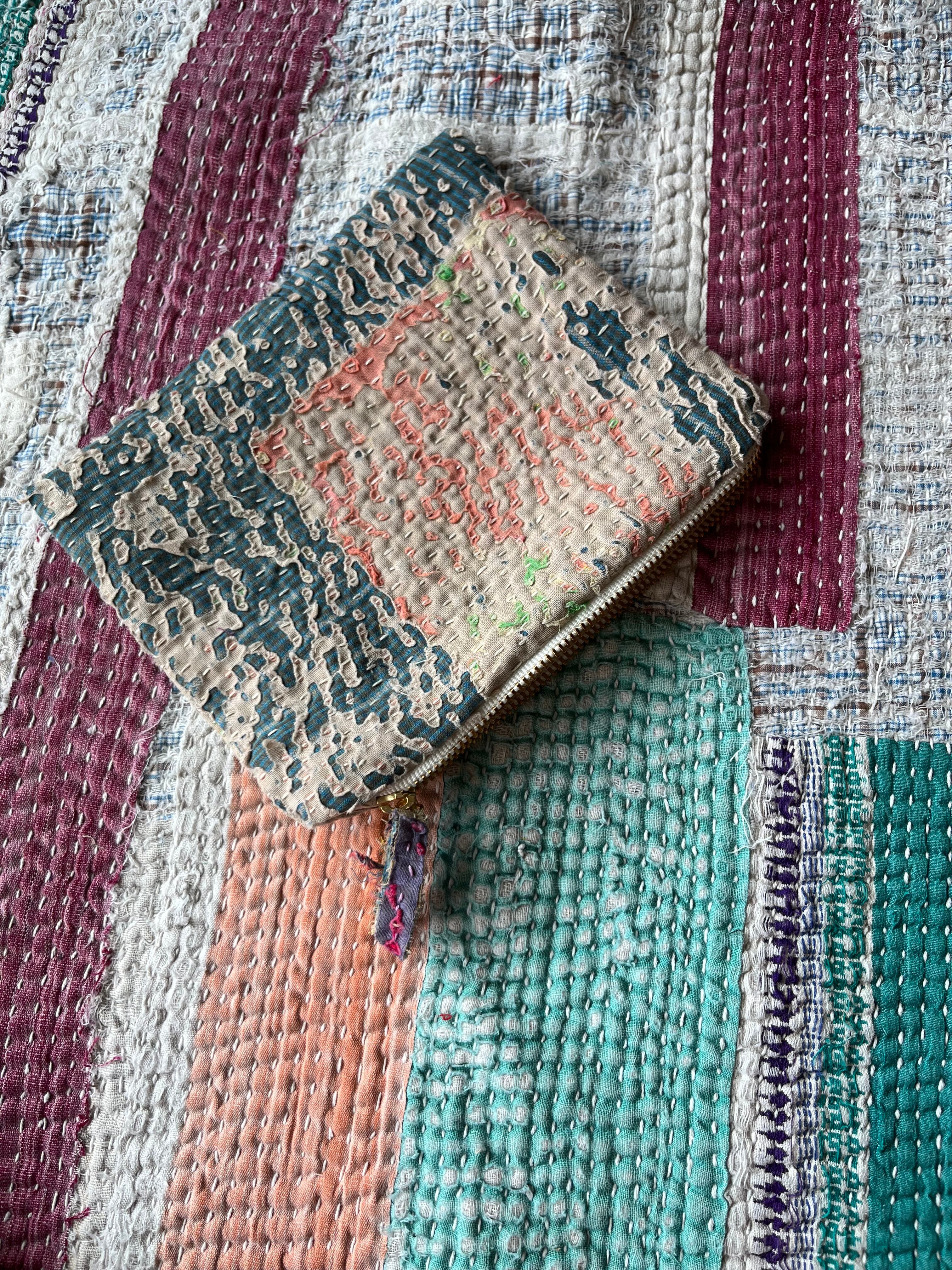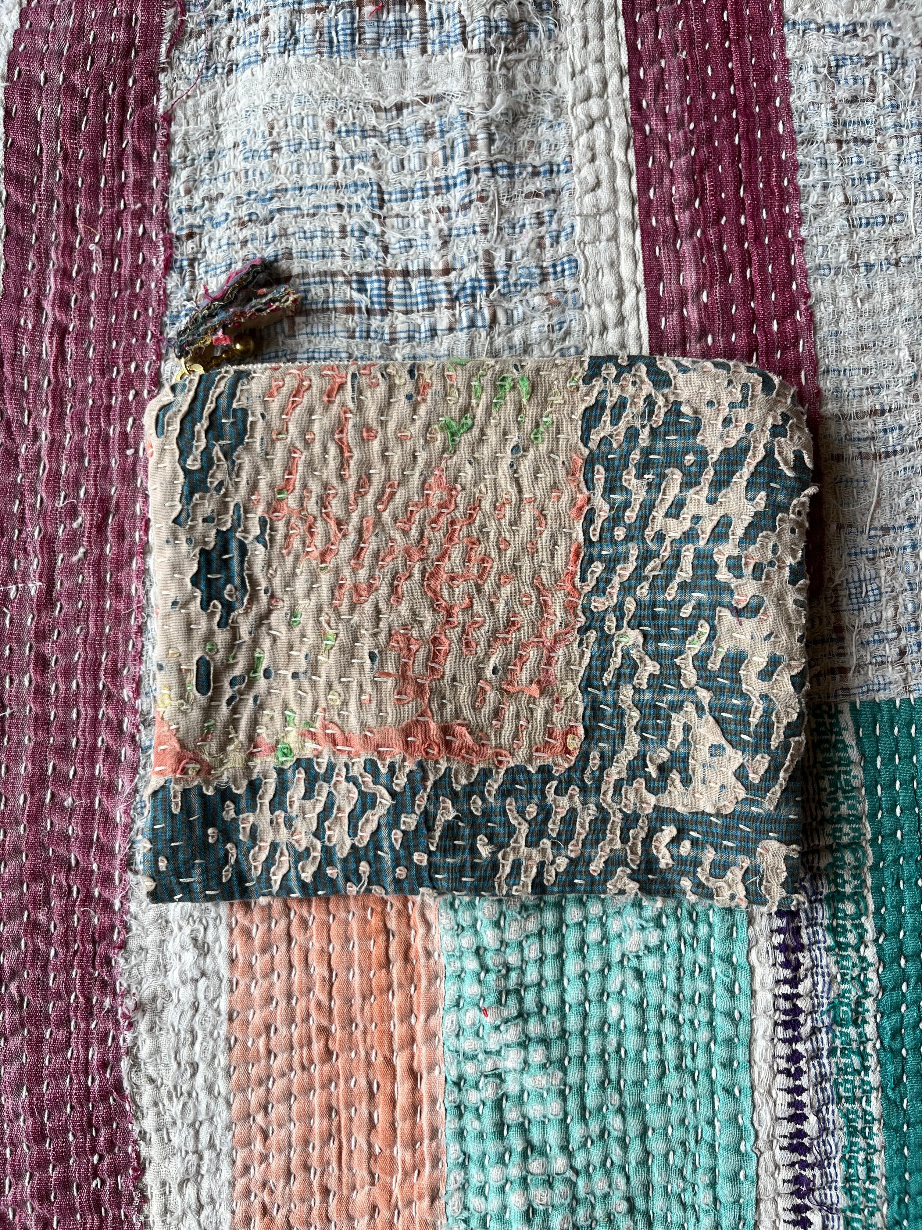 Vintage Kantha フラットミニポーチ natural