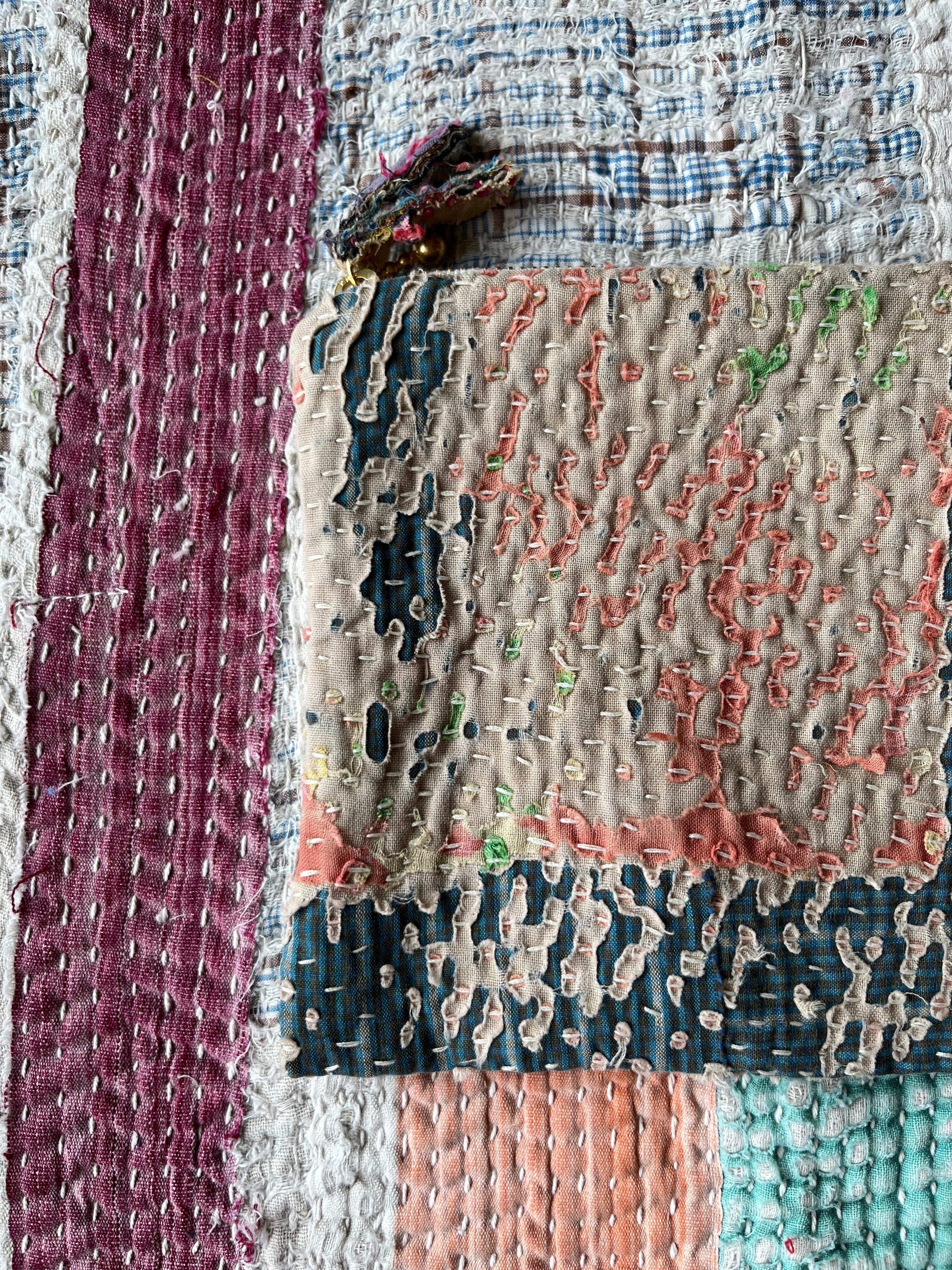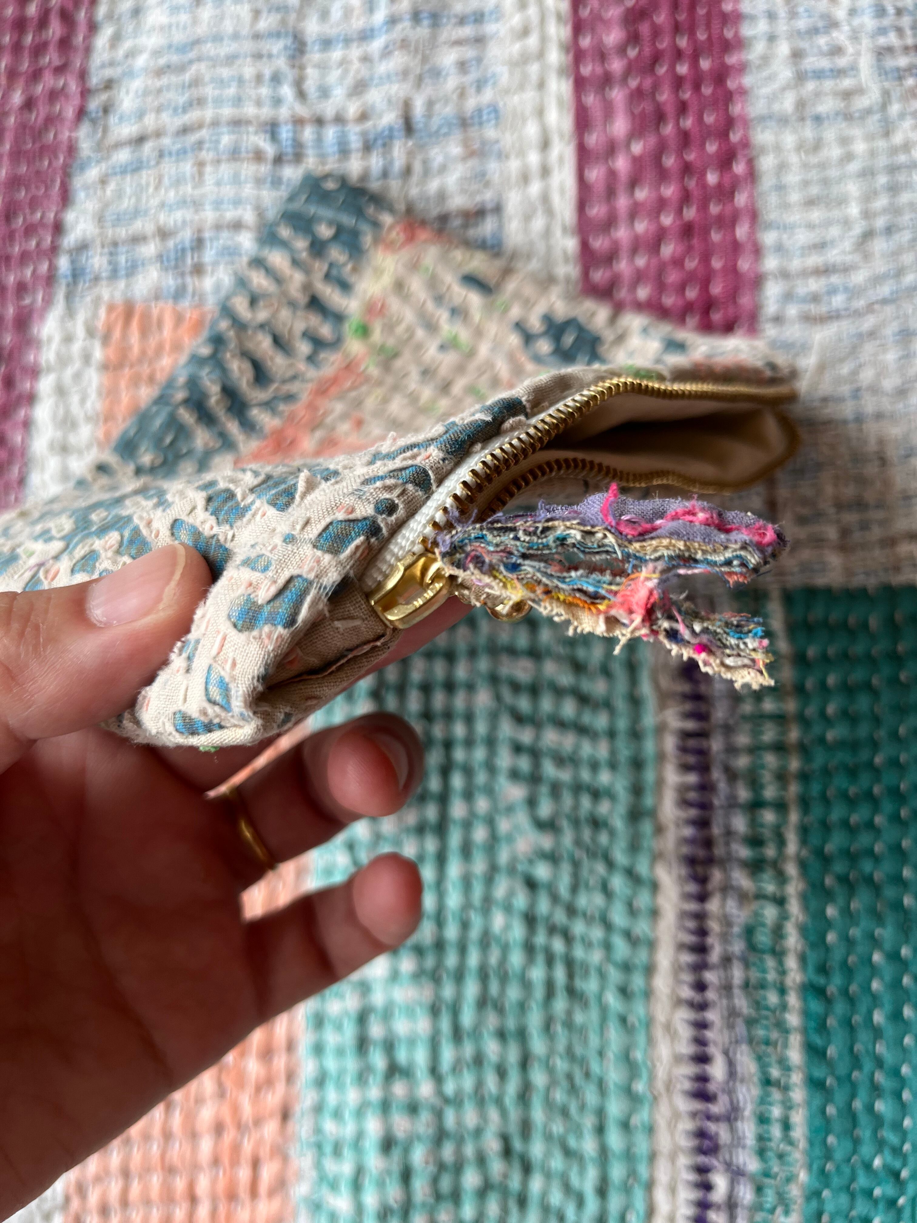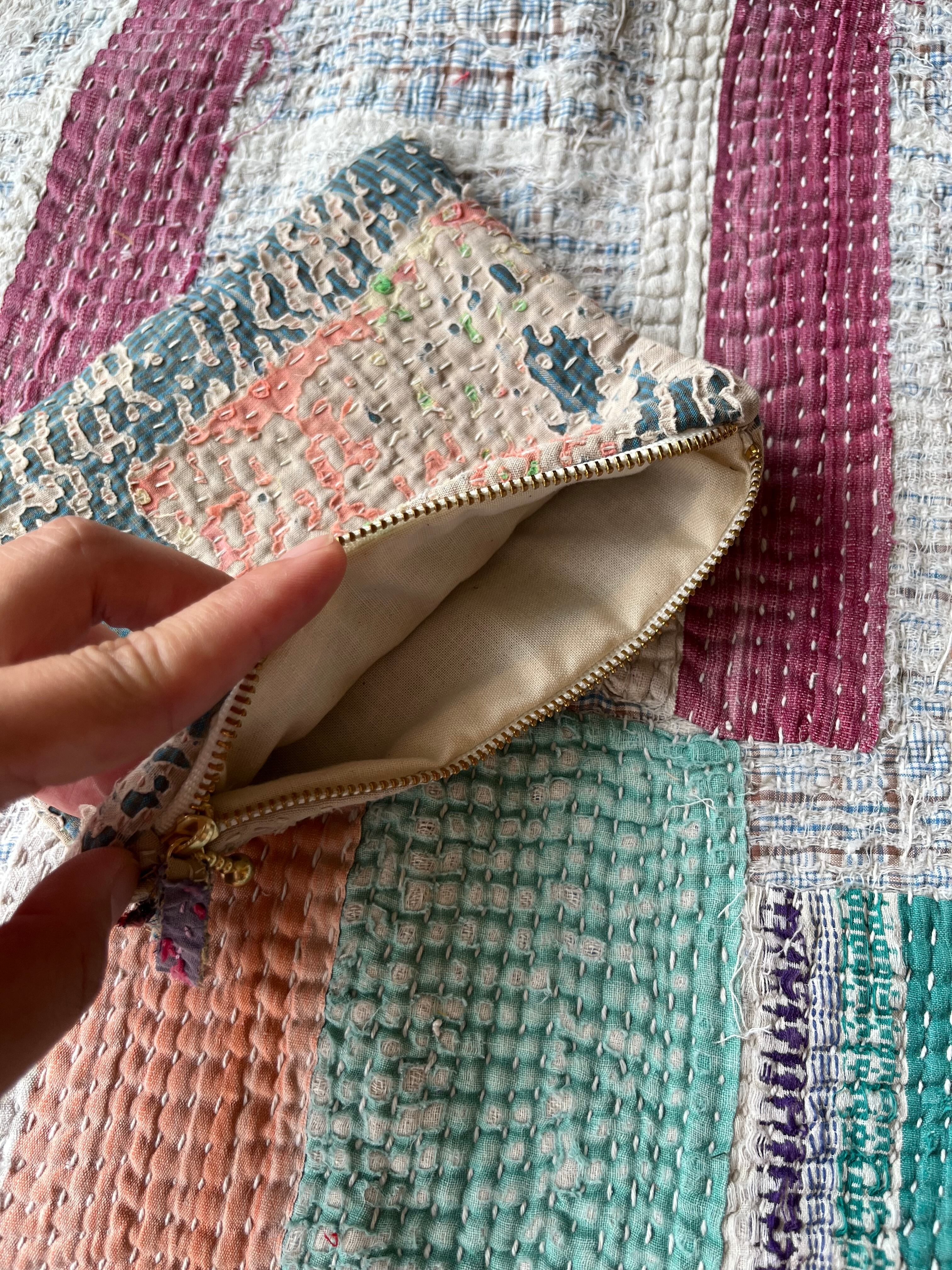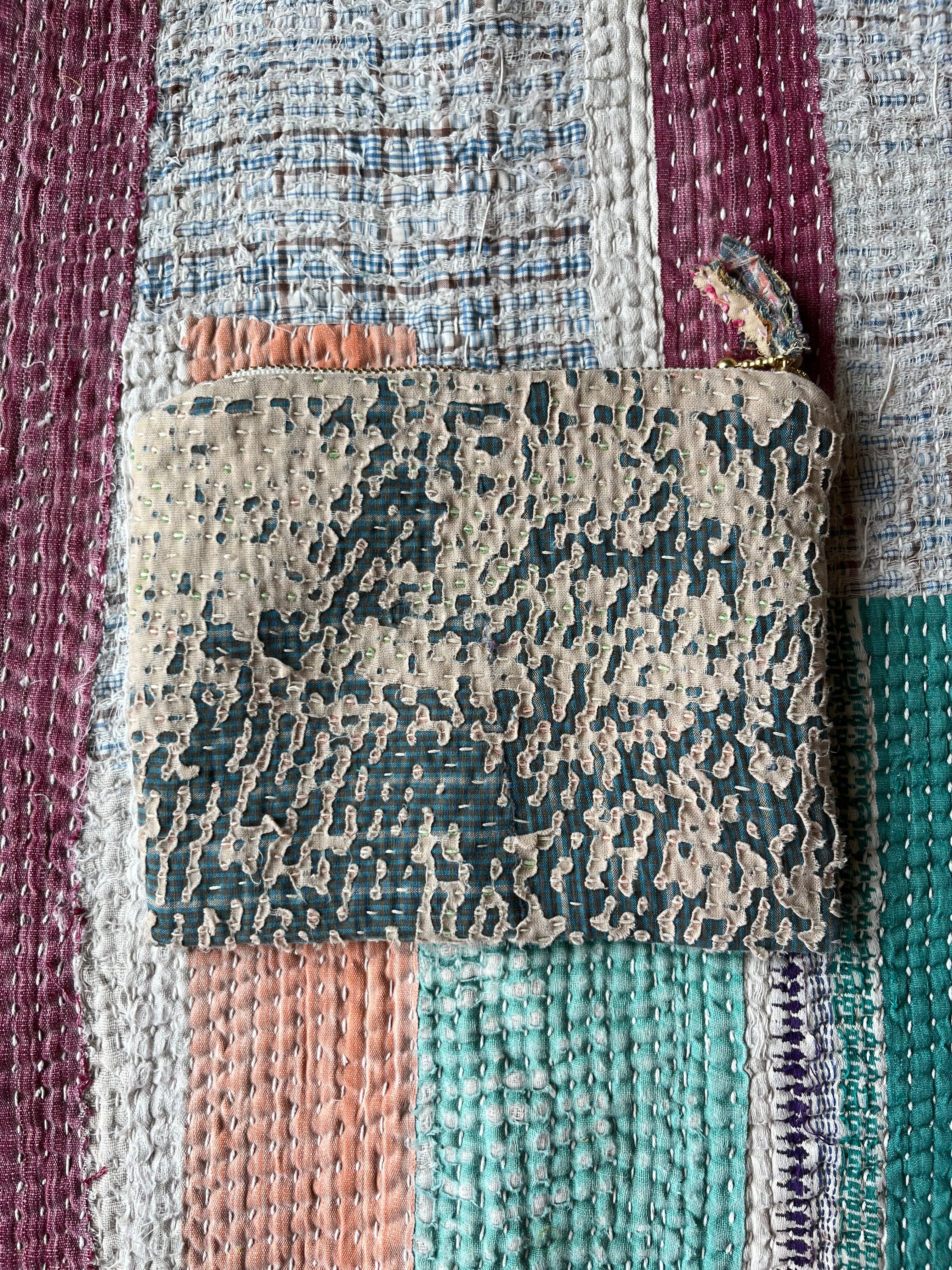 Vintage Kantha フラットミニポーチ natural