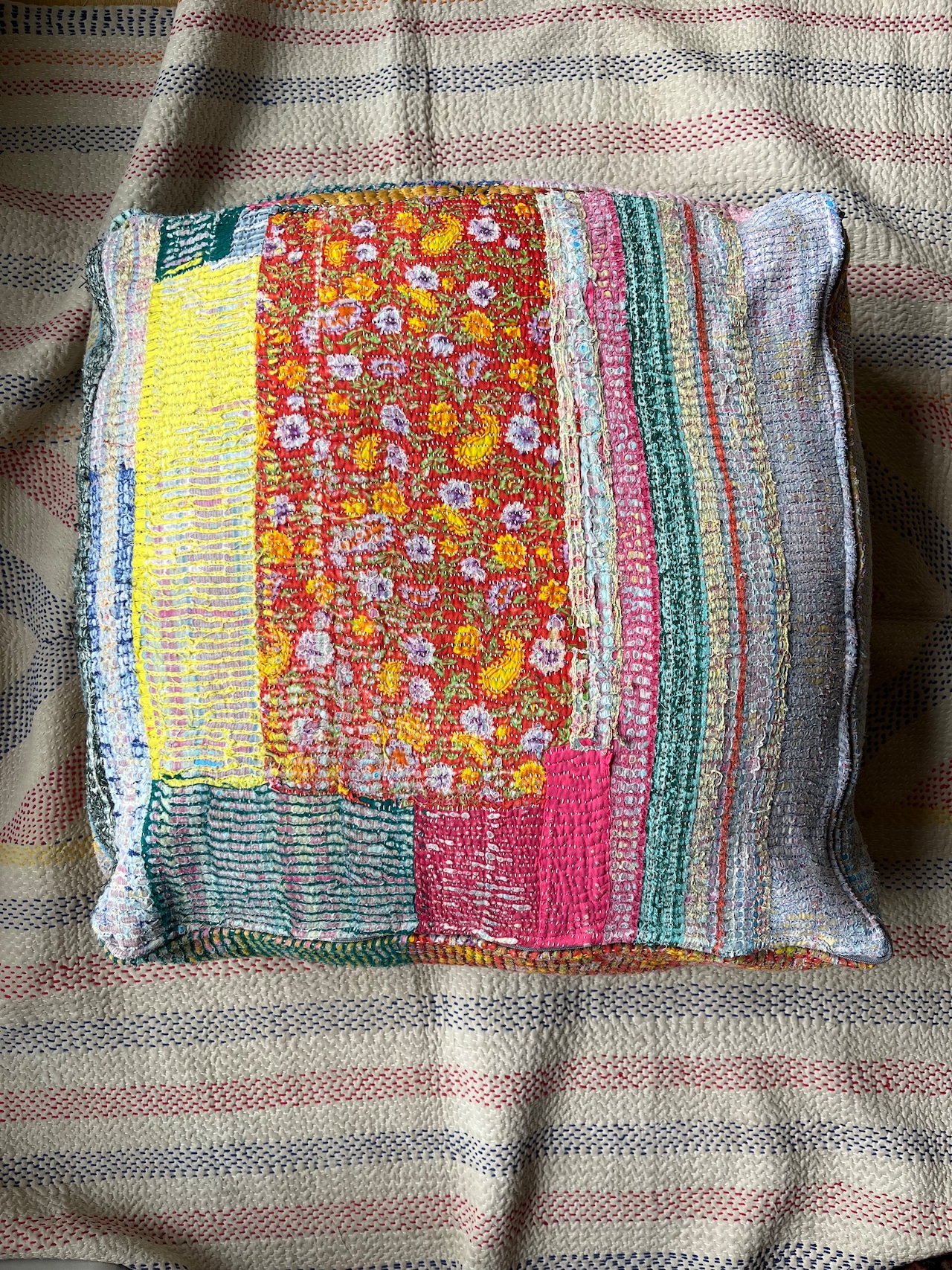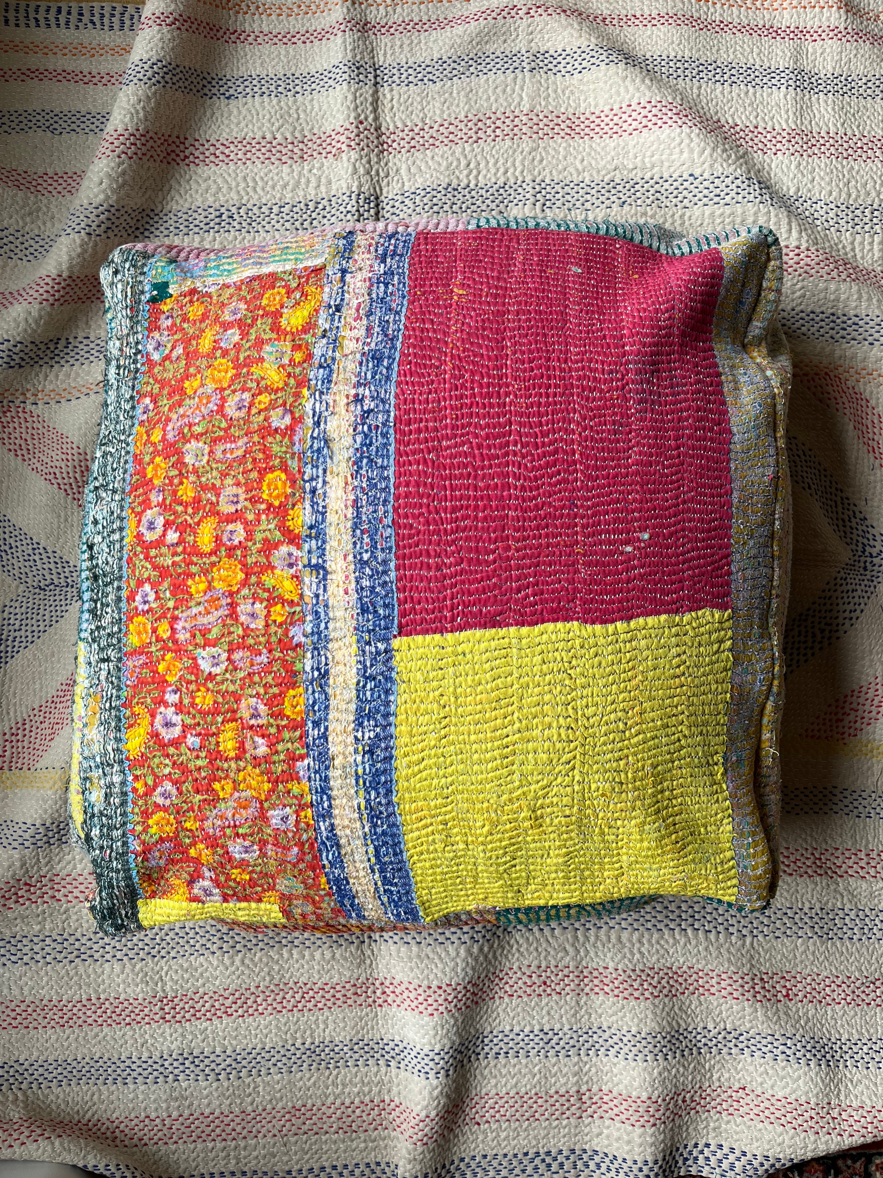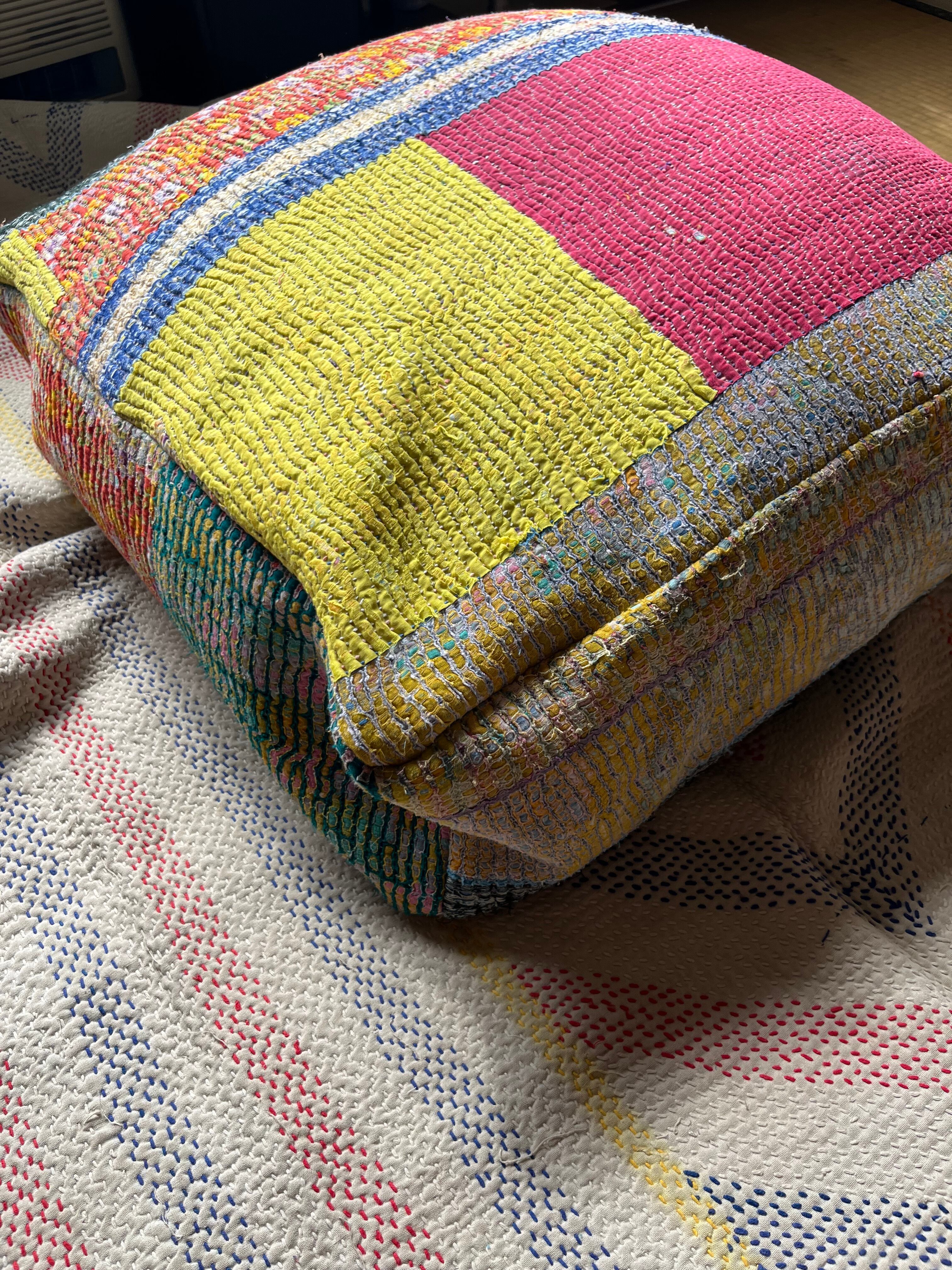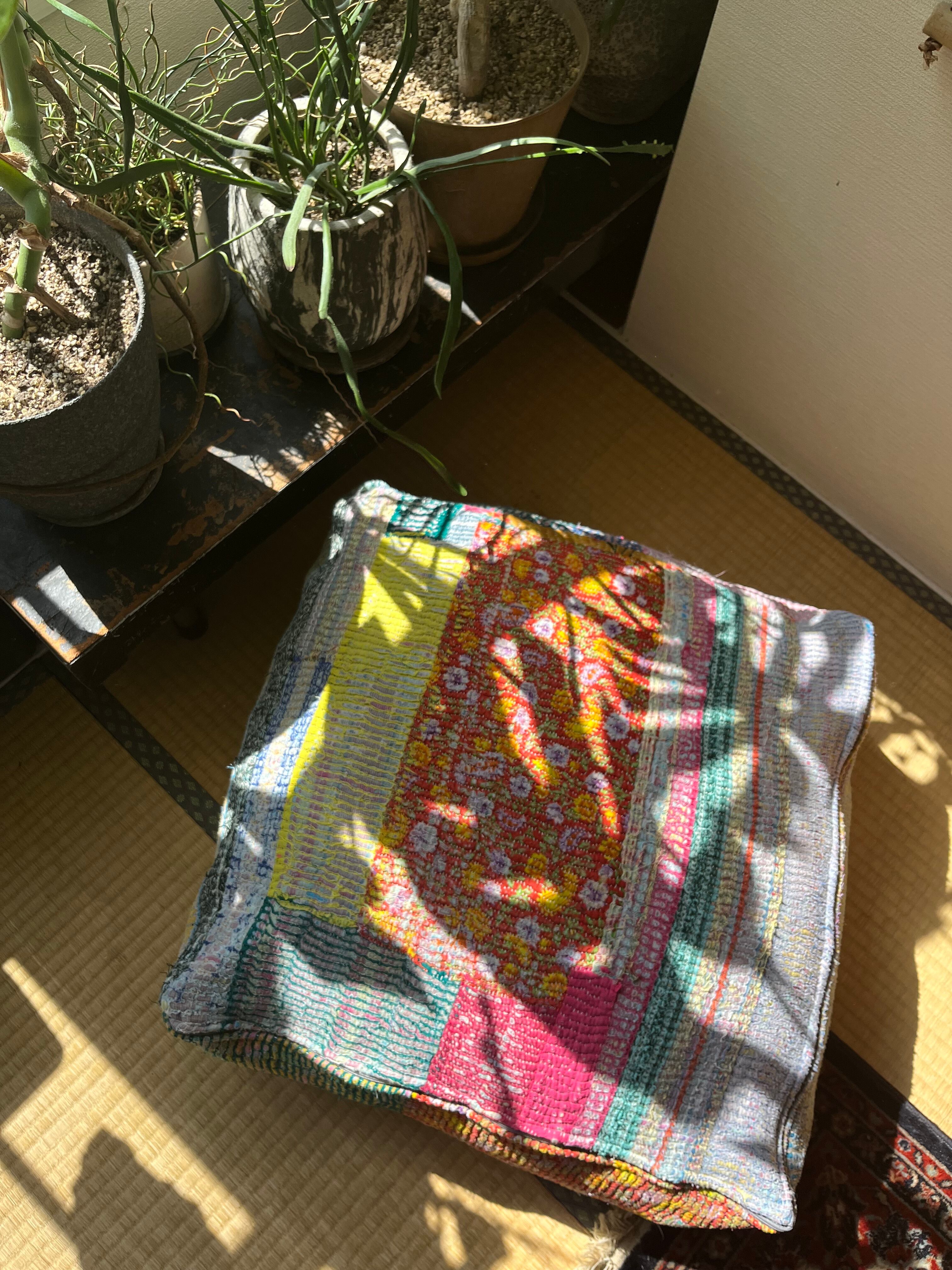 ヴィンテージカンタキルトで作ったプフ。