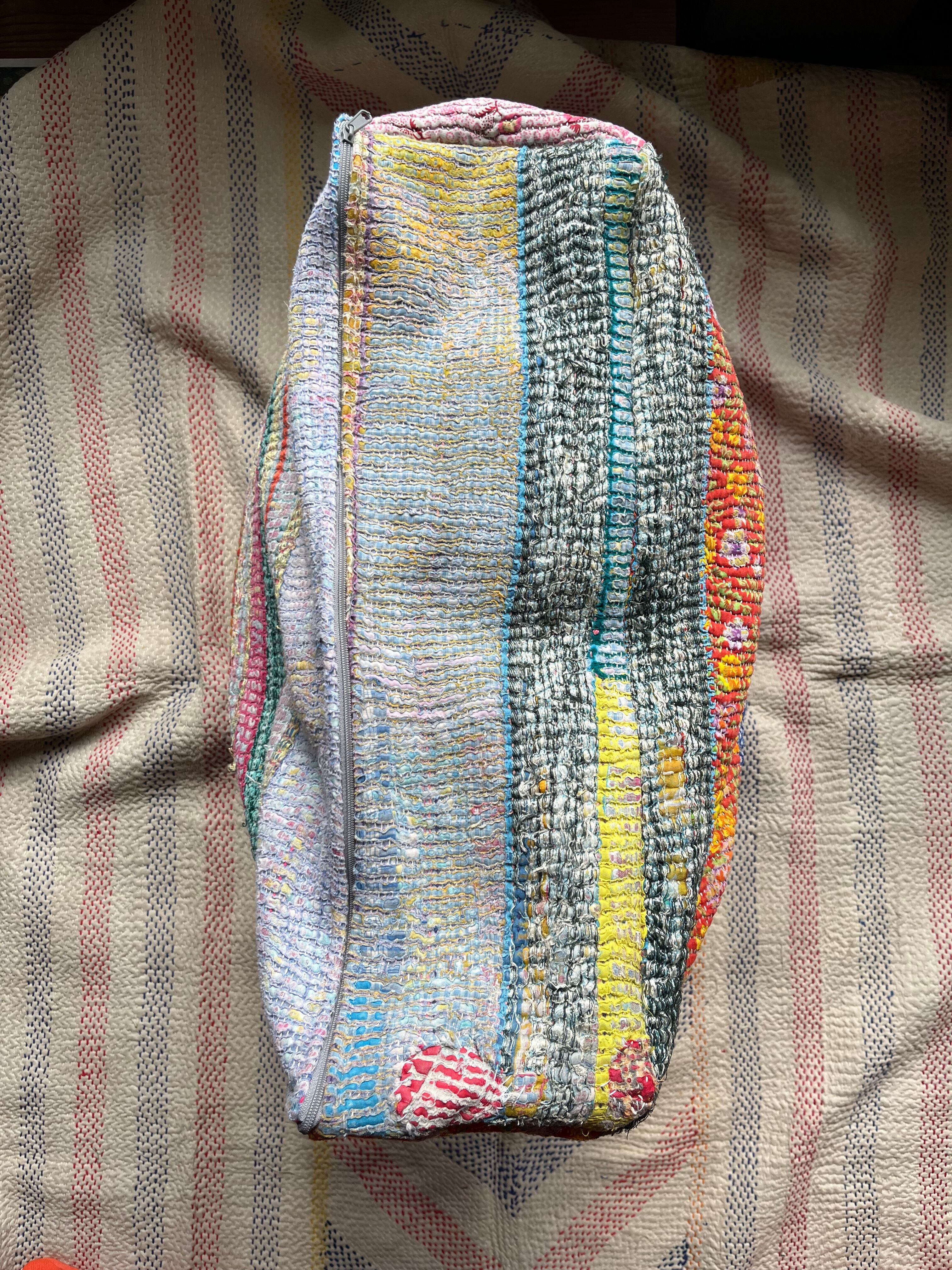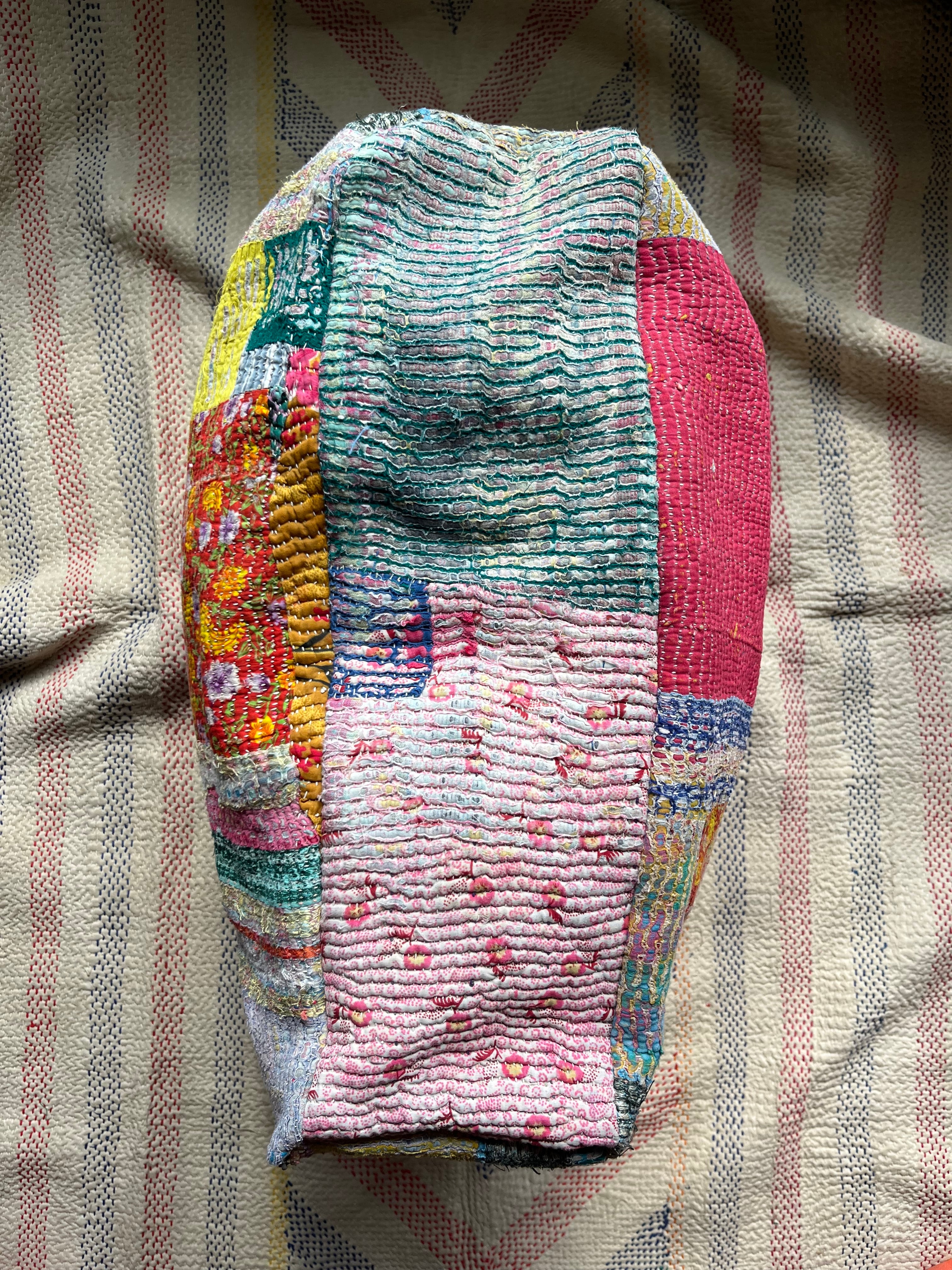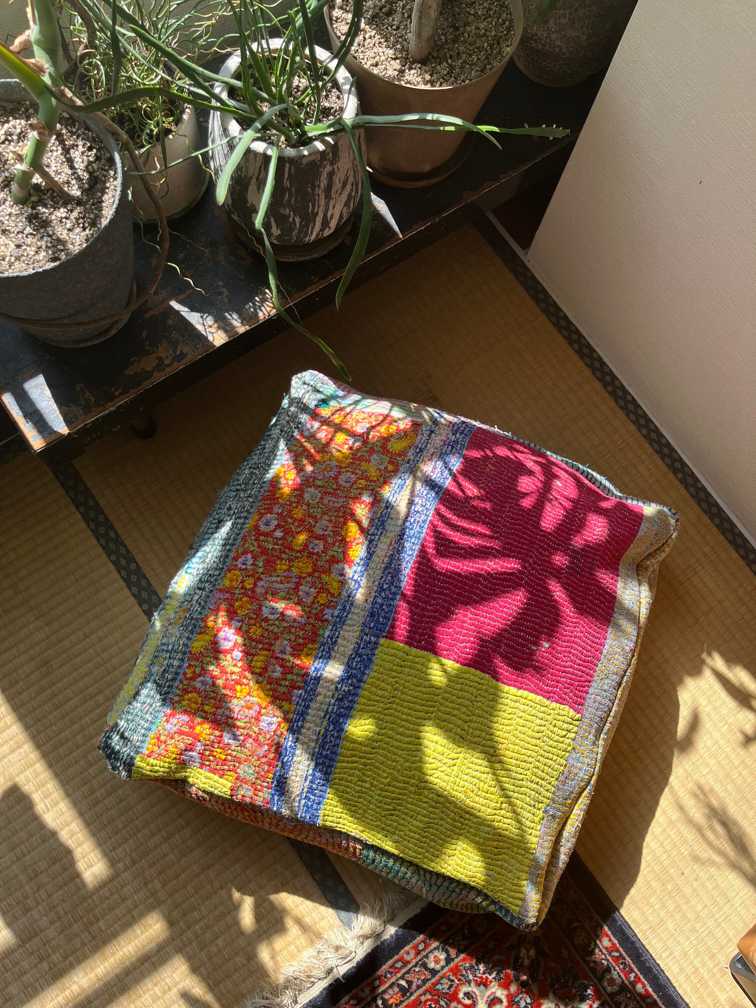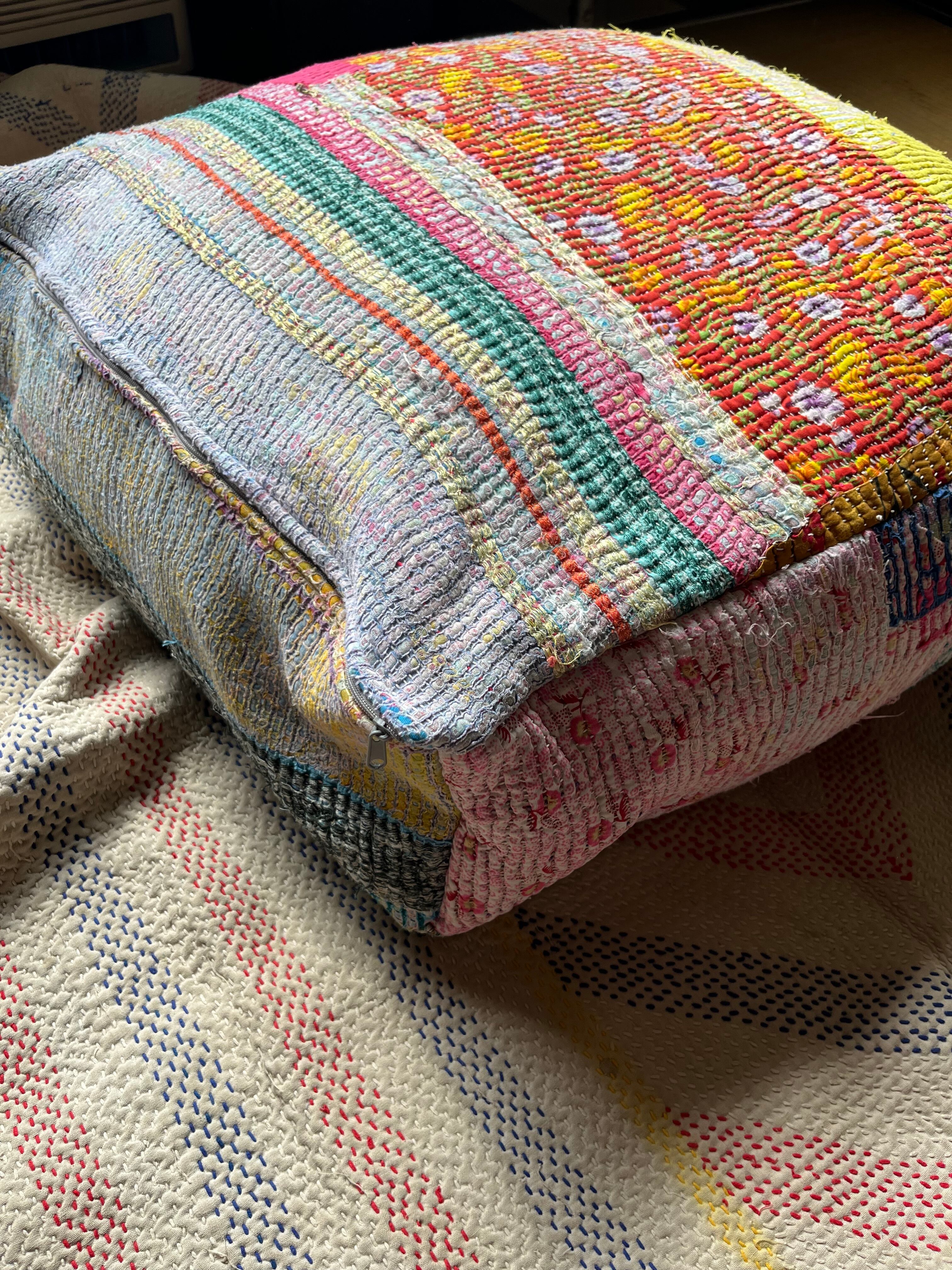 ヴィンテージカンタキルトで作ったプフ。