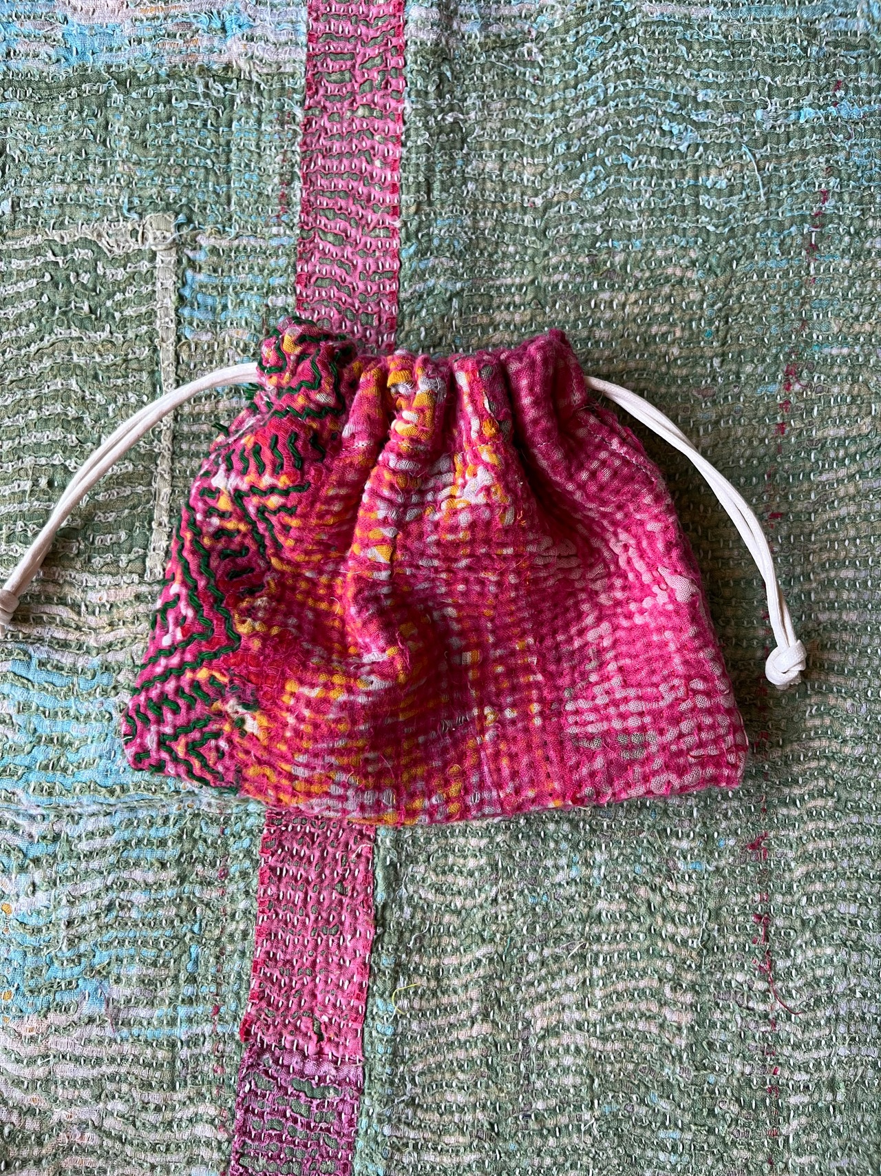 Vintage Kantha ミニ巾着 011