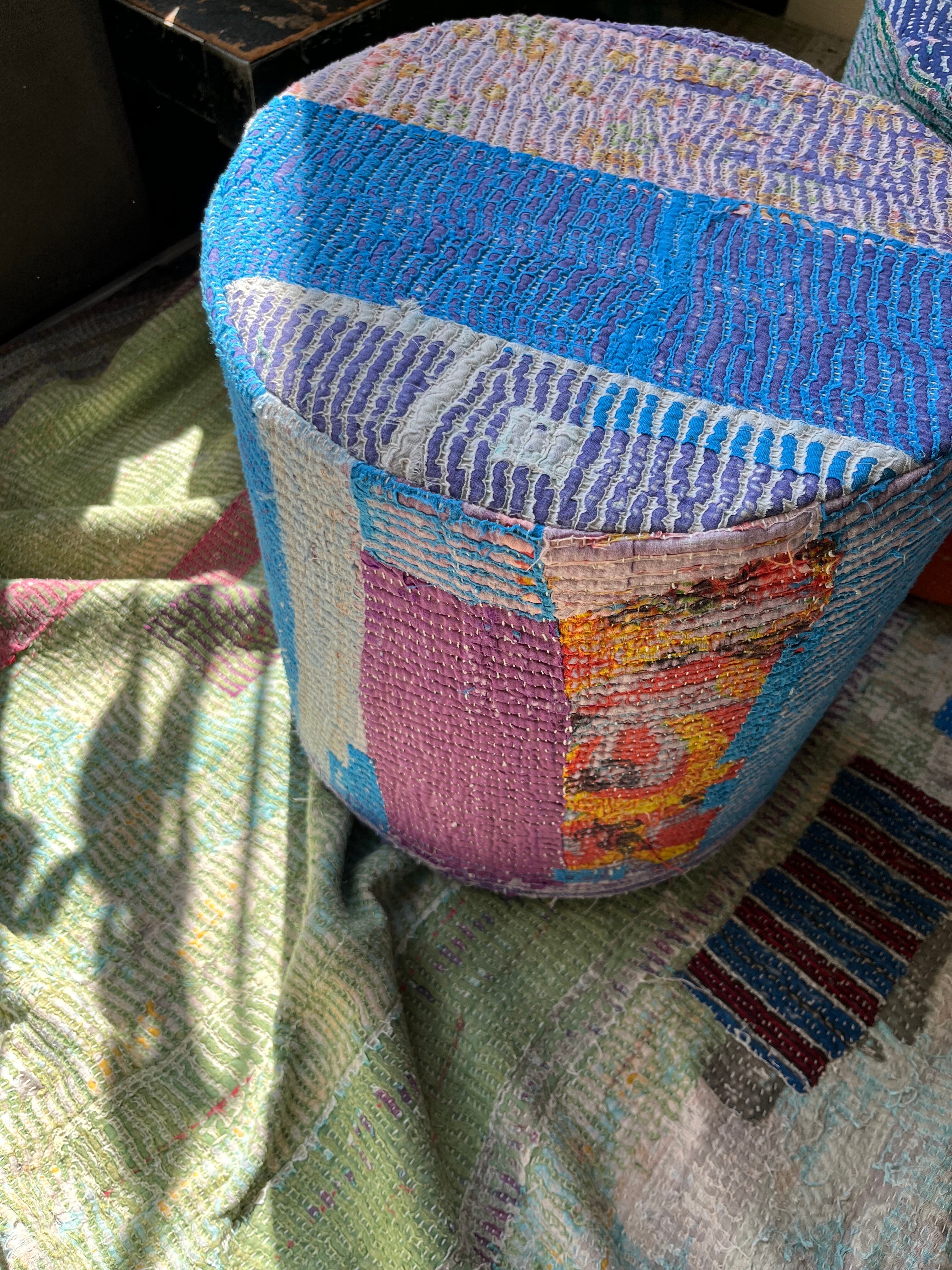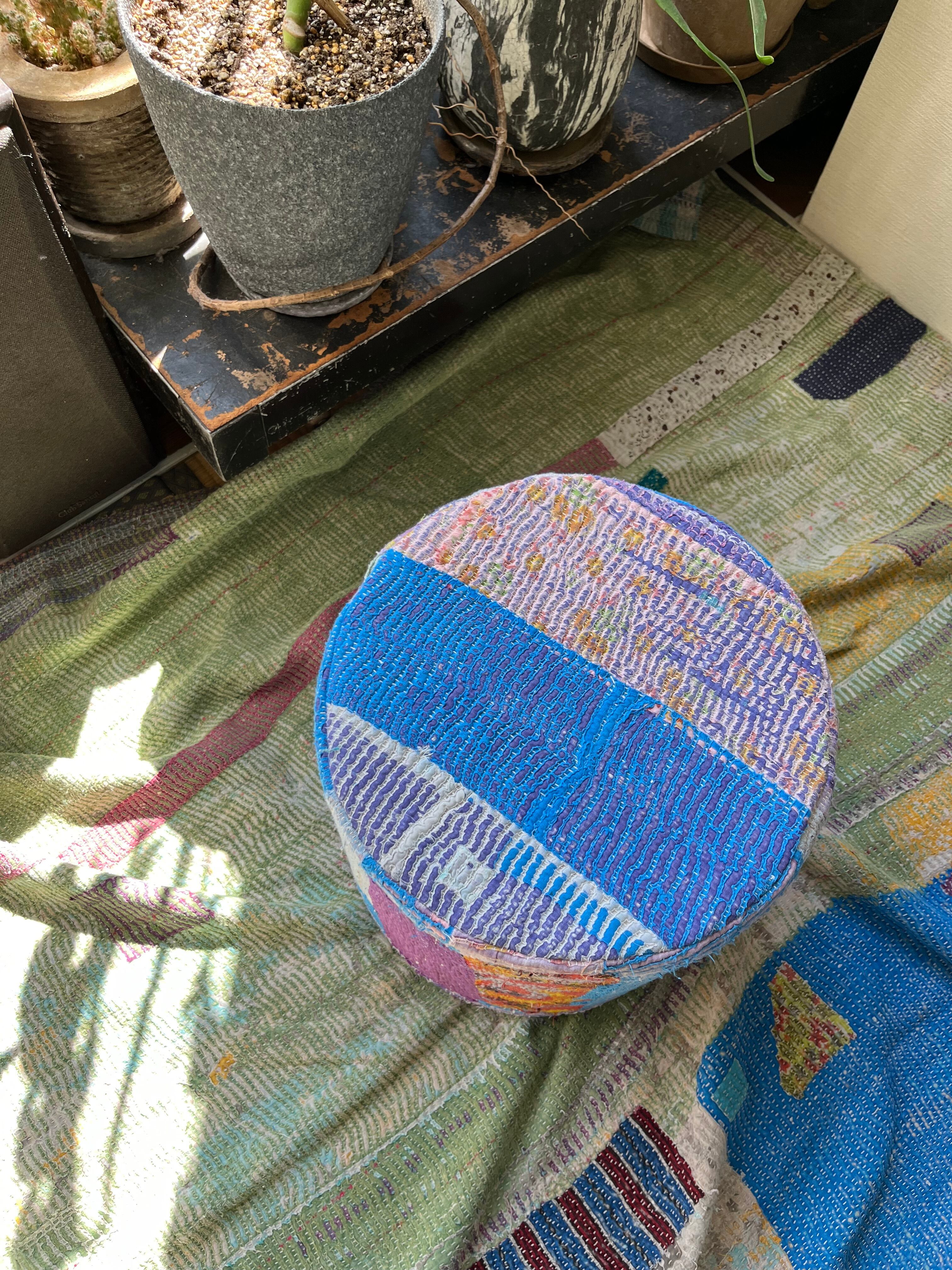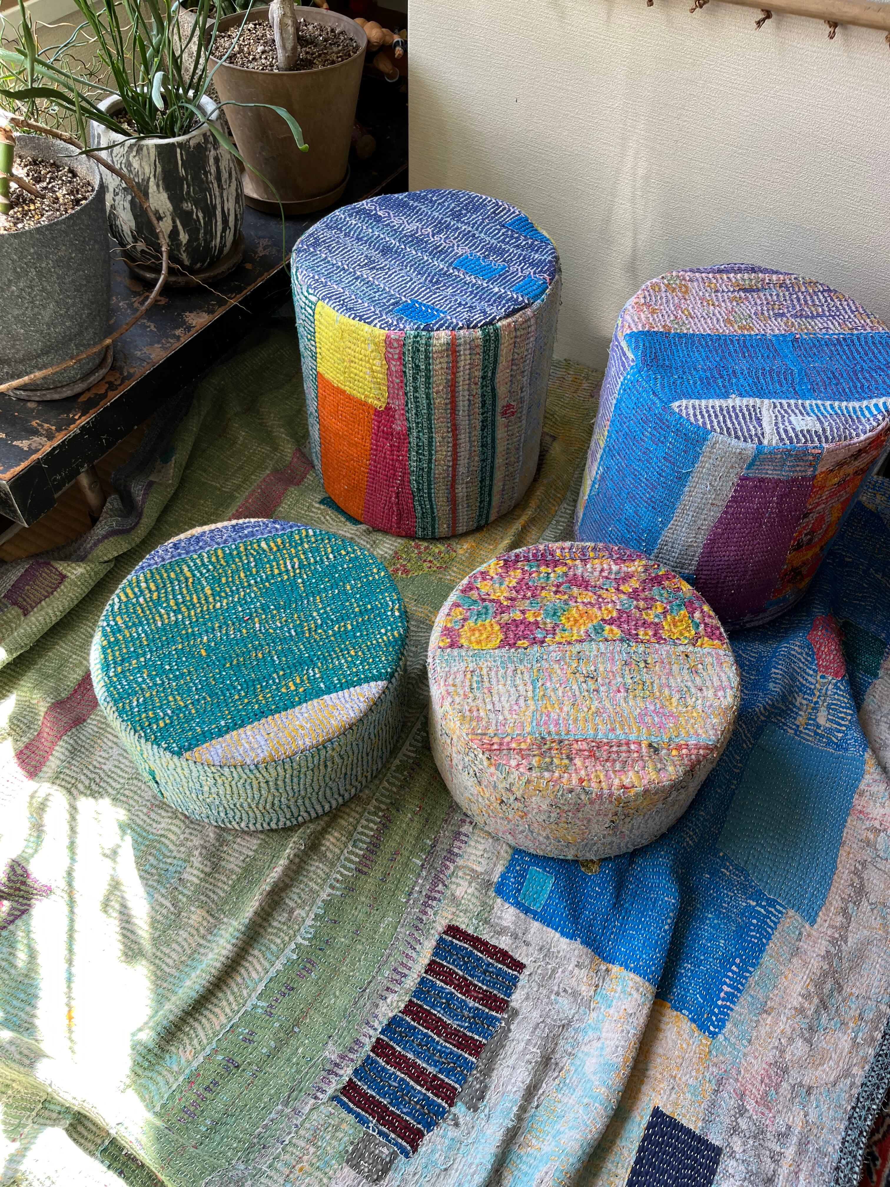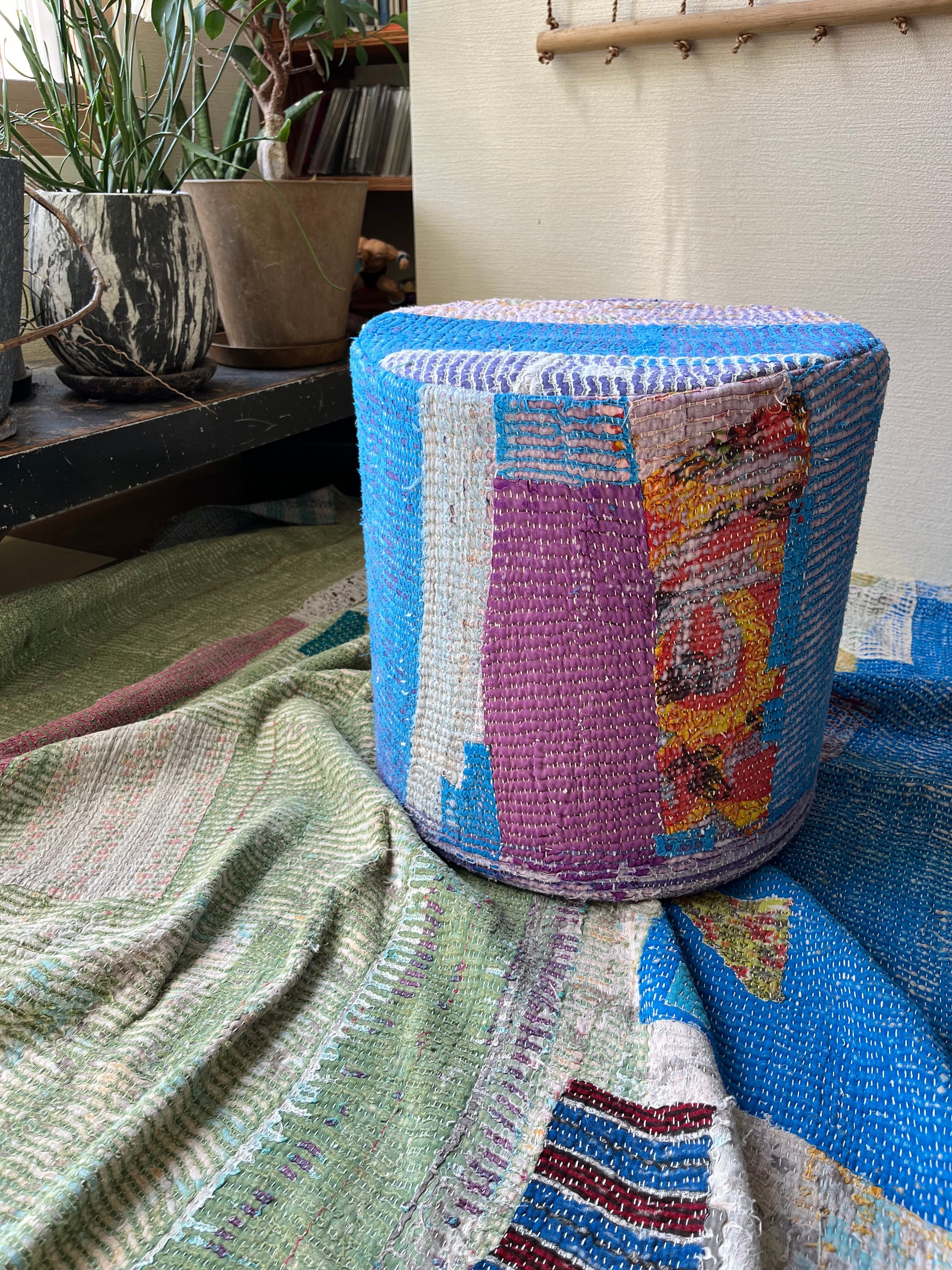 Vintage Kantha 丸型スツール大(中身付) 002