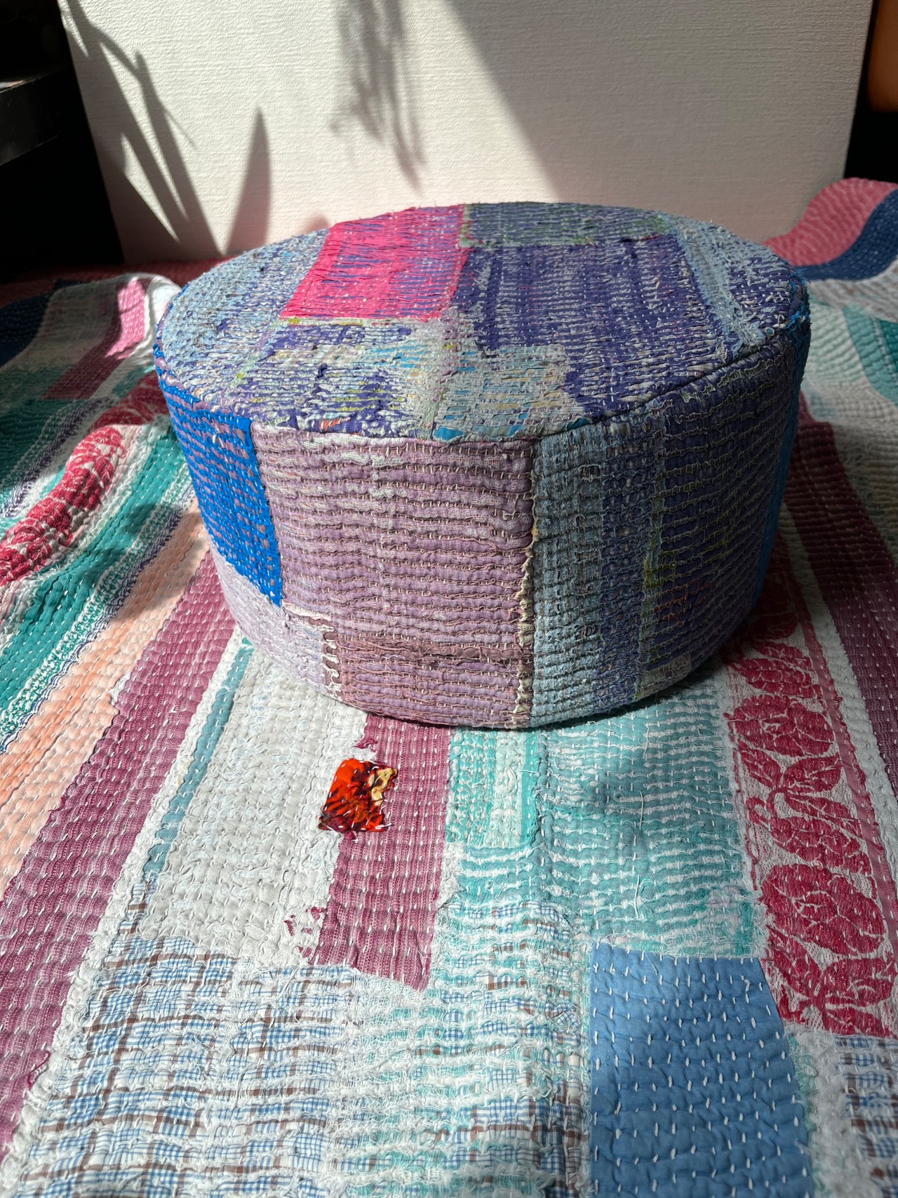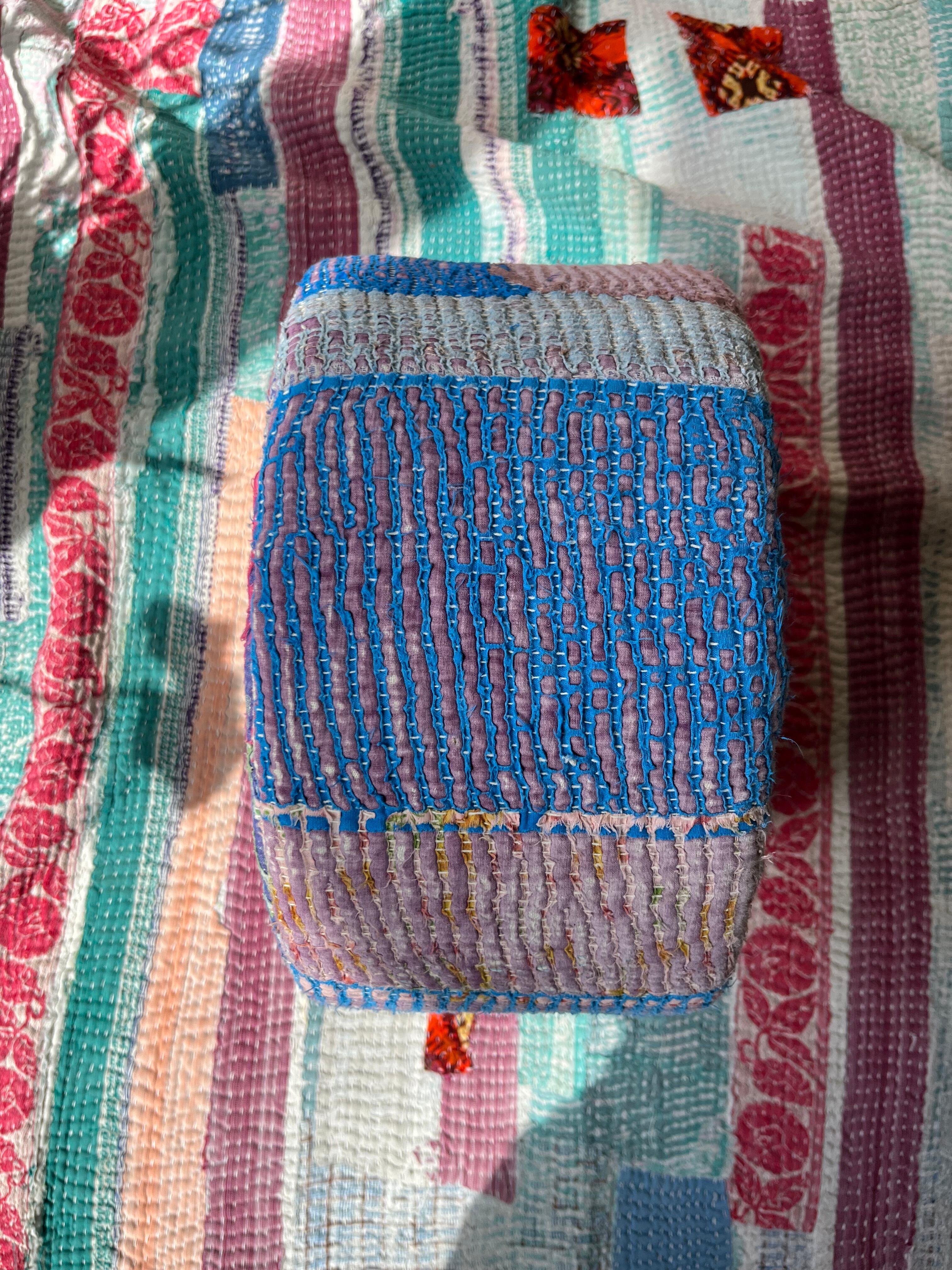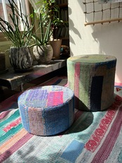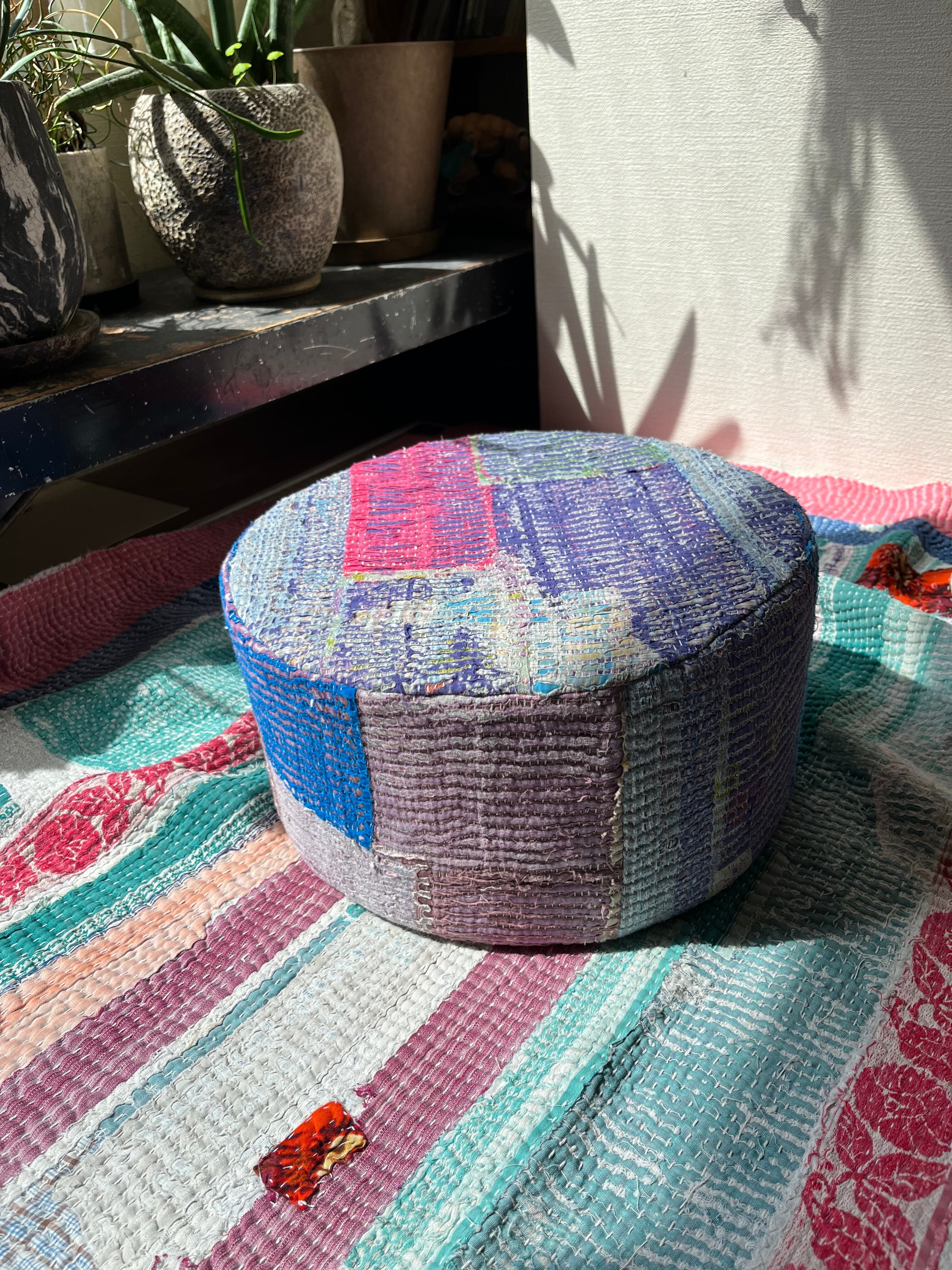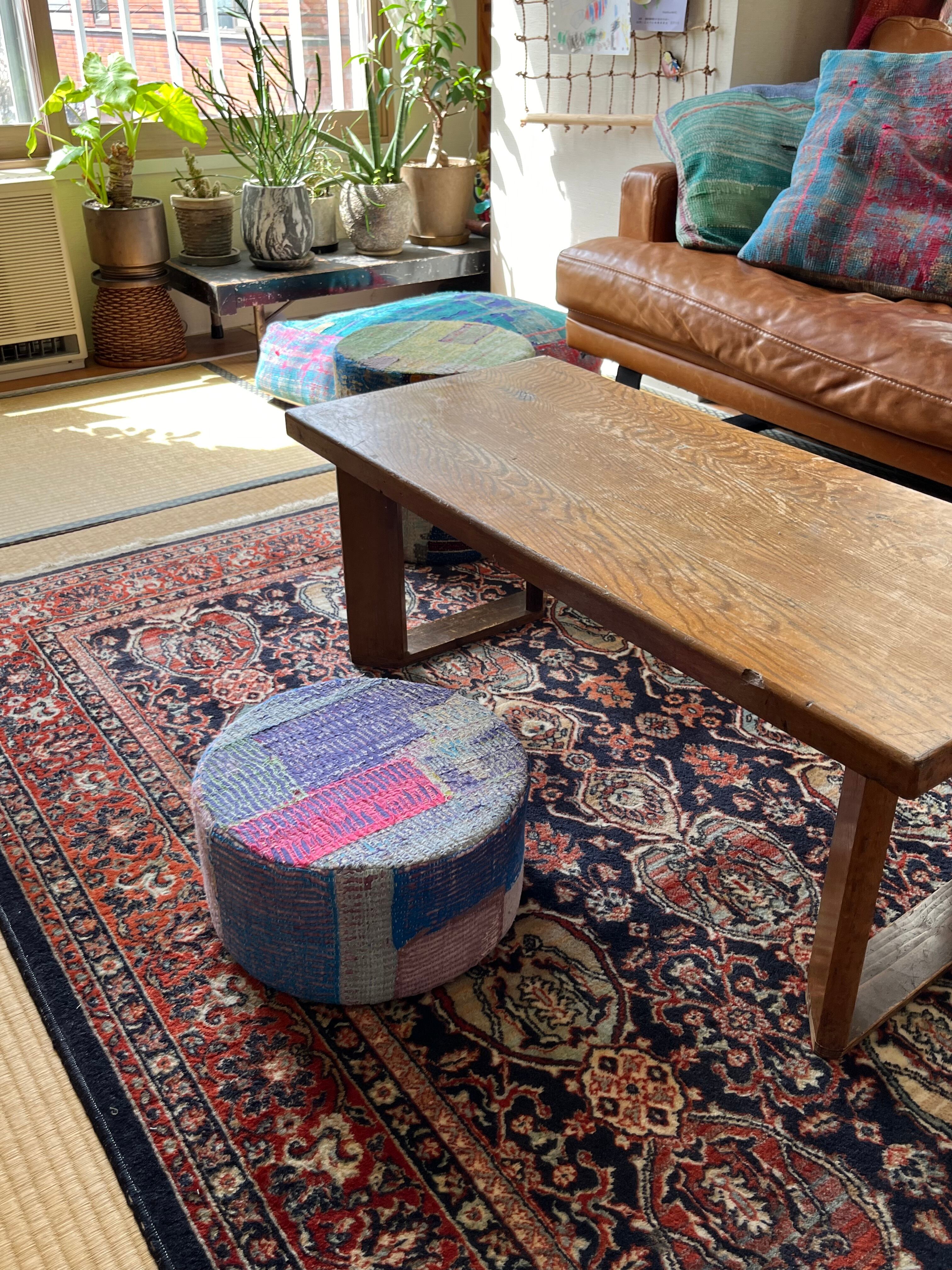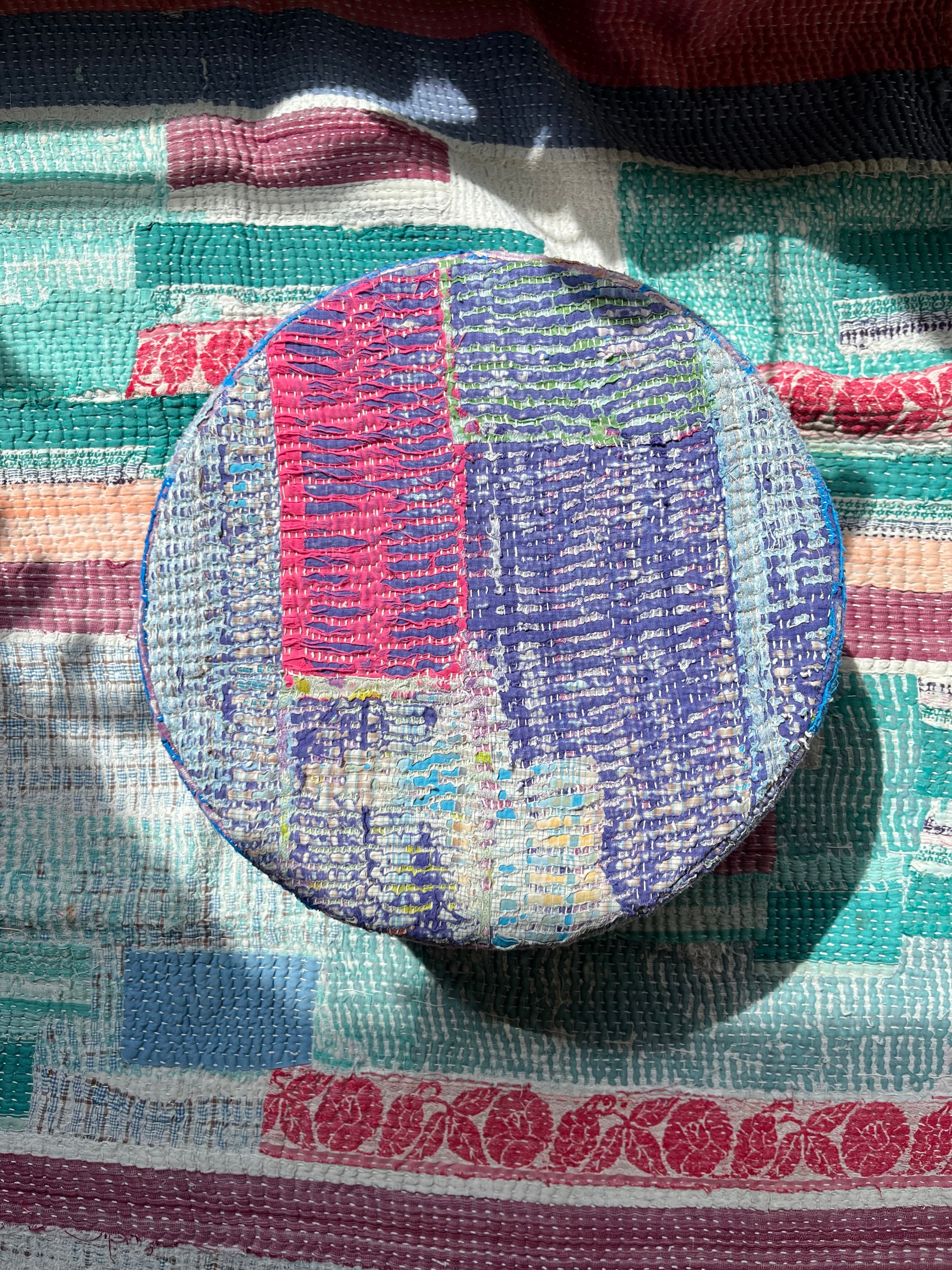 Vintage Kantha 丸型スツール小(中身付) 003