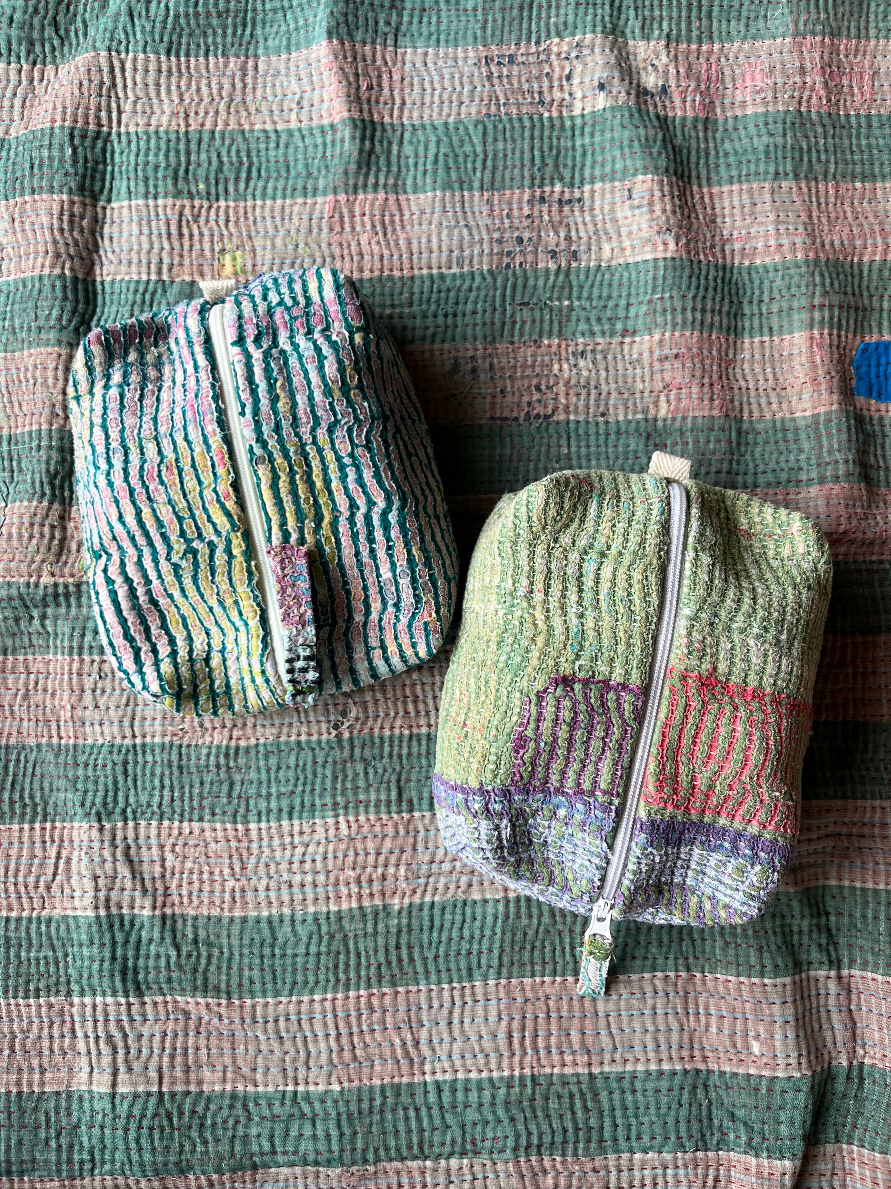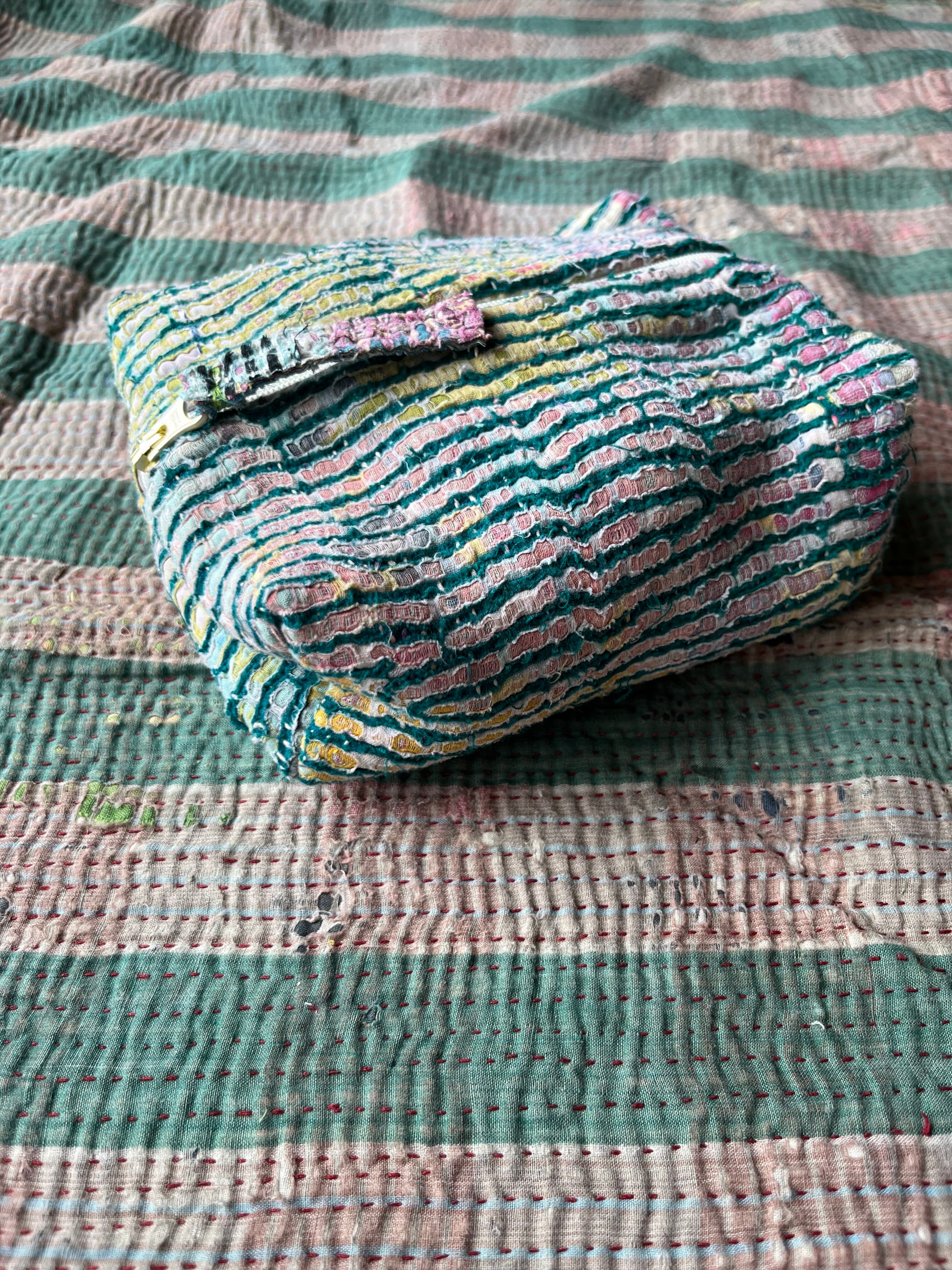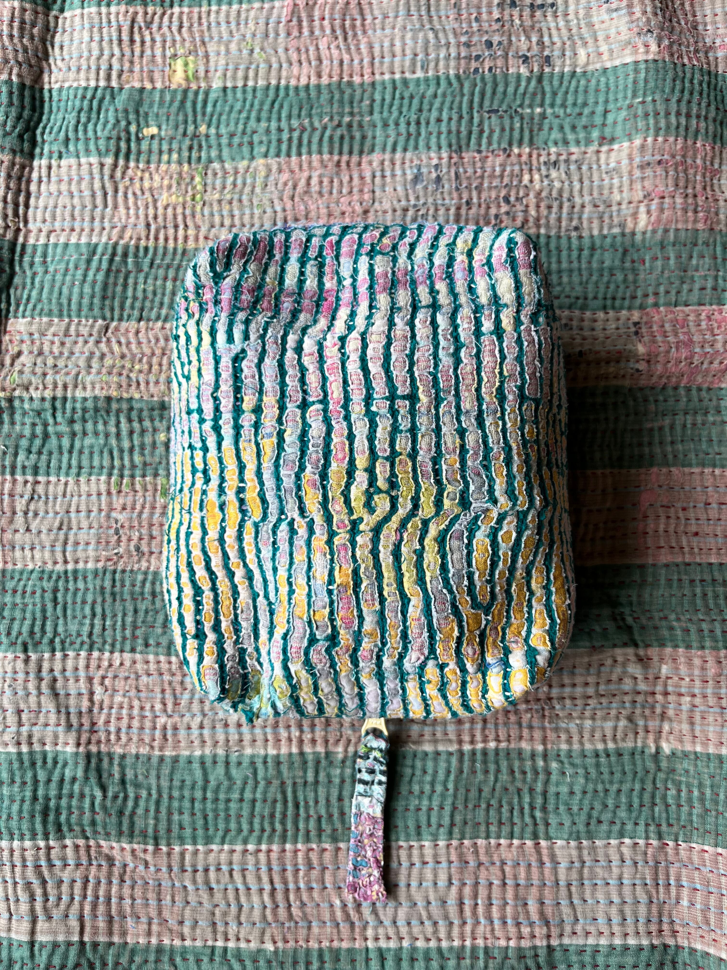 Vintage Kantha BOXポーチ 004