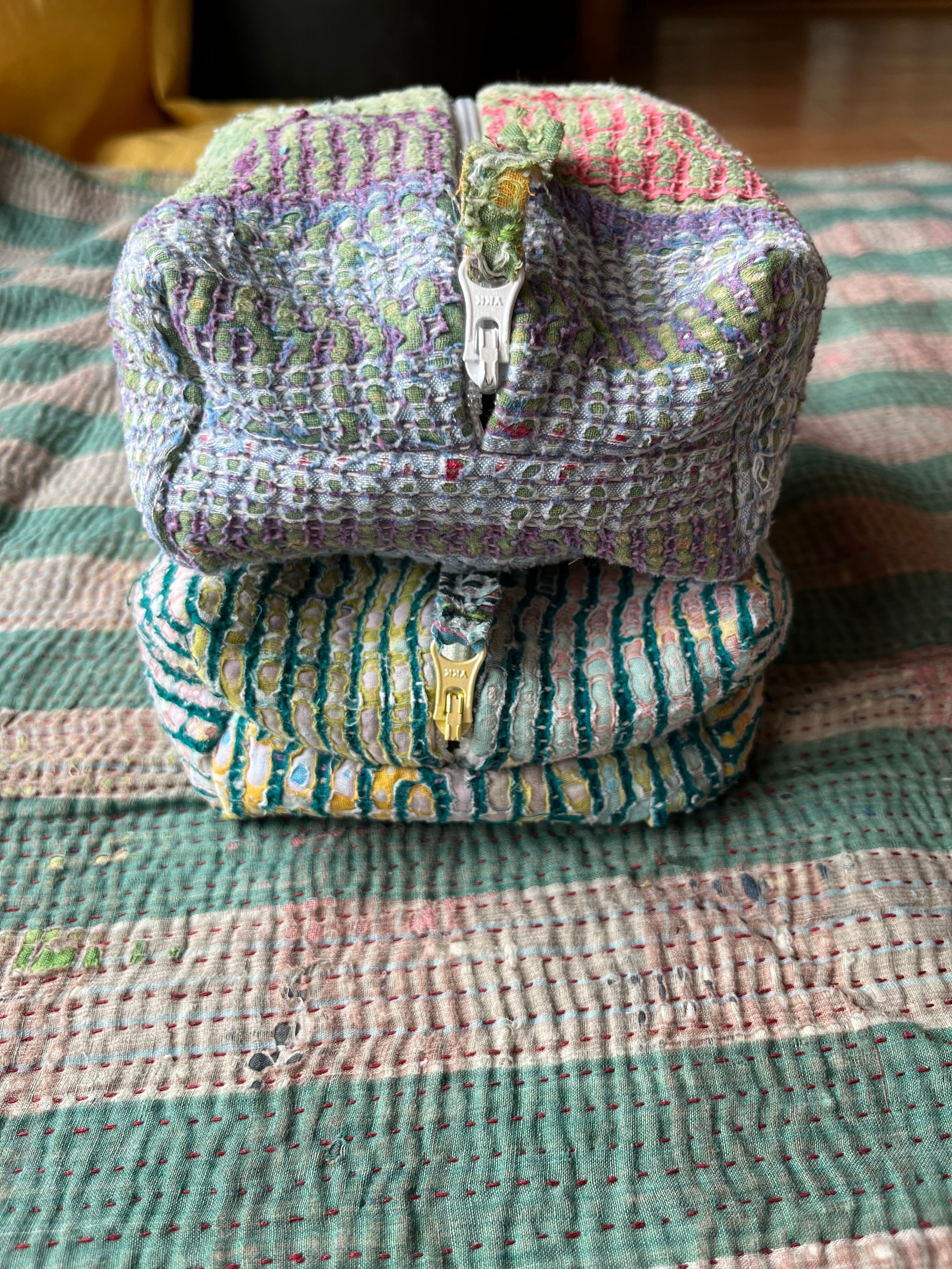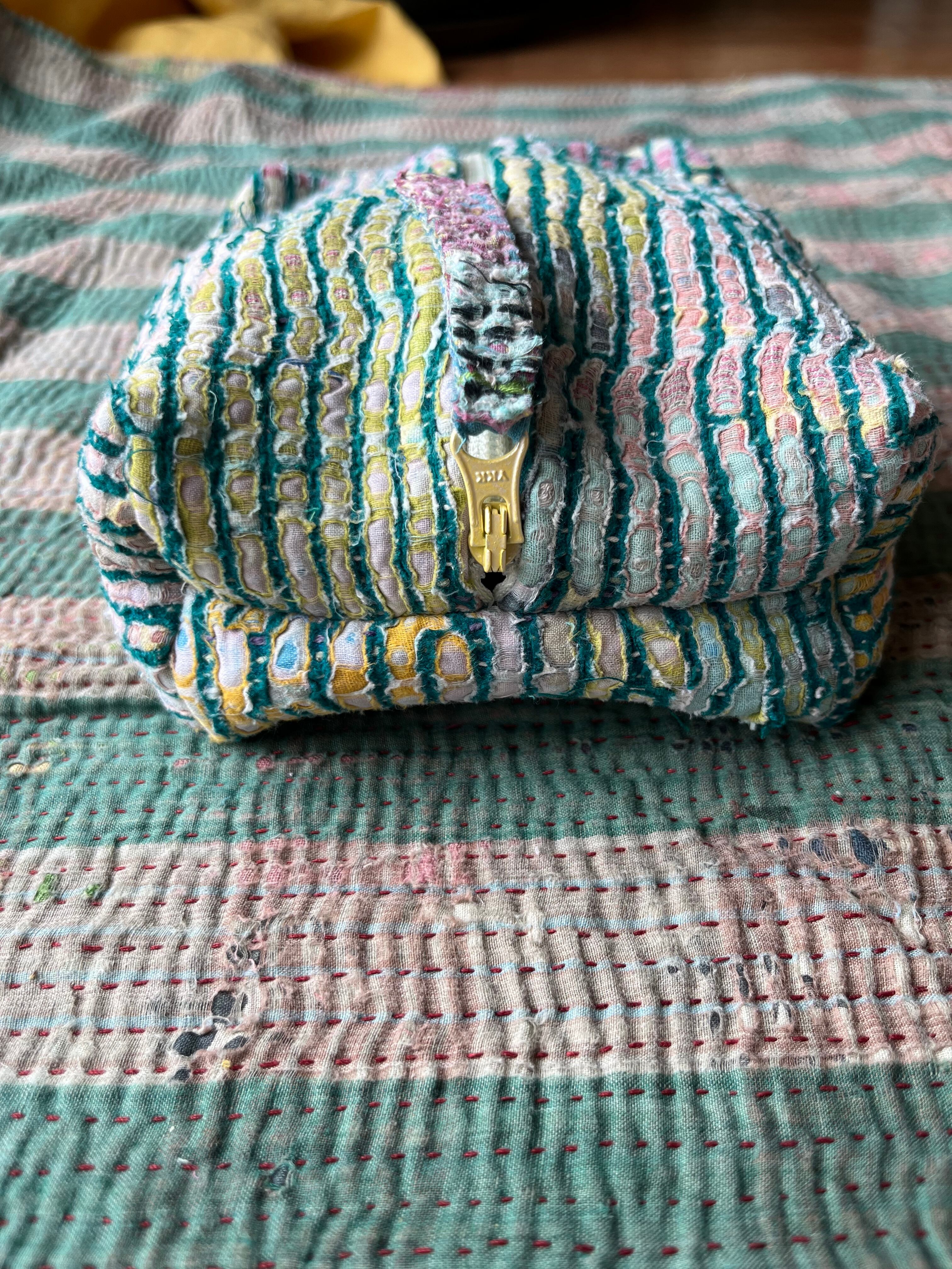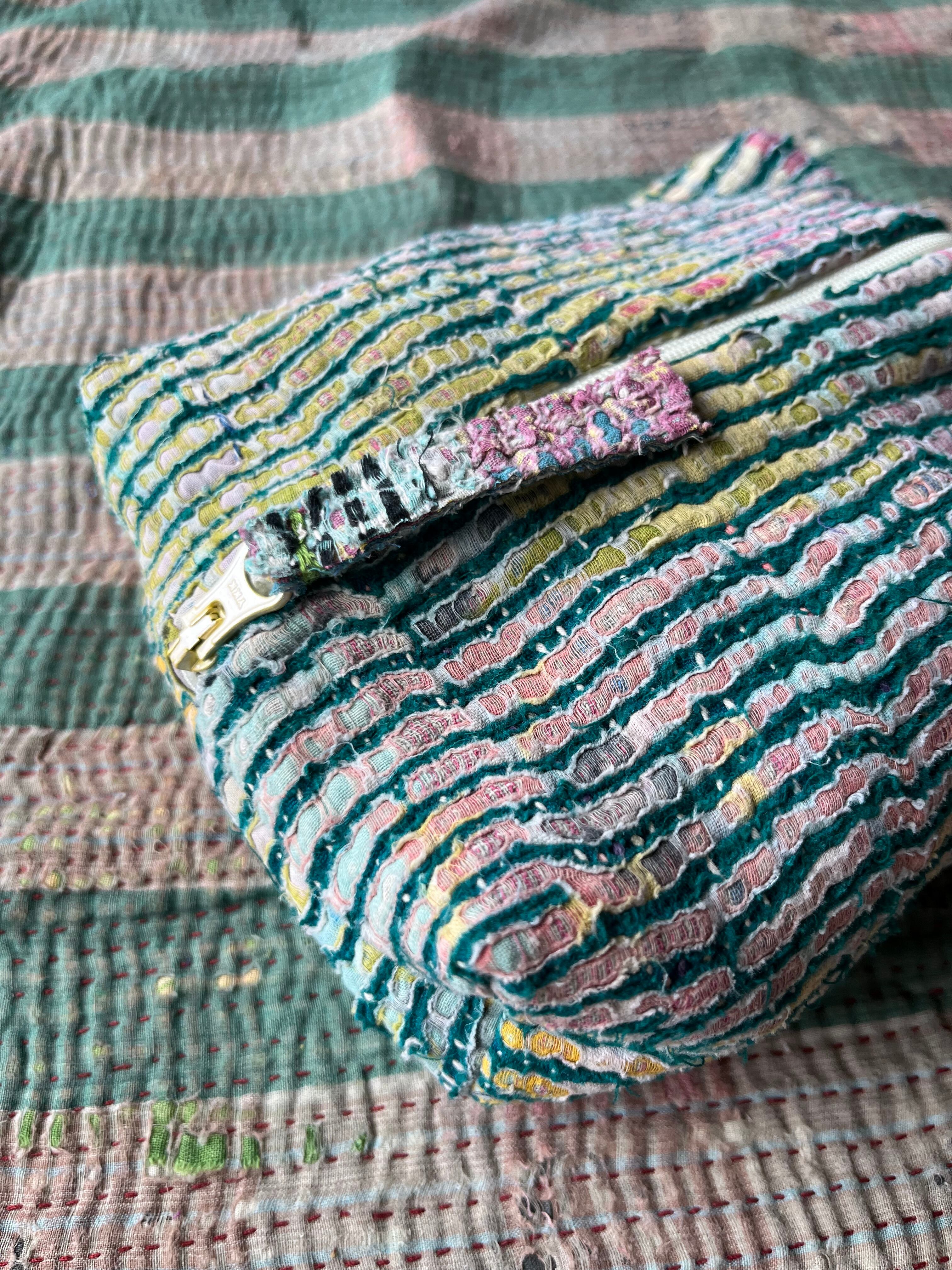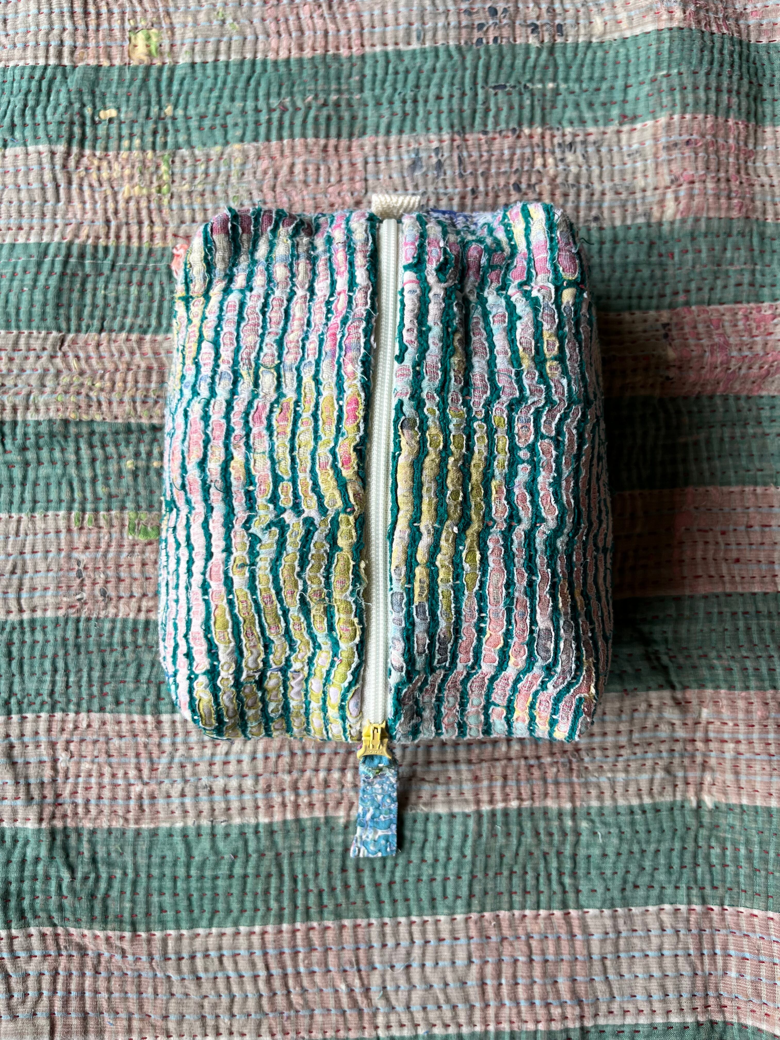 Vintage Kantha BOXポーチ 004