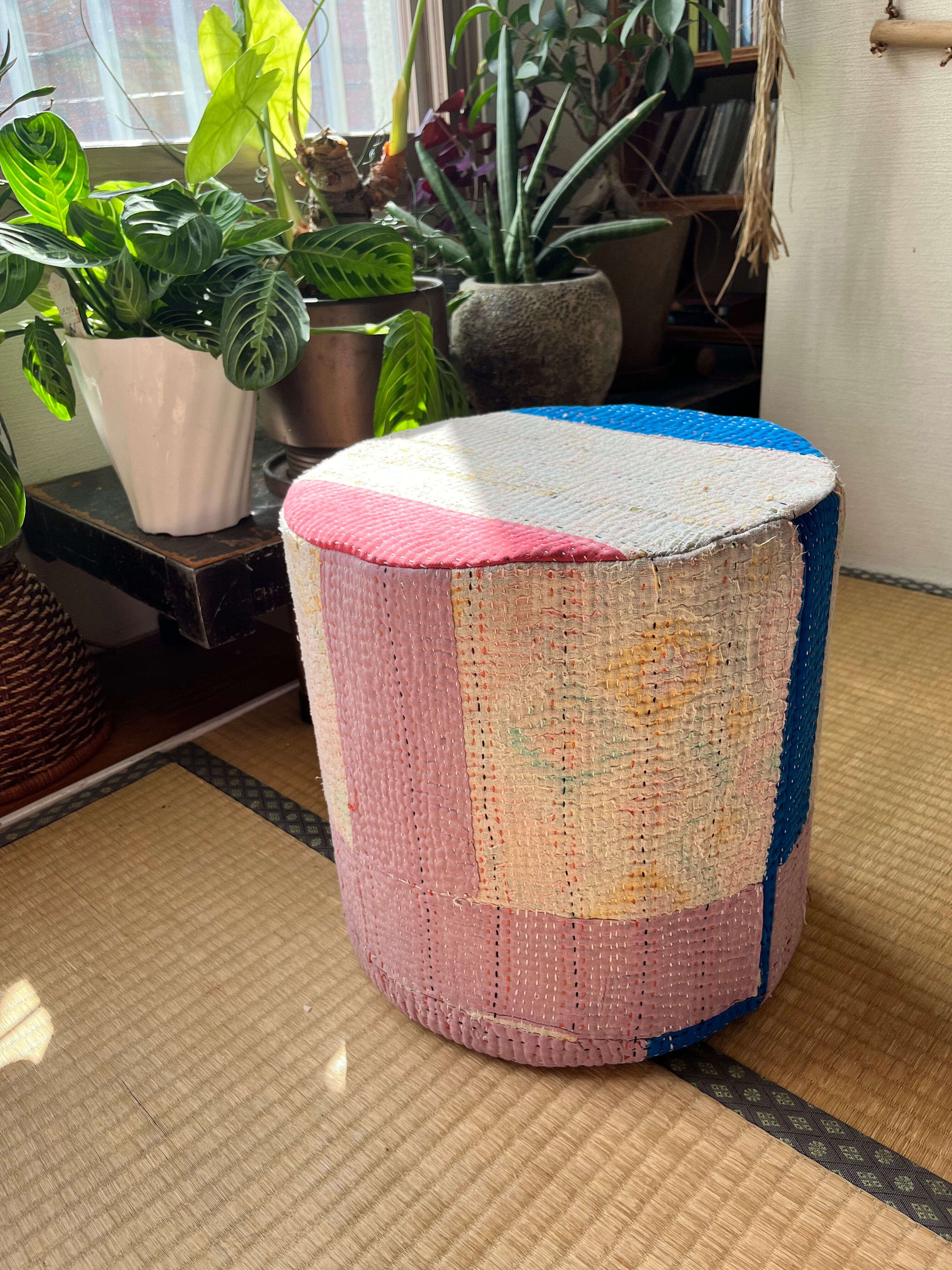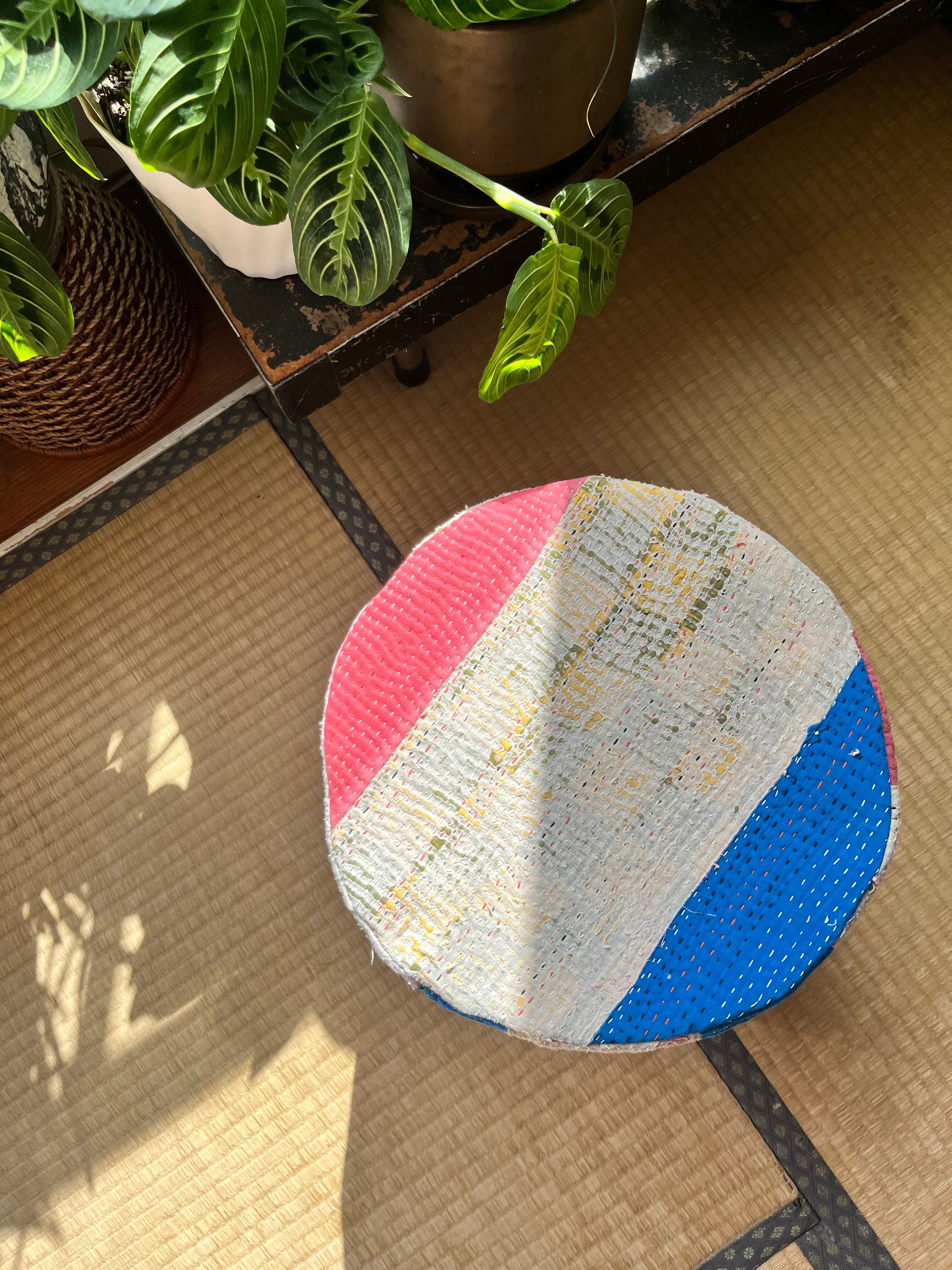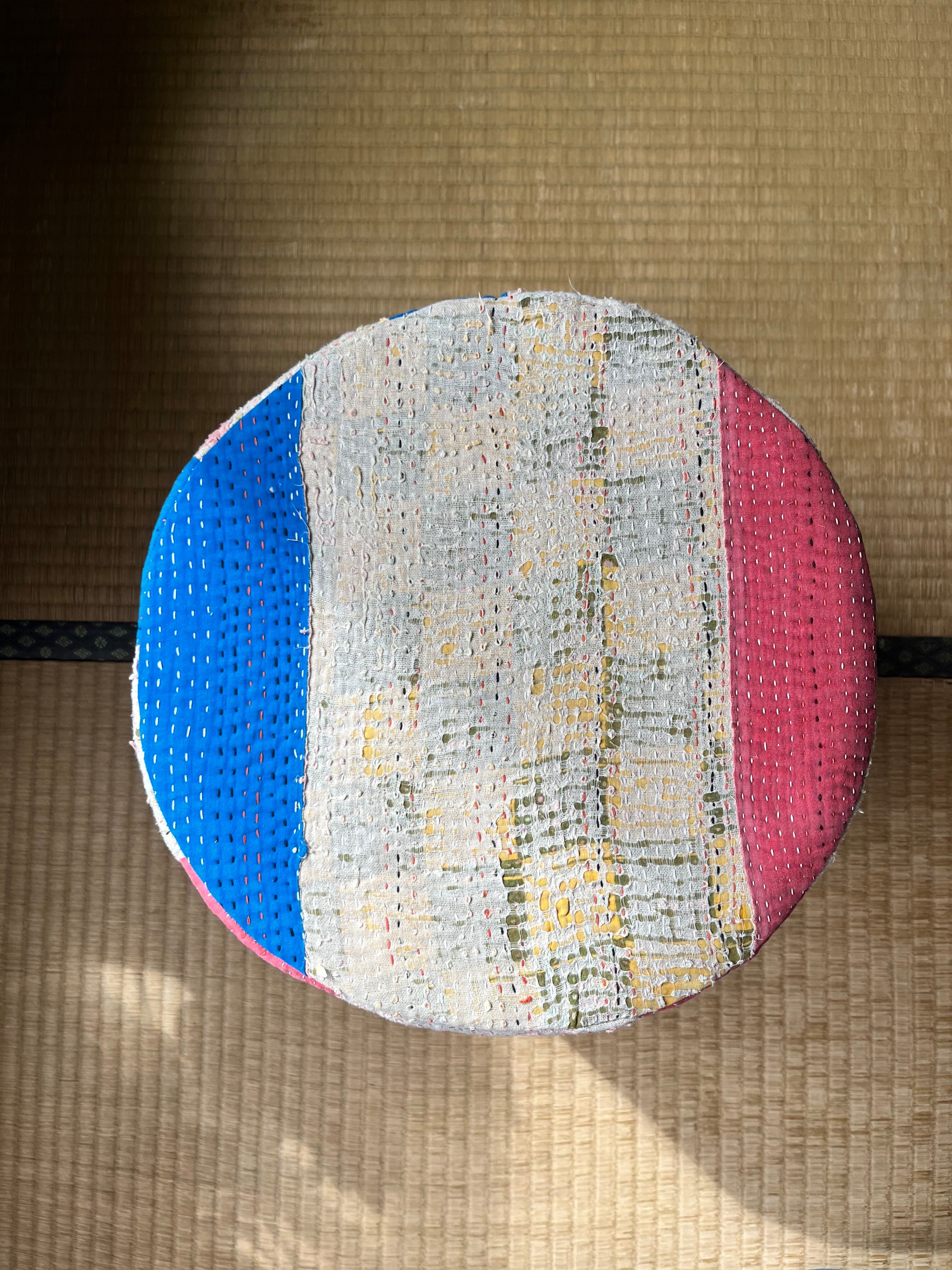 Vintage Kantha 丸型スツール大(中身付) 004