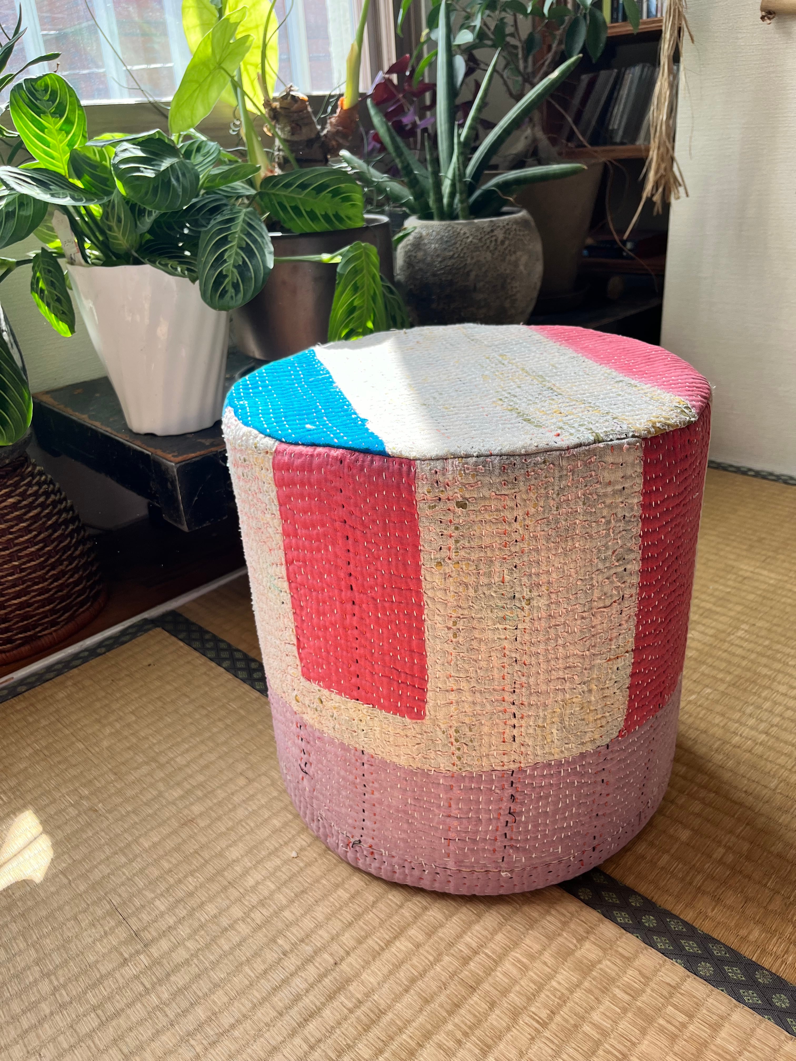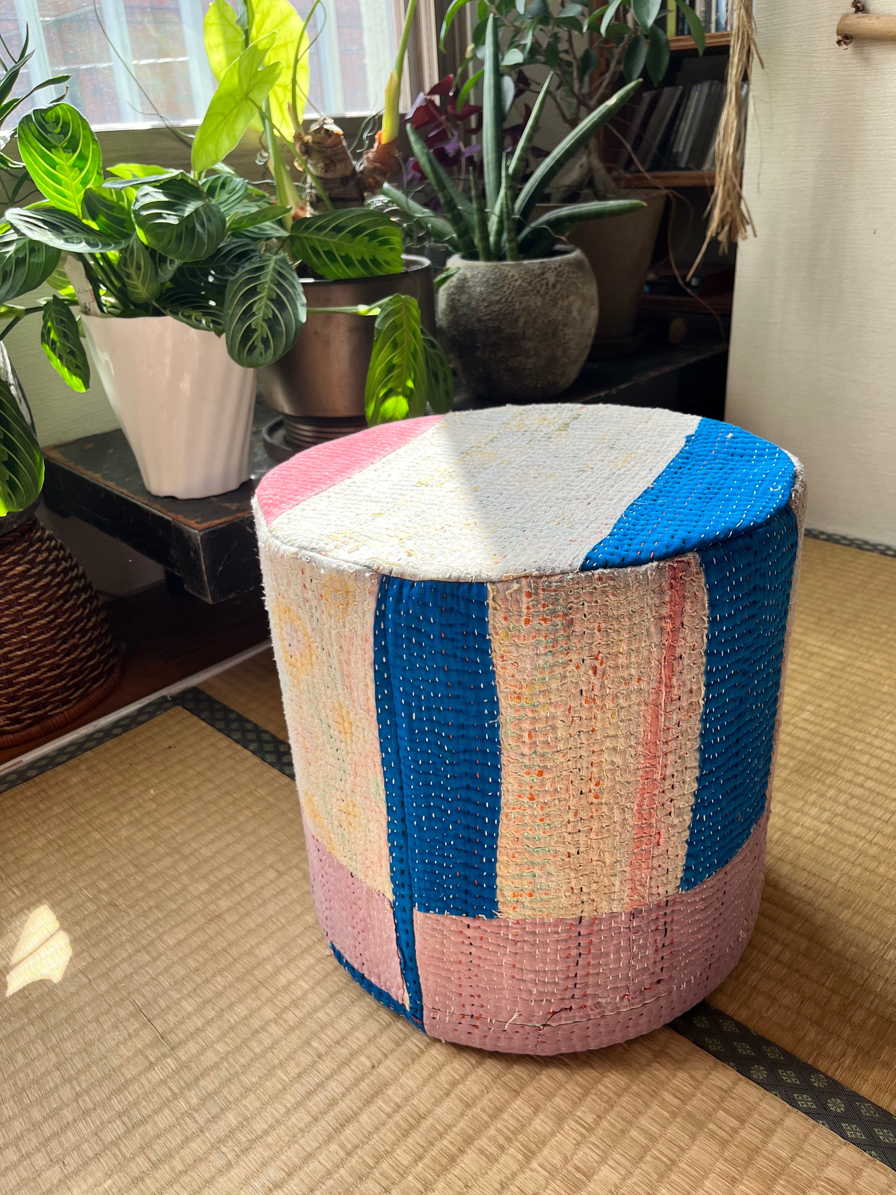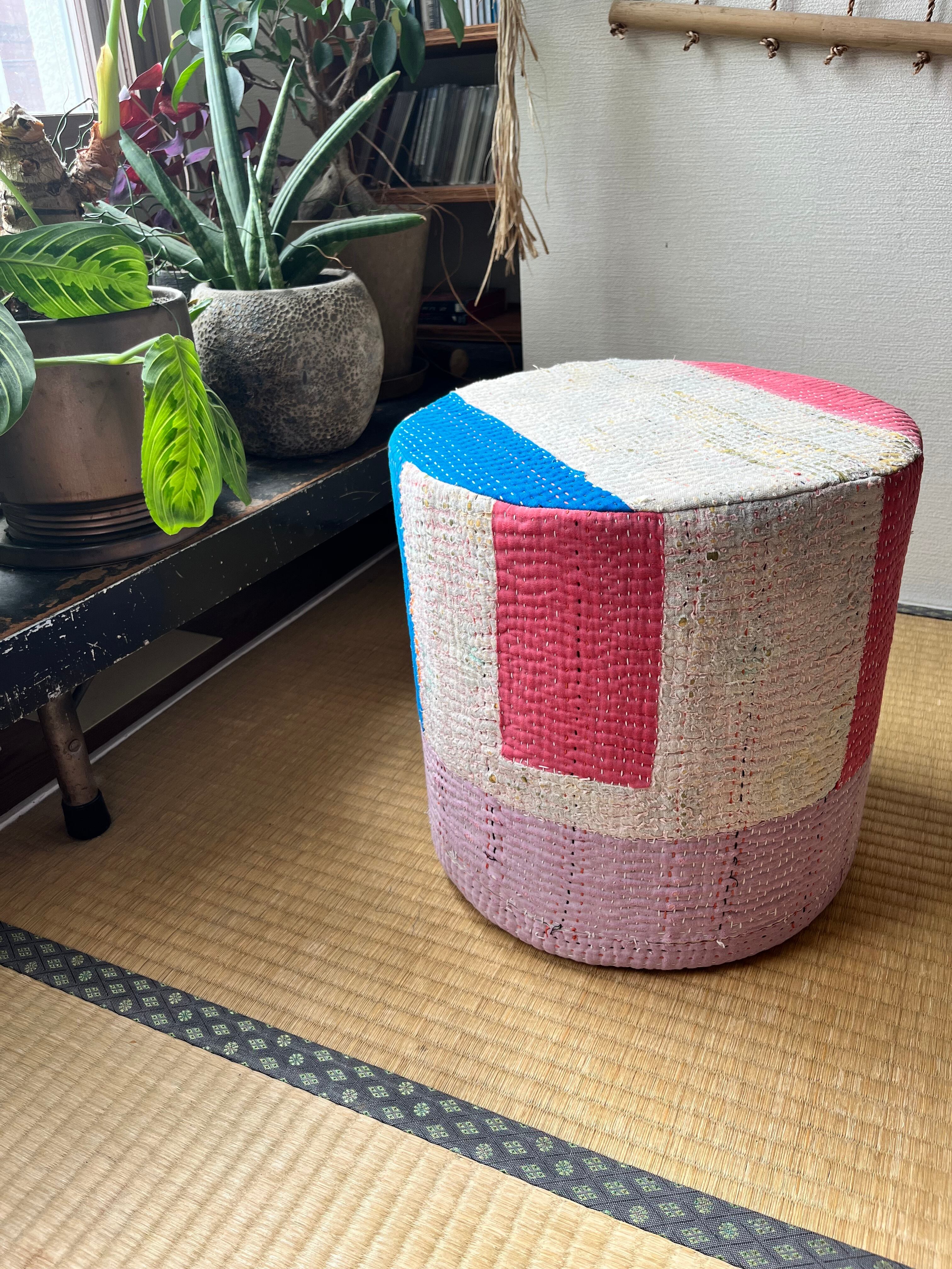 Vintage Kantha 丸型スツール大(中身付) 004