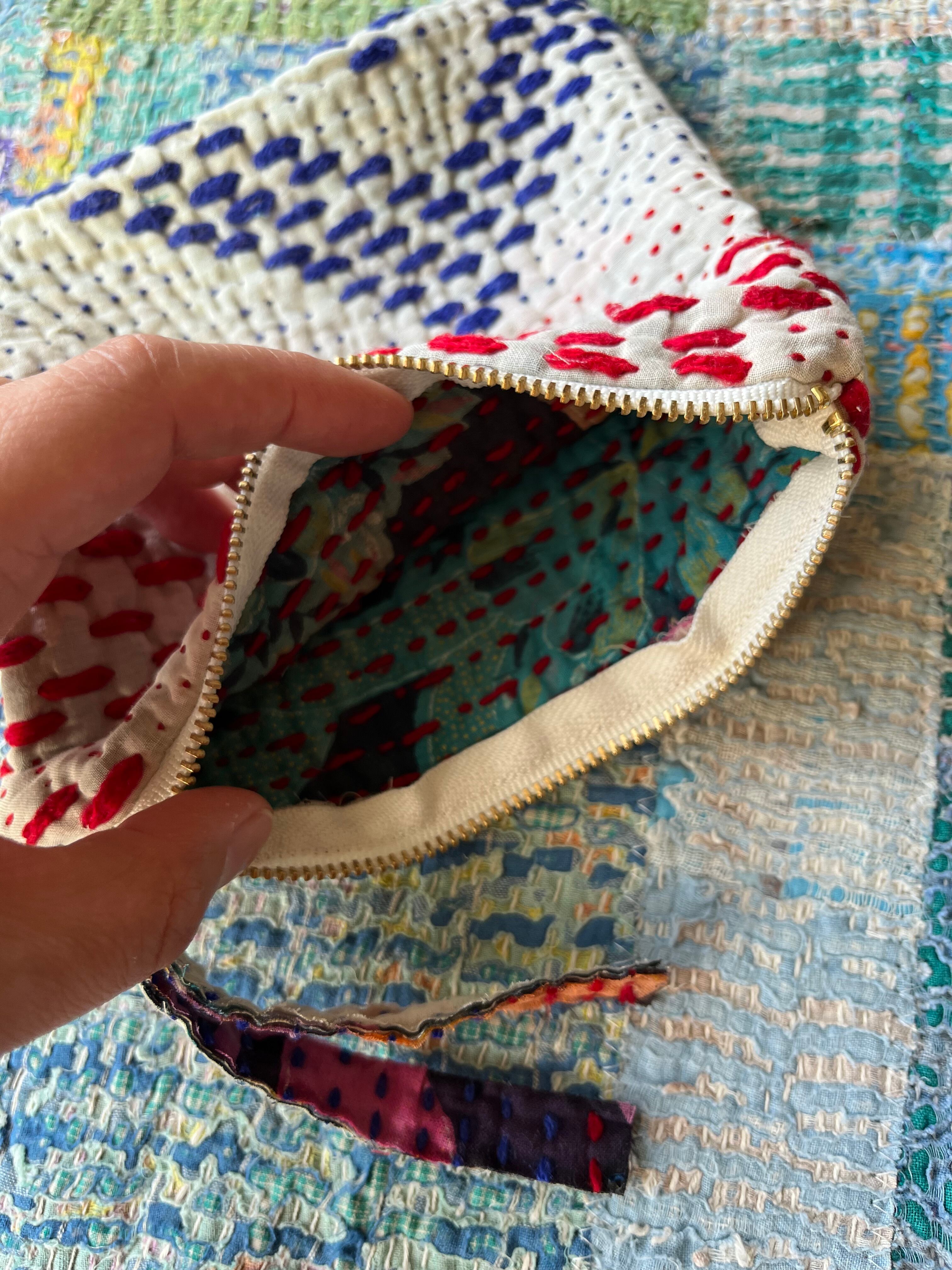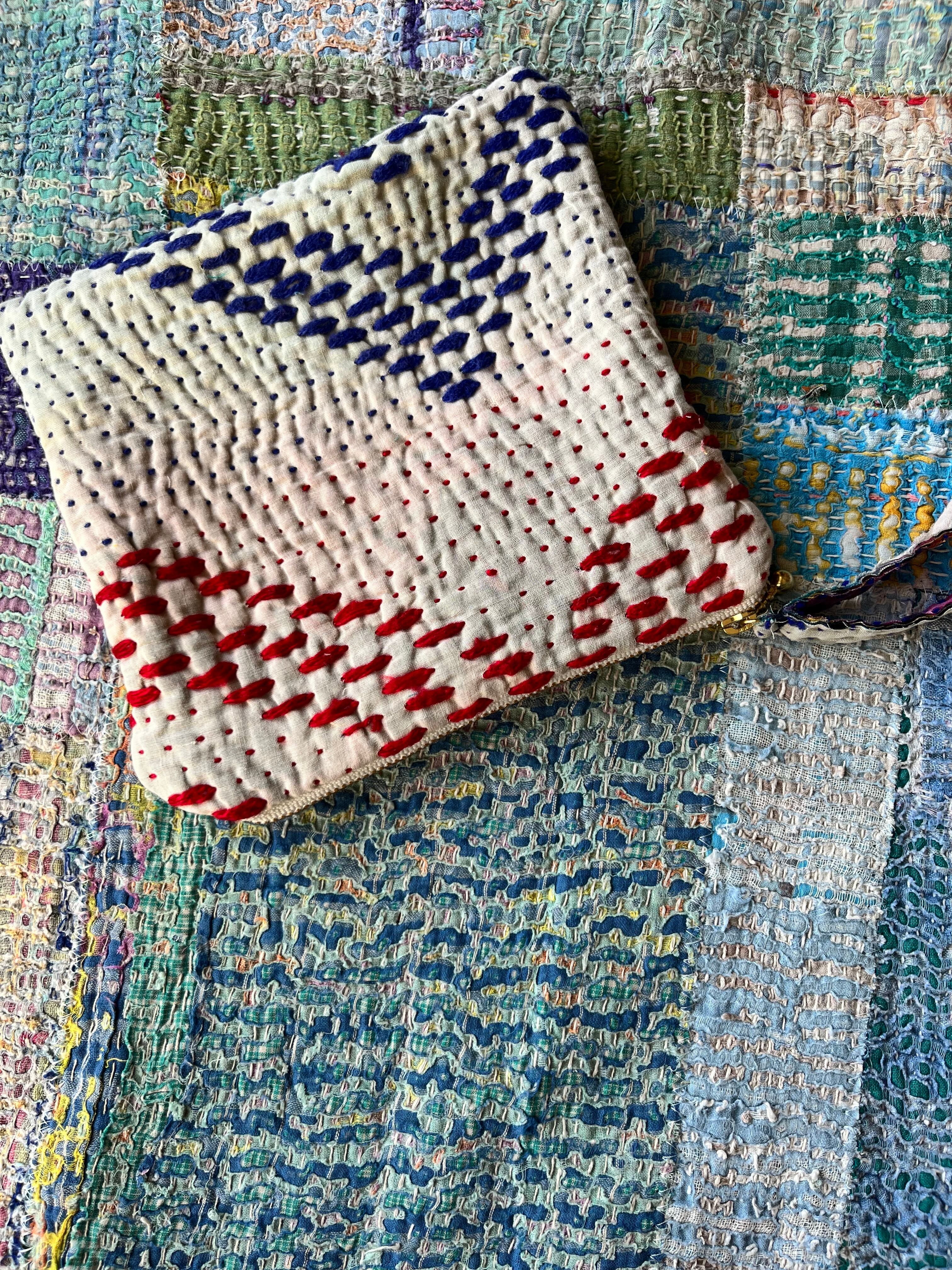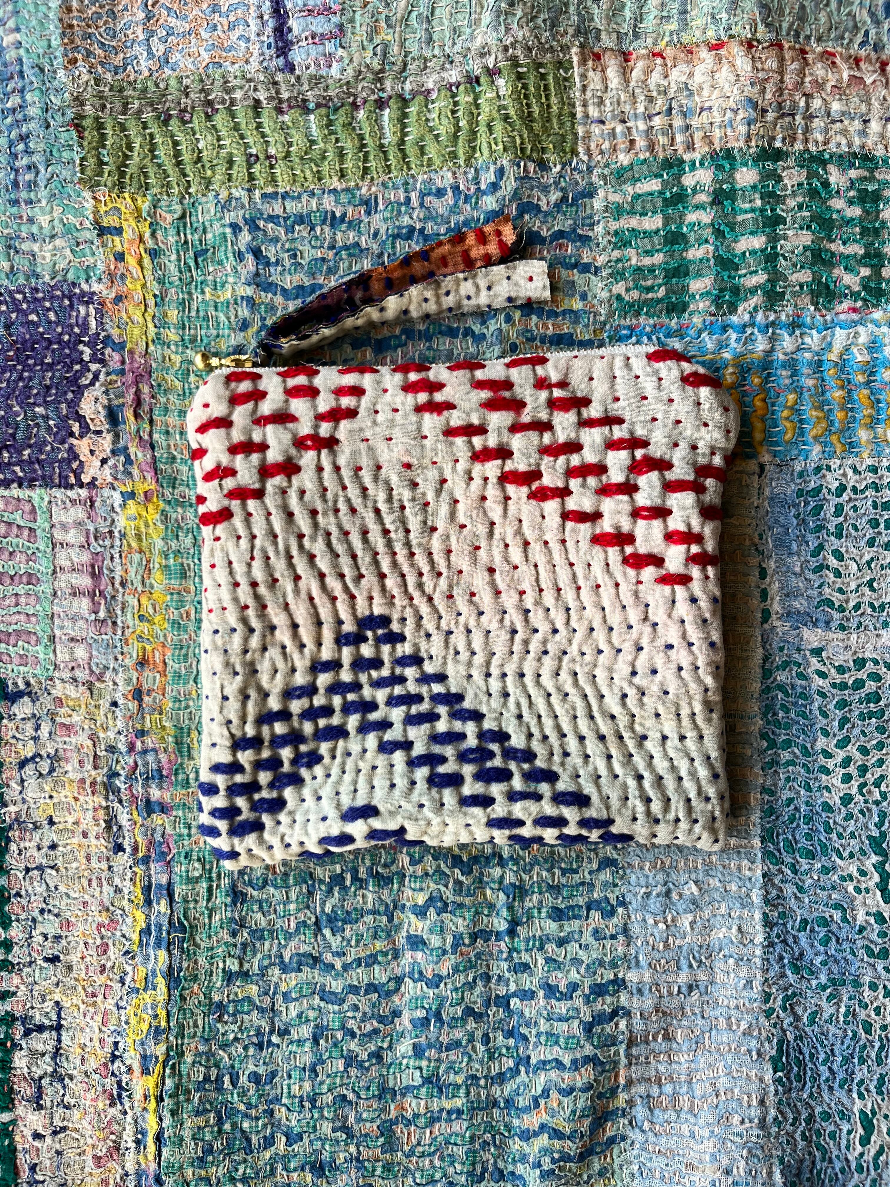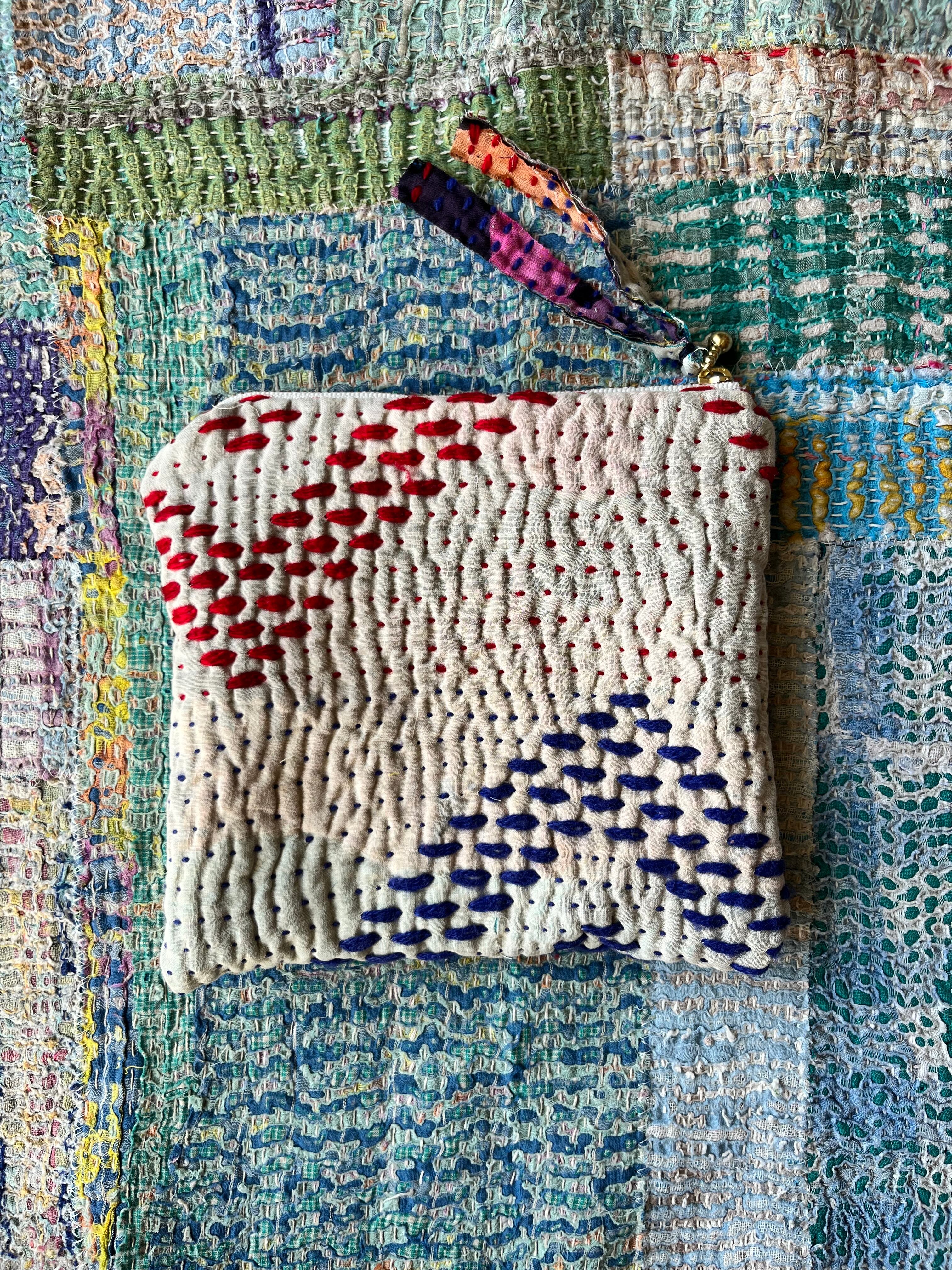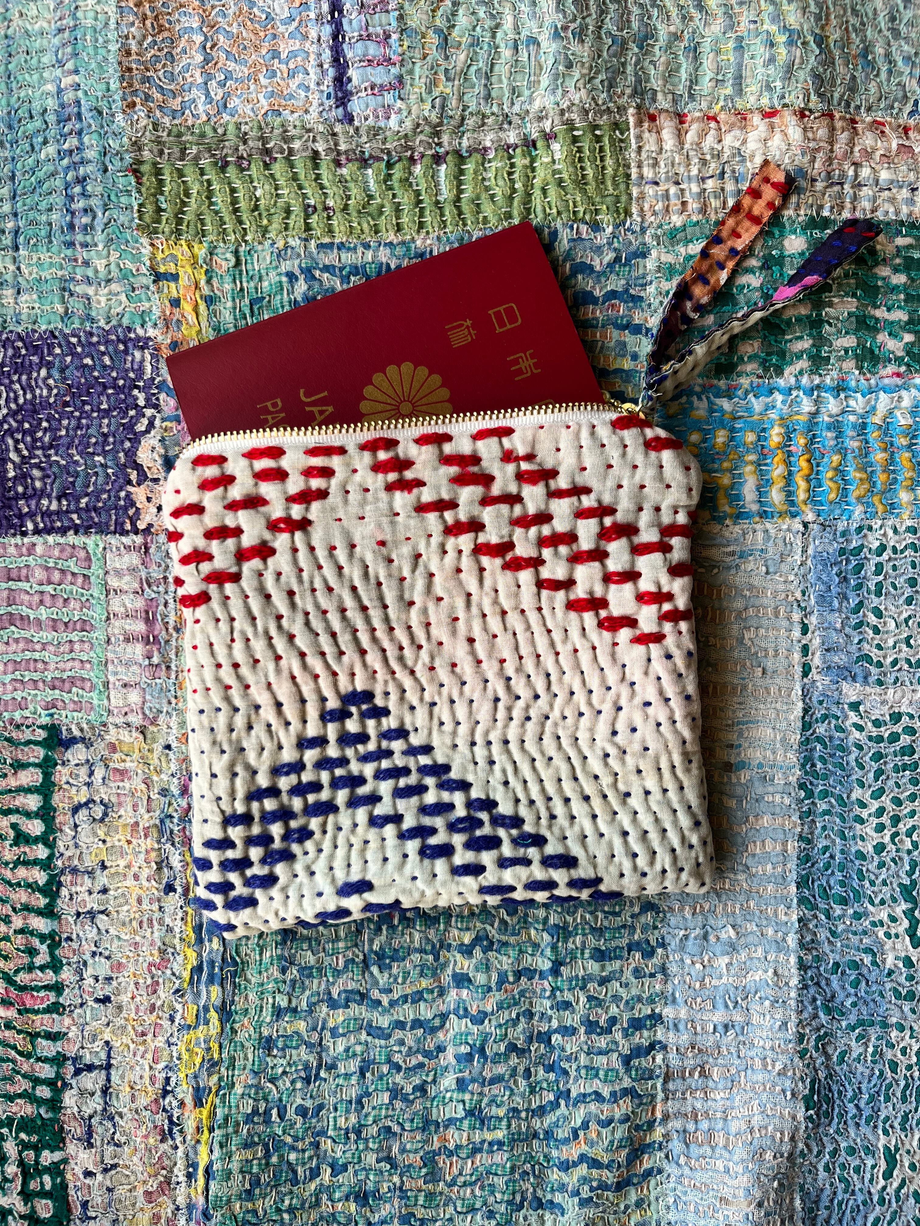Vintage Kantha フラットポーチ ま□(しかく)ポーチ