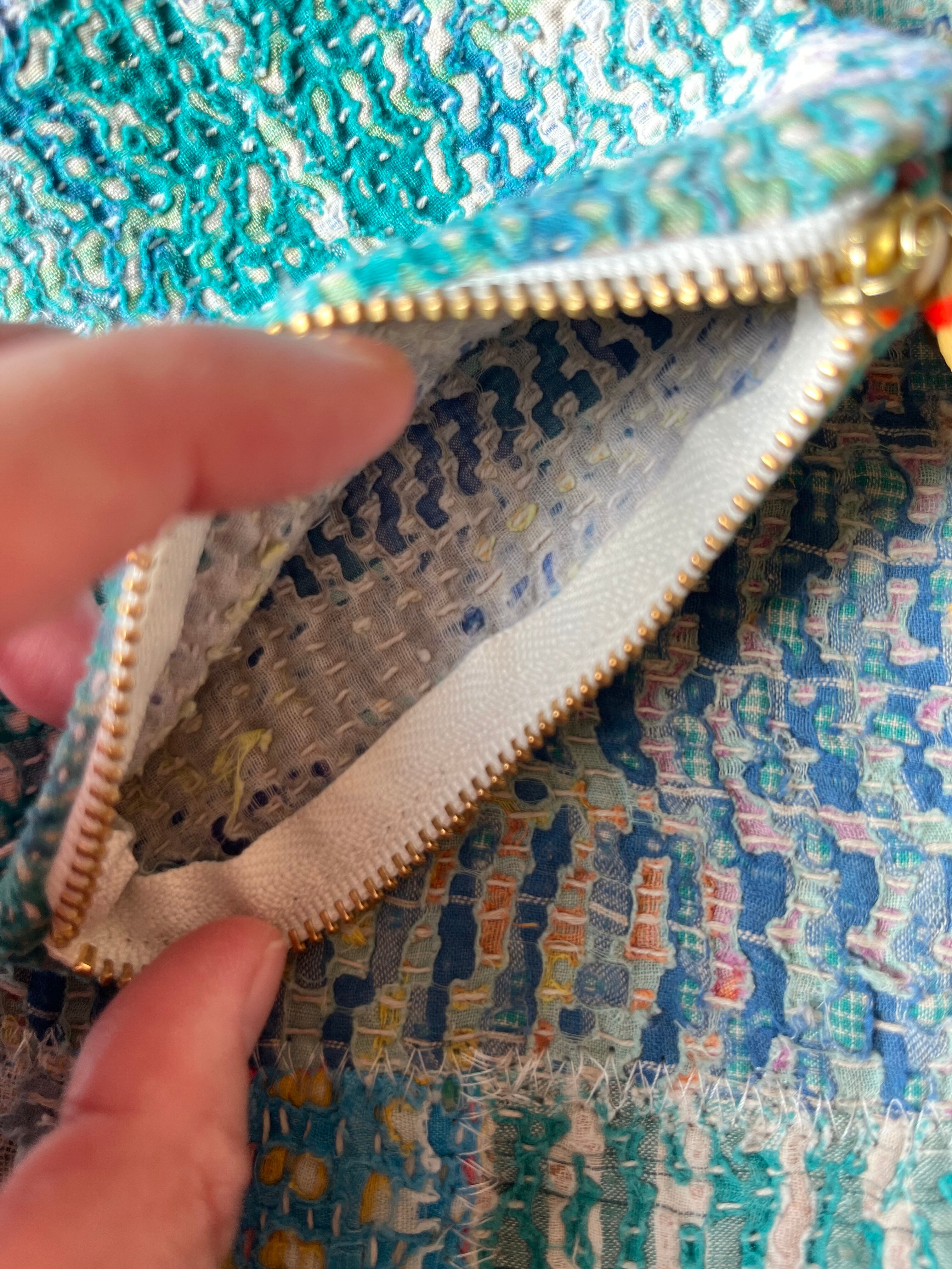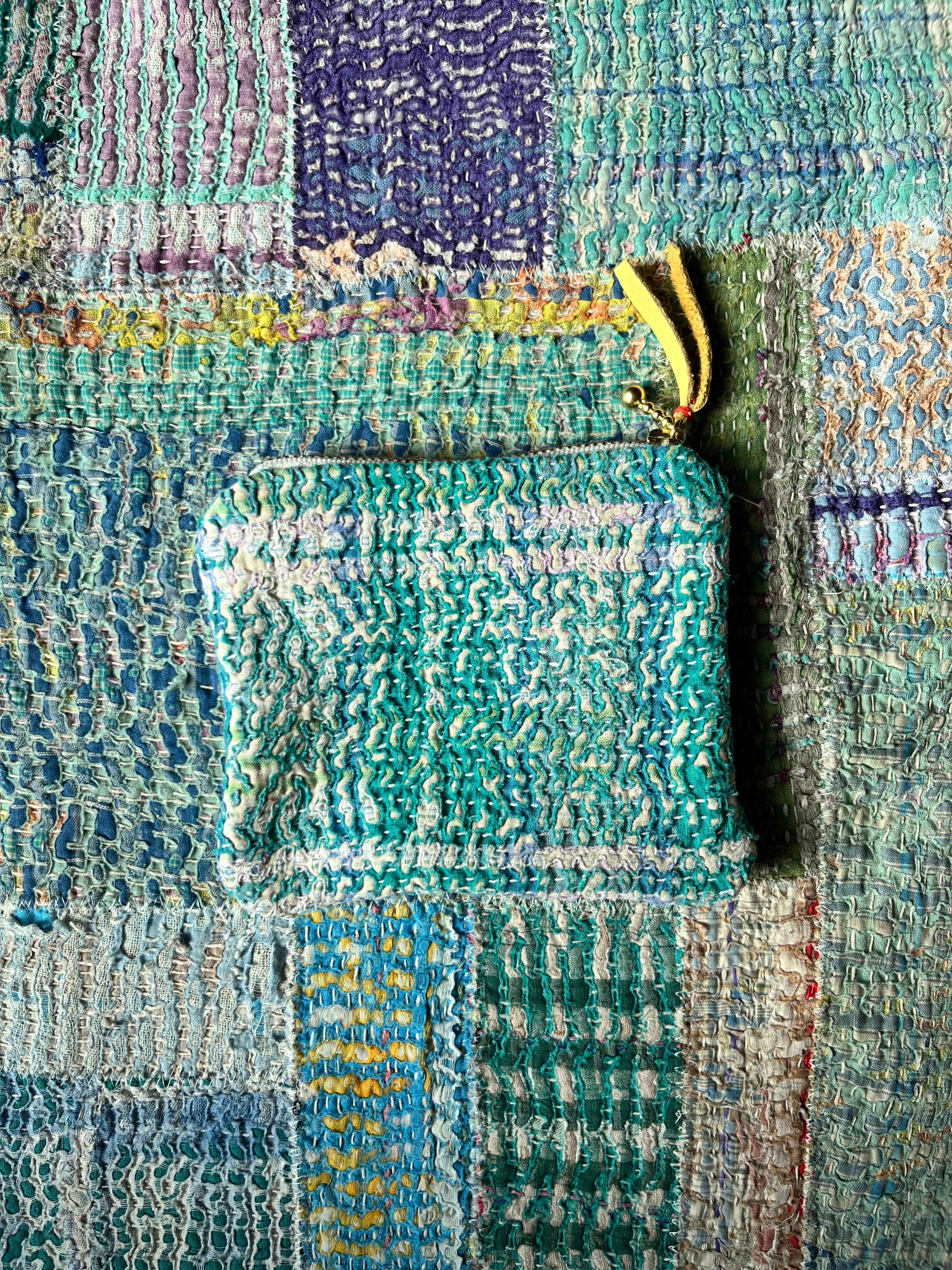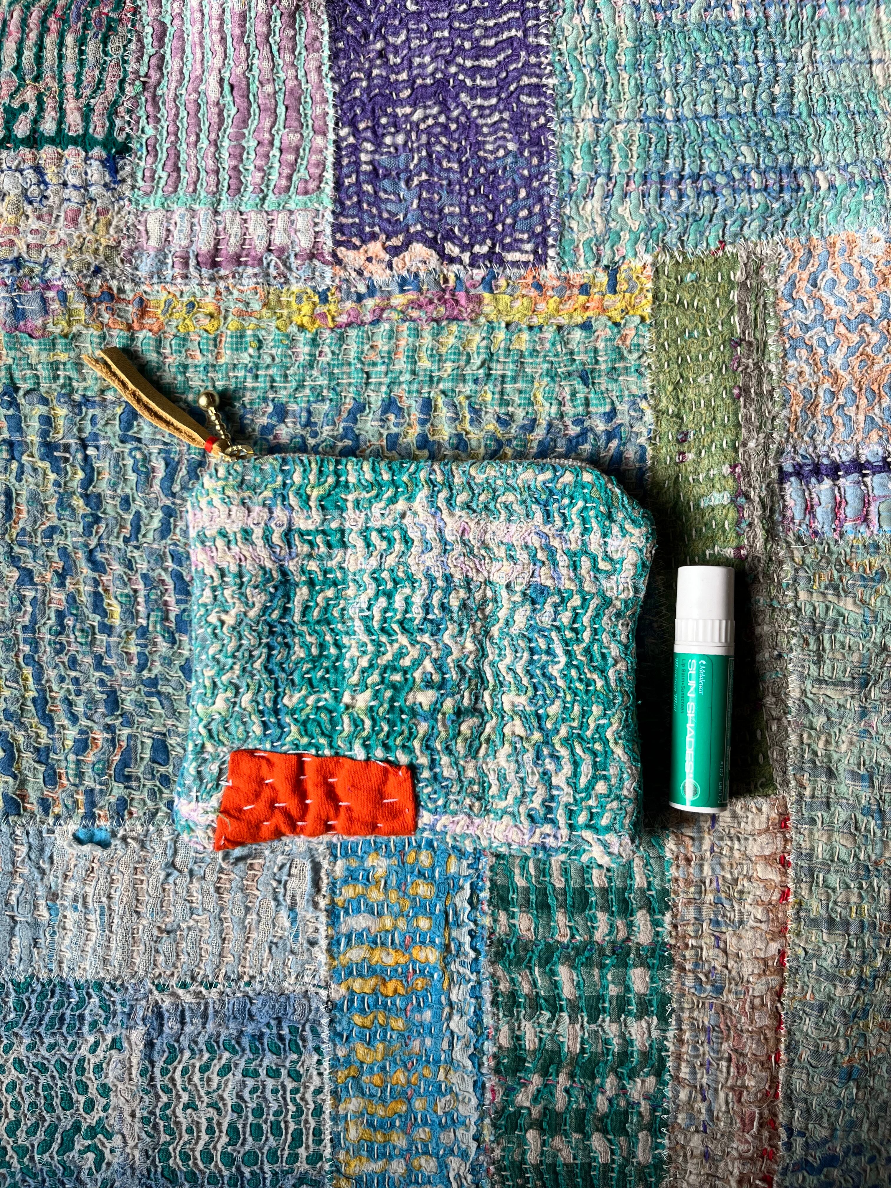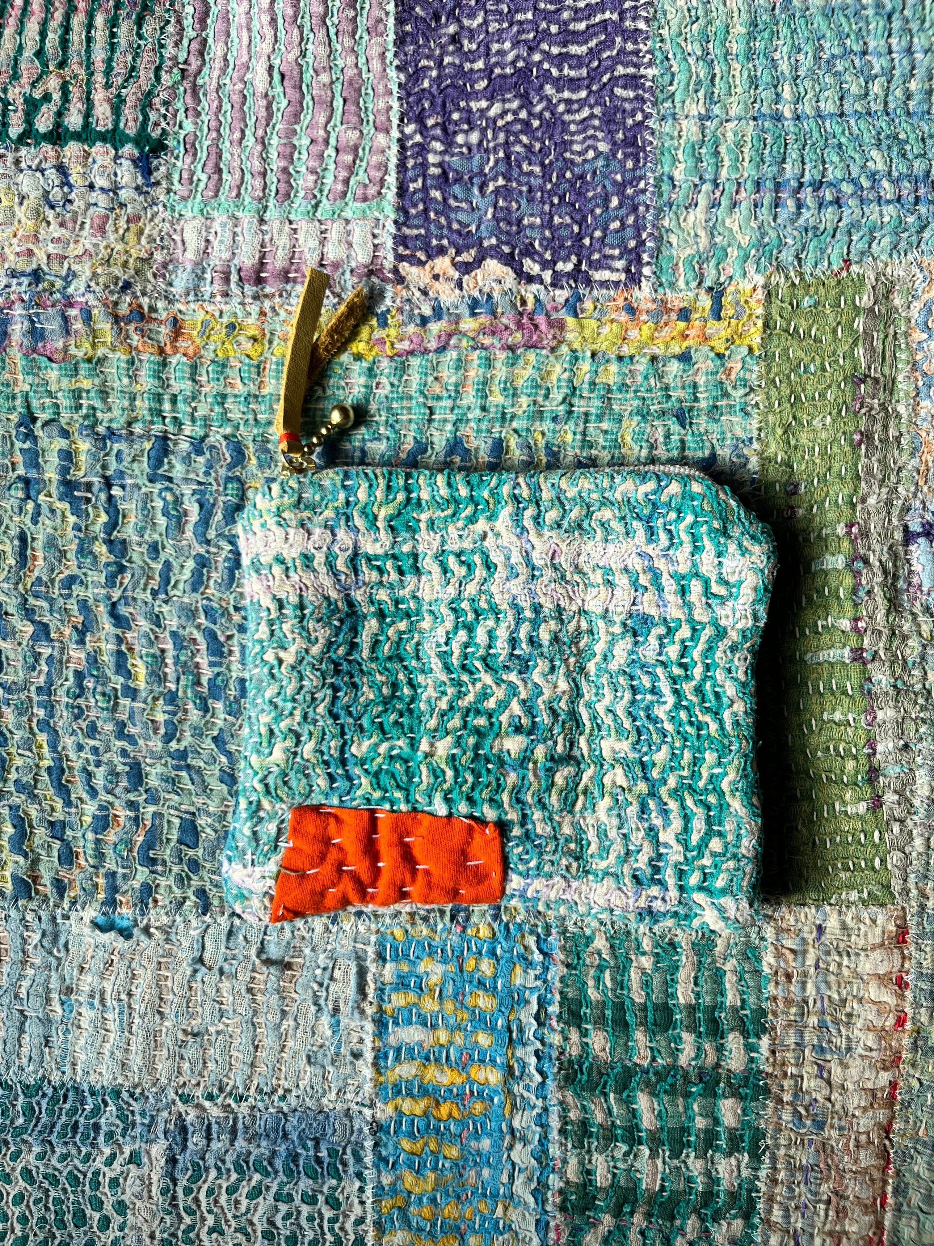 Vintage Kantha フラットポーチ (小) green×orange