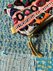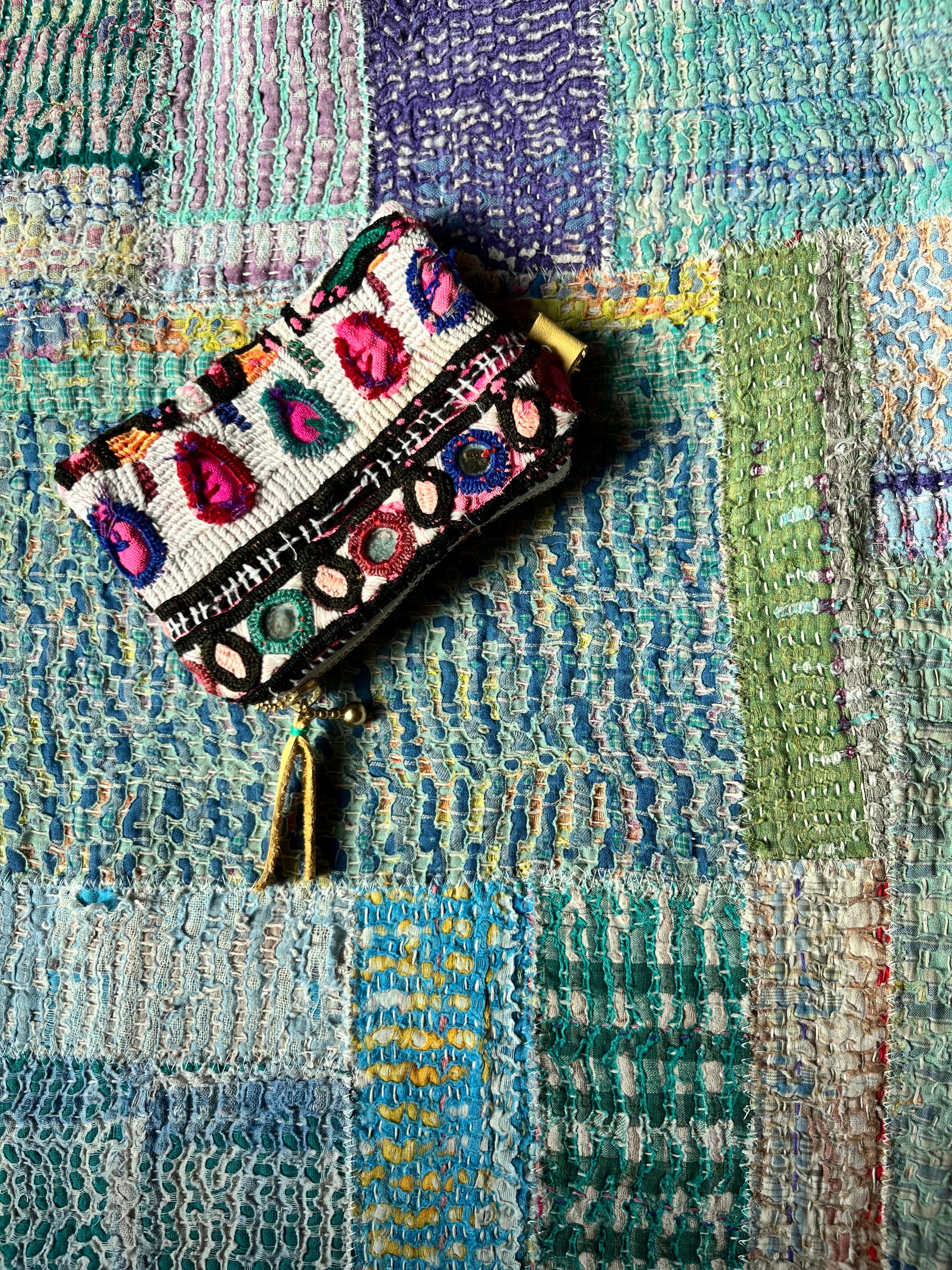 しっかりと縫い込まれた刺繍や小さなミラーあることによって