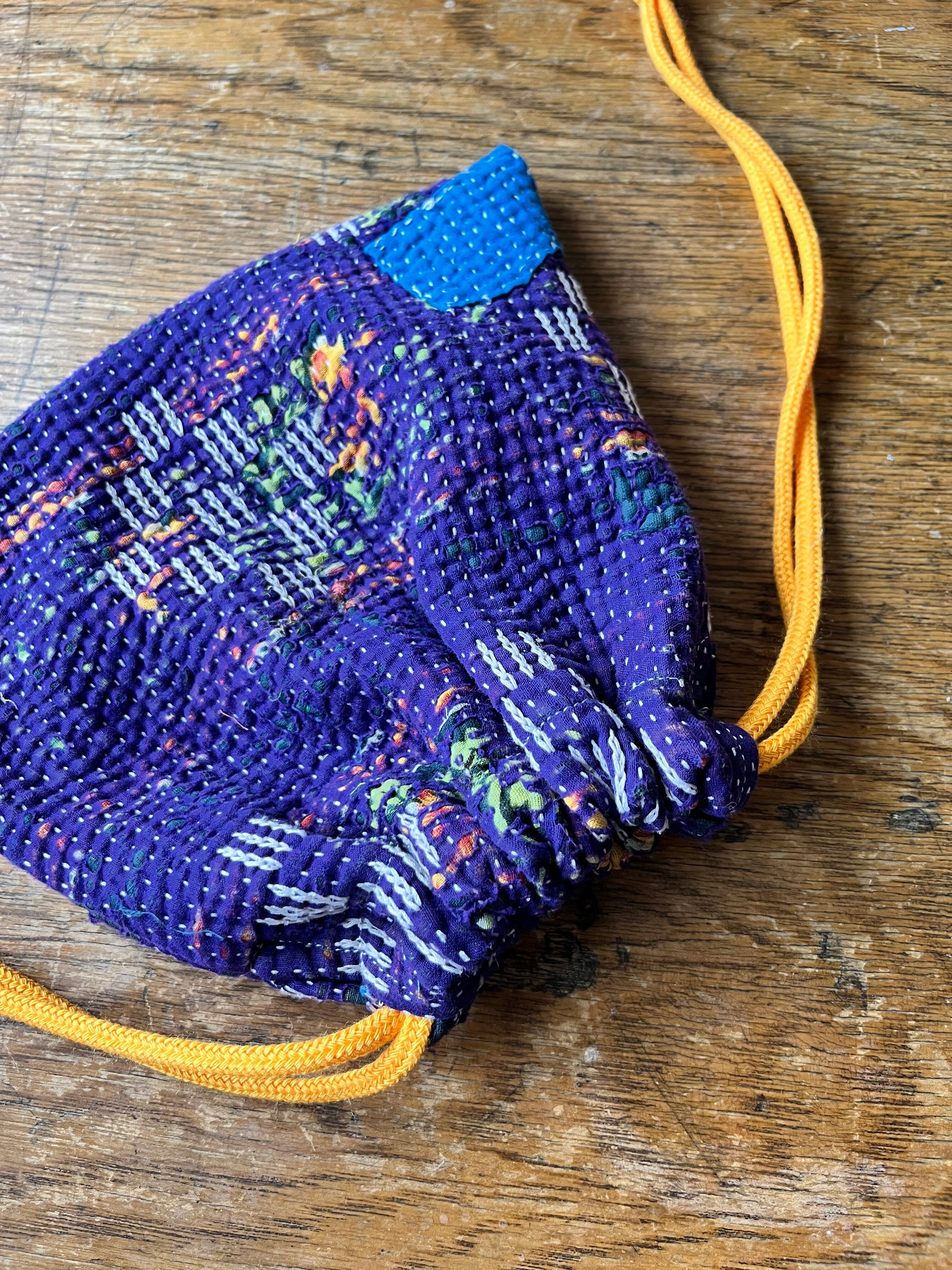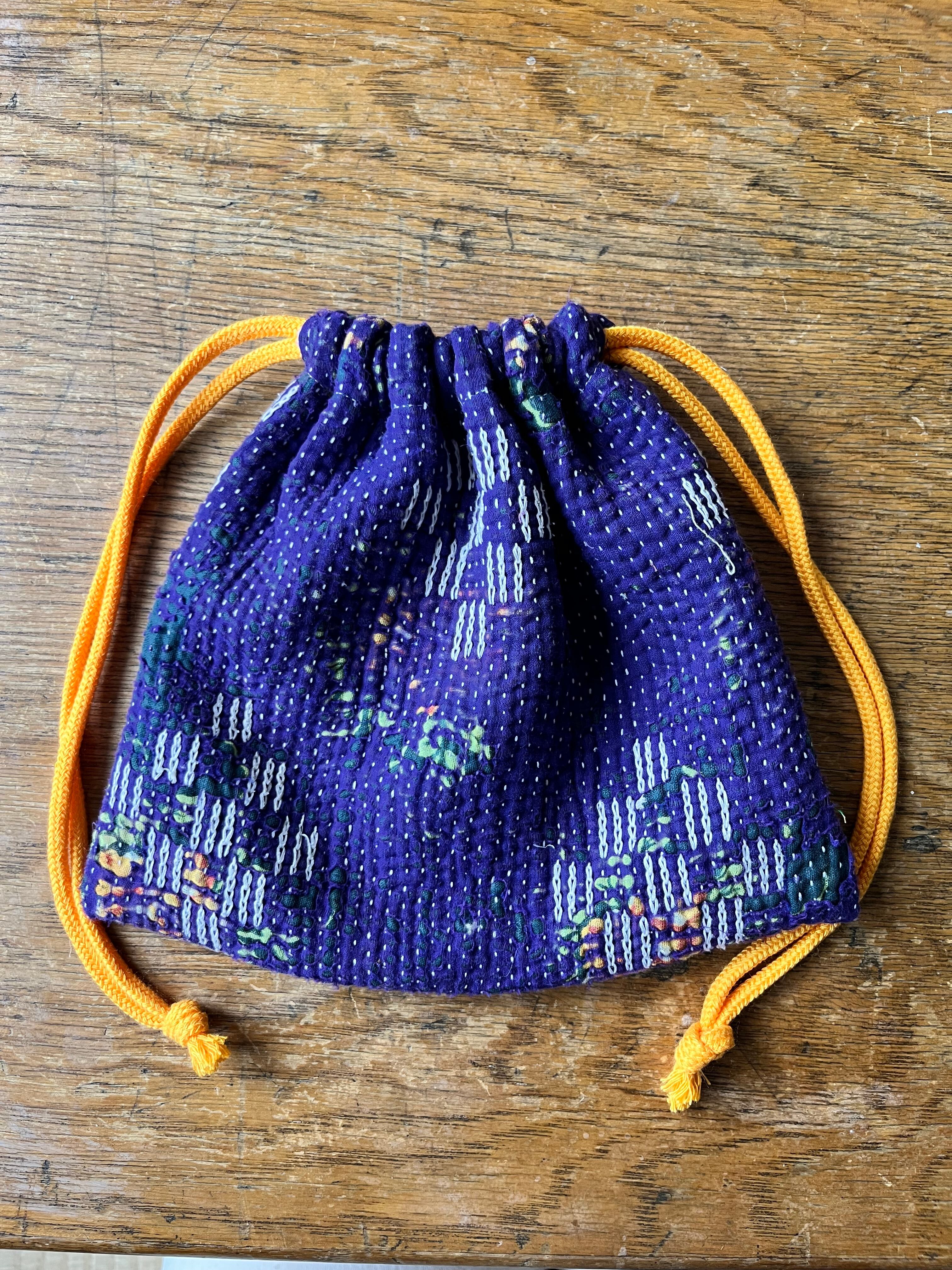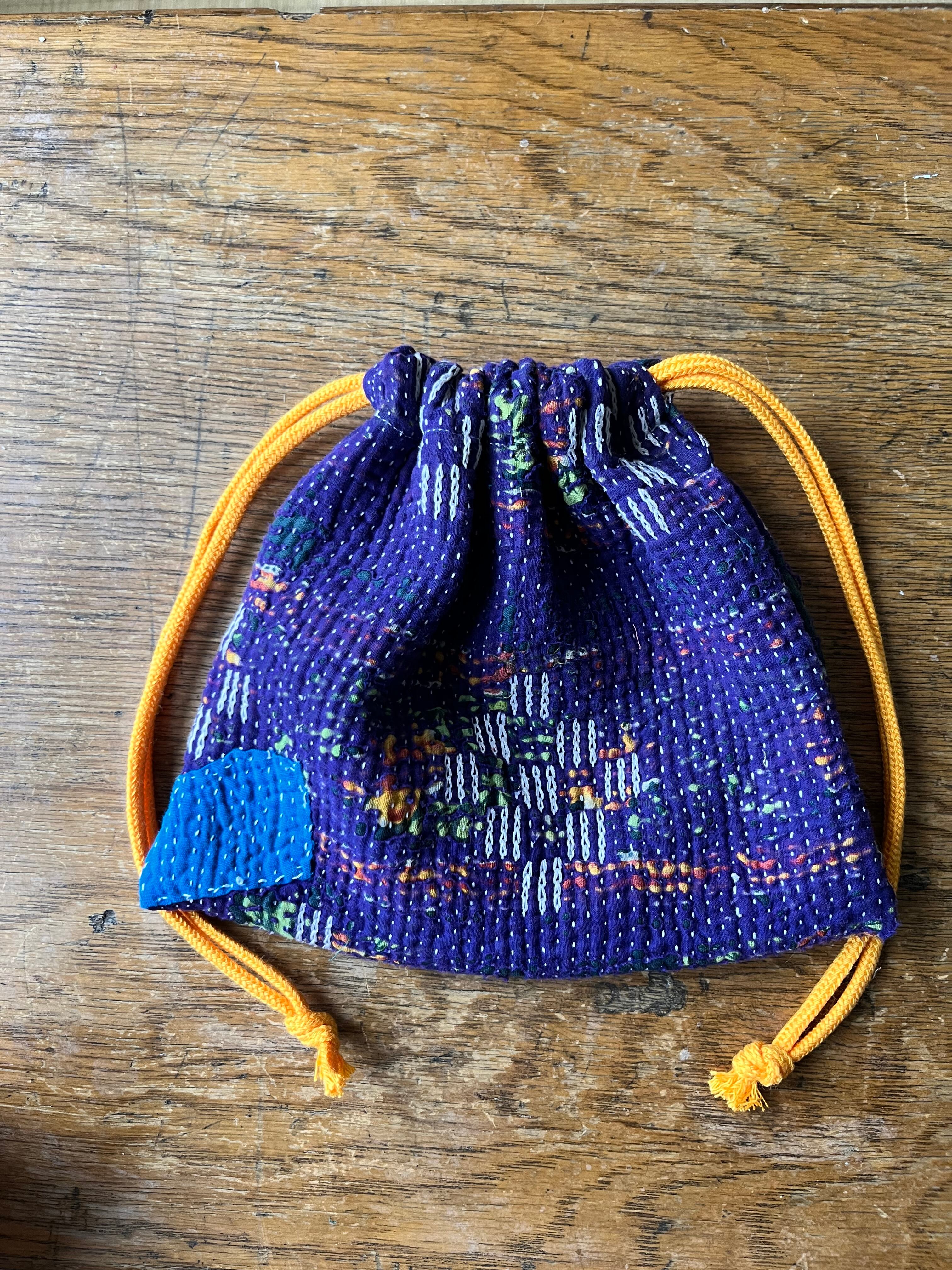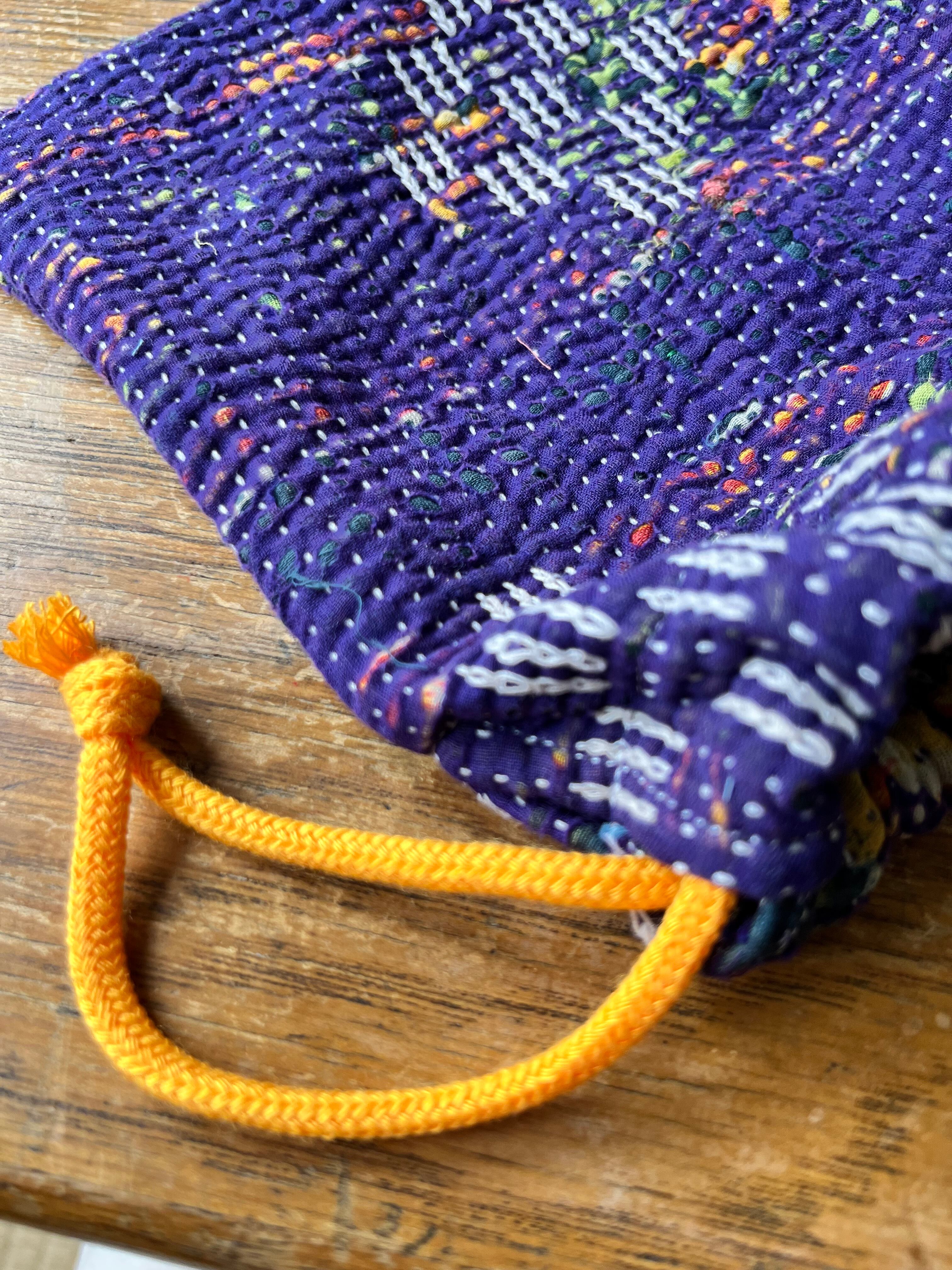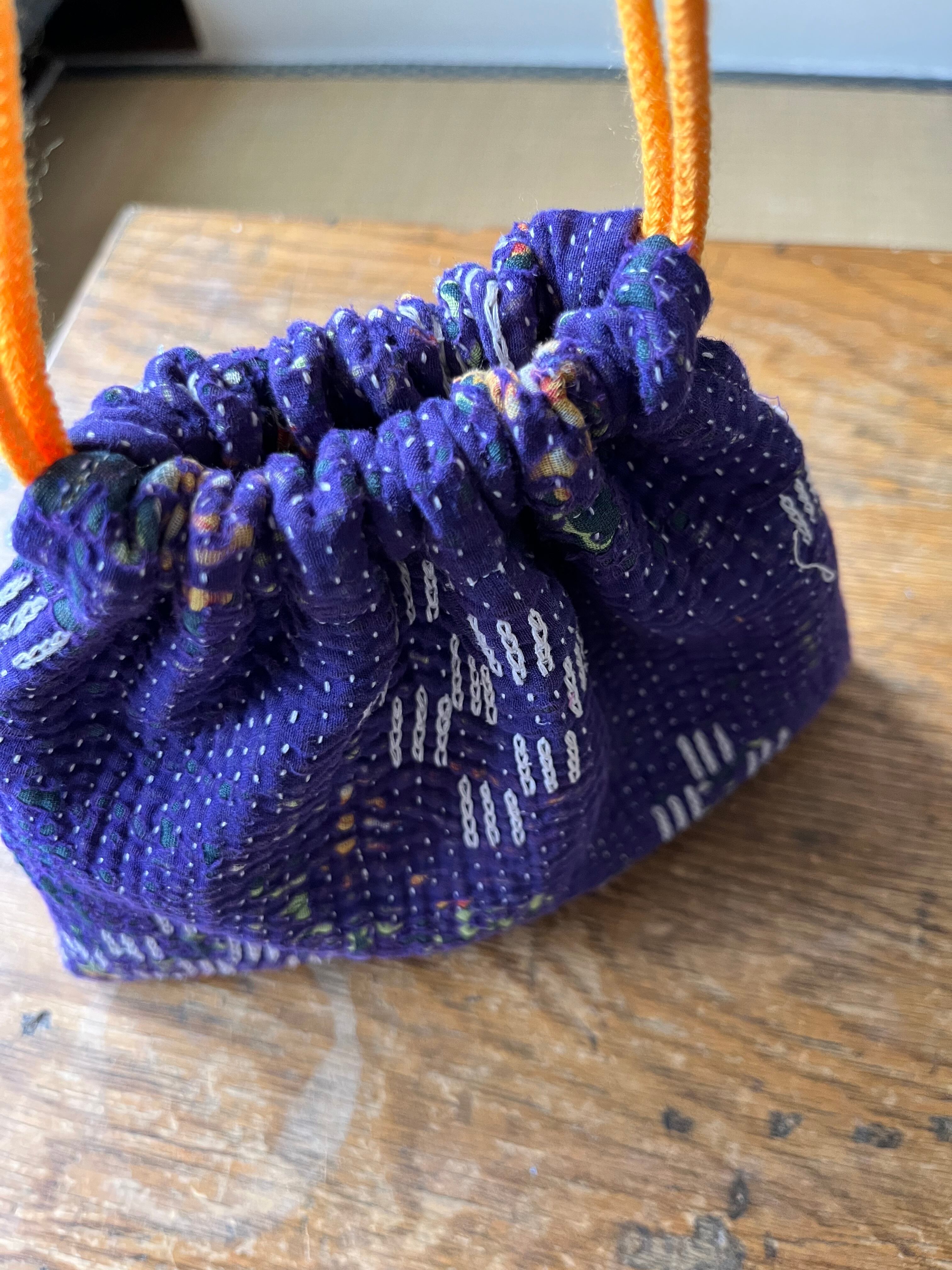 Vintage Kantha 巾着 purple