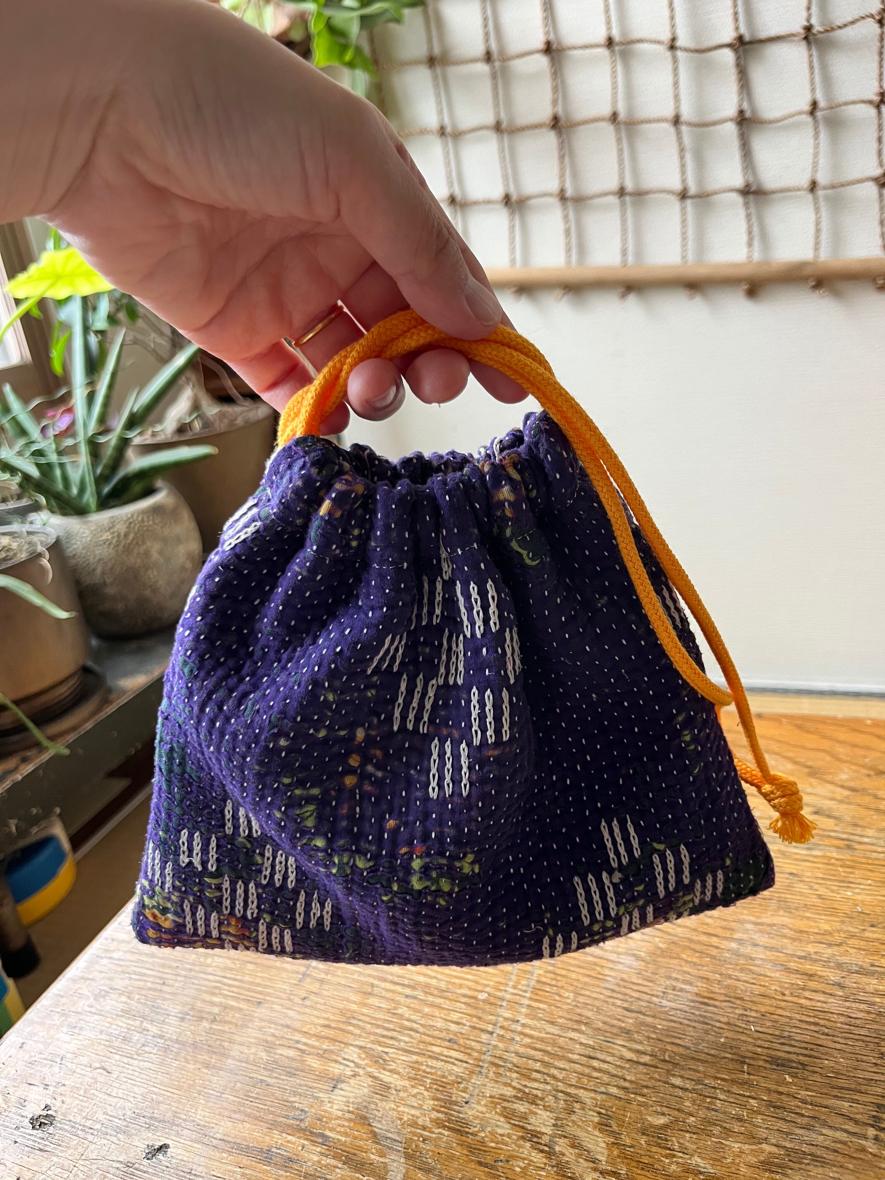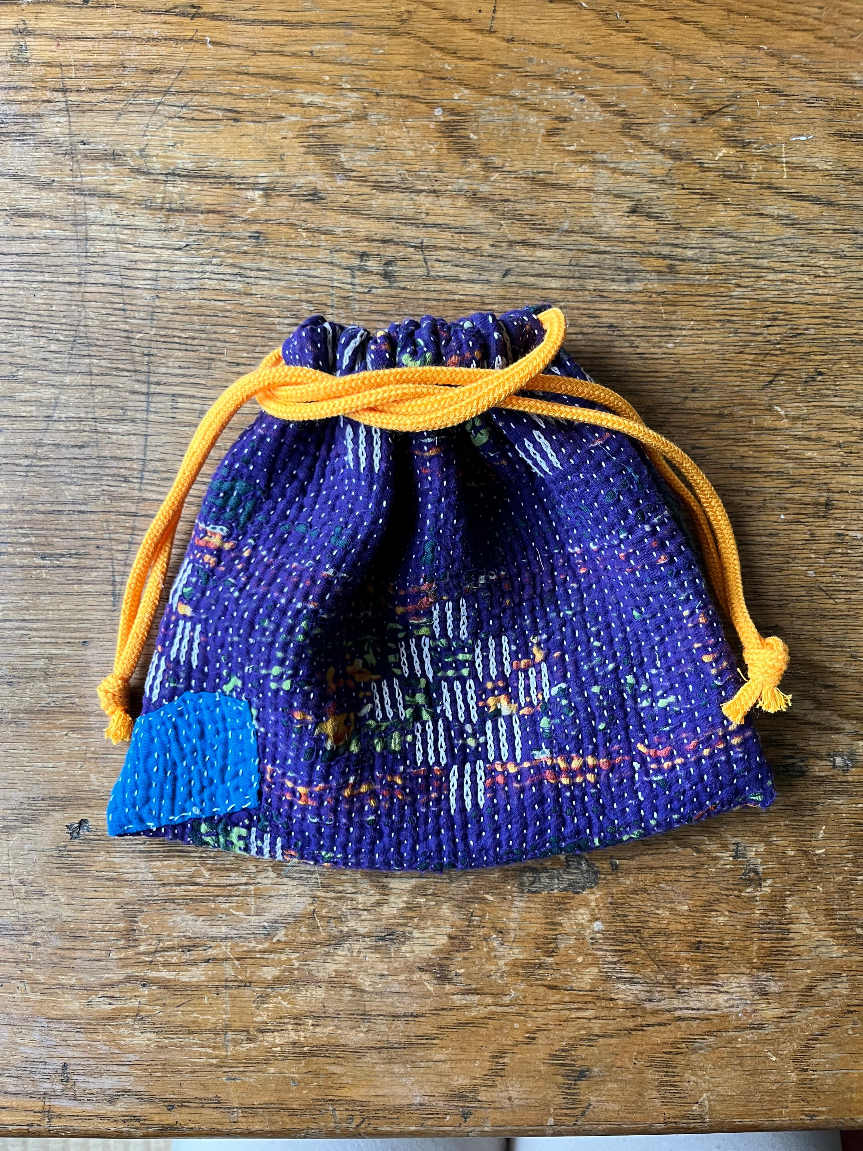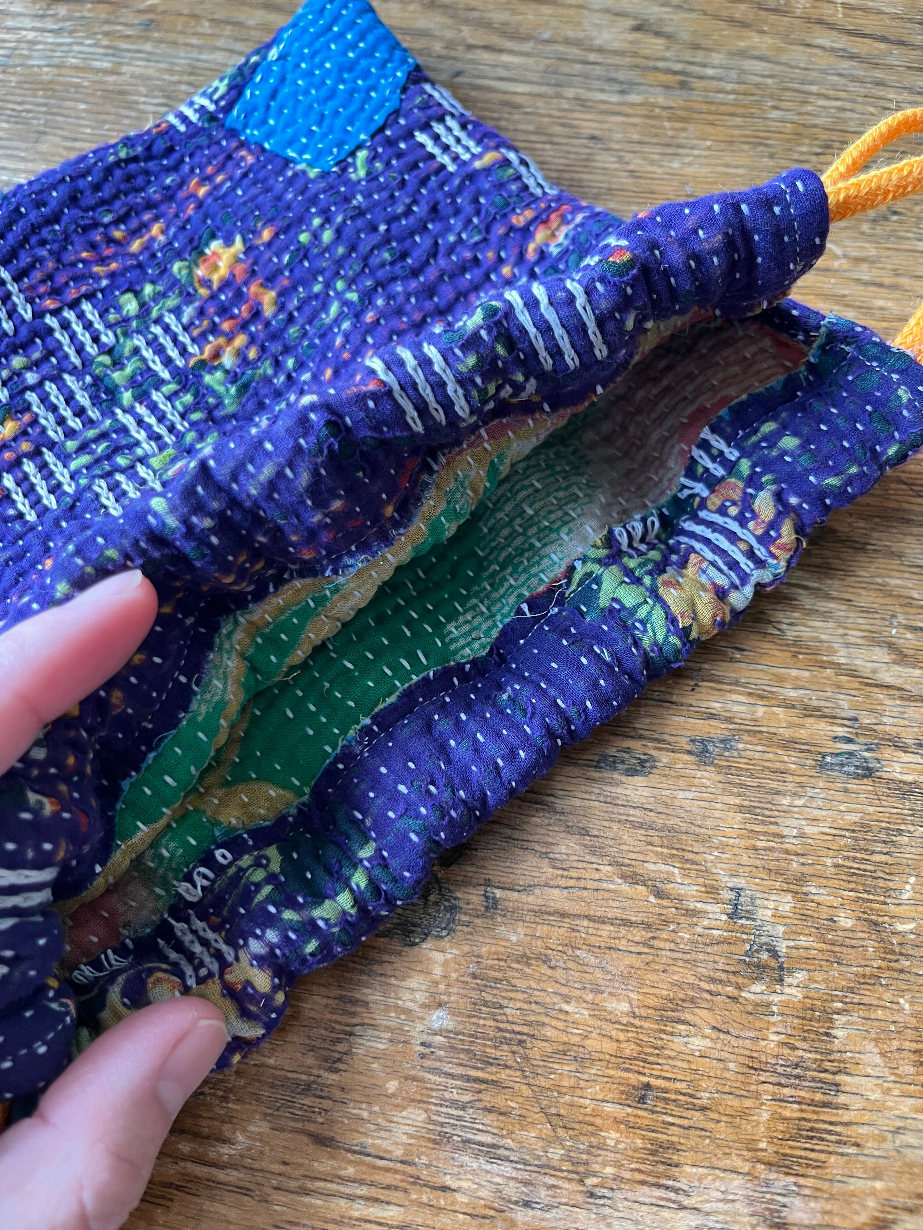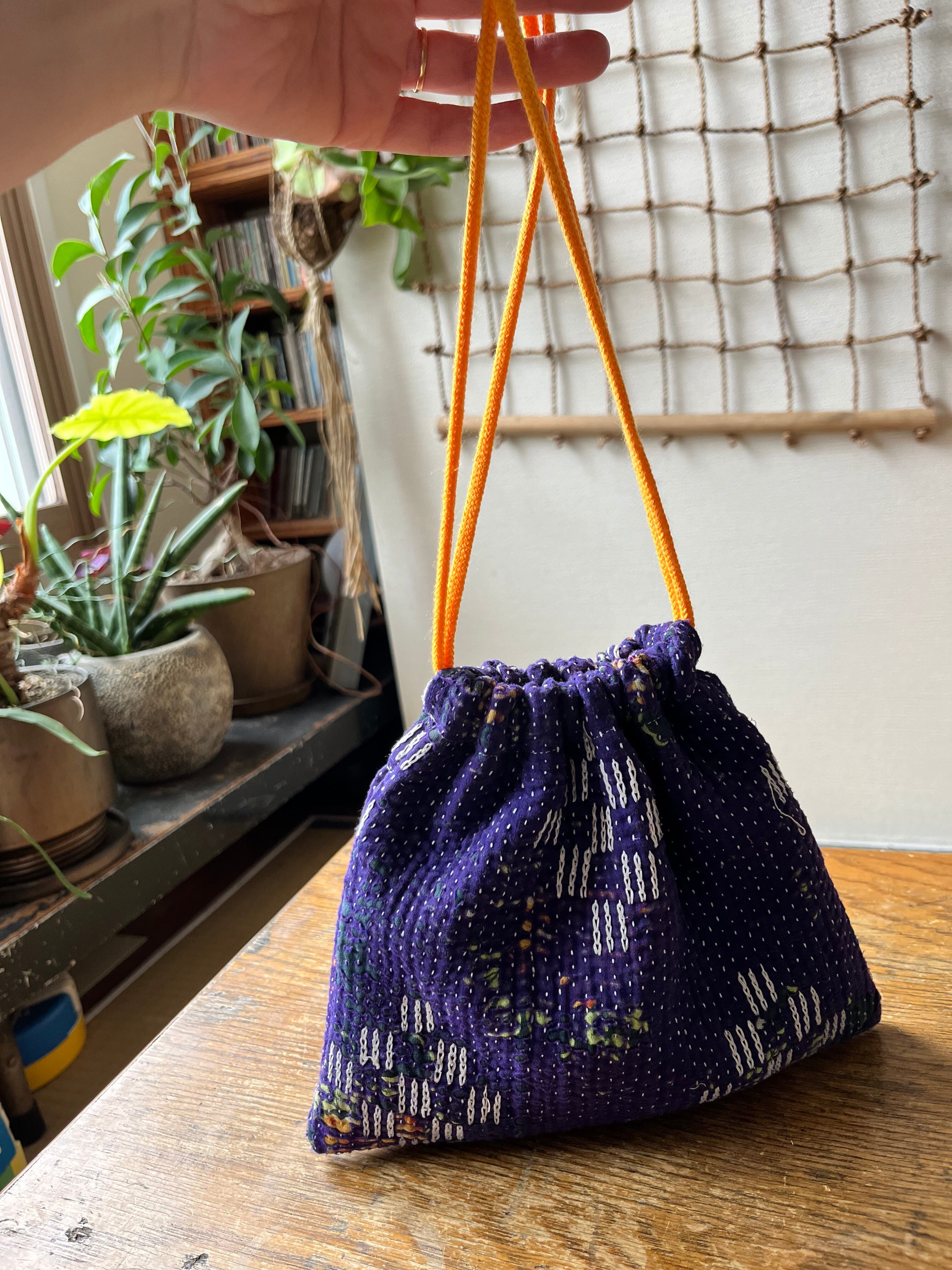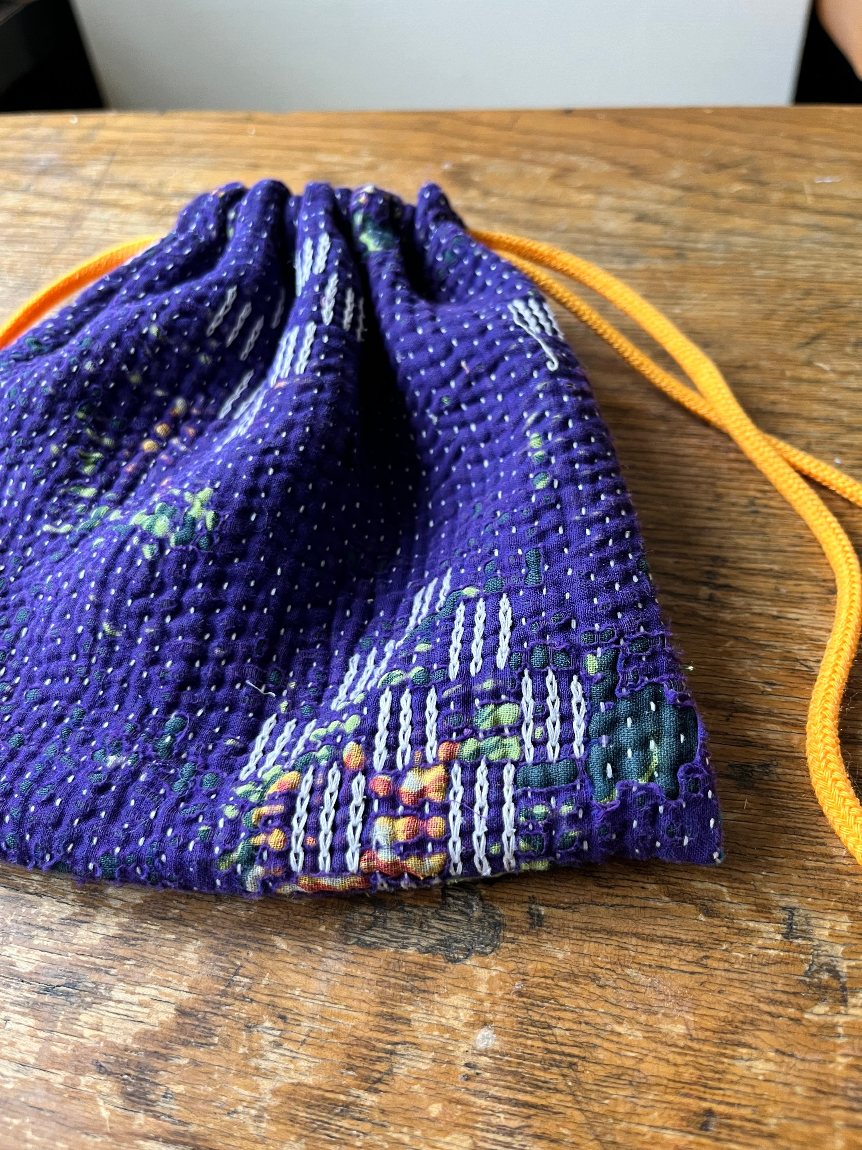 Vintage Kantha 巾着 purple