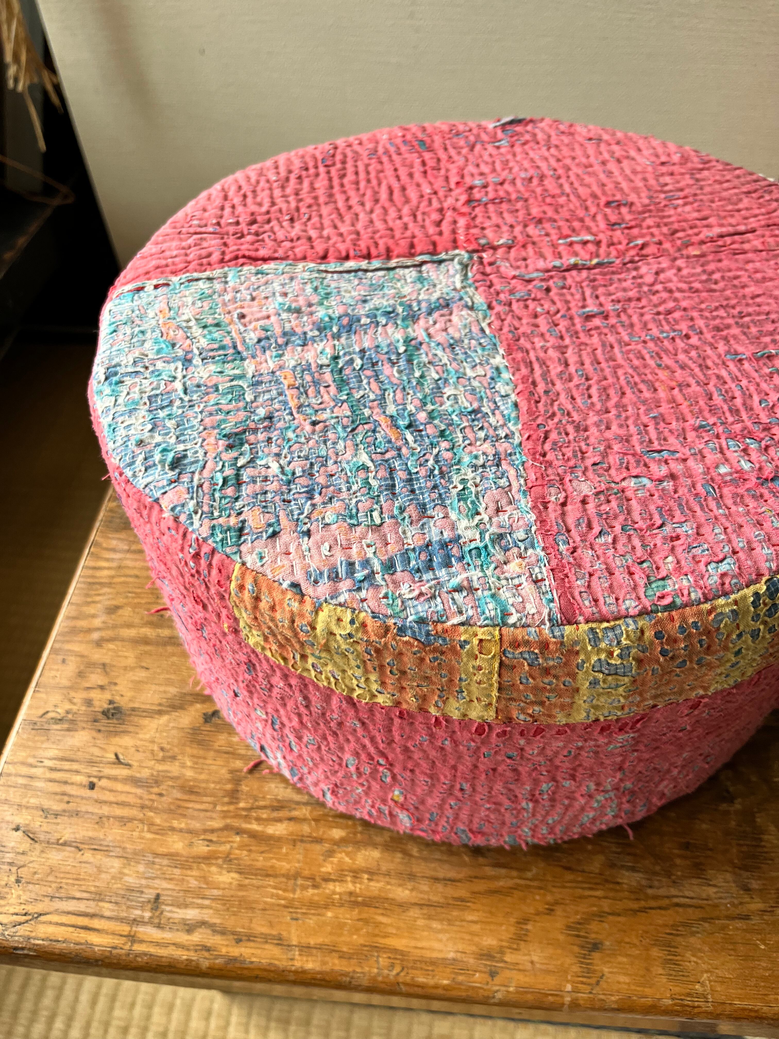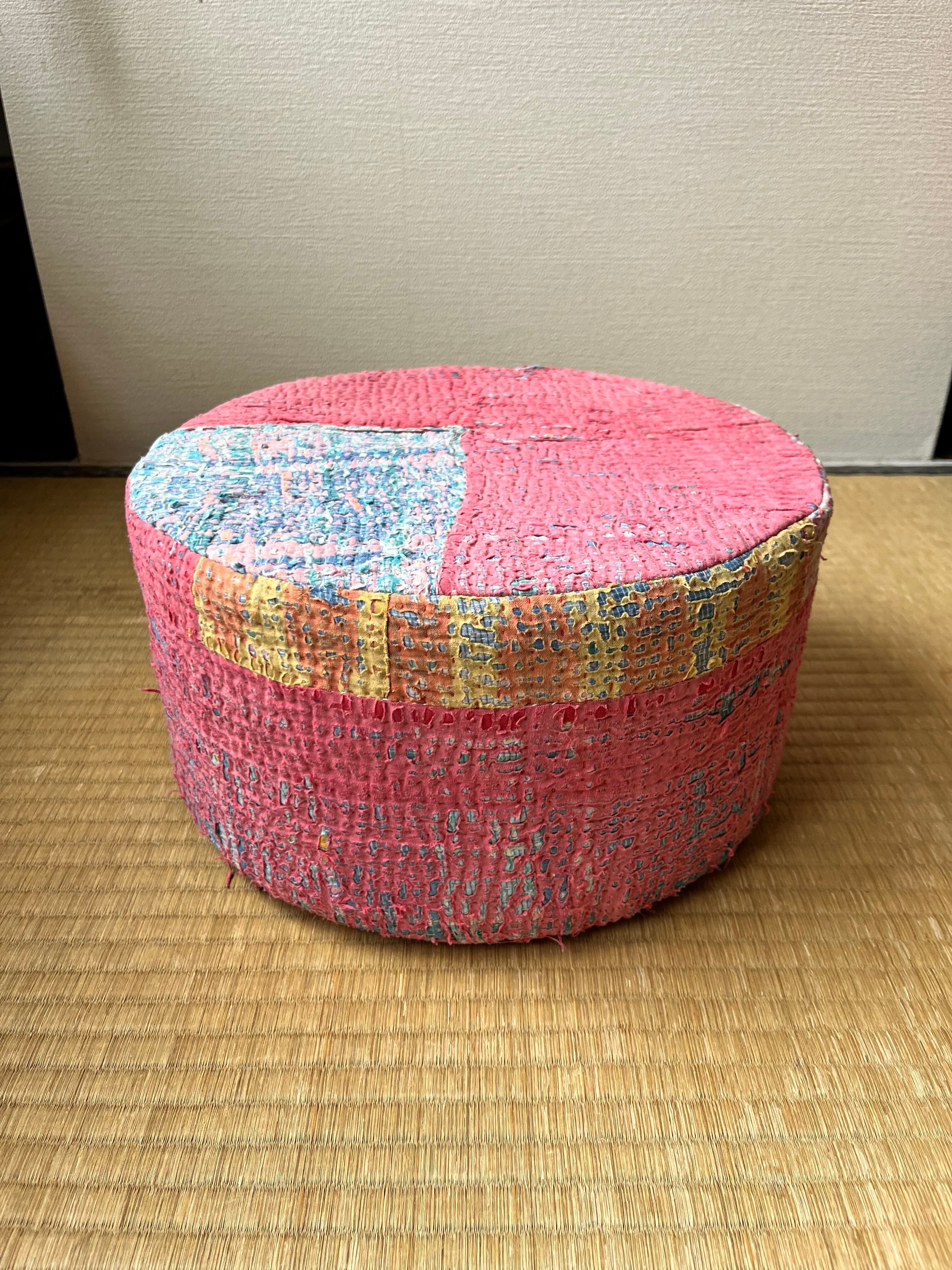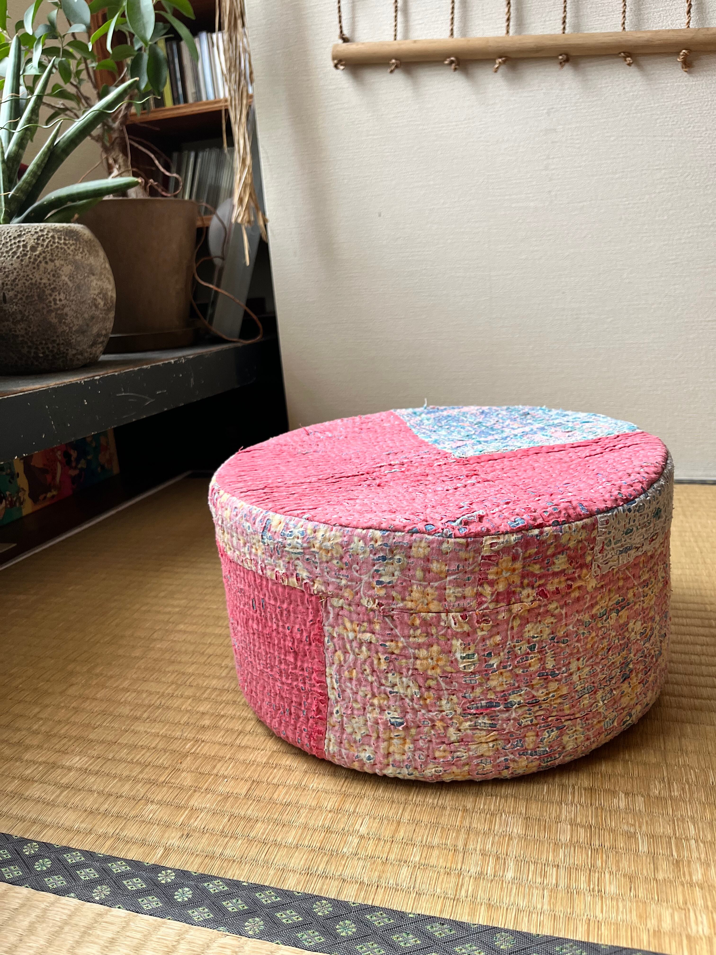Vintage Kantha 丸型スツール小(中身付) 004