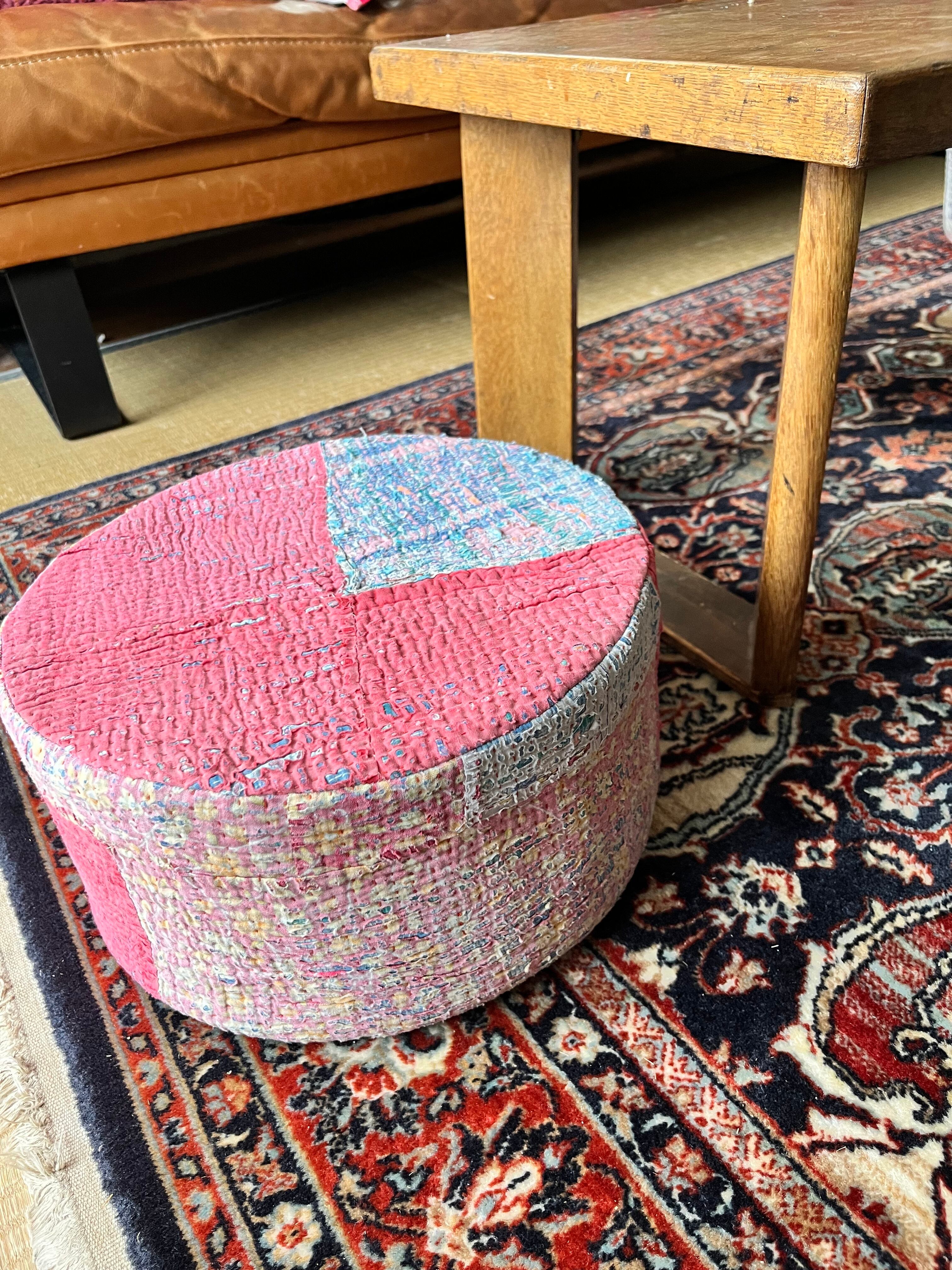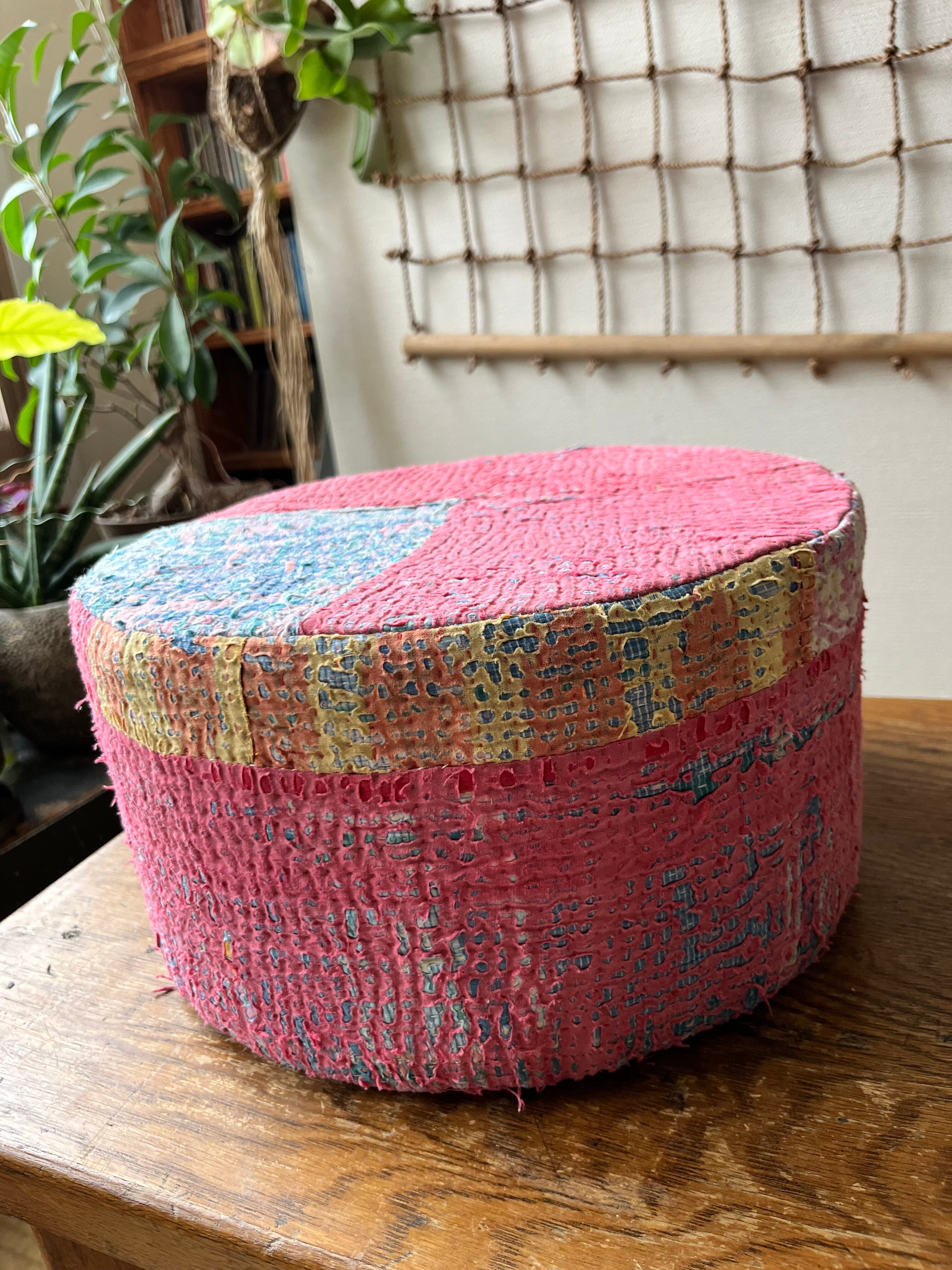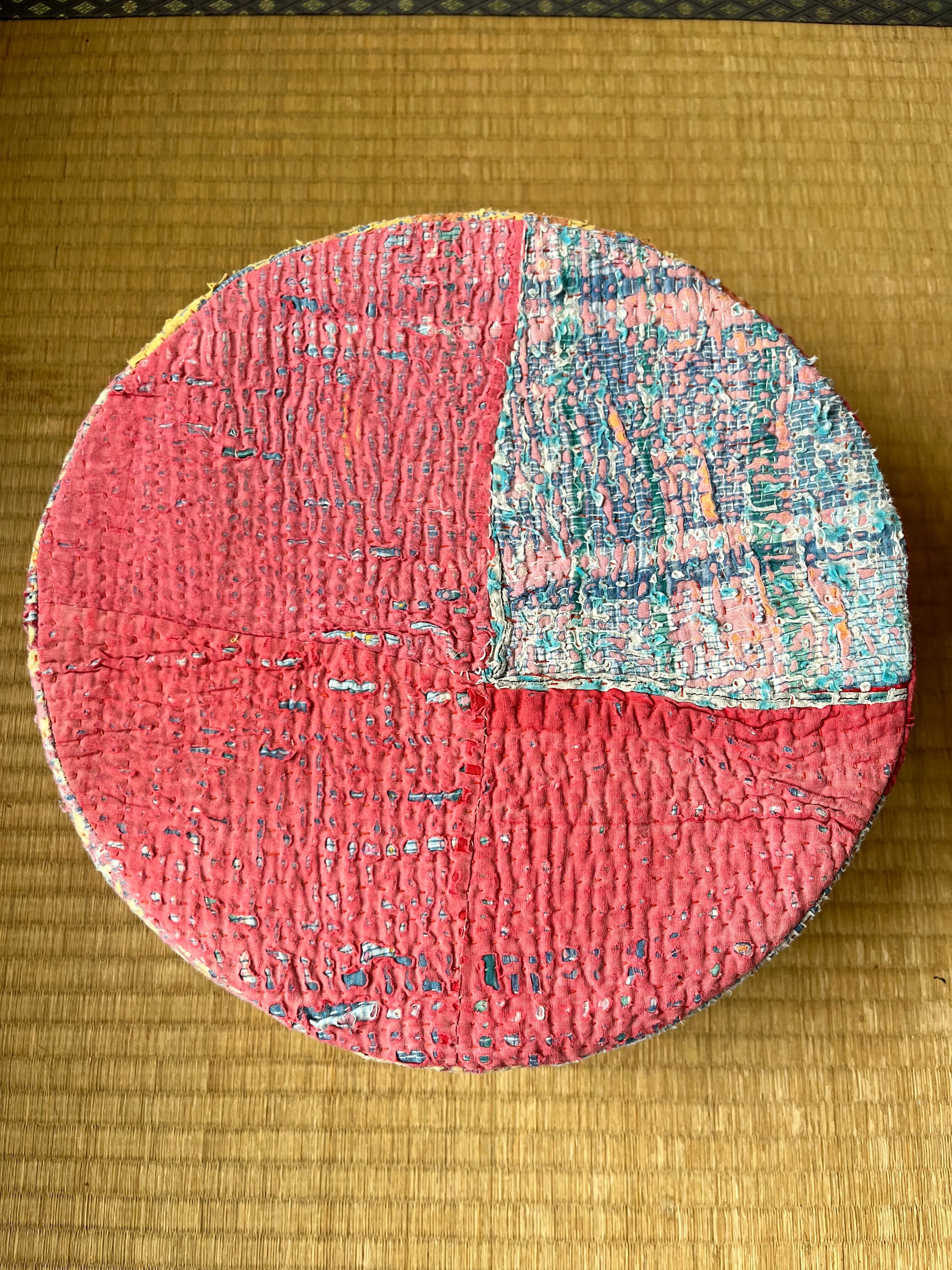 Vintage Kantha 丸型スツール小(中身付) 004